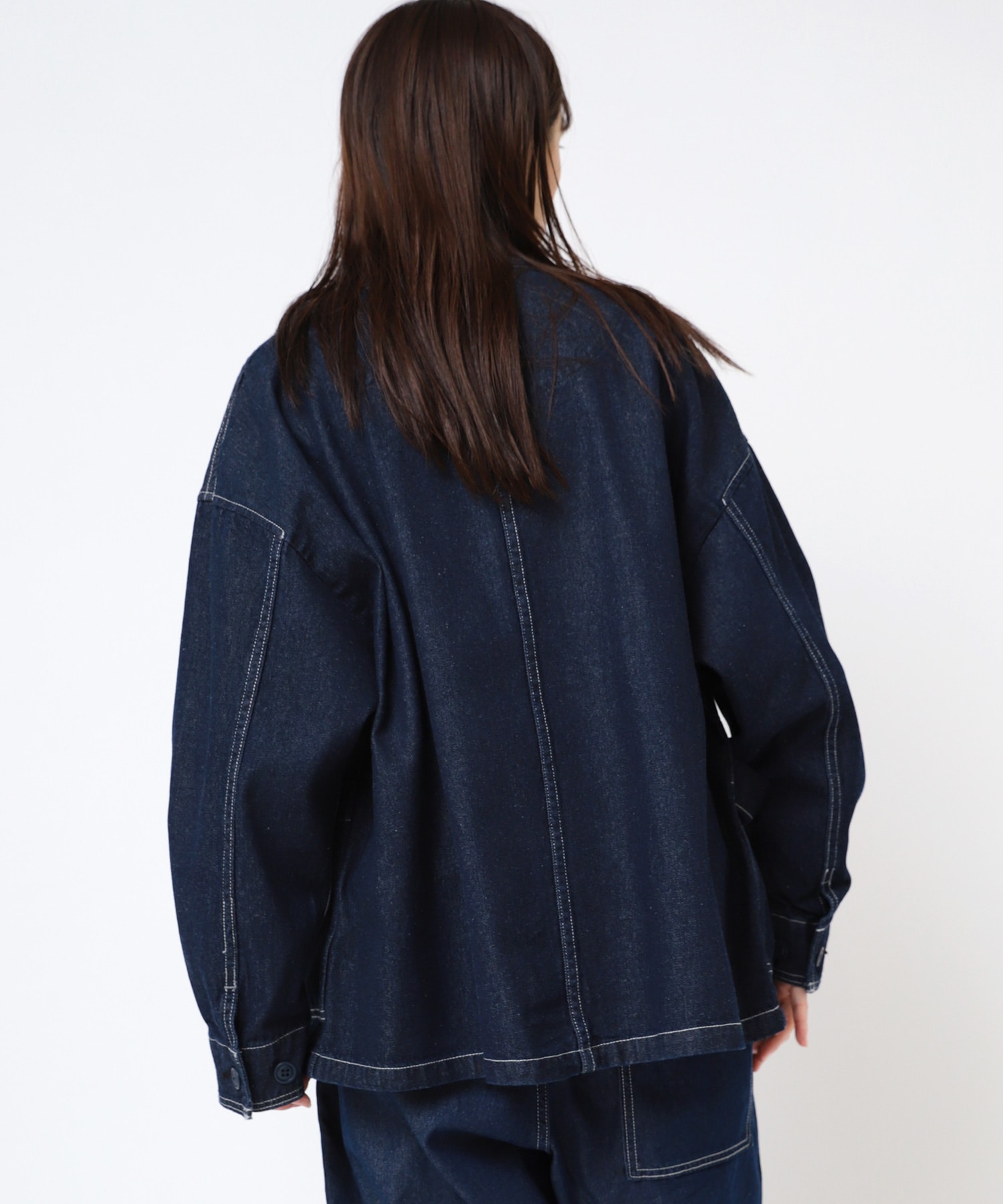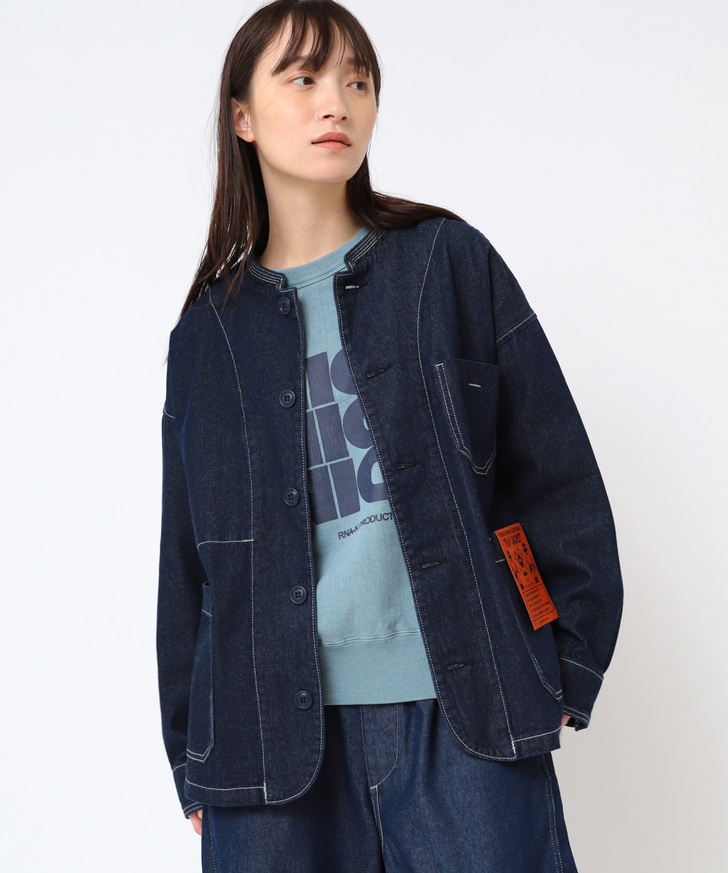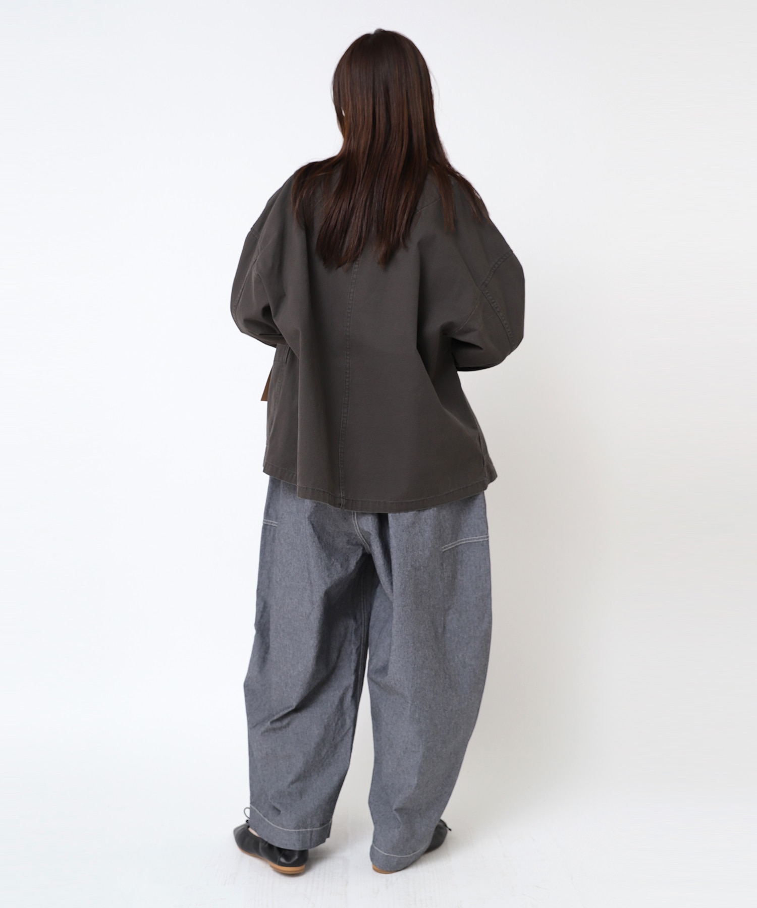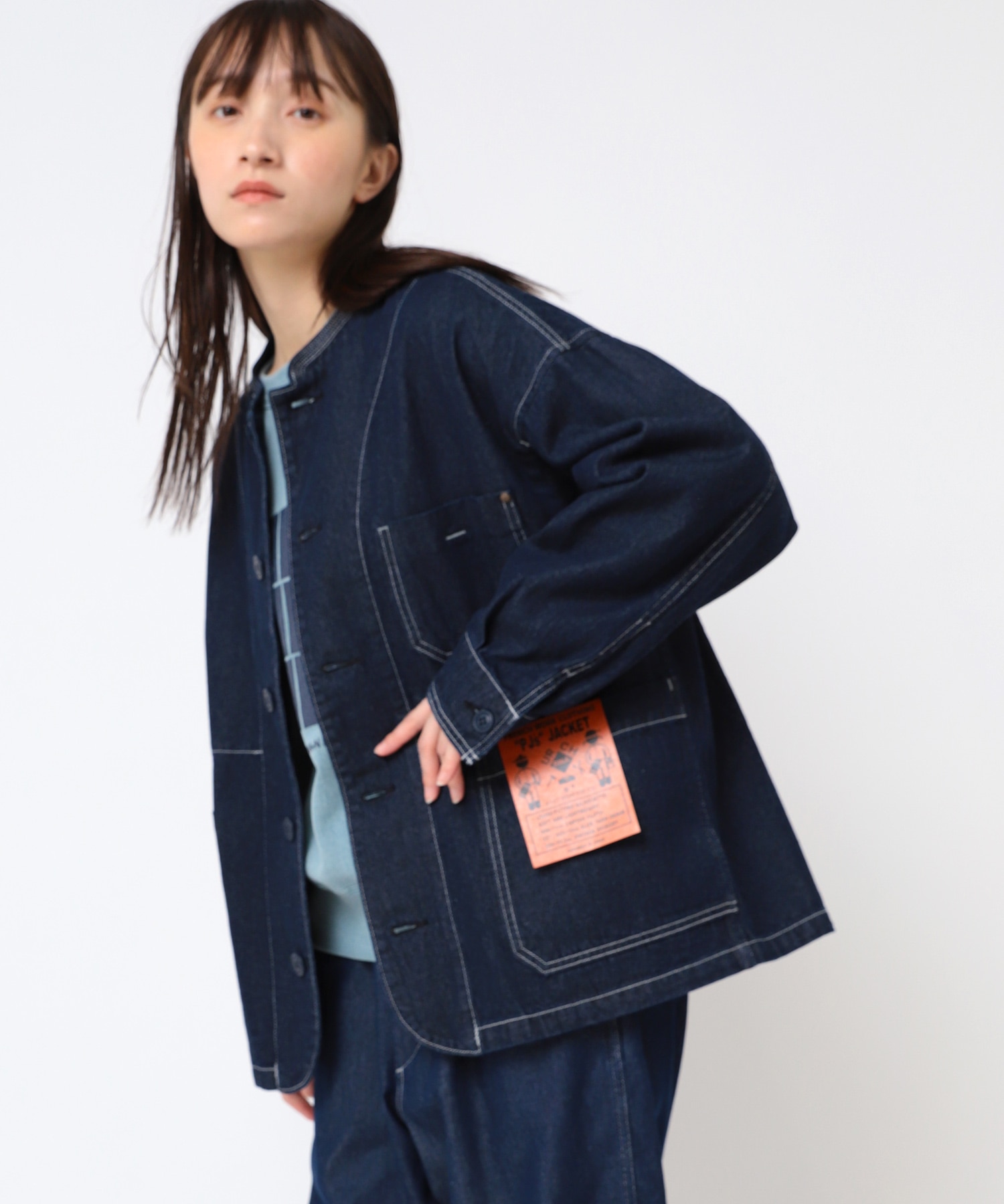 ヴィンテージワークテイストの小さな立ち衿と右胸の内ポケットがポイントです。
