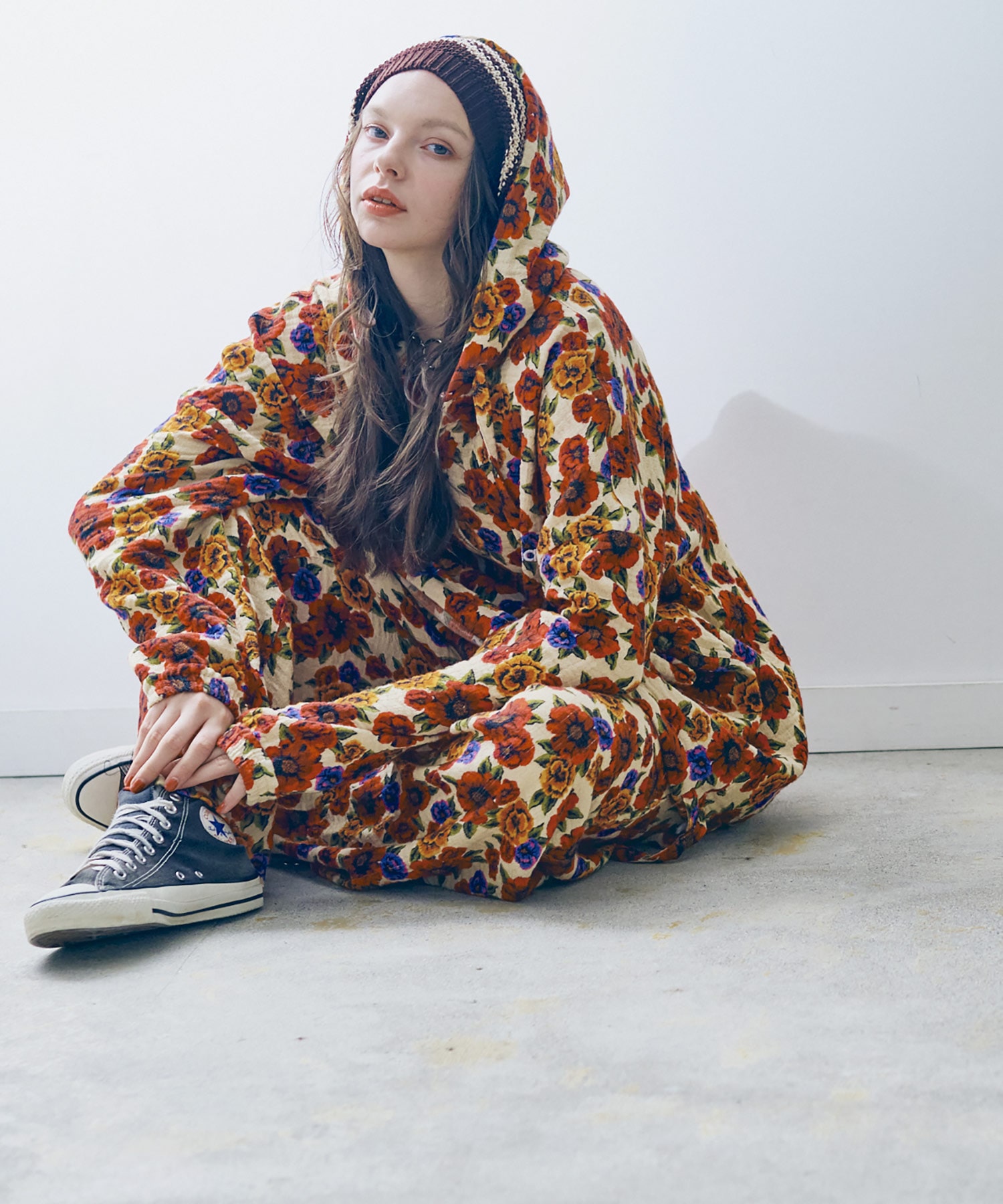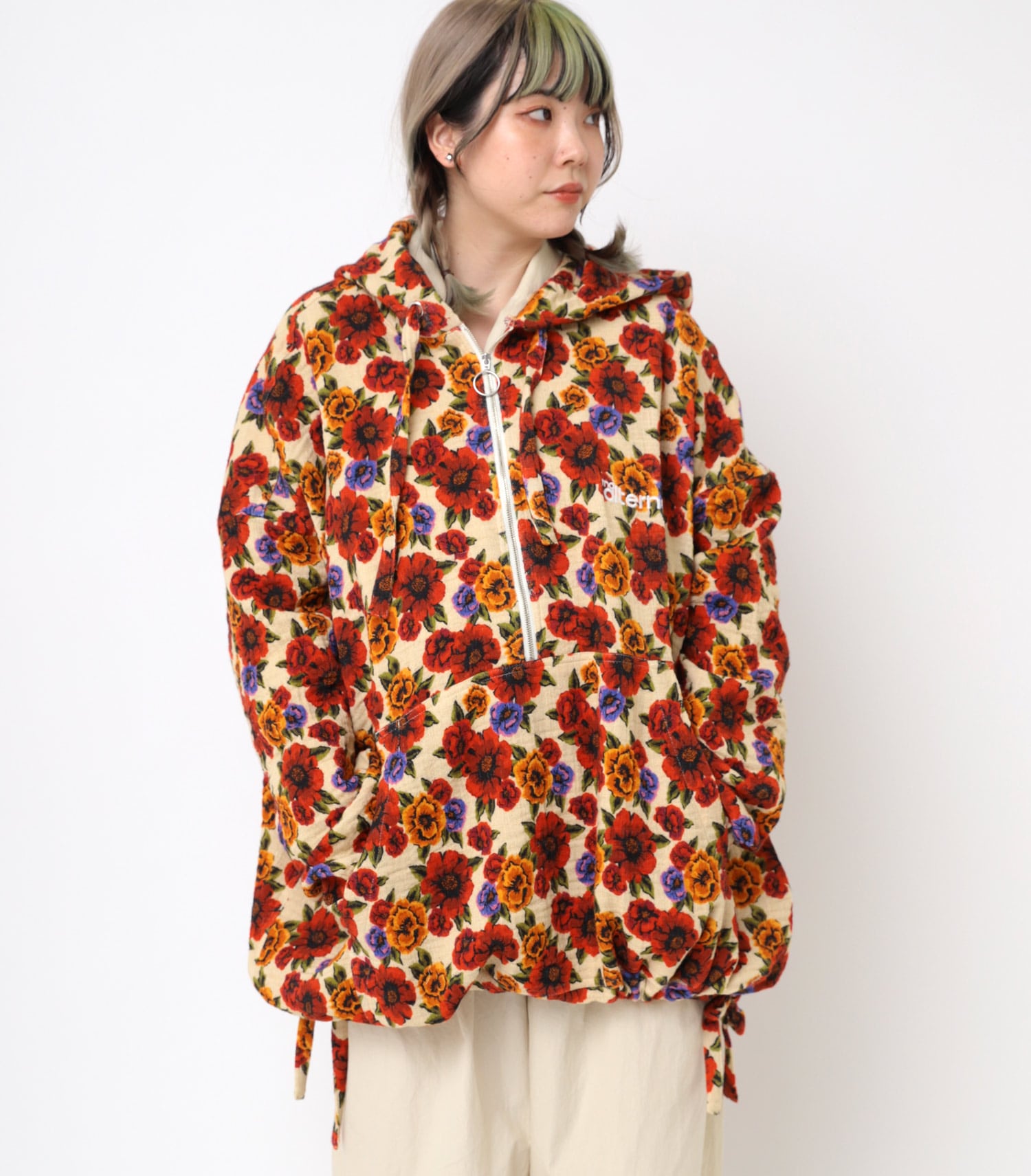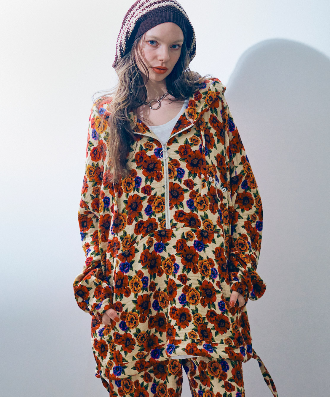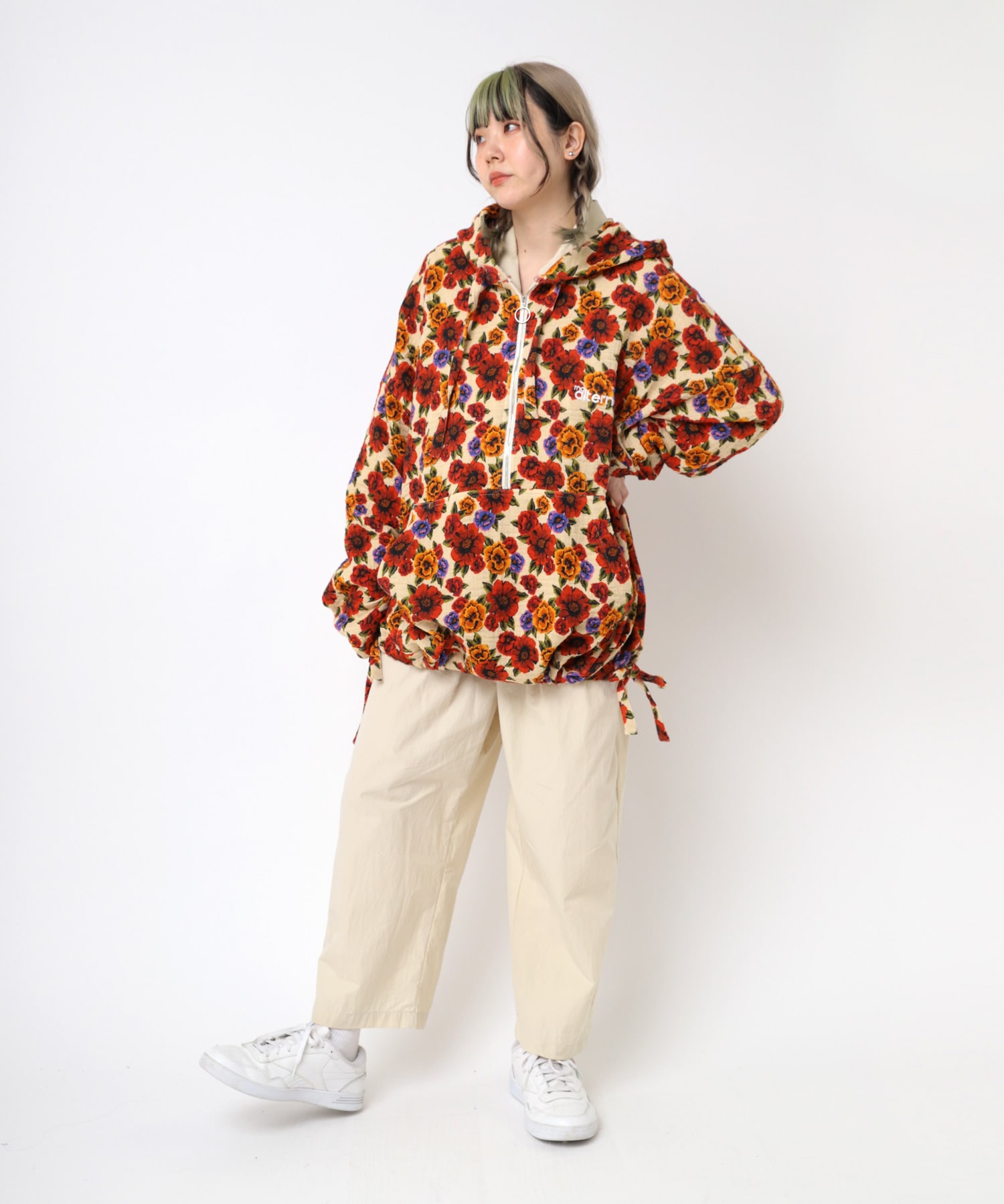 J2135 フラワー総柄ハーフZIPプルオーバー