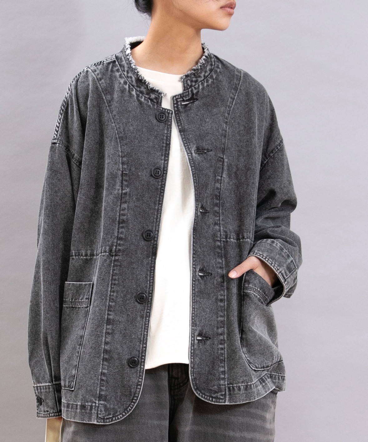 さらに、衿端の裁ち切り仕様が加工感を一層引き立てます。