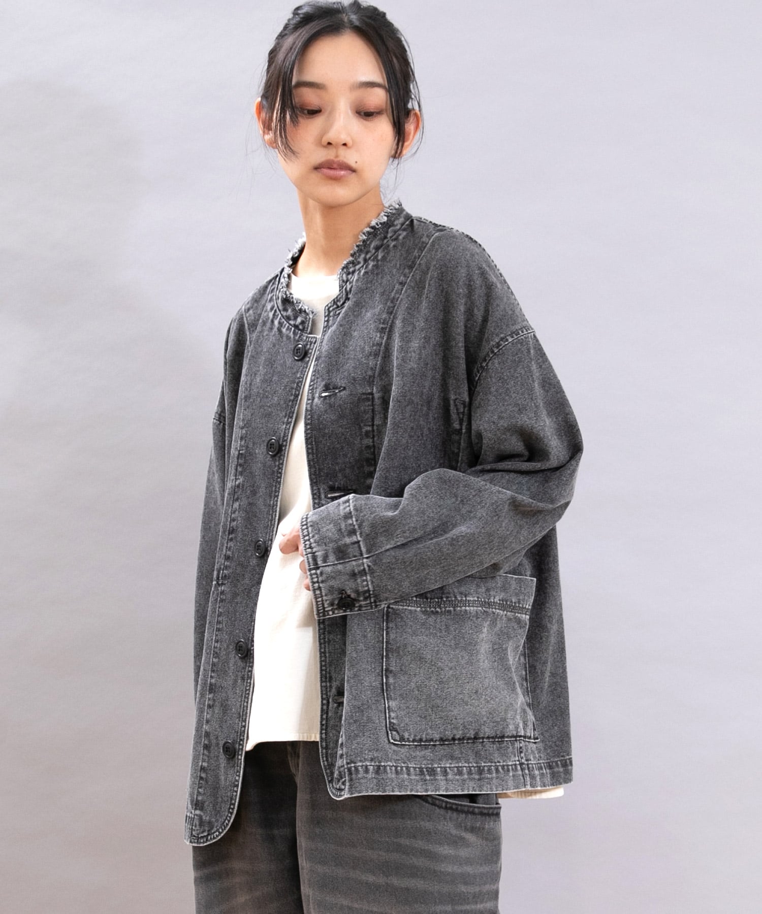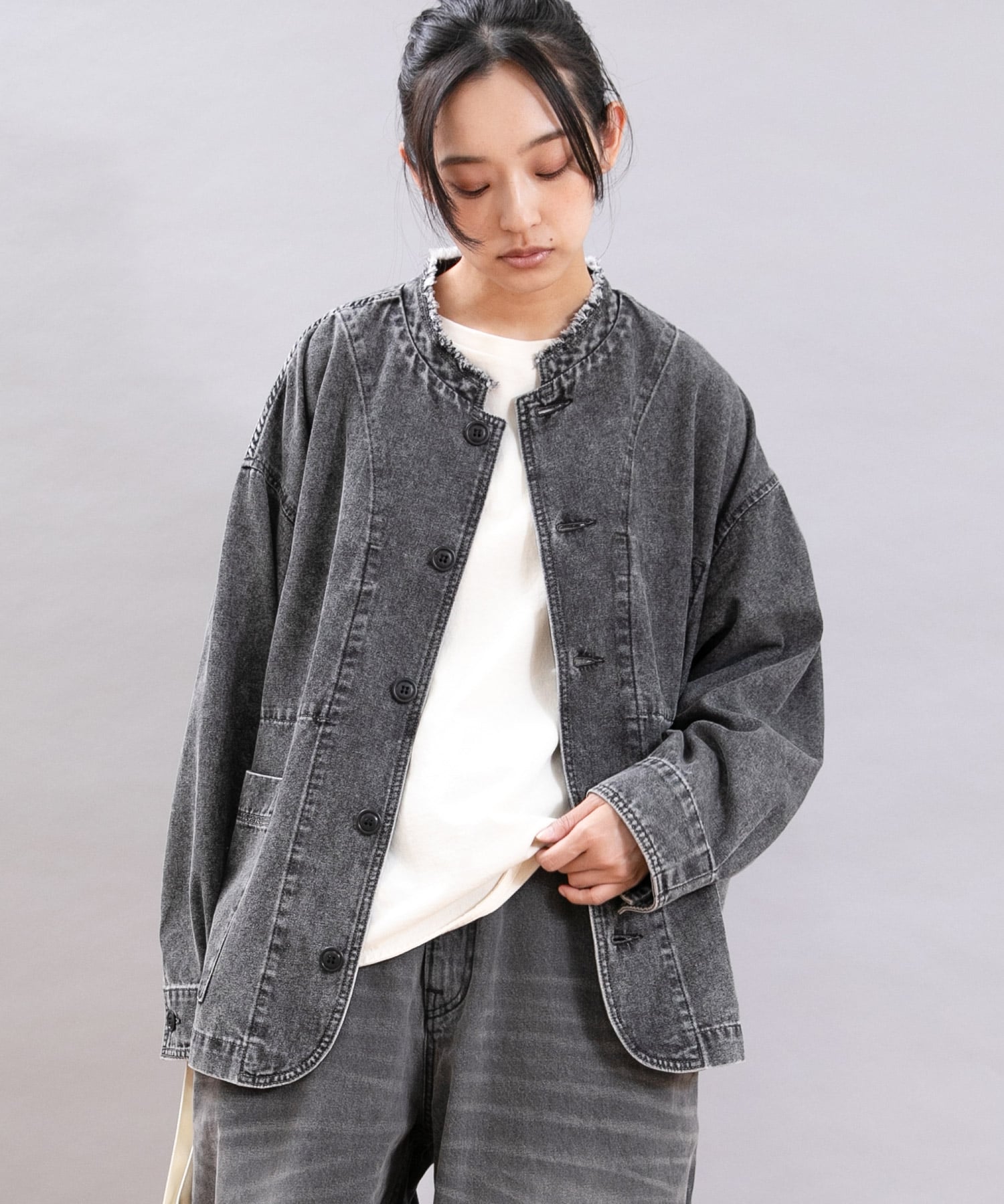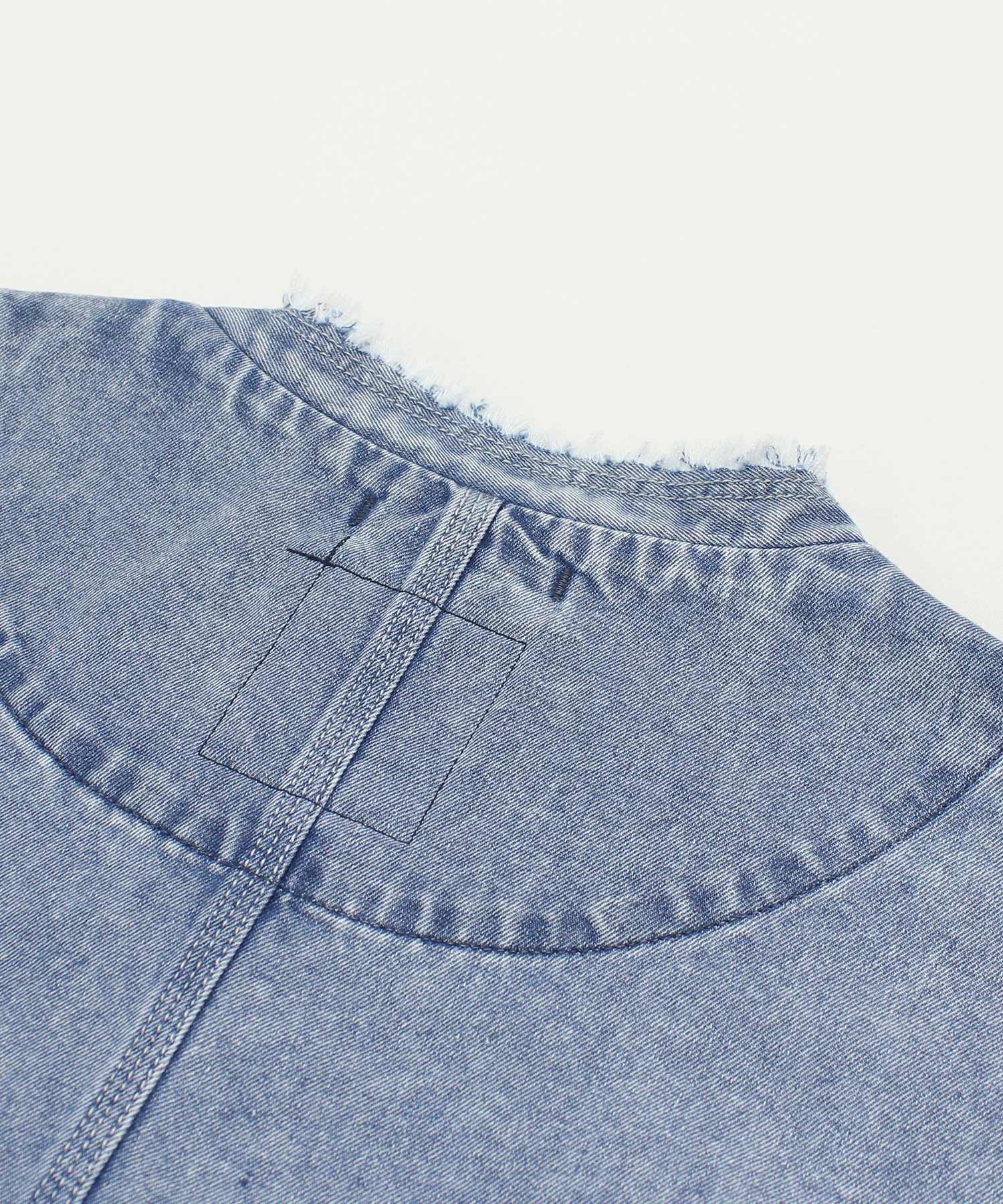 さらに、衿端の裁ち切り仕様が加工感を一層引き立てます。