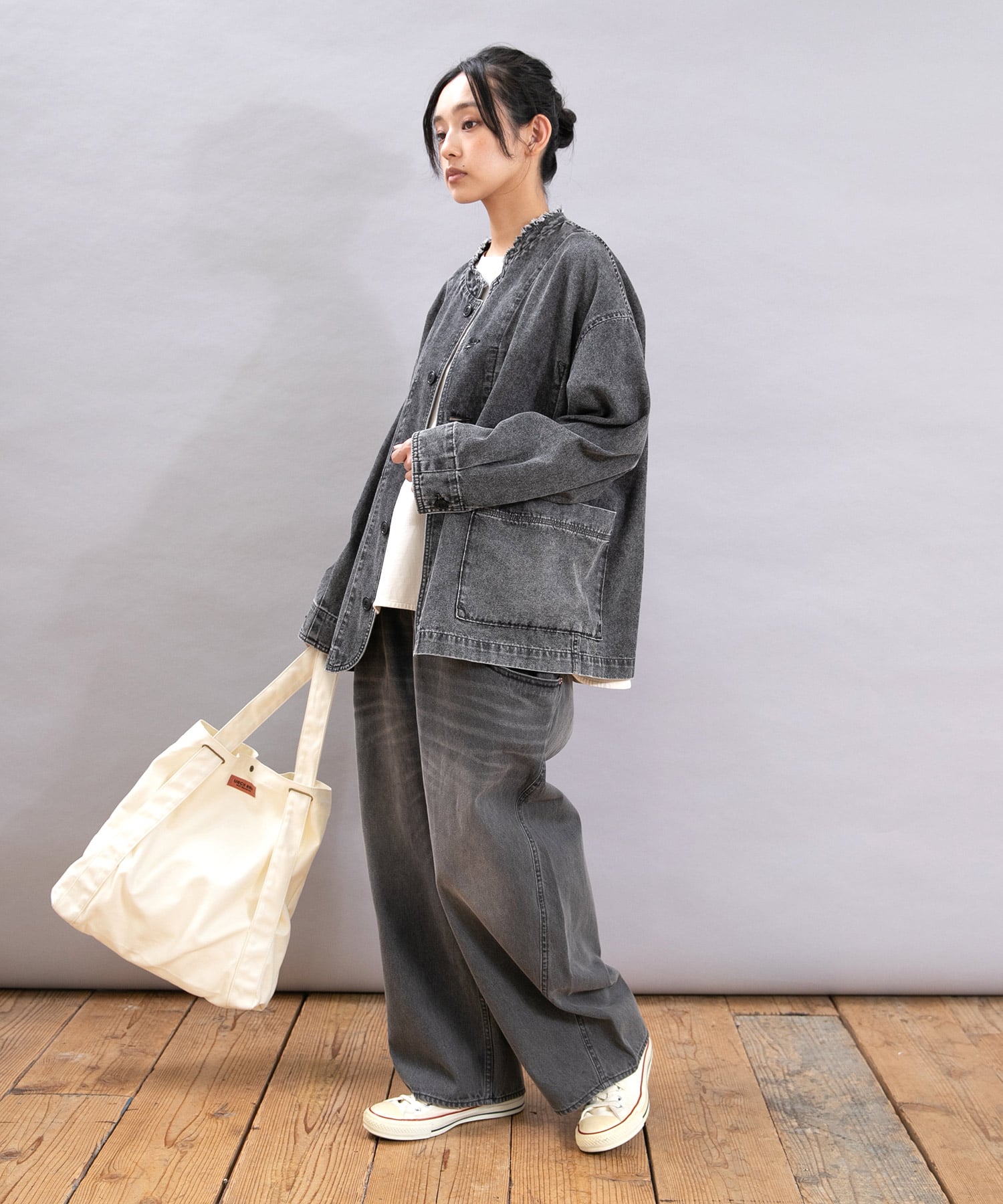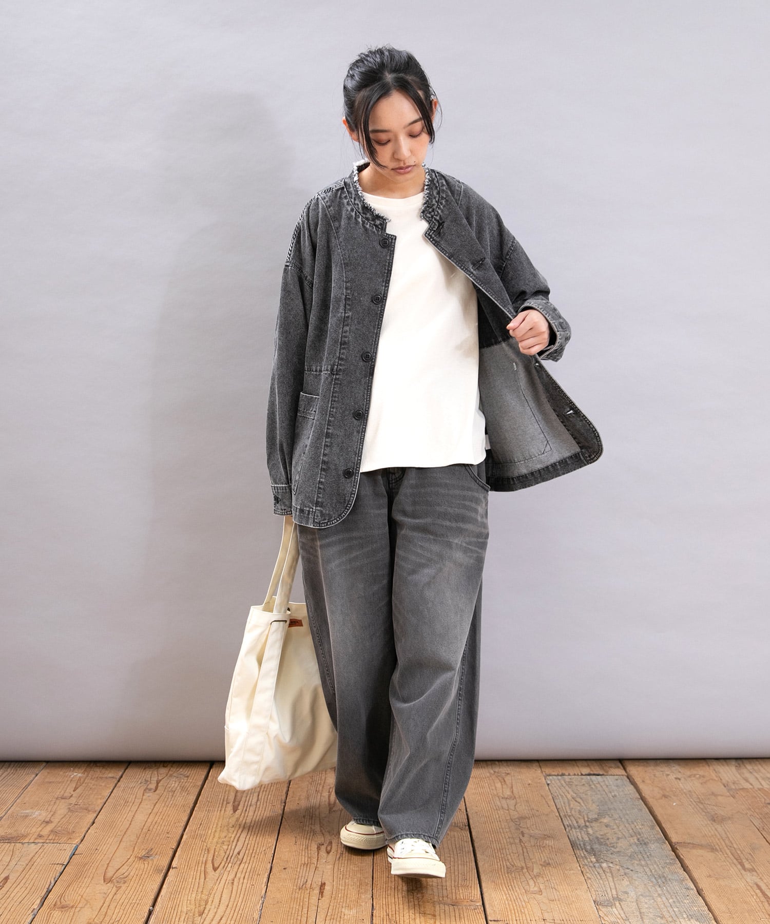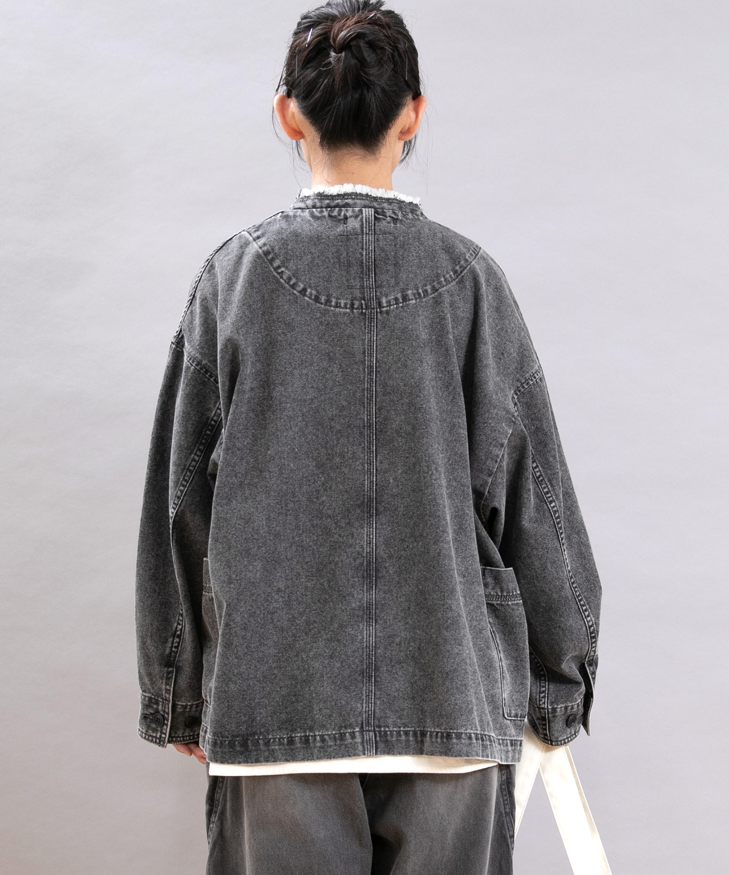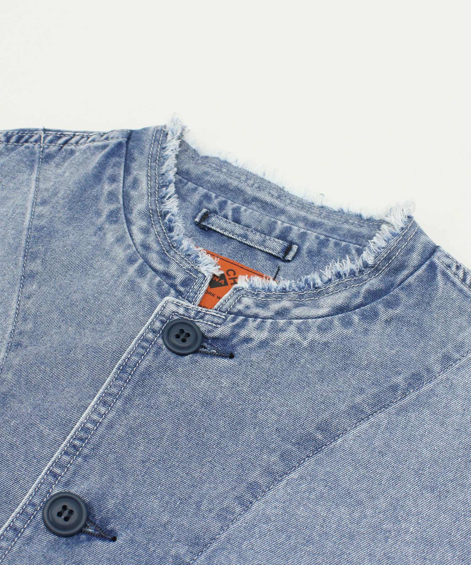さらに、衿端の裁ち切り仕様が加工感を一層引き立てます。
