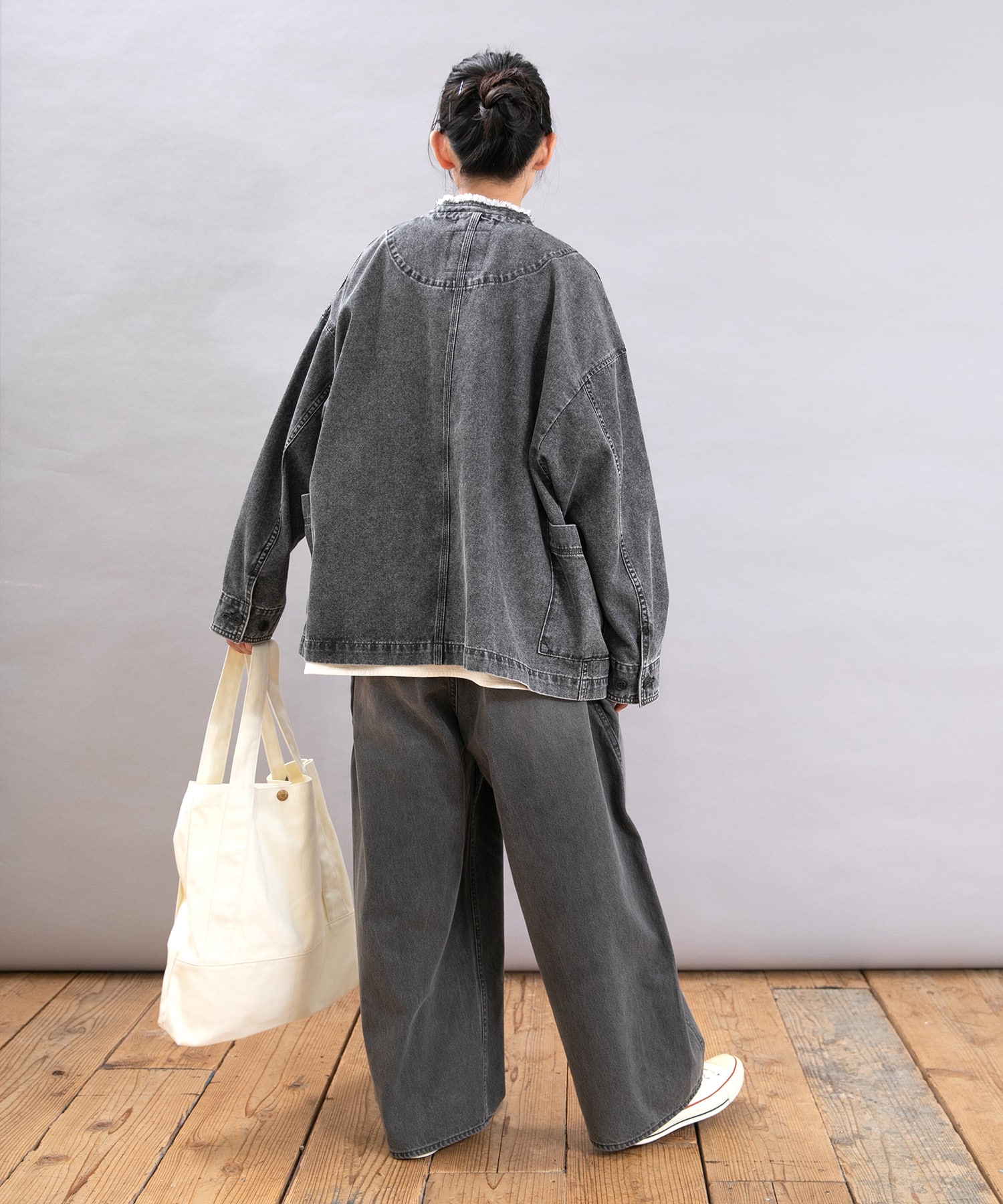 衿を抜いて着用すると、後身頃に丸みのあるコクーンシルエットが生まれ、こなれたおしゃれ感を演出します。