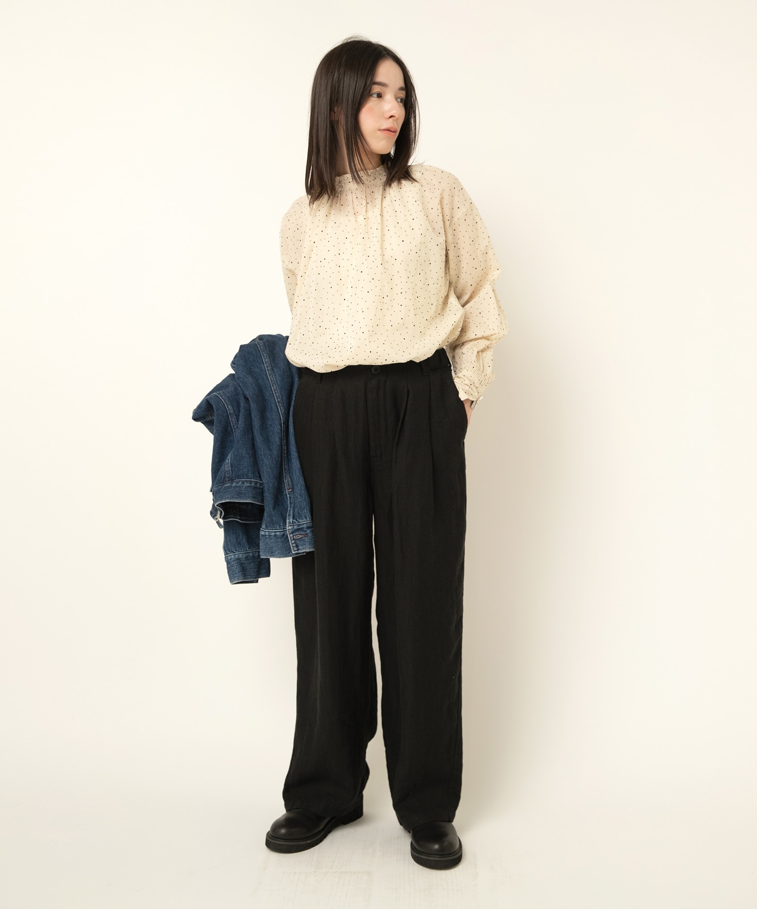程良いゆとりで、アウターとしてはもちろん、コートやジャケットのインナーとしても着られるようなサイズ感です。