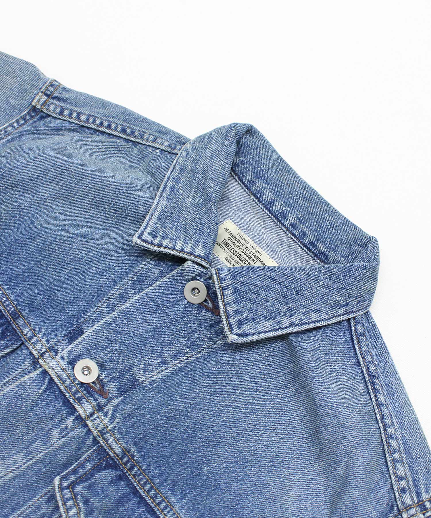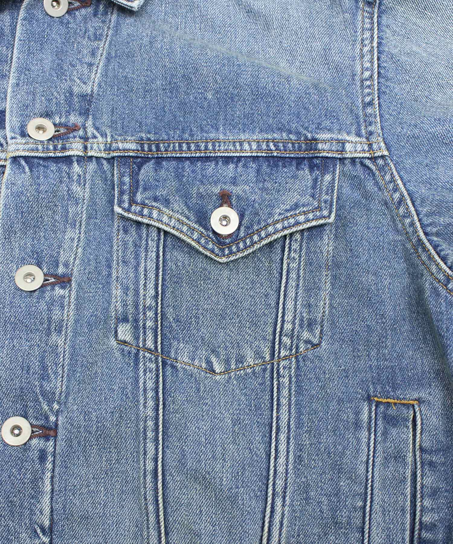 こちらのデニムジャケットは国産の甘撚りのデニムを使用しています。