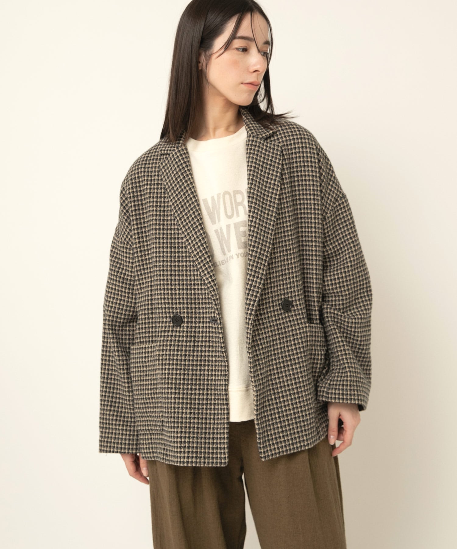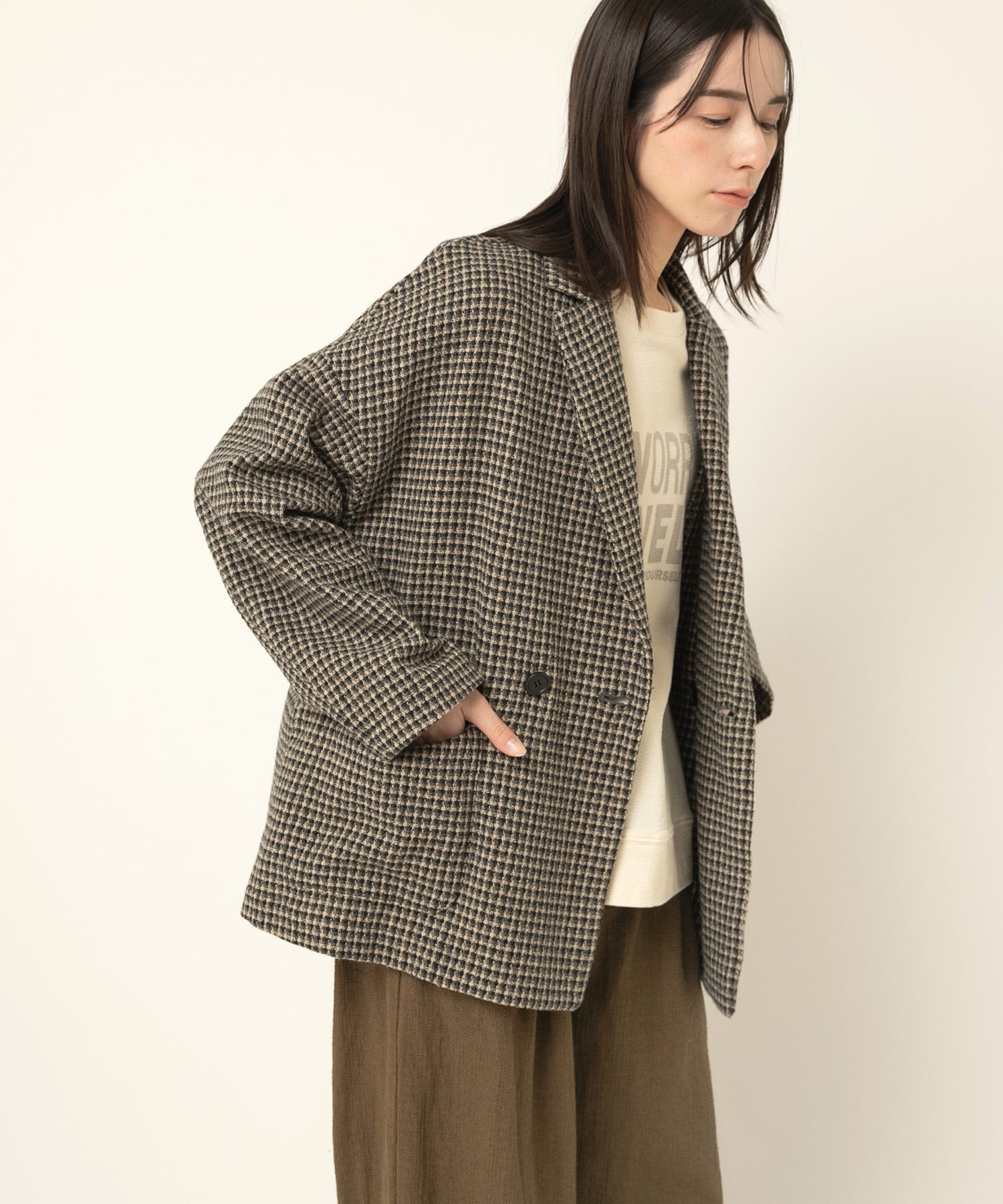 J2148 ツイードチェックダブルジャケット