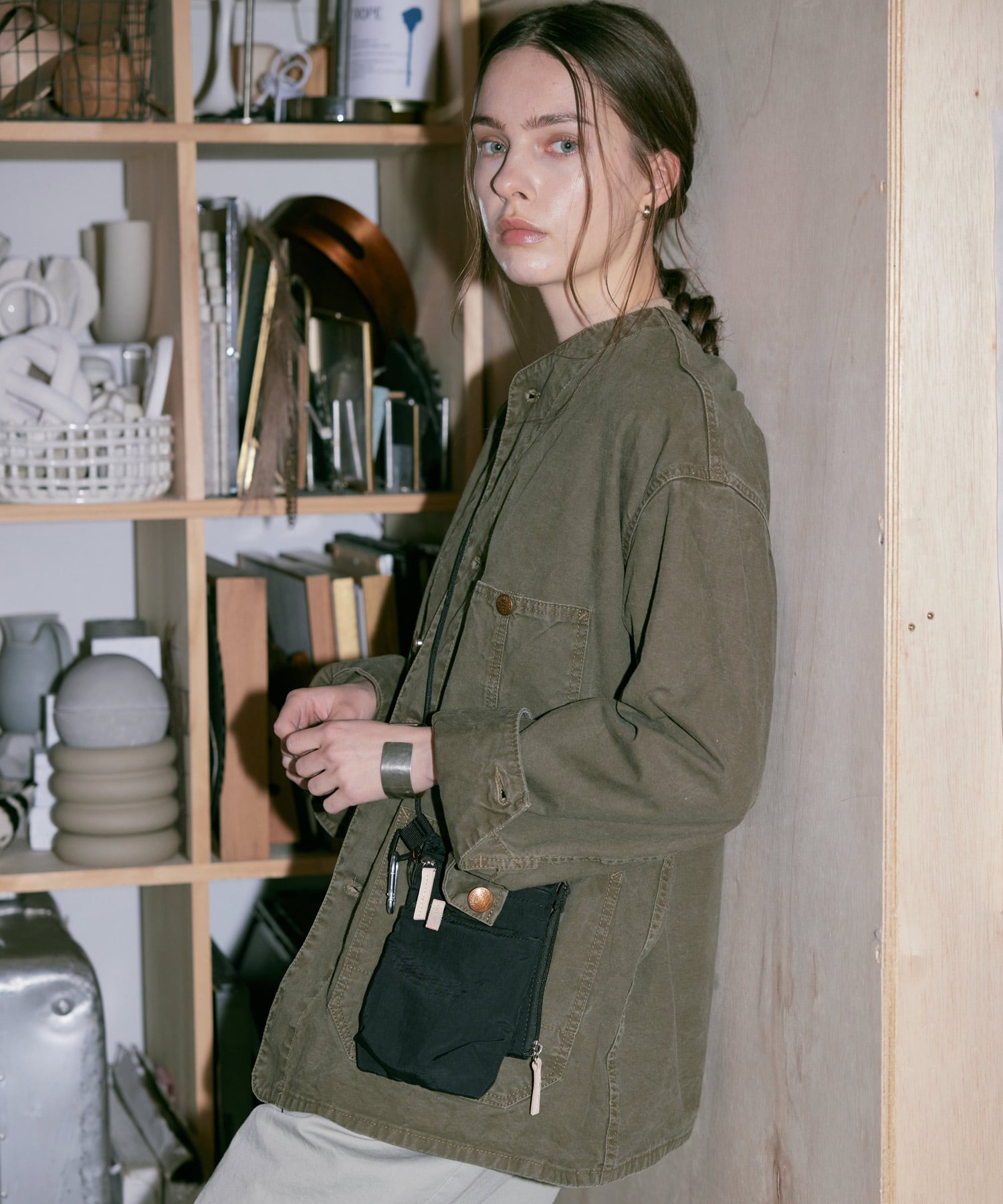 お尻が隠れる長め丈で、中に着込めるようなゆとりのあるサイズ感です。