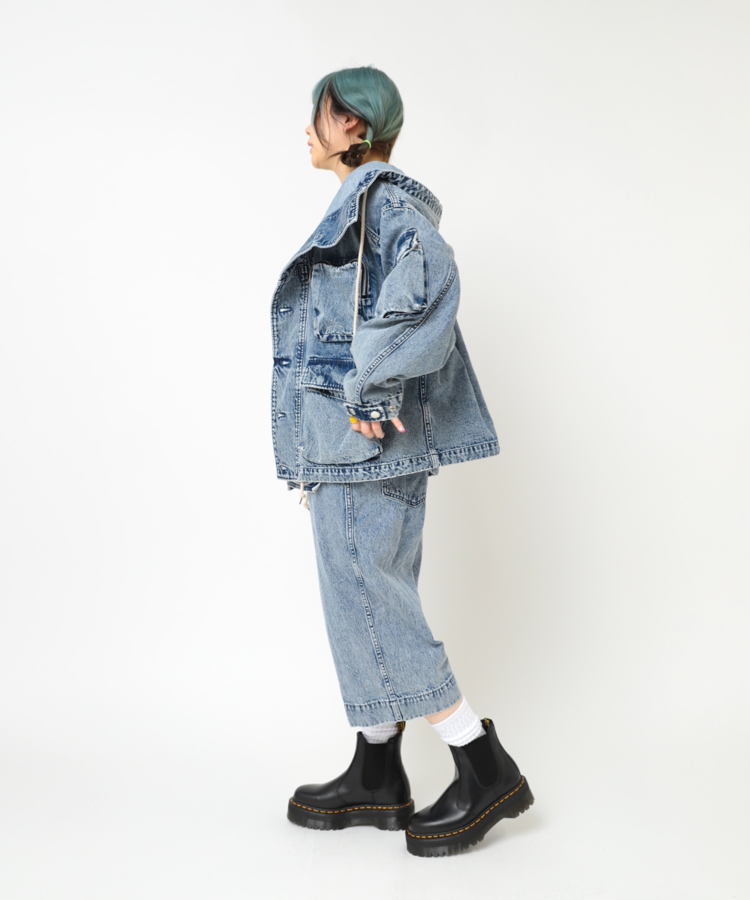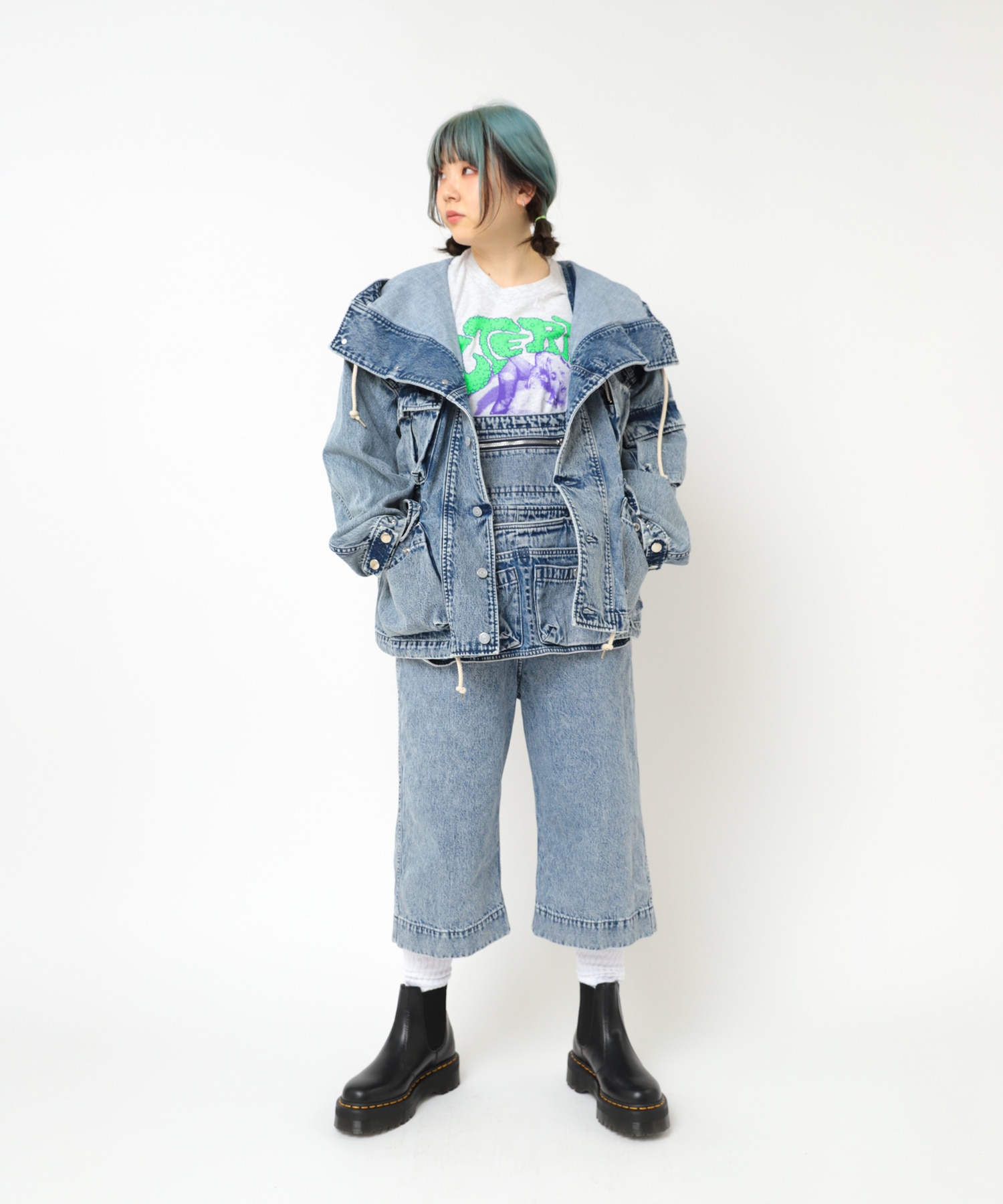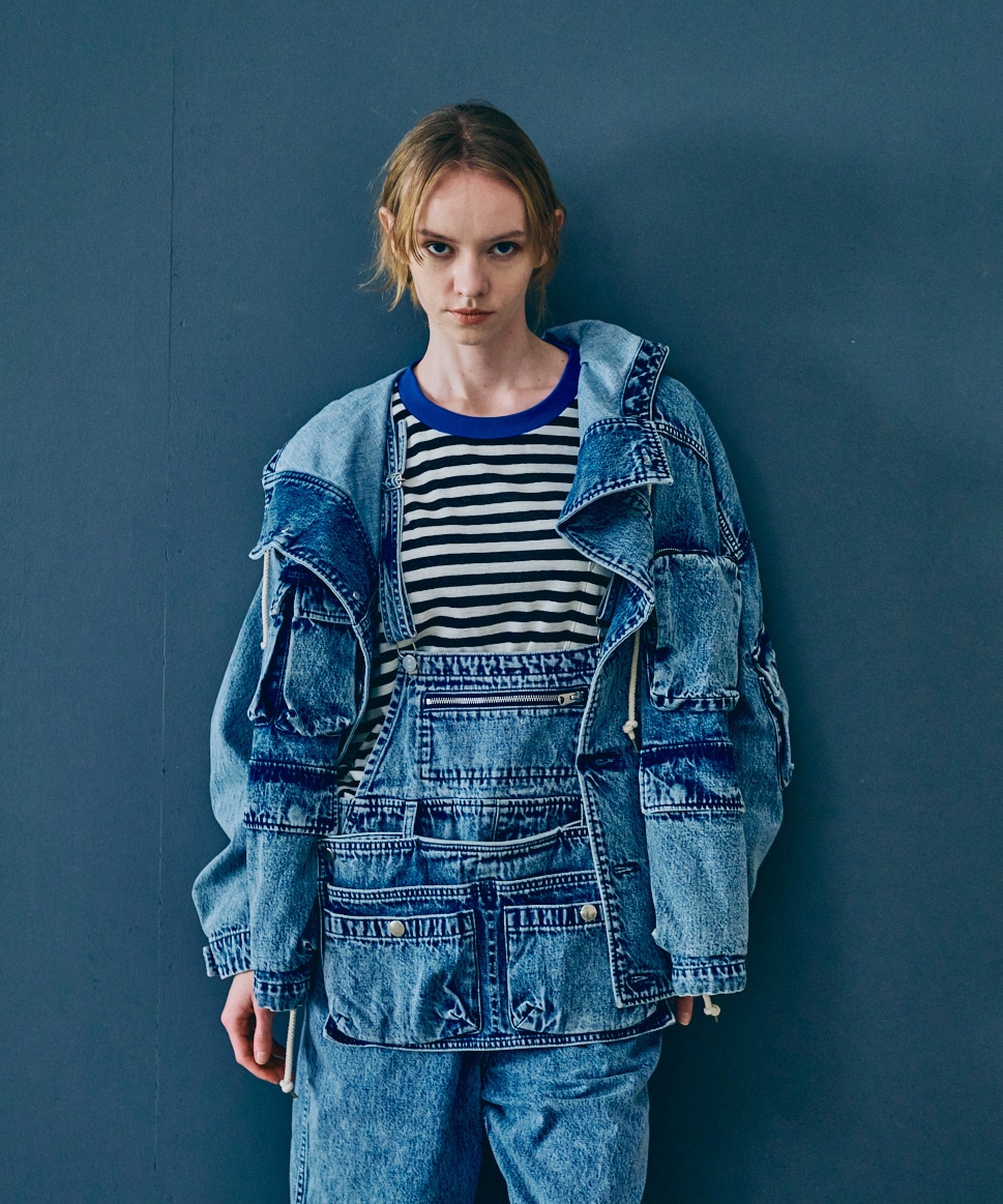 カットレングスオーバーオール(O0746)と加工感を合わせているので、合わせてスタイリングするのもおすすめです。