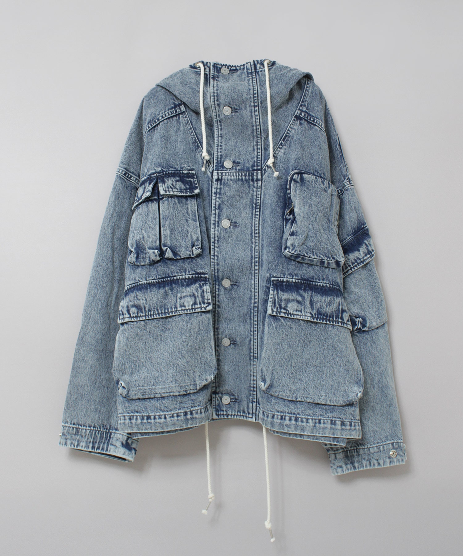 ポケットがたくさんデザインされたフード付きジャケット