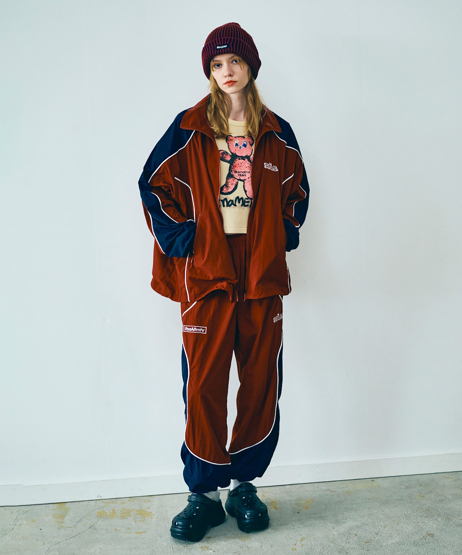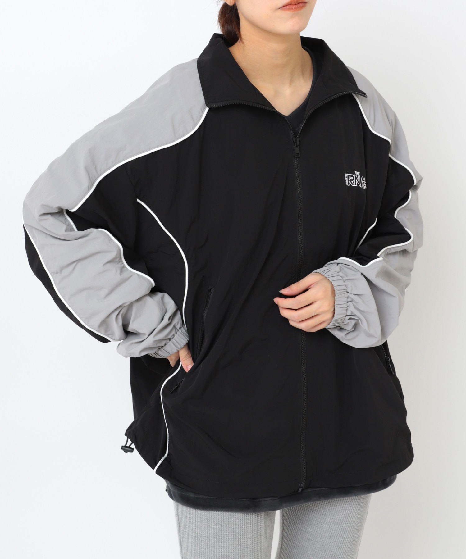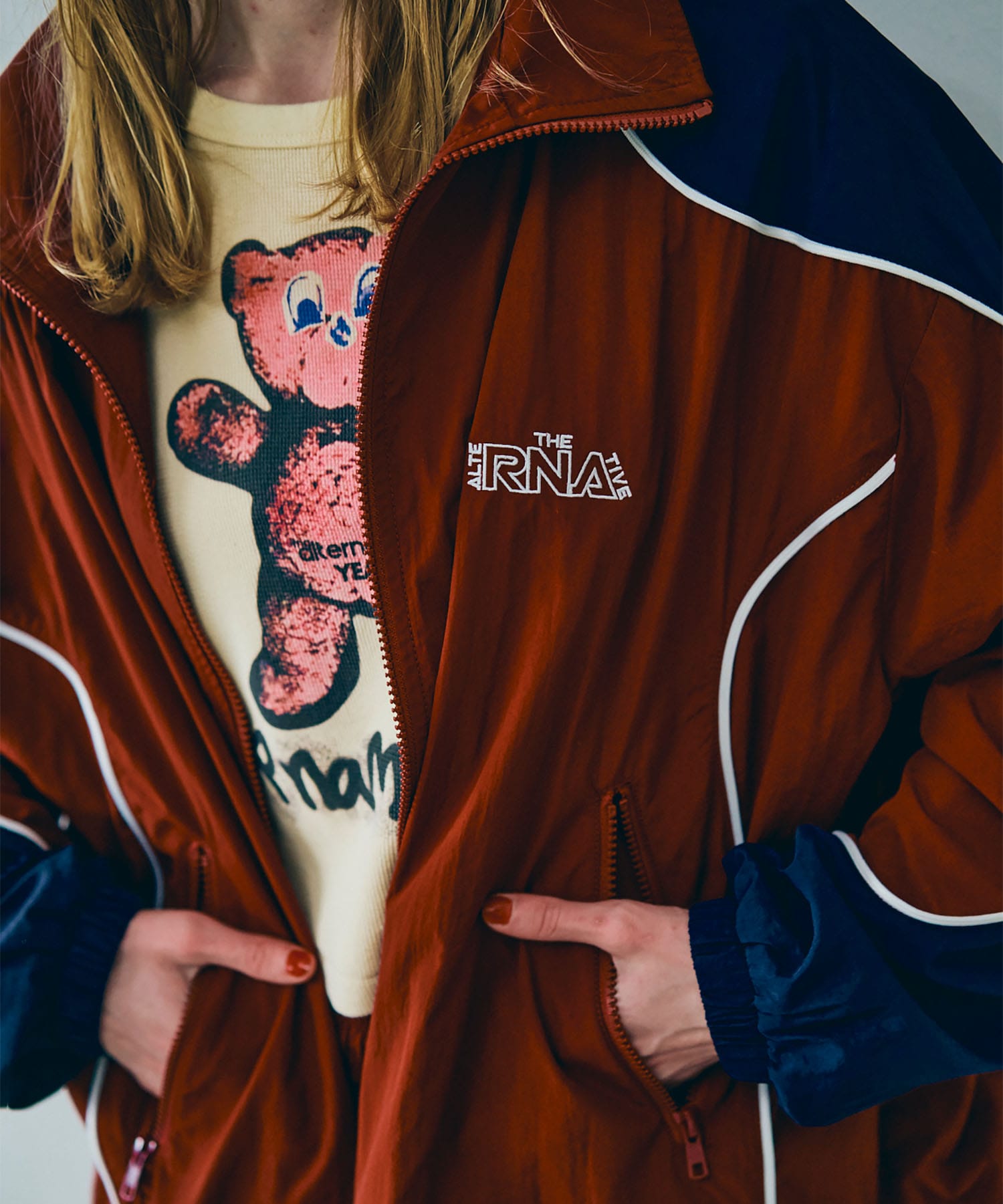 左胸と後身頃の切り替えの部分に、パイピングコードと同じ色でロゴ刺繍が入っています。