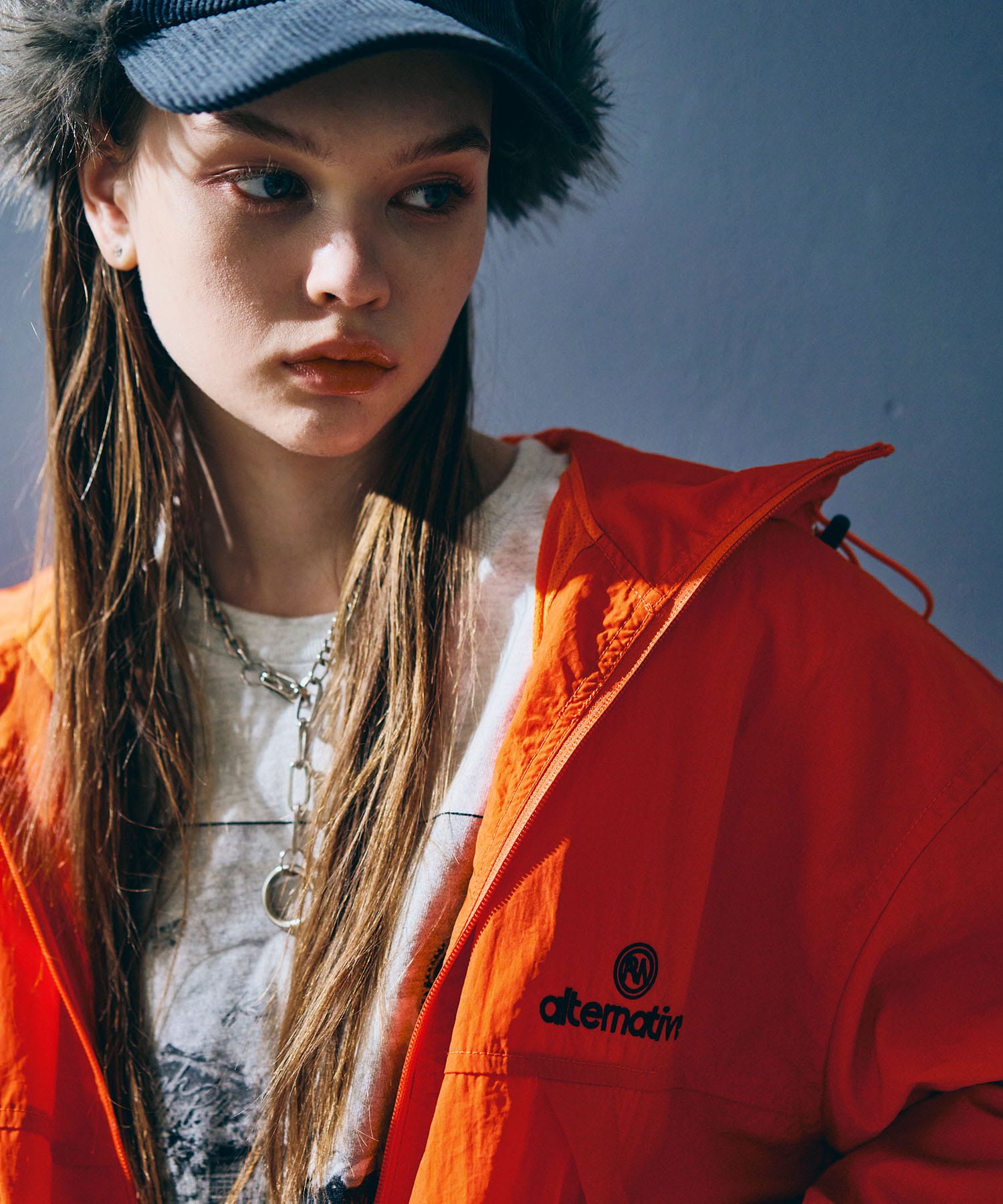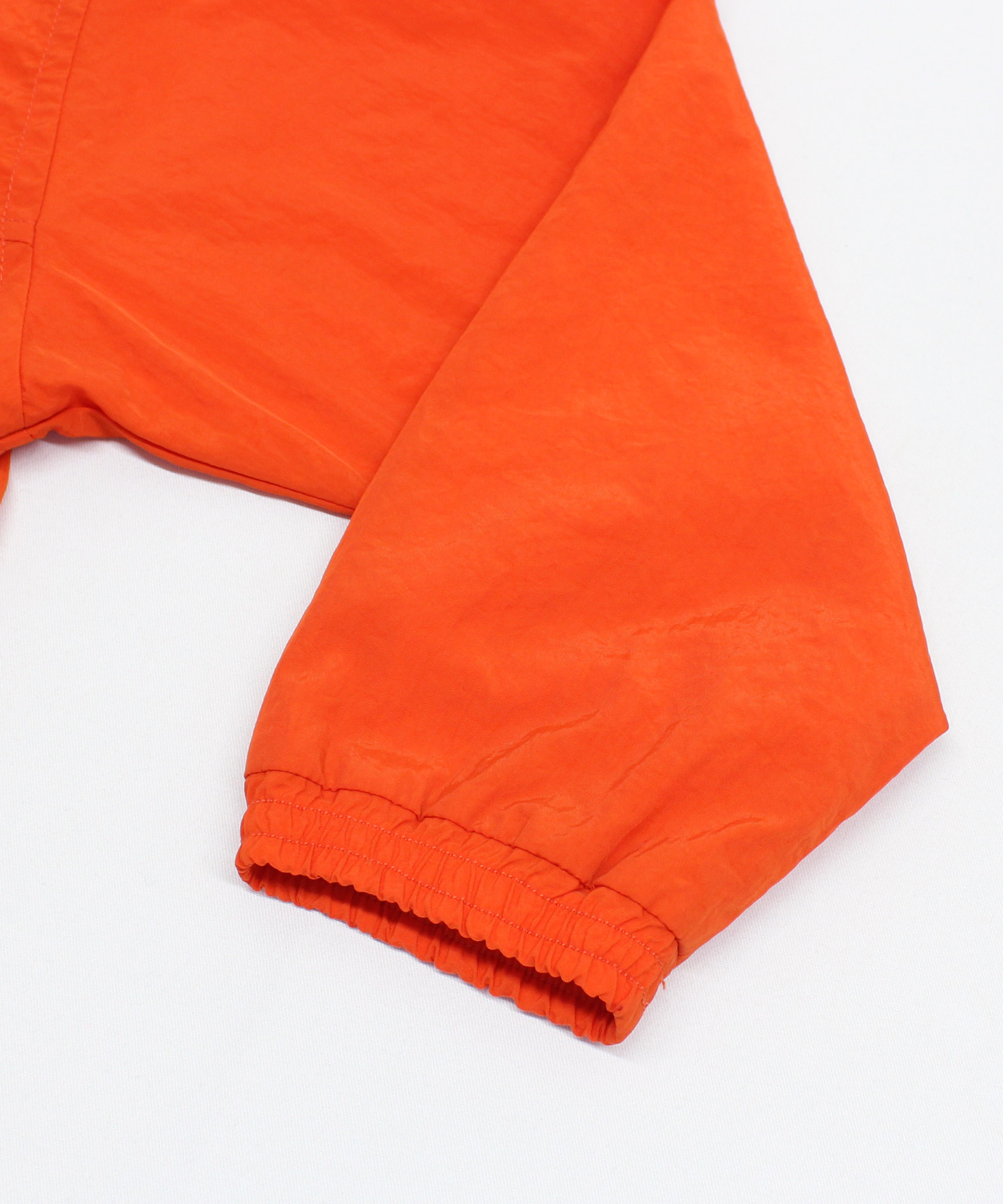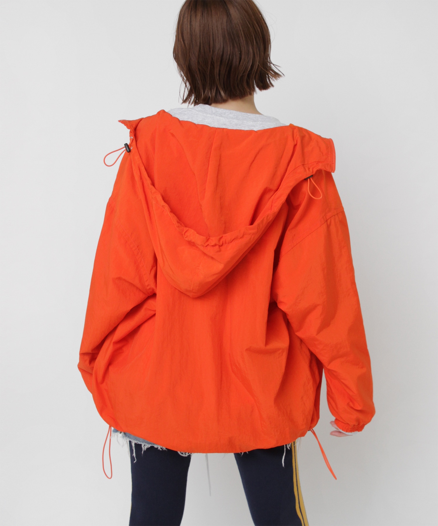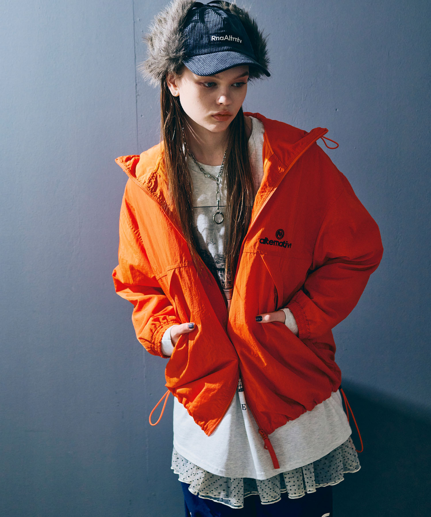 おすすめはビビットなオレンジカラーで、ライン入りボトムやスウェットパンツなどを合わせて、旬なムードを取り入れたストリートスタイルを楽しんでみてください。
