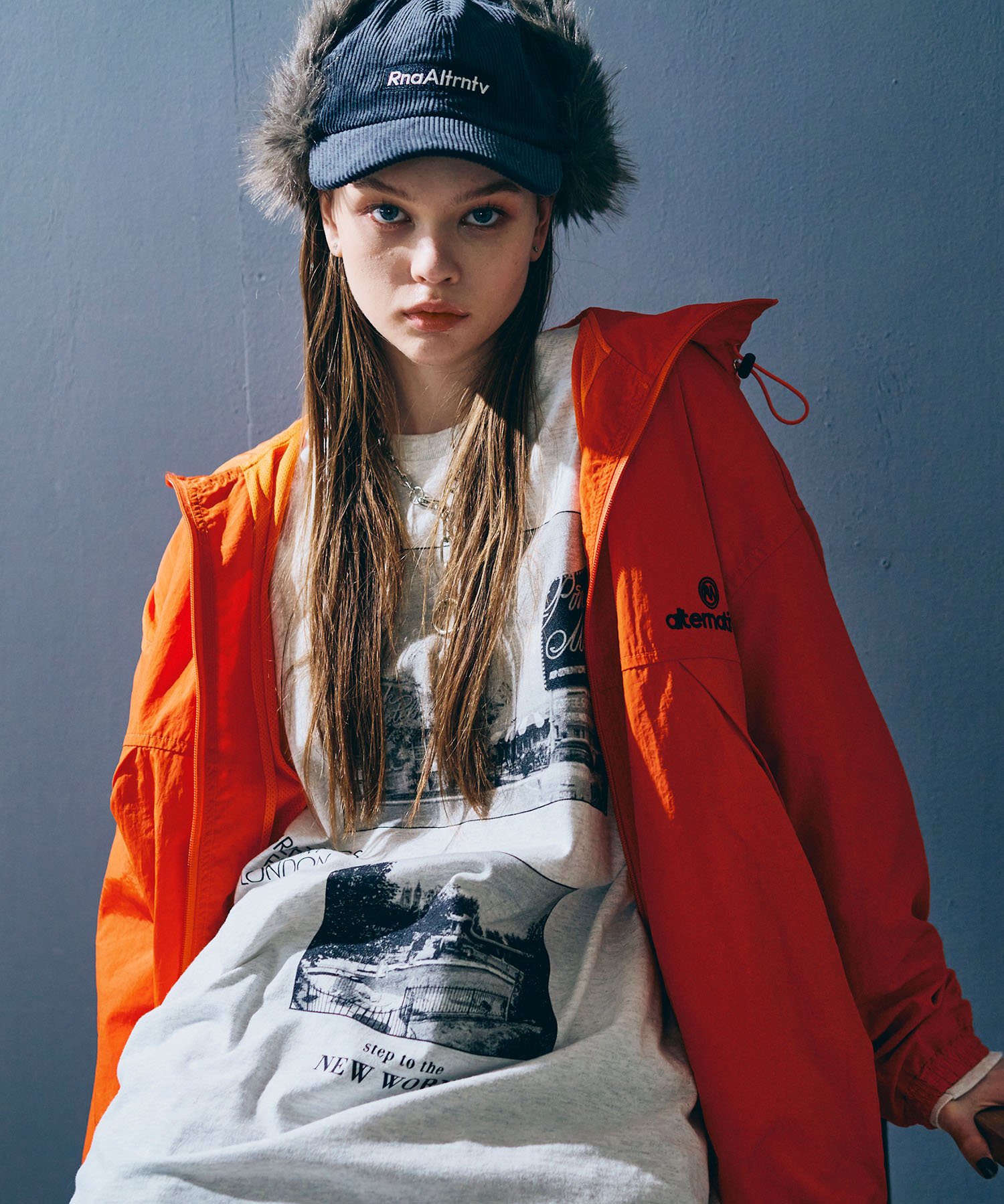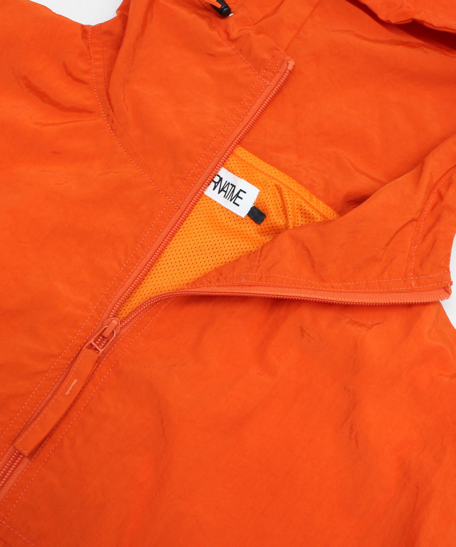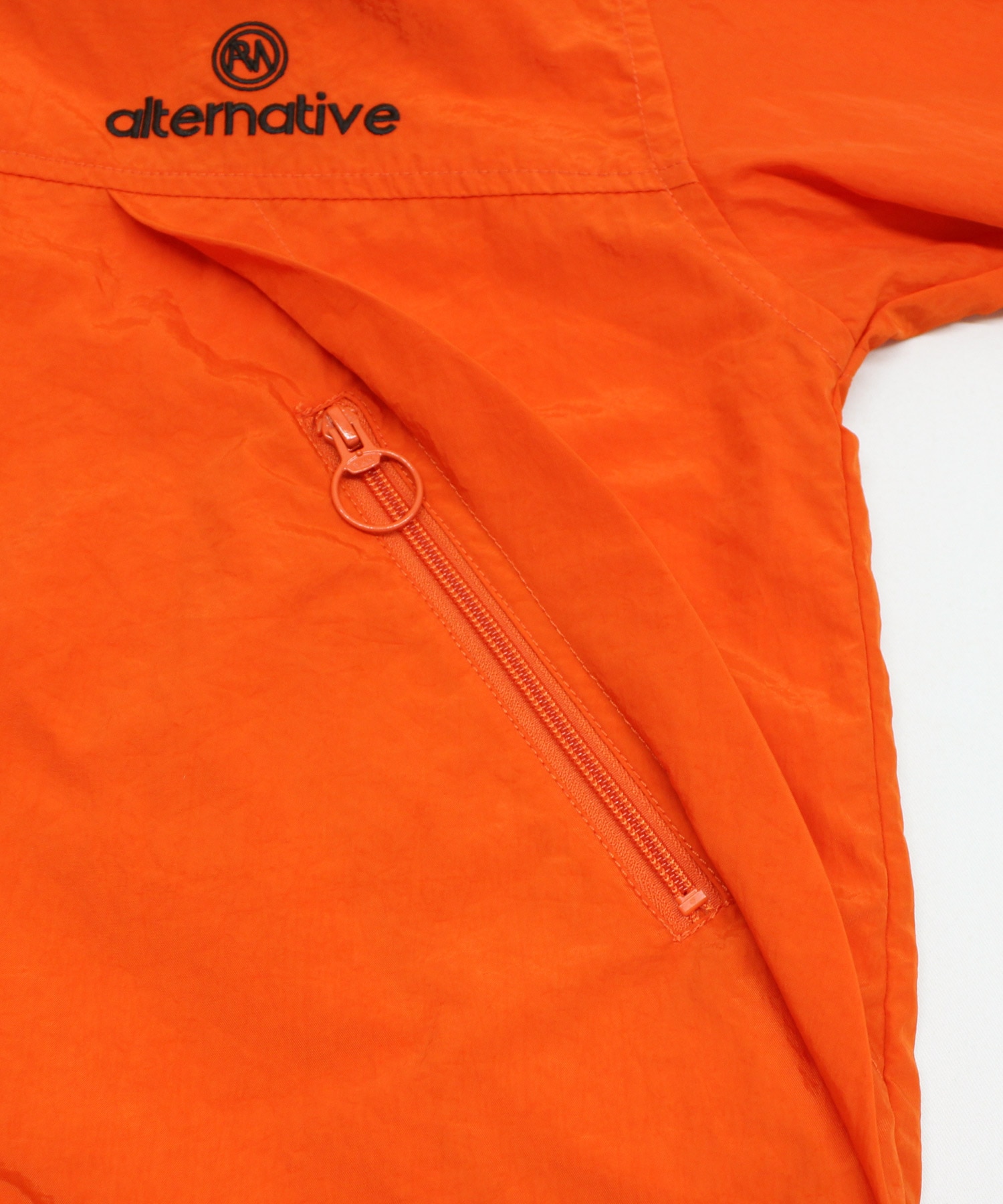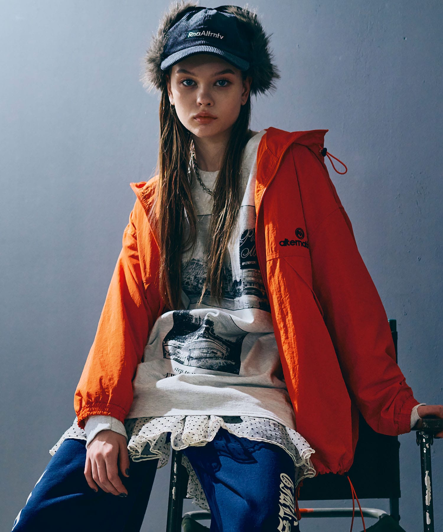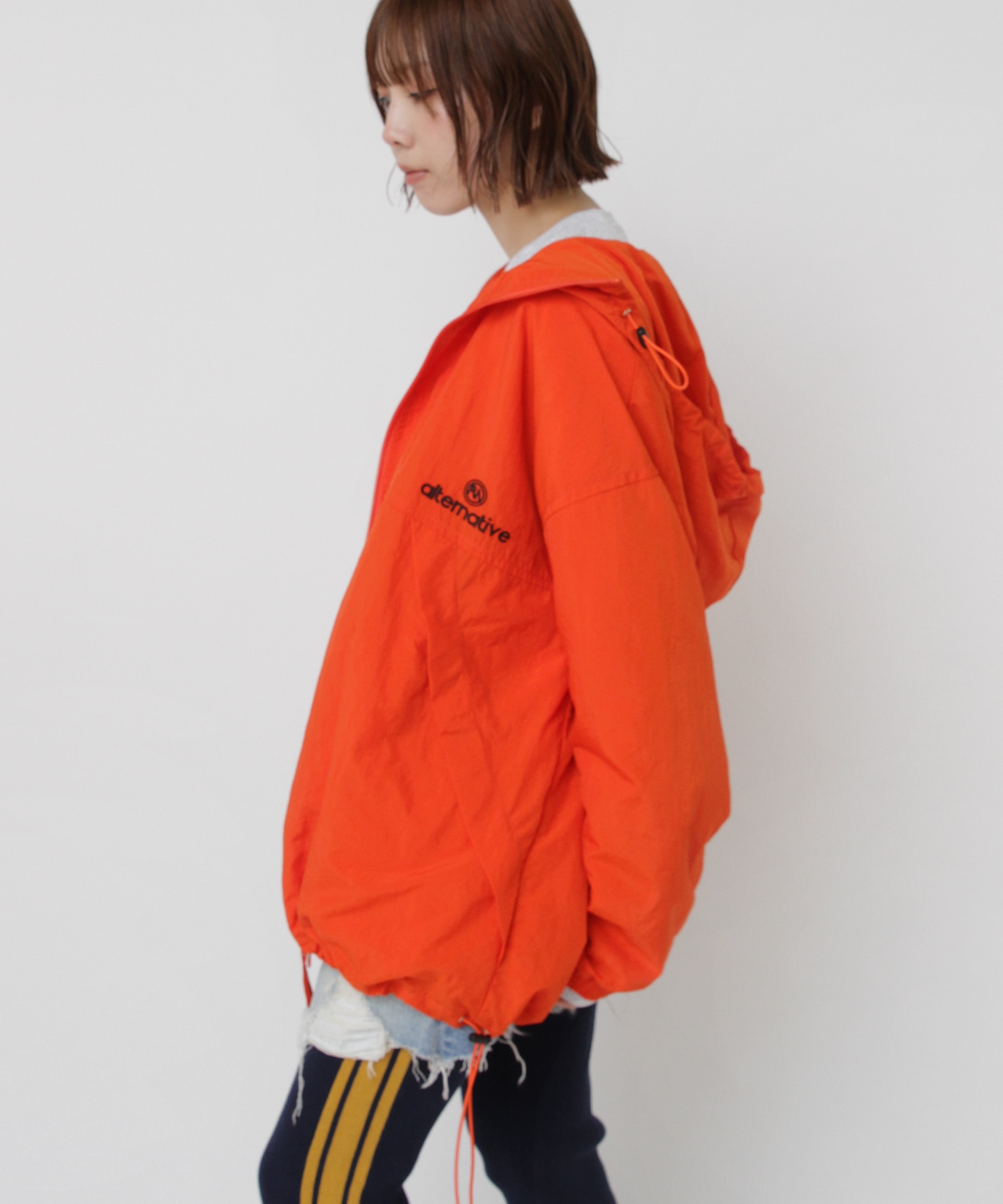 おすすめはビビットなオレンジカラーで、ライン入りボトムやスウェットパンツなどを合わせて、旬なムードを取り入れたストリートスタイルを楽しんでみてください。