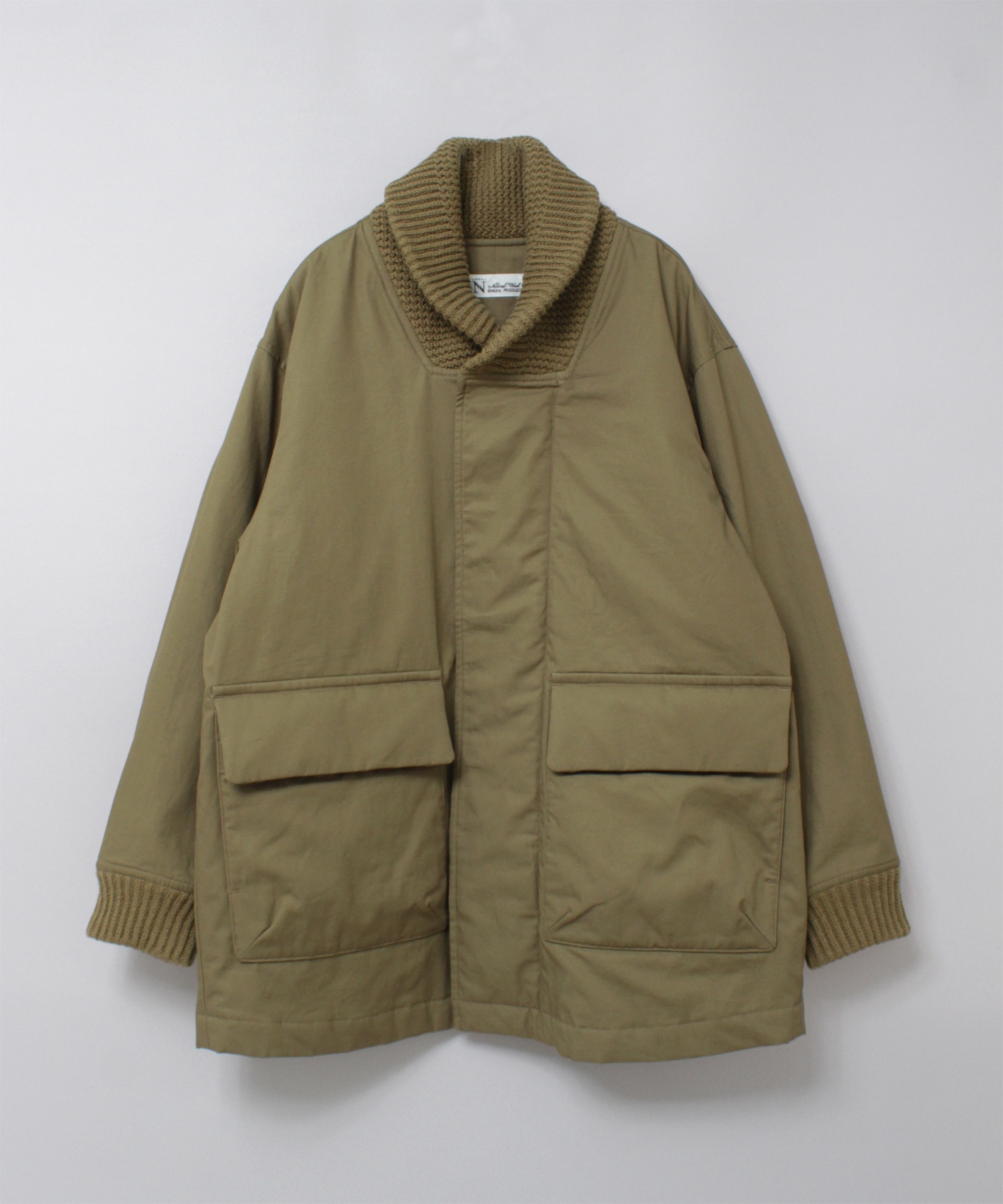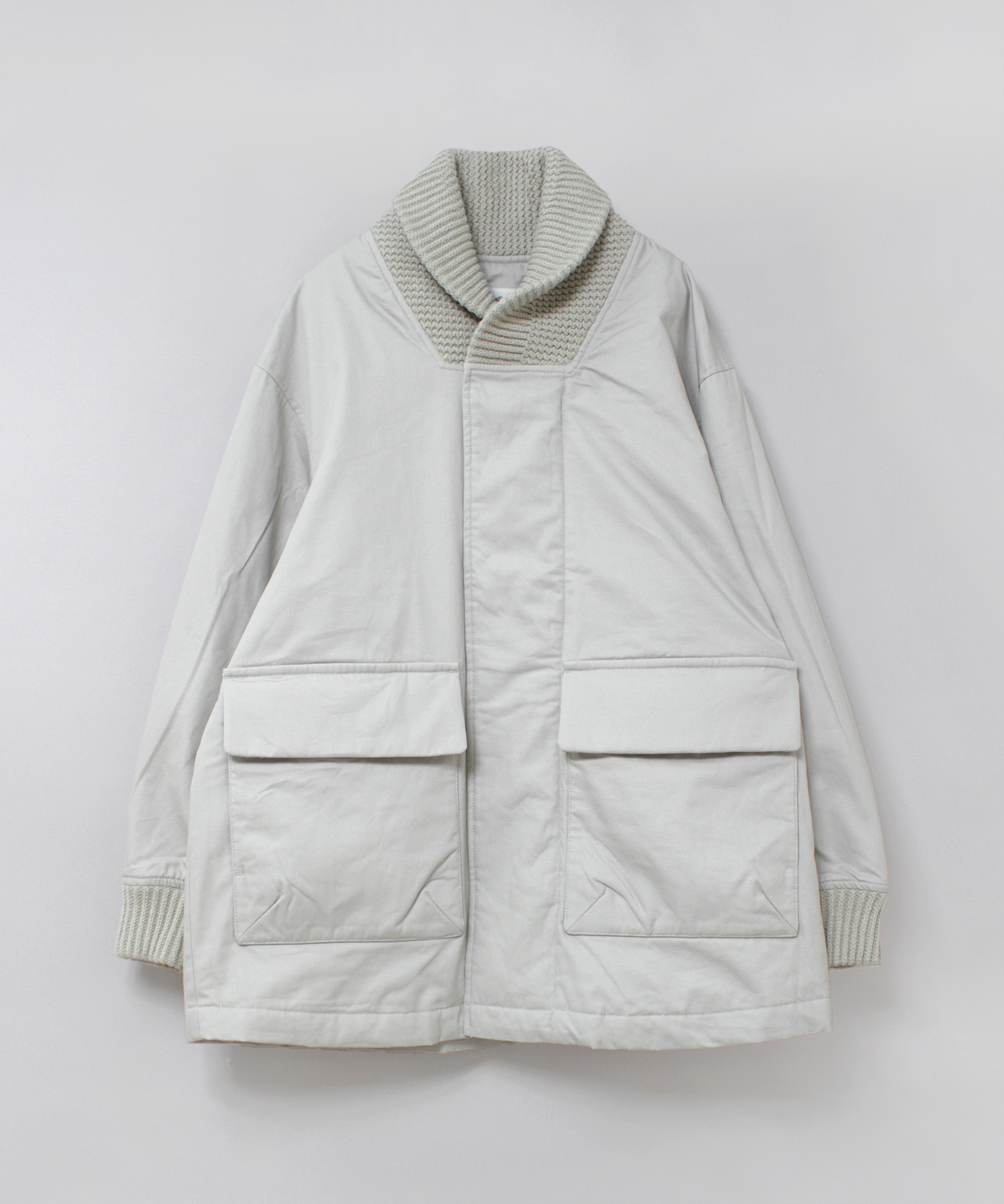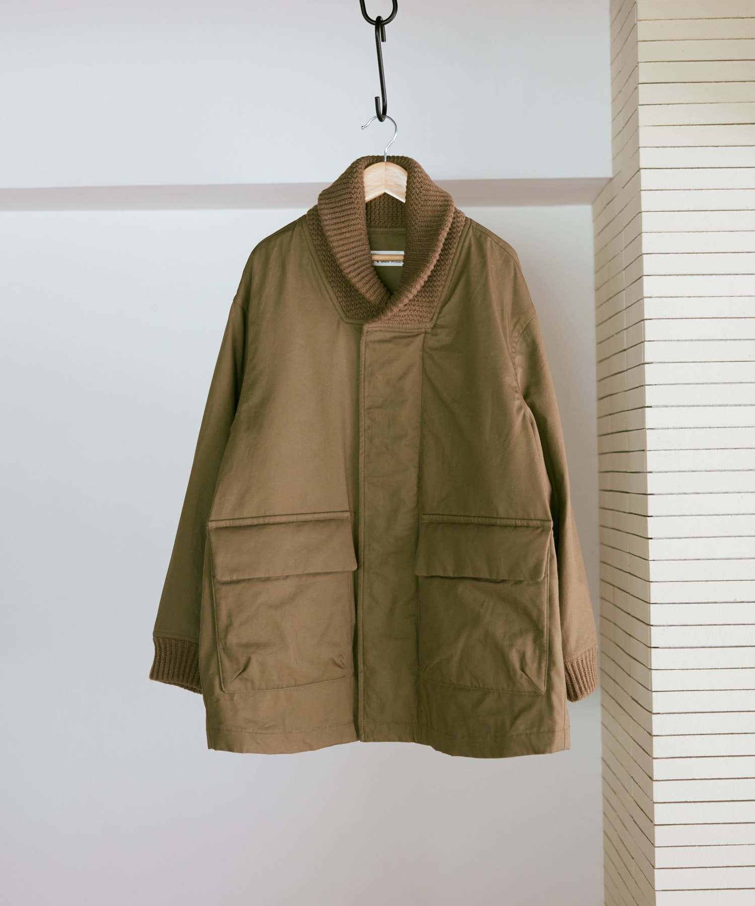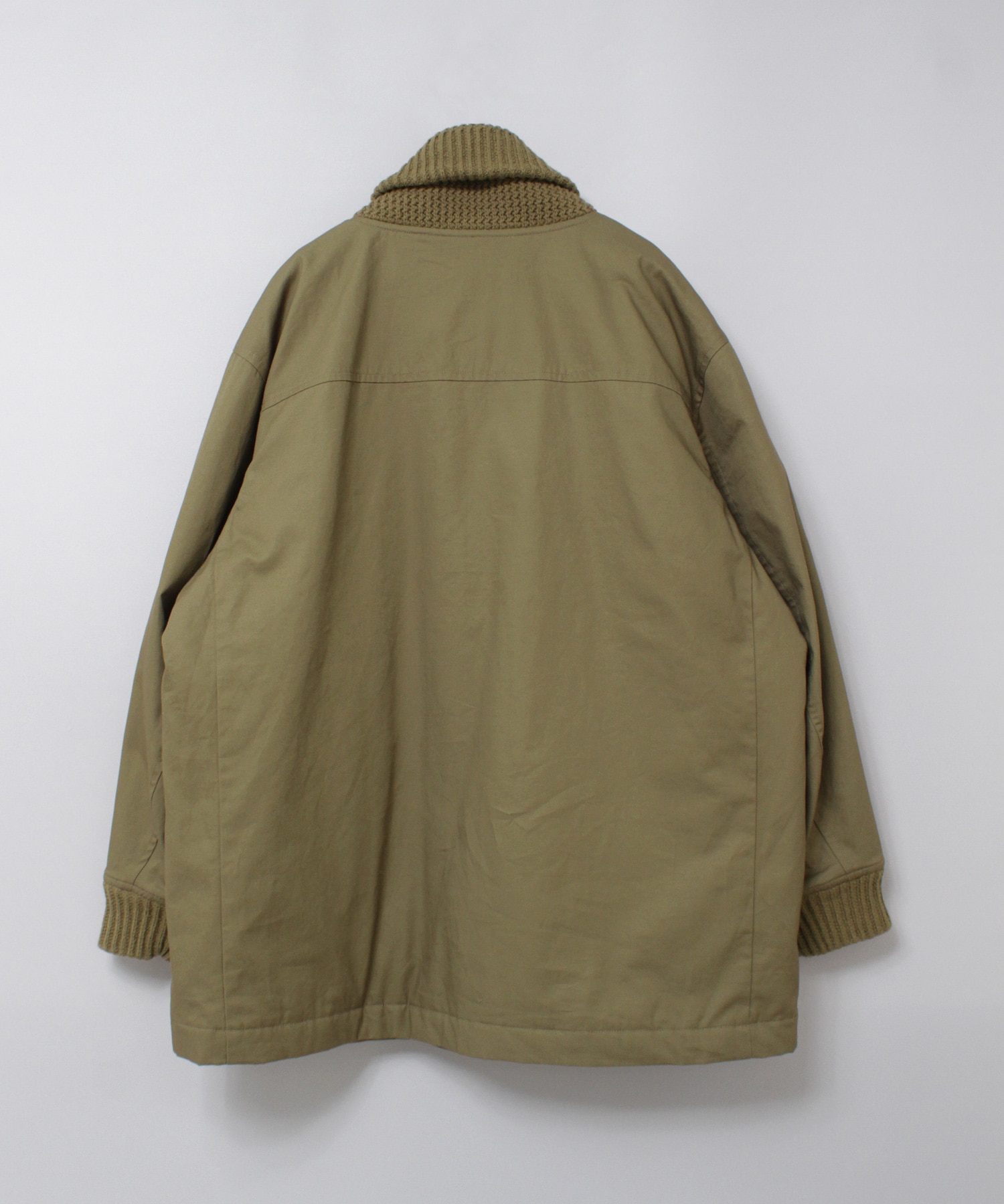 衿がリブニット仕様のドンキーコートをベースに、中綿を加えてアレンジしたジャケットです。