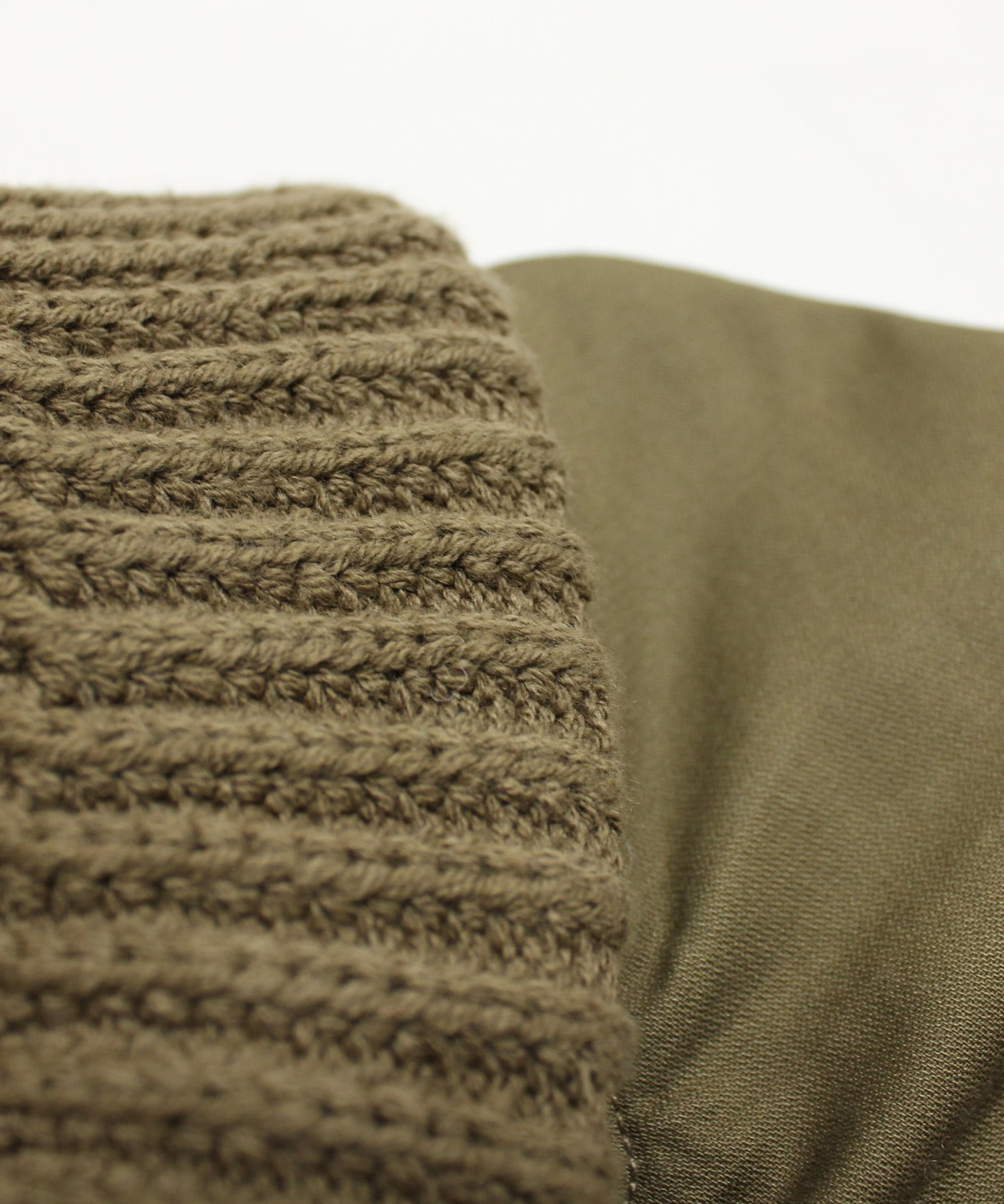 カジュアルな印象の中にも、衿と袖口にざっくりと編まれたニットのようなパーツがついており、程よいアクセントに。