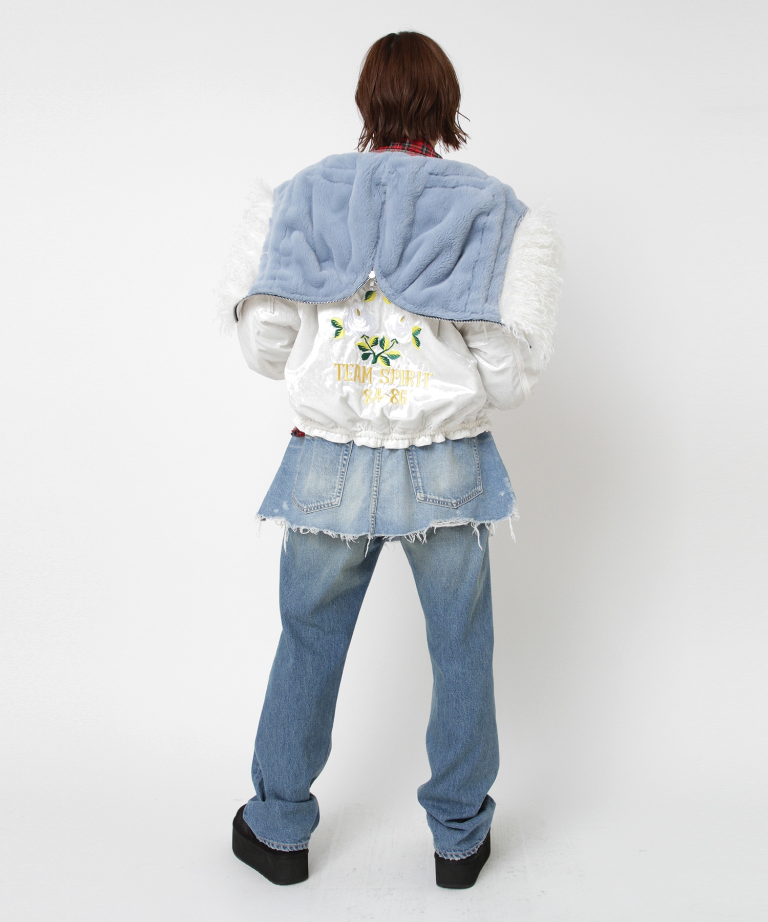 素材:[表地] ポリエステル 100%, [裏地] ポリエステル 100%, [中綿] ポリエステル 100%, [ファー部分] ポリエステル 100%