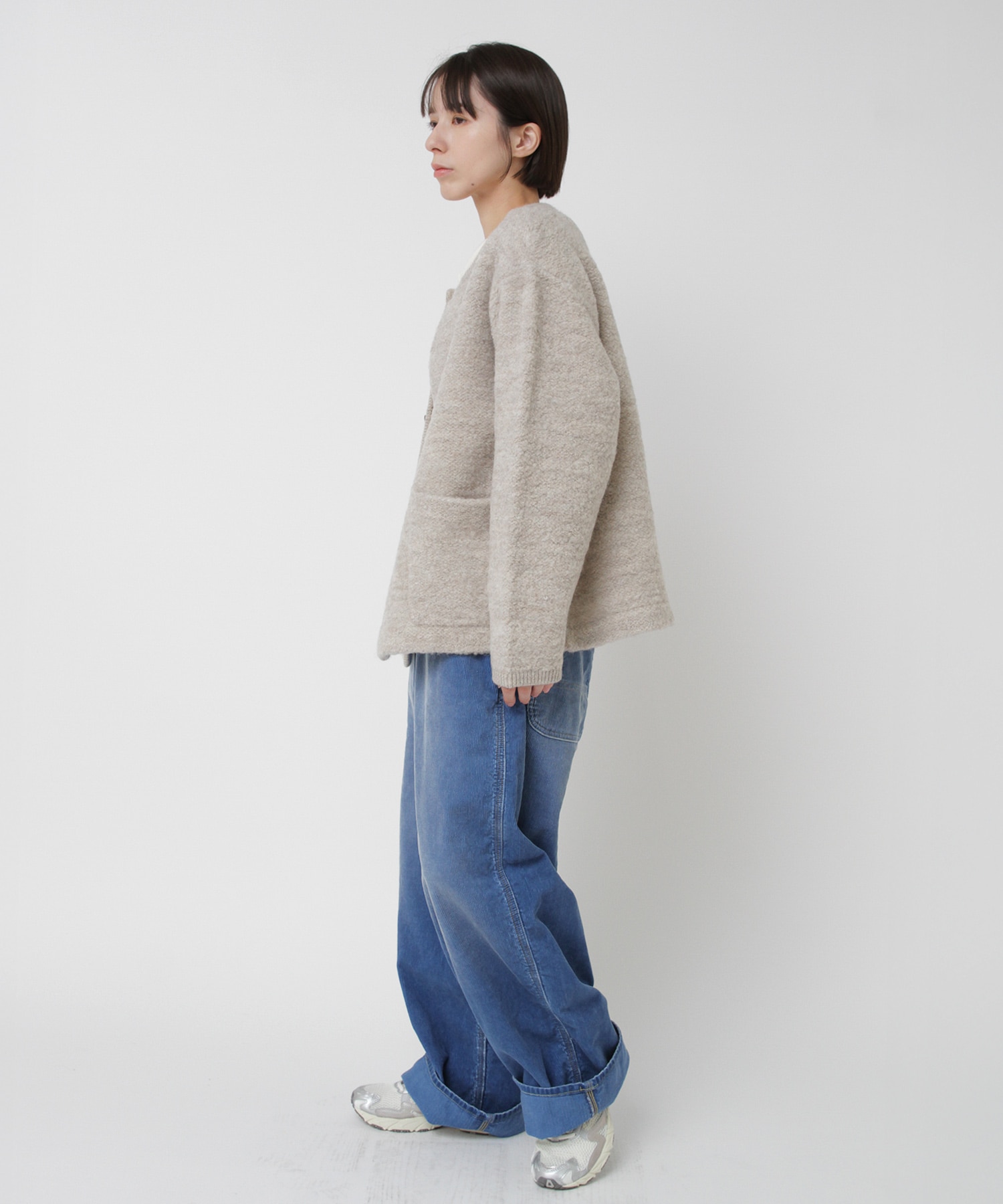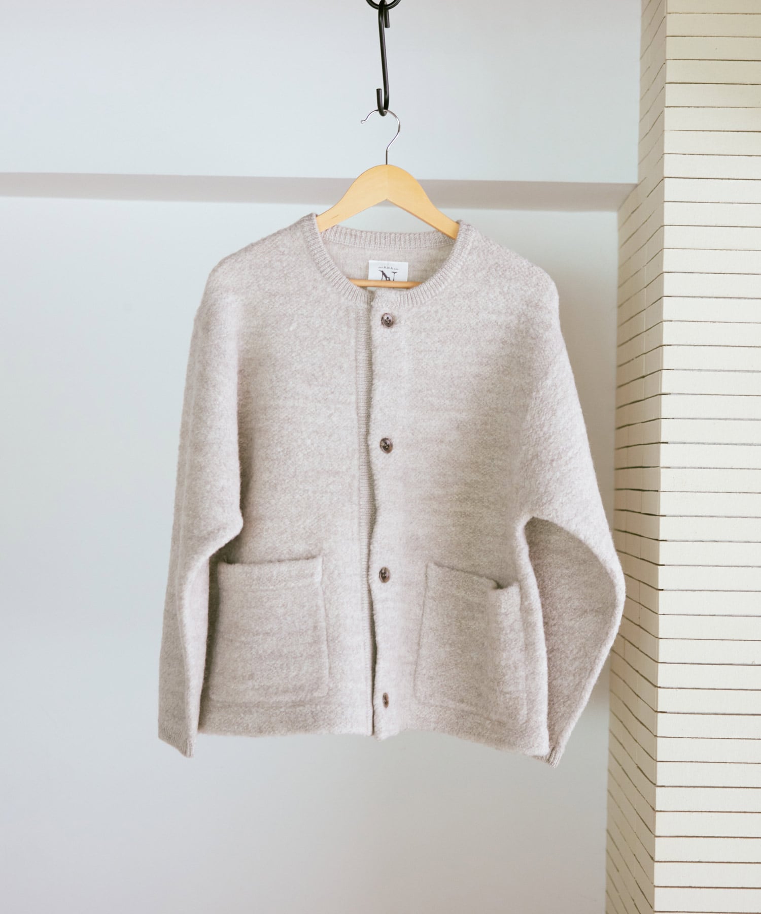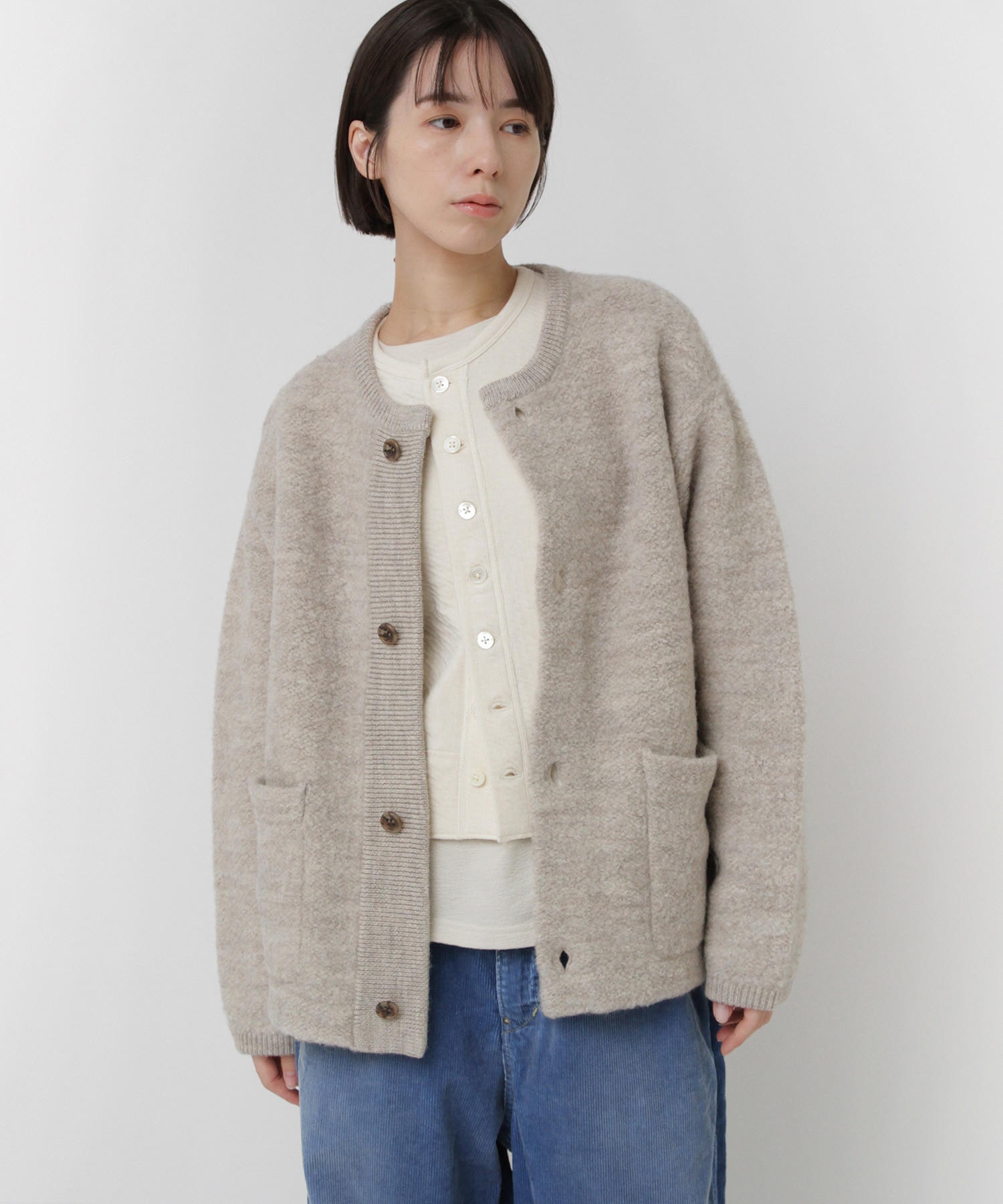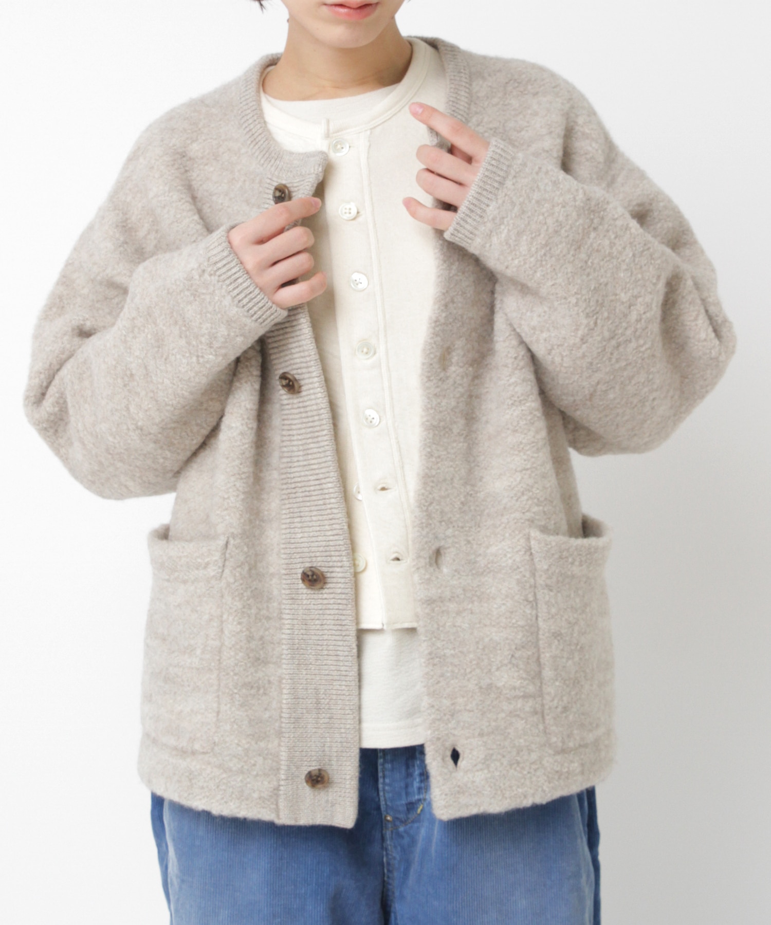 ニットなので、布帛よりも柔らかさとストレッチ性があり、リラックスした着心地が心地よいアウターです。