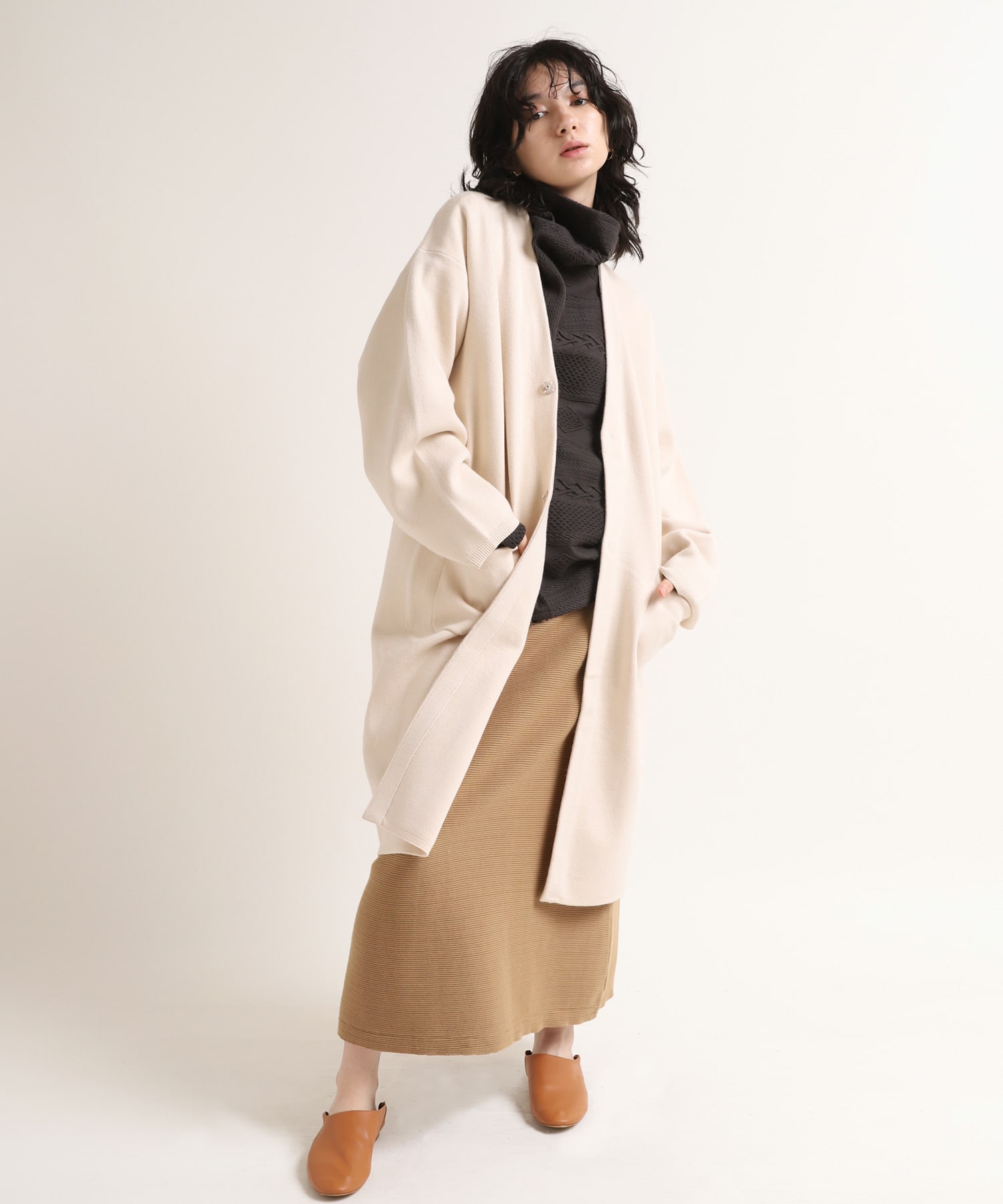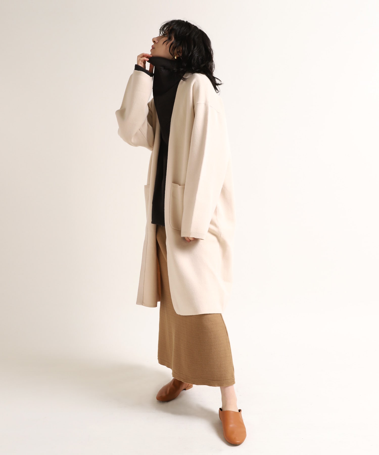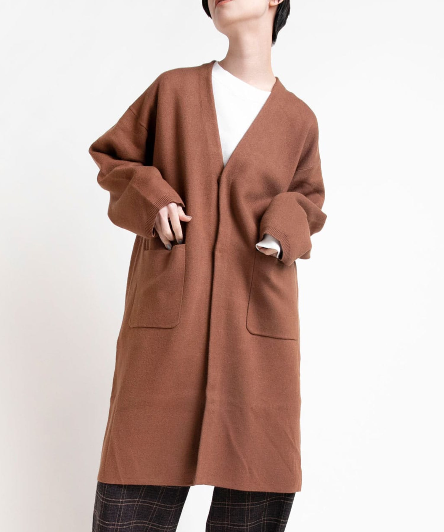 長めの着丈とゆったりとしたシルエットでラフに羽織れるニットガウンコート。