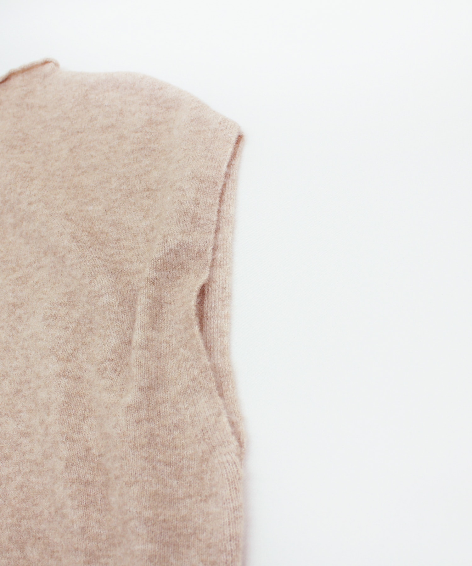 ボトルネック、ドロップショルダーのシルエットが特徴のニットベスト。