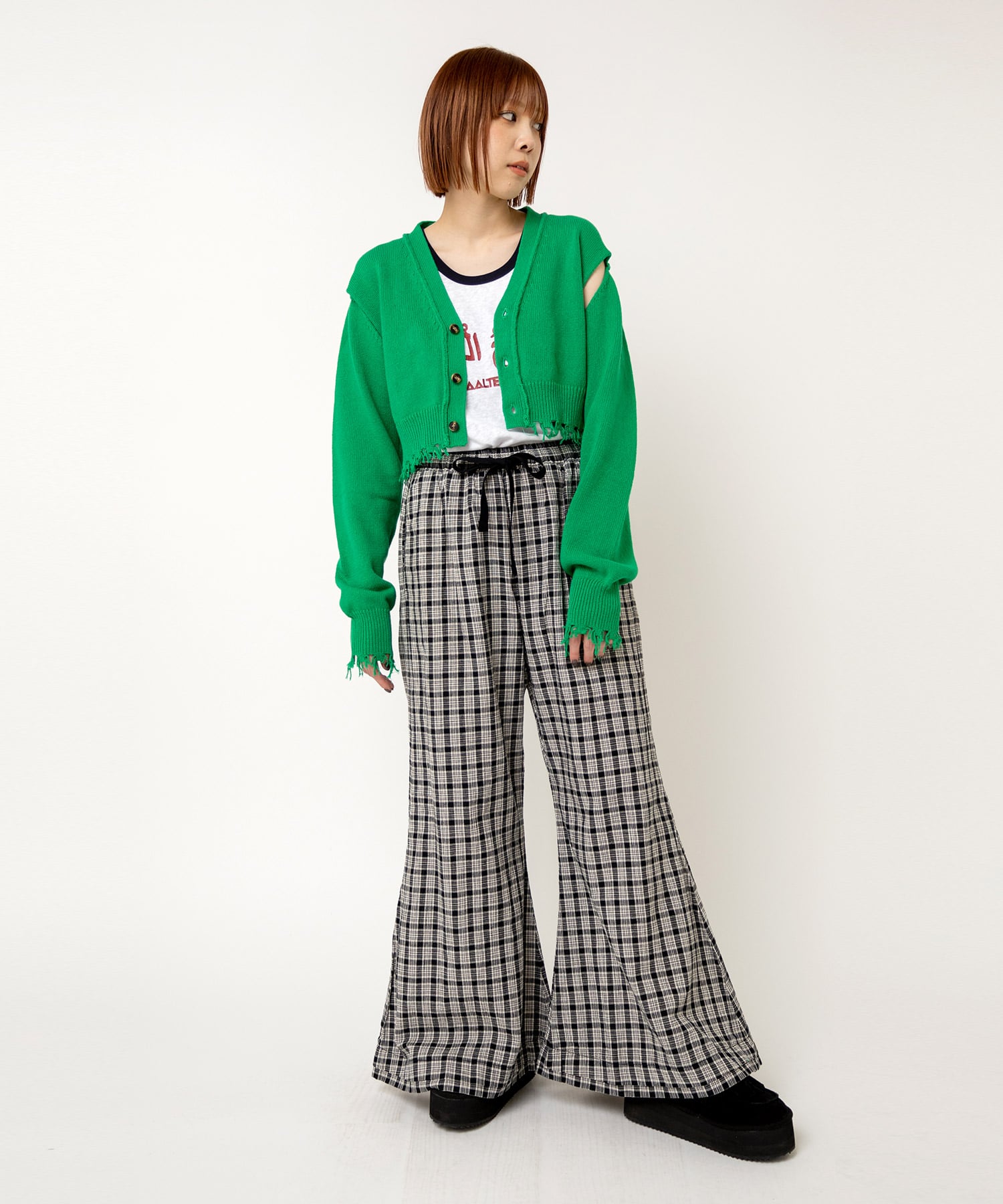 トレンド感のあるクロップド丈とAHのスリットが特徴のニットカーデです。