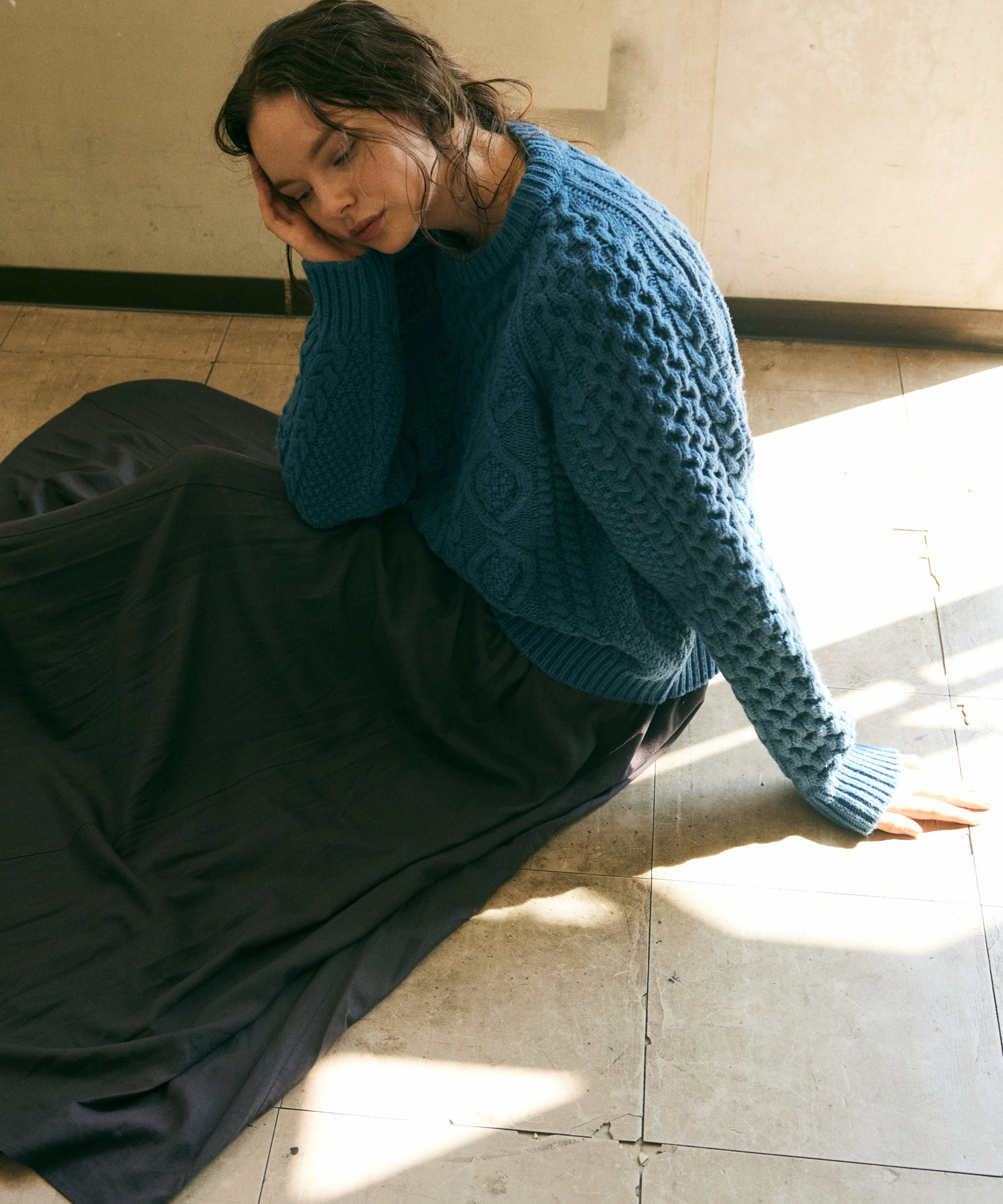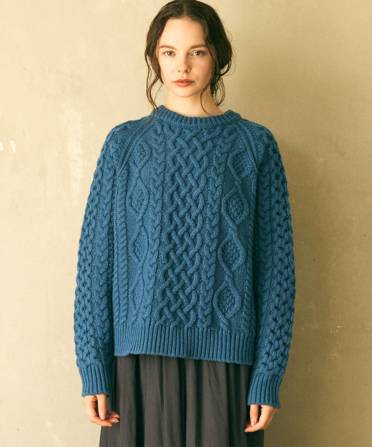 立体感のある様々なケーブル編みを組み合わせたアランニット