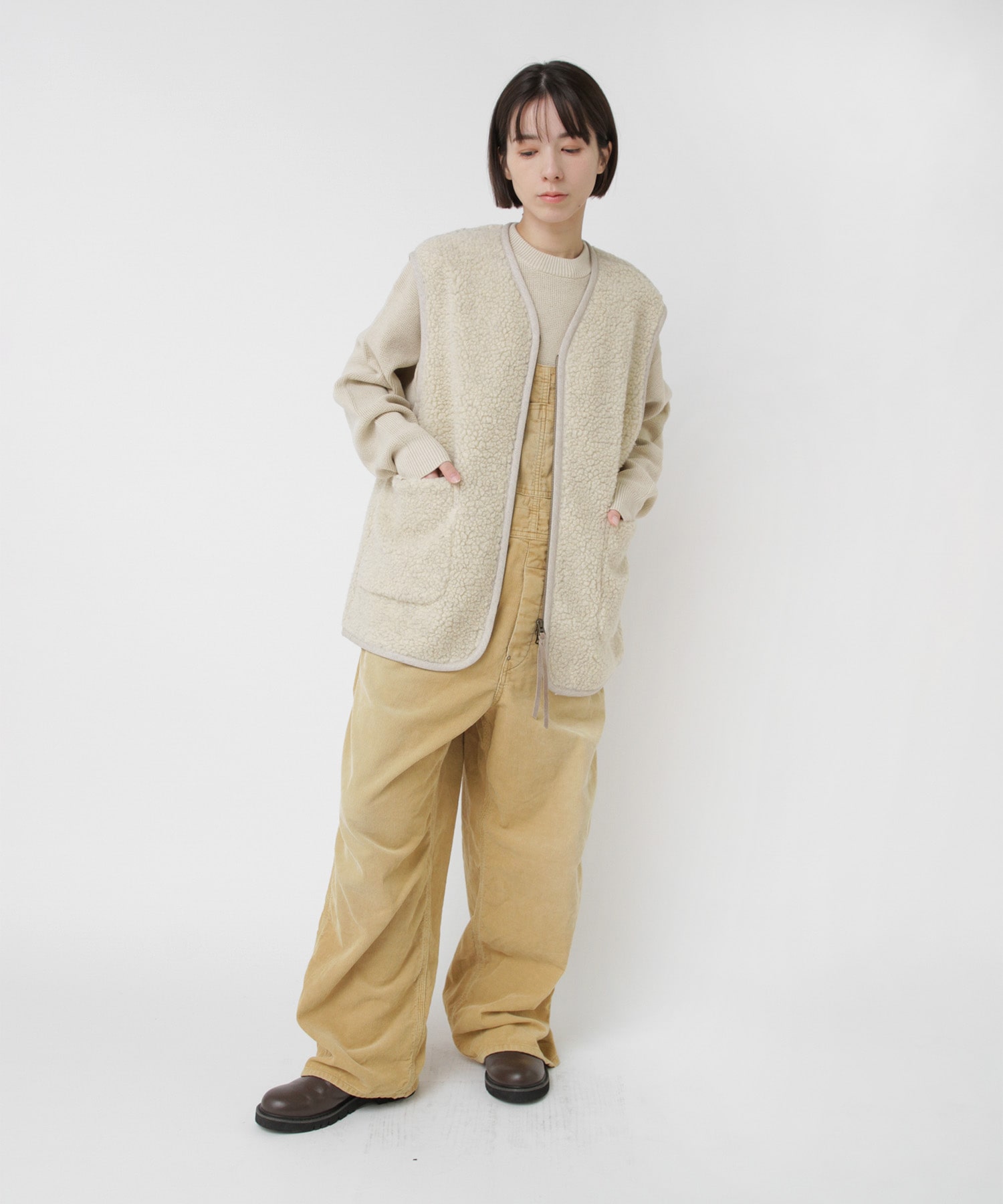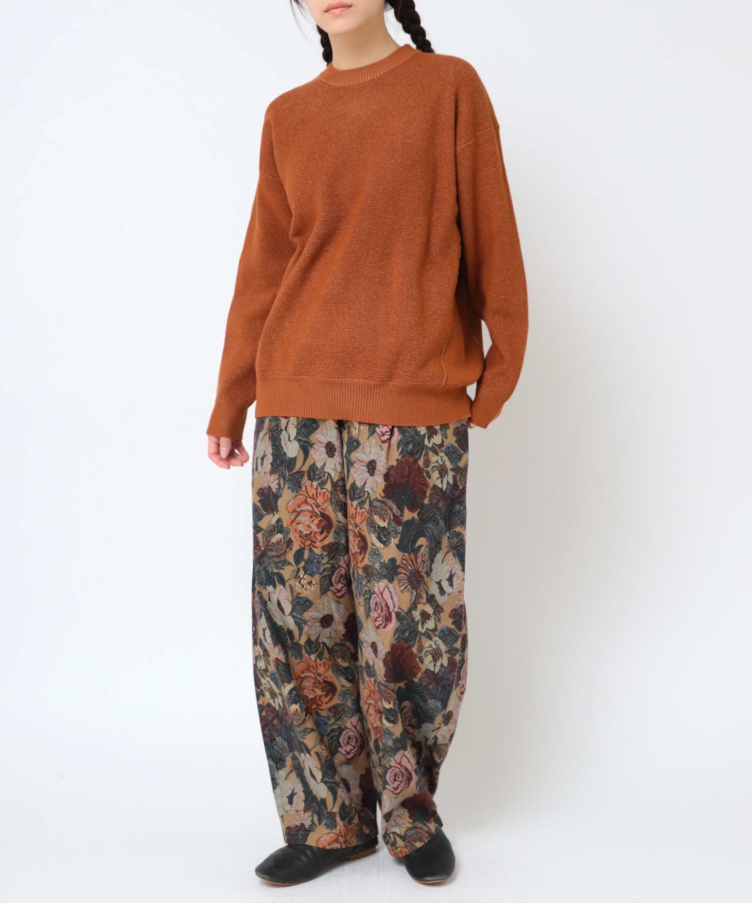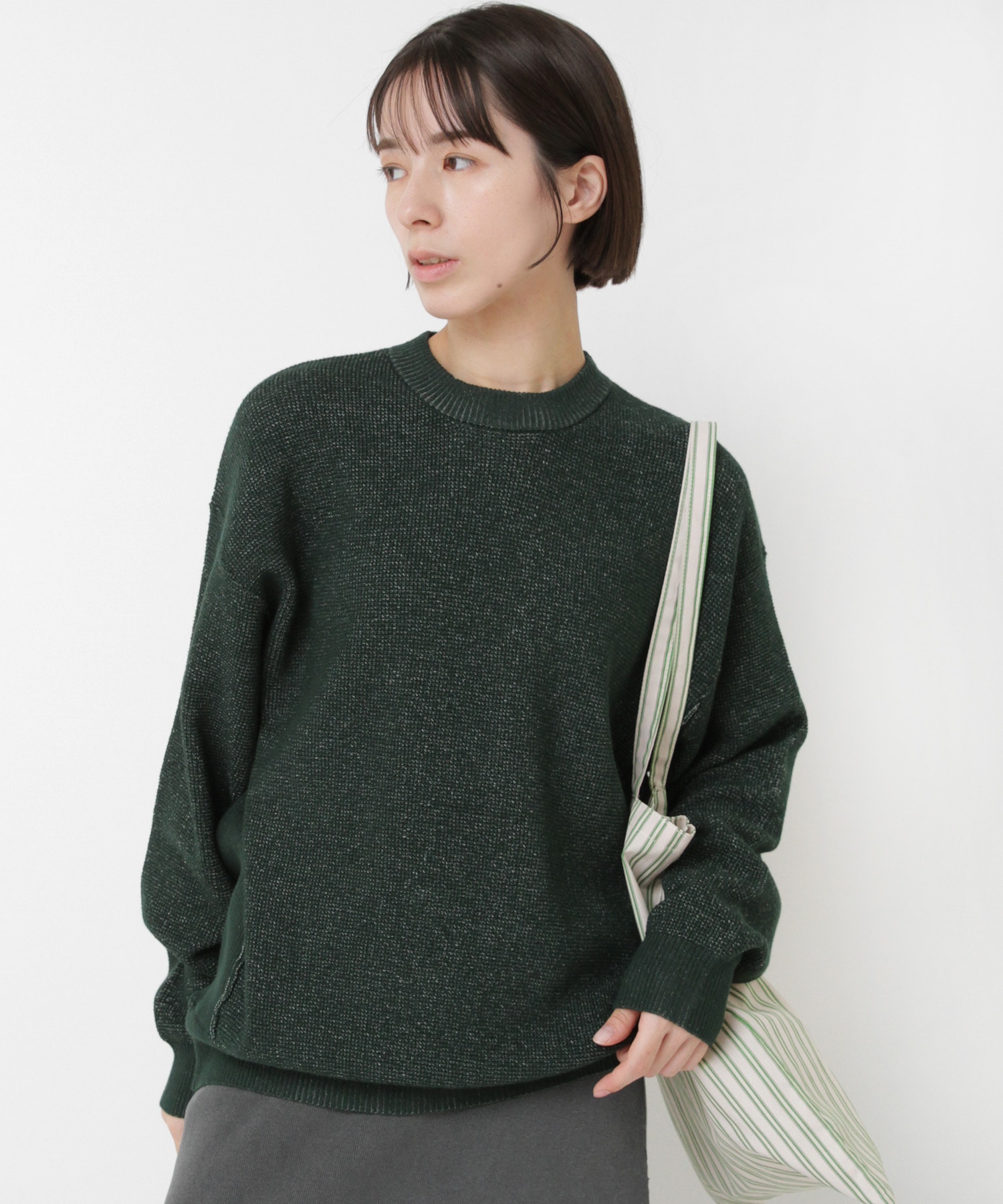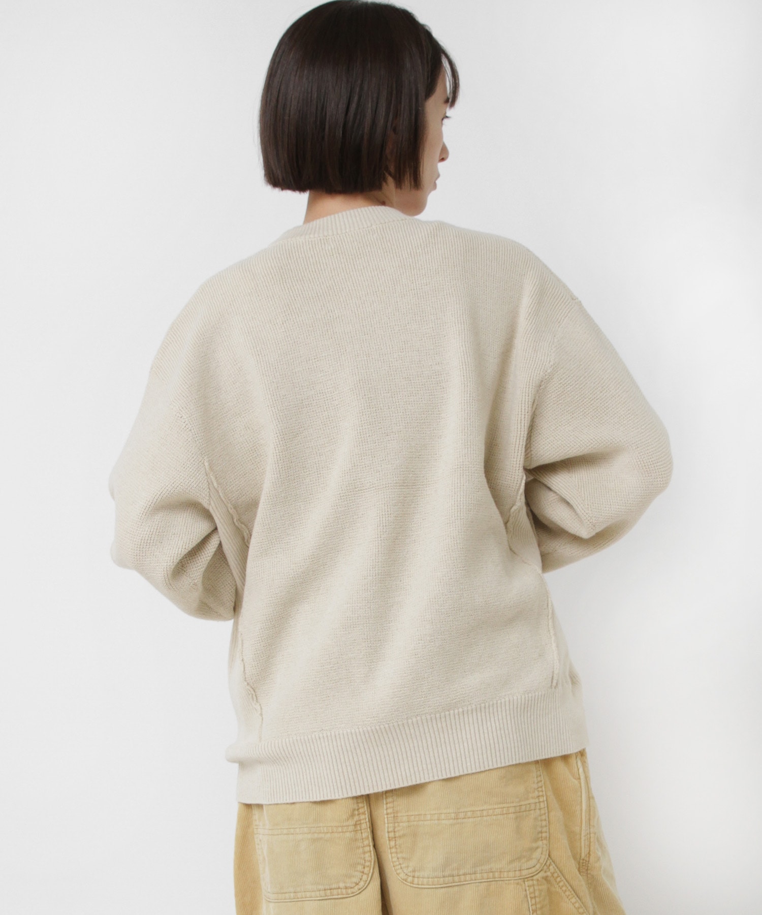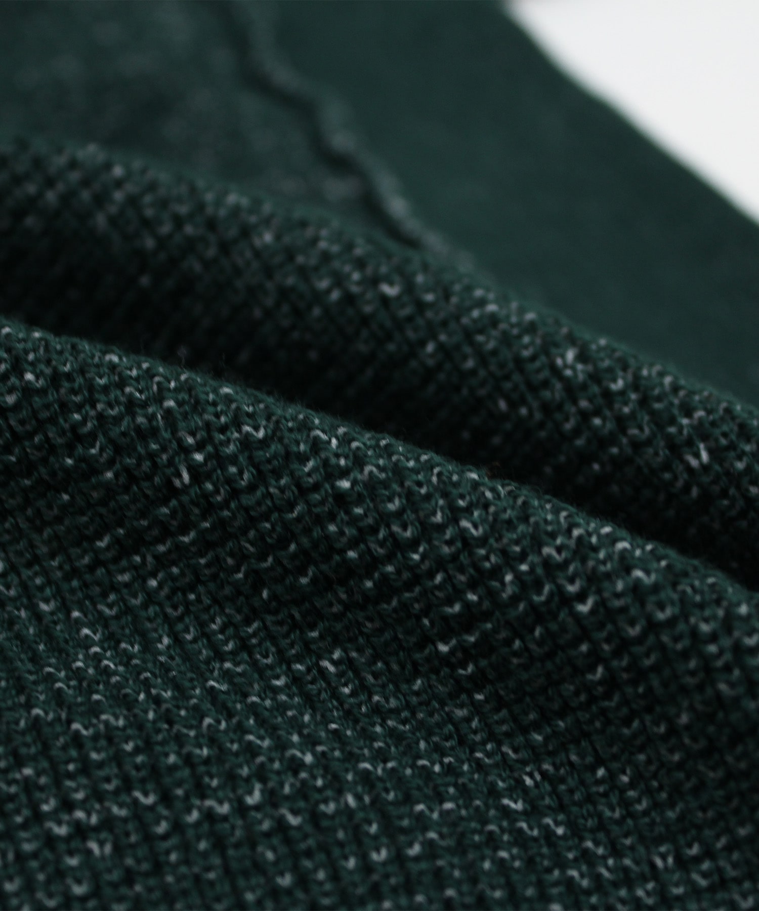 裏毛風のデザインで、サイドにはリブ編みで切り替えを入れています。