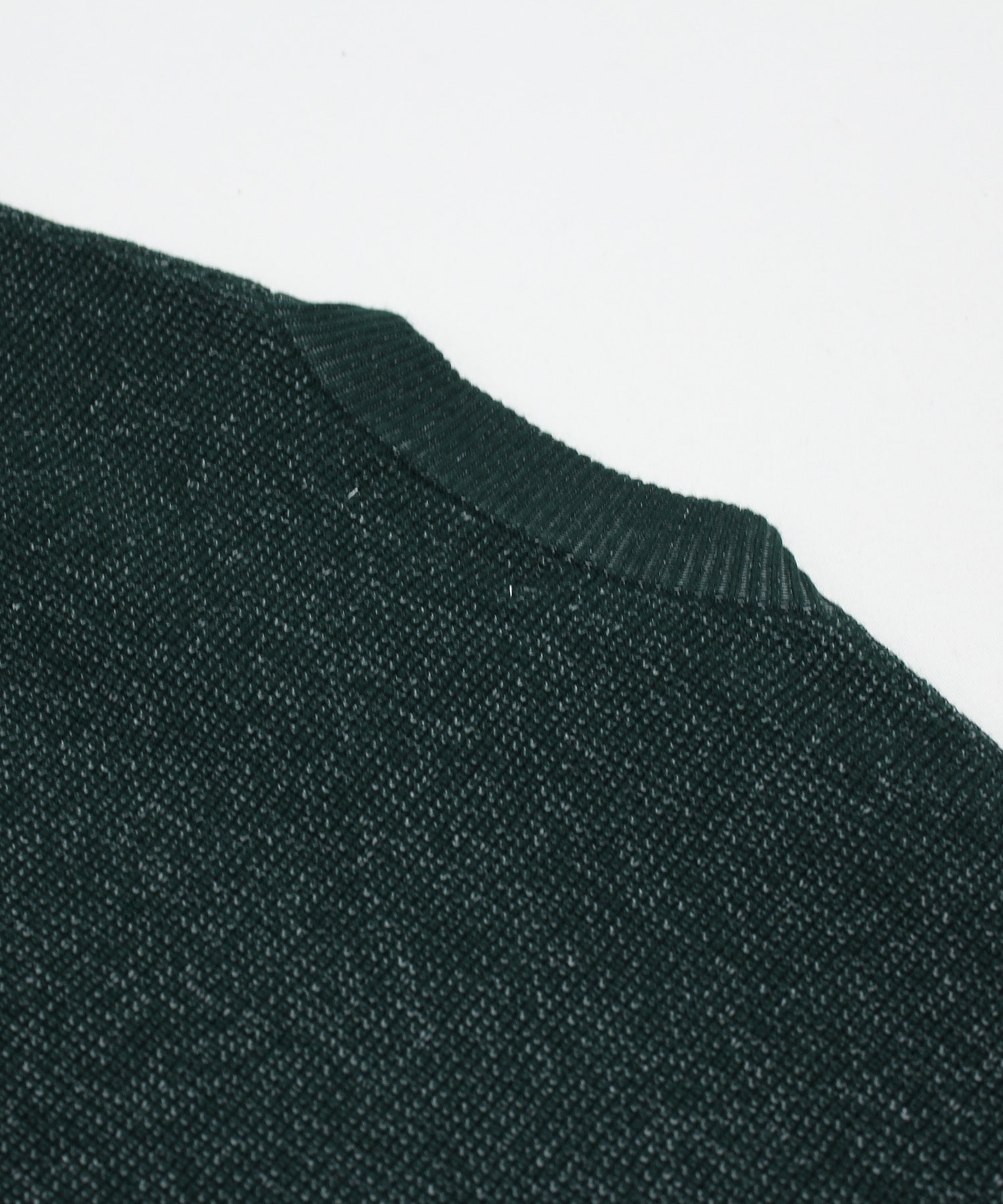 綿アクリルの糸に、違う色のナイロン糸を引き揃えて、メランジっぽく見せたニットのシリーズです。