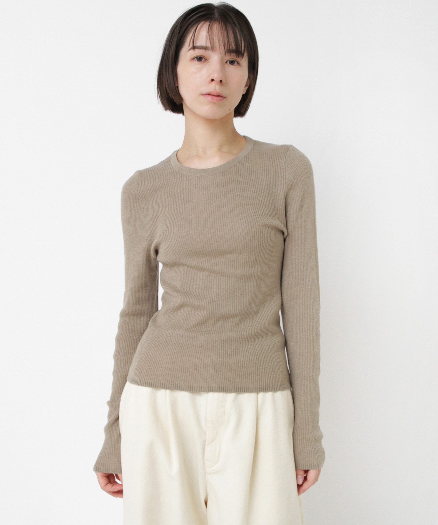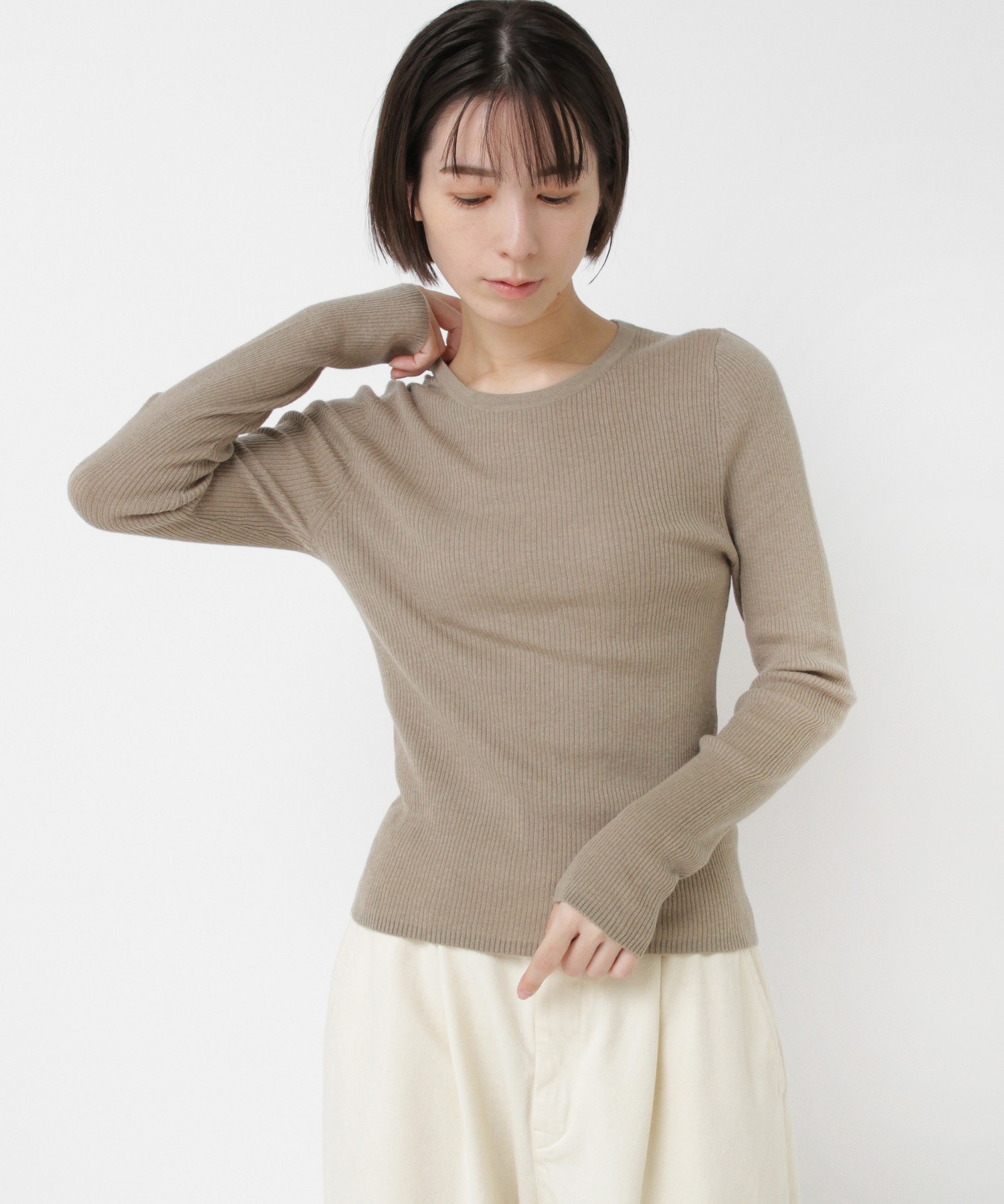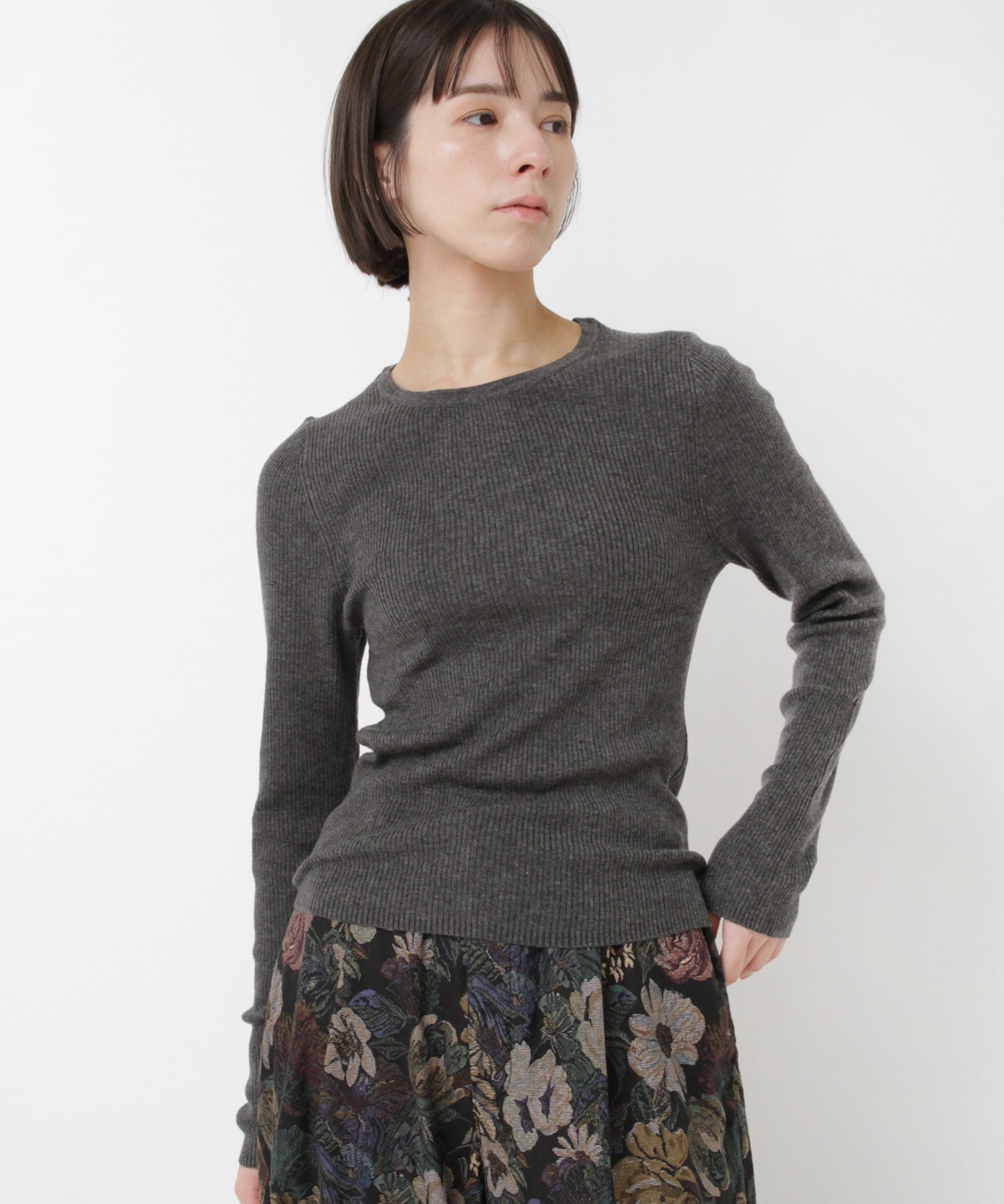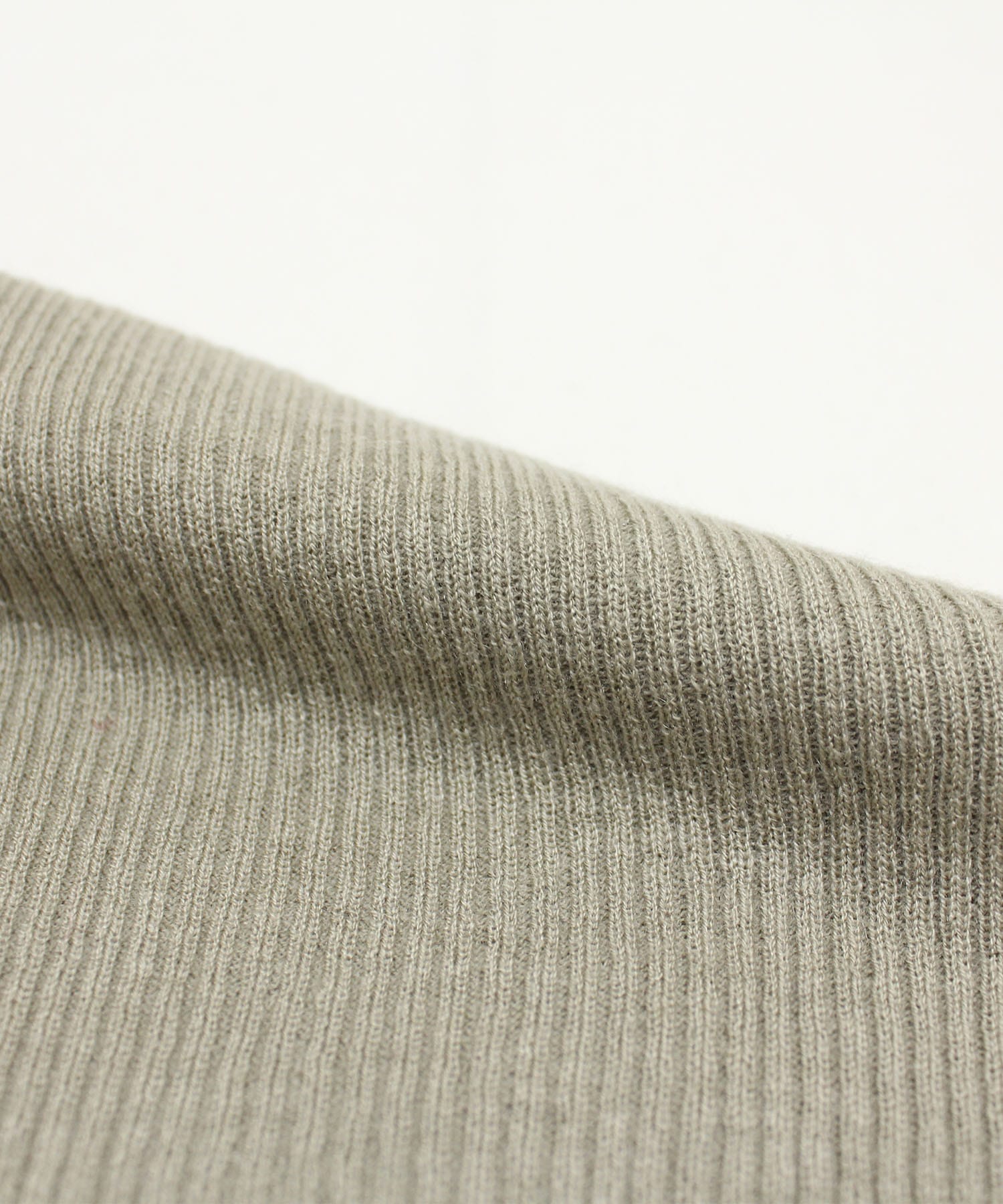 ほどよく伸縮するリブ編みながら、体のラインを拾いすぎないようにバランスよく設計されており、気負わずデイリーに着ていただける一枚に仕上げました。