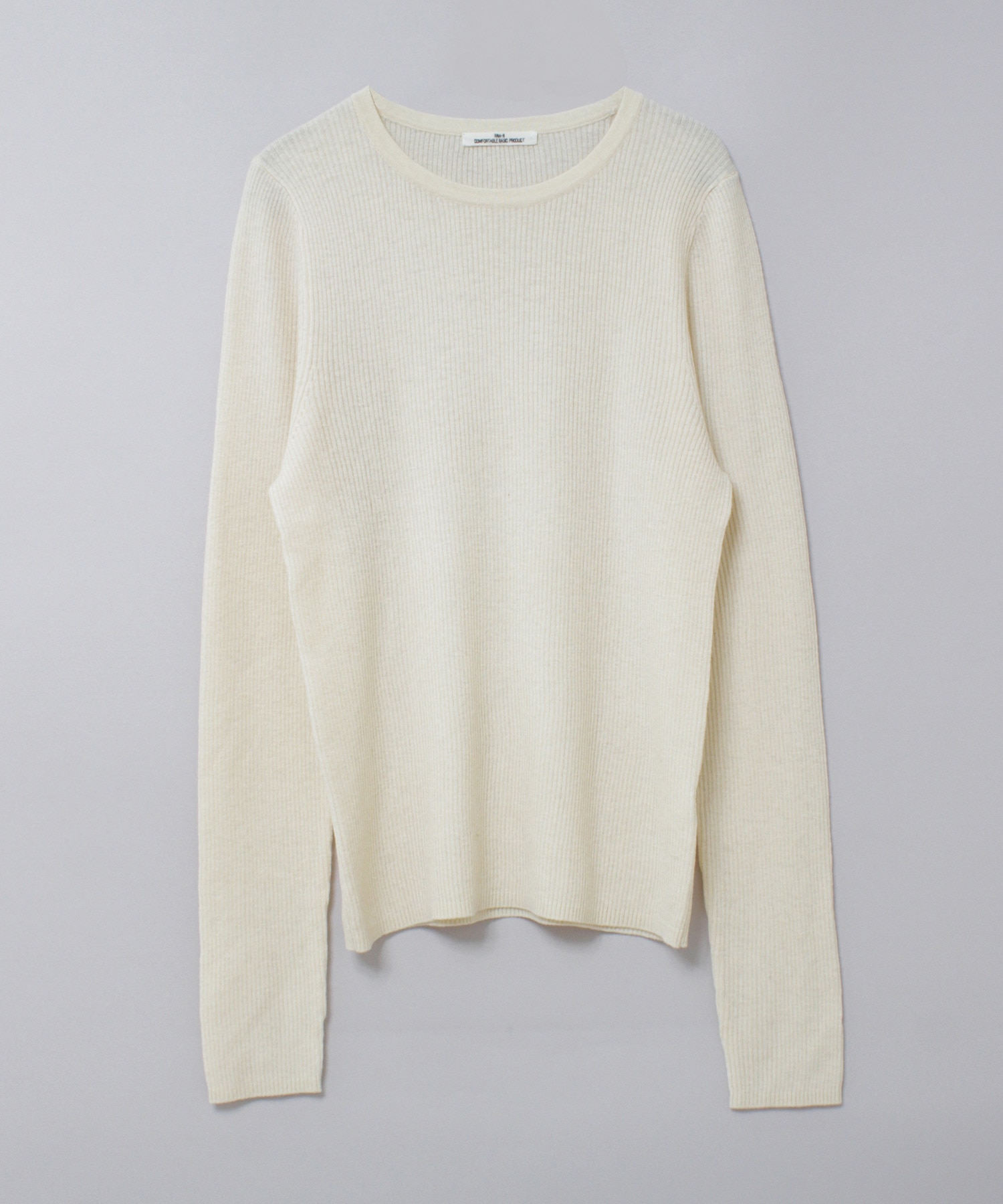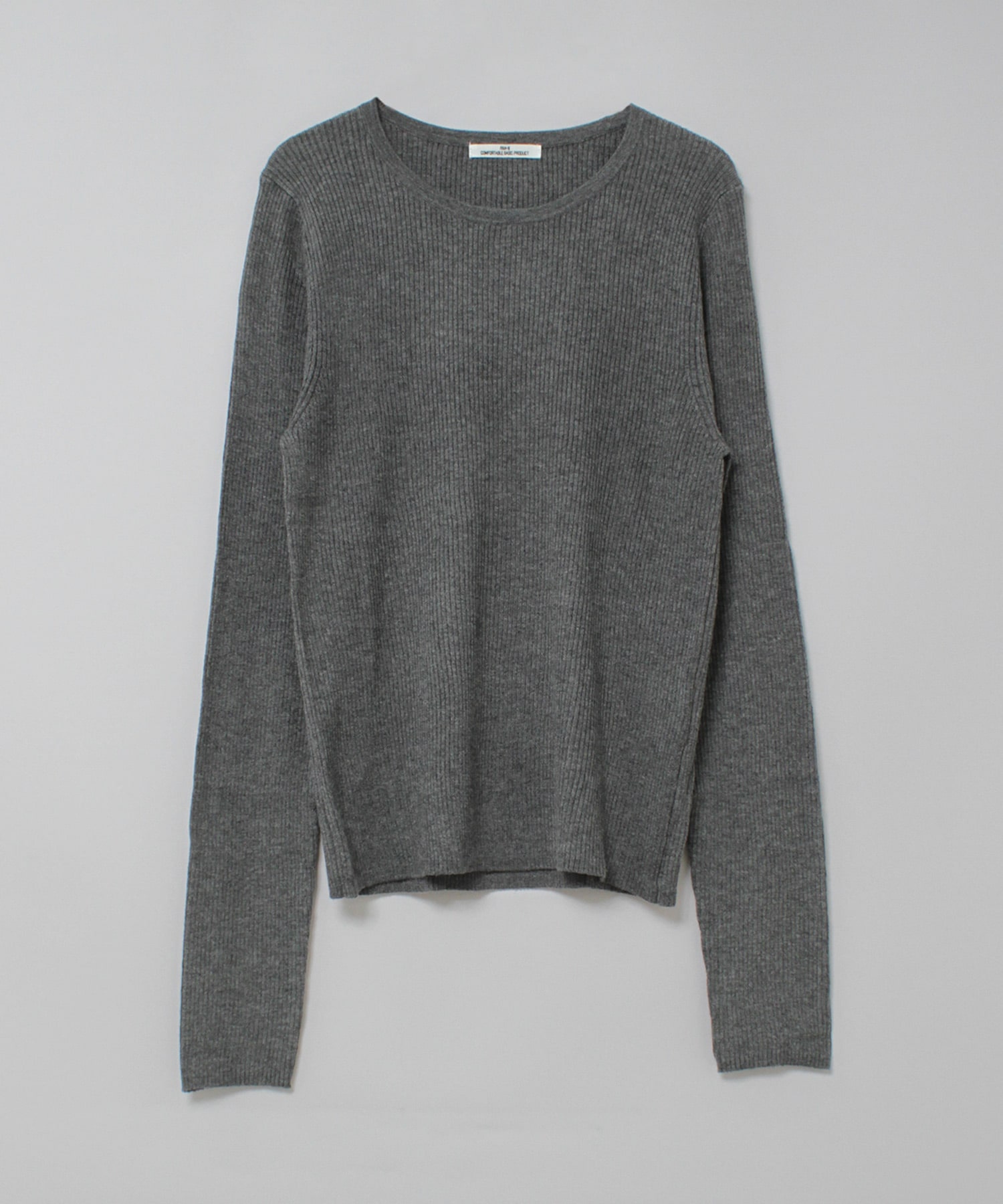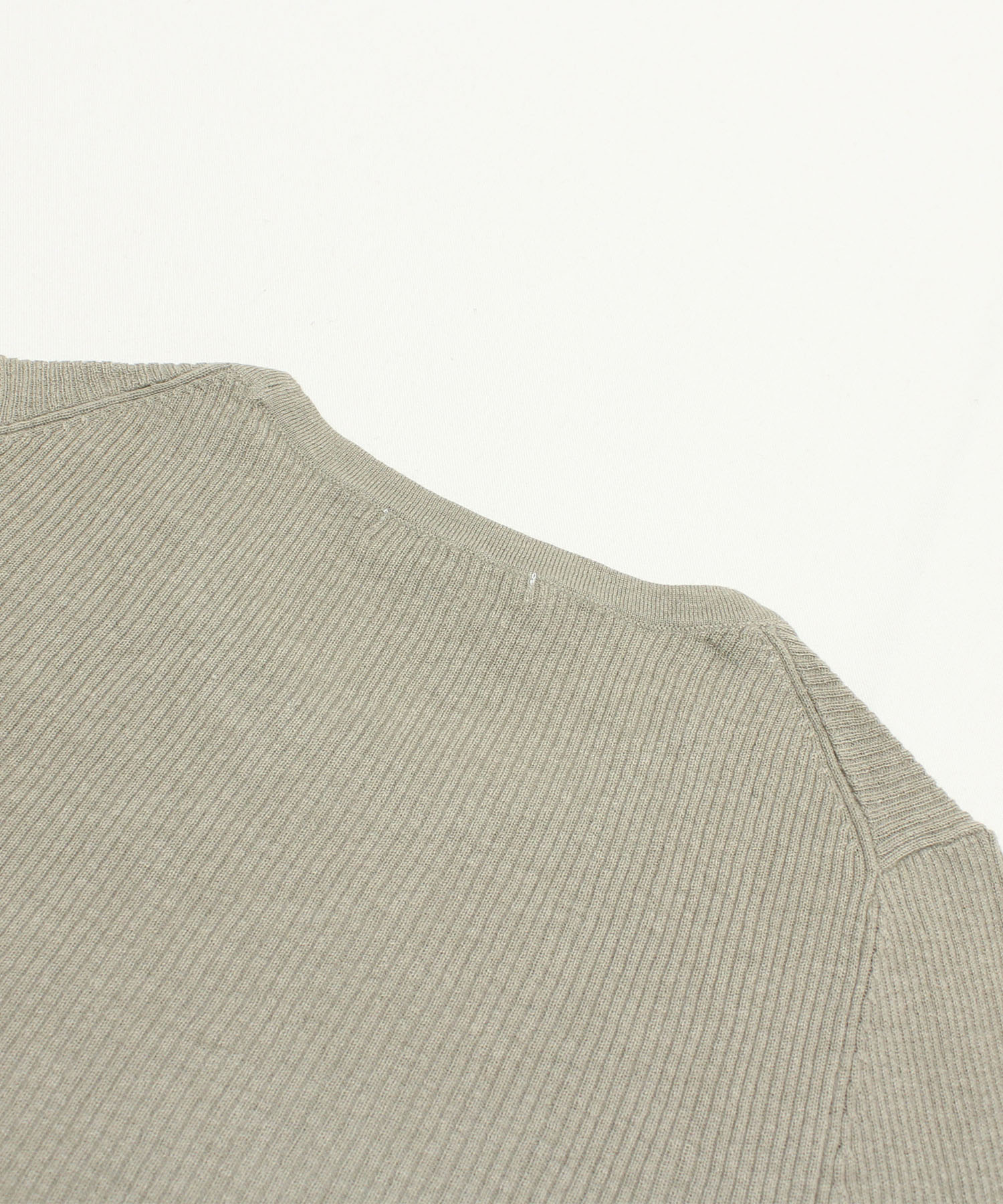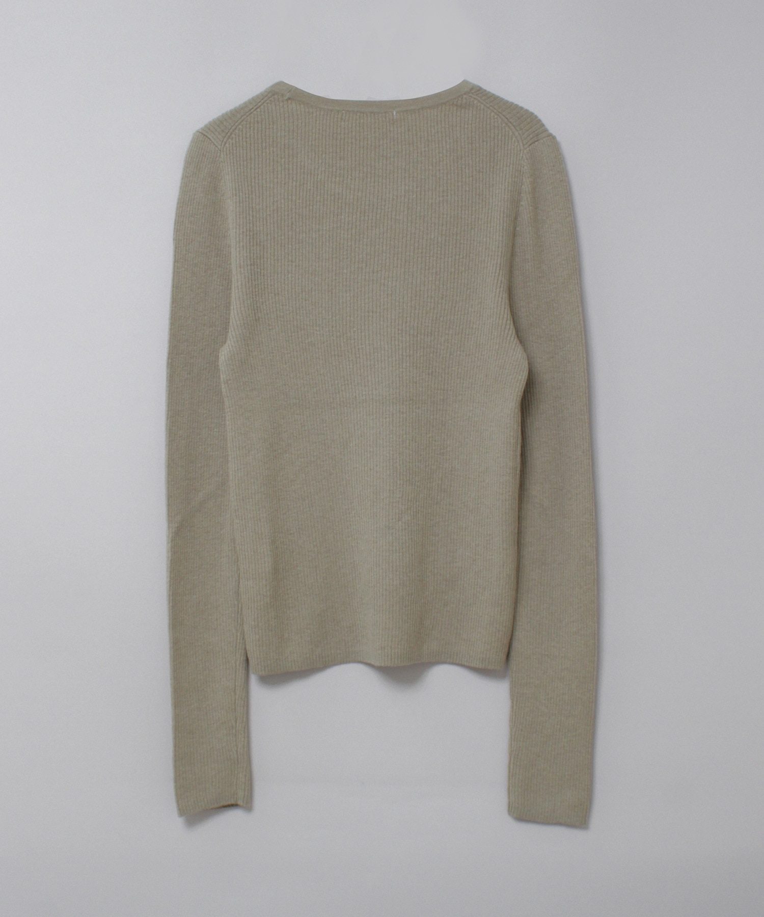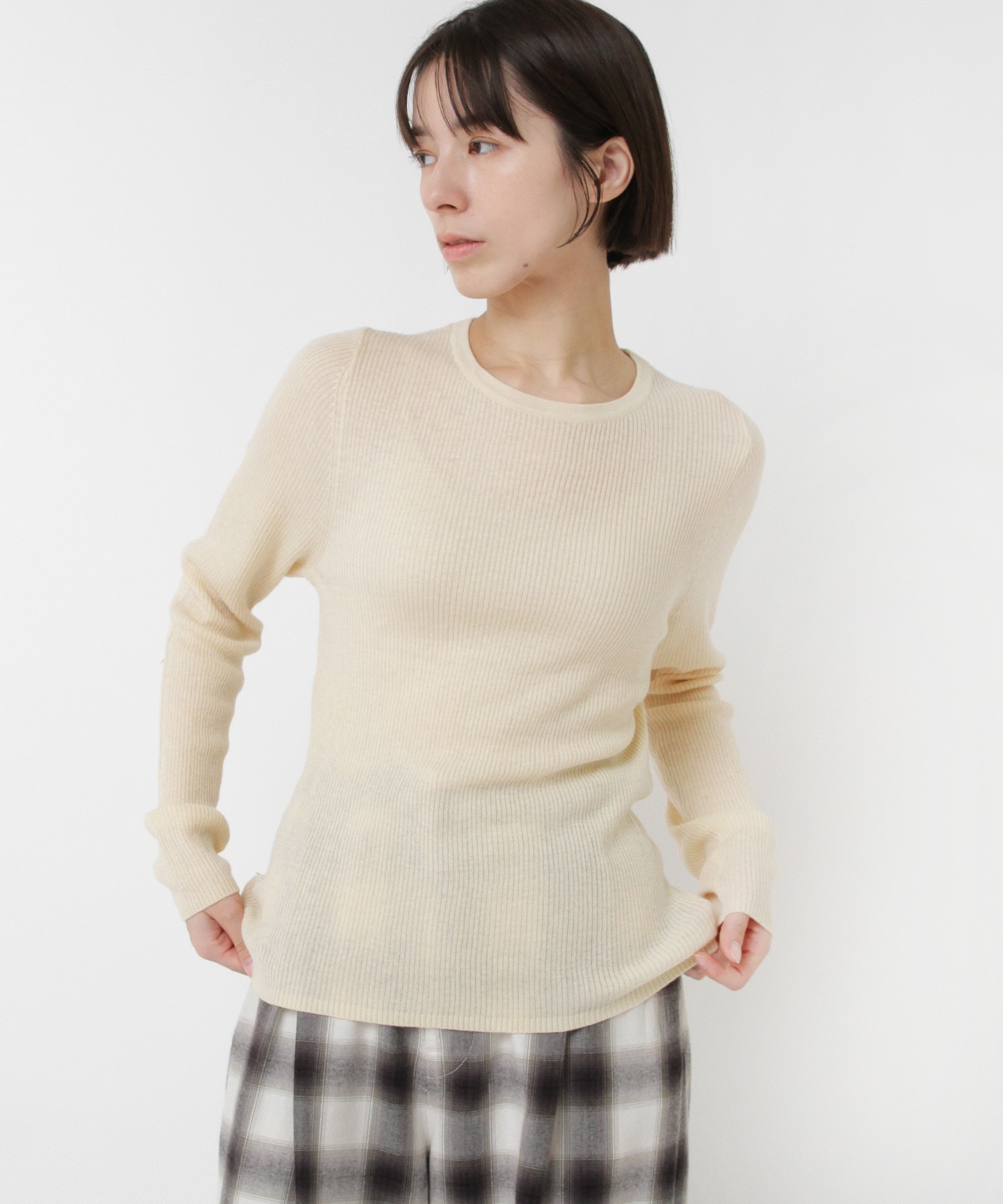 ほどよく伸縮するリブ編みながら、体のラインを拾いすぎないようにバランスよく設計されており、気負わずデイリーに着ていただける一枚に仕上げました。
