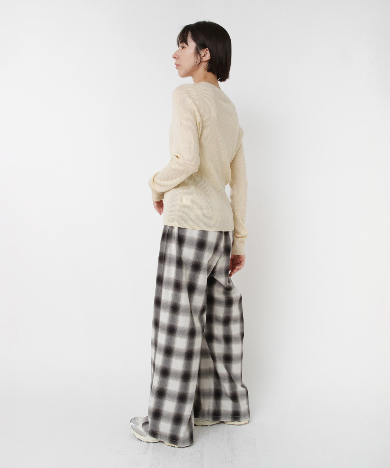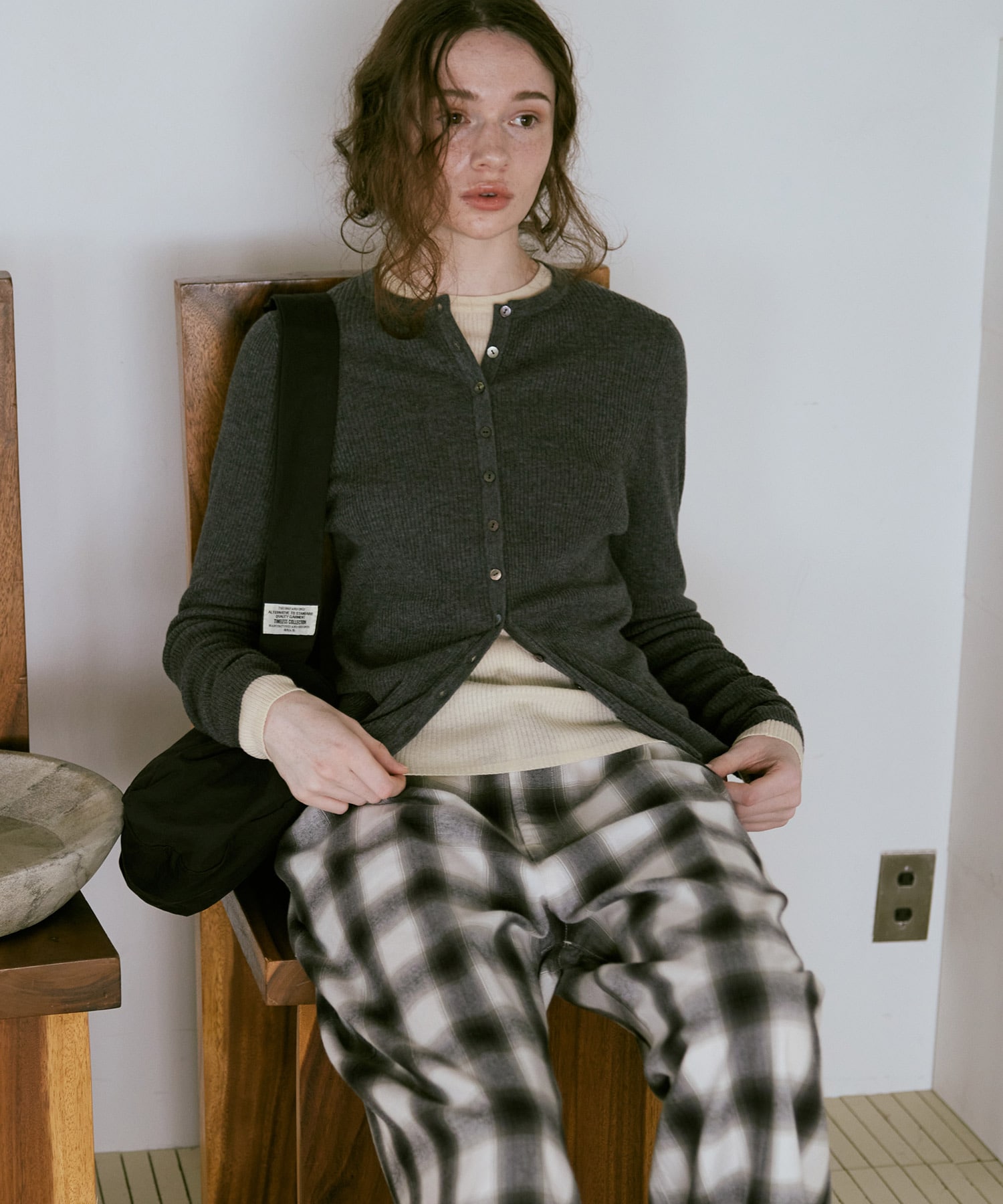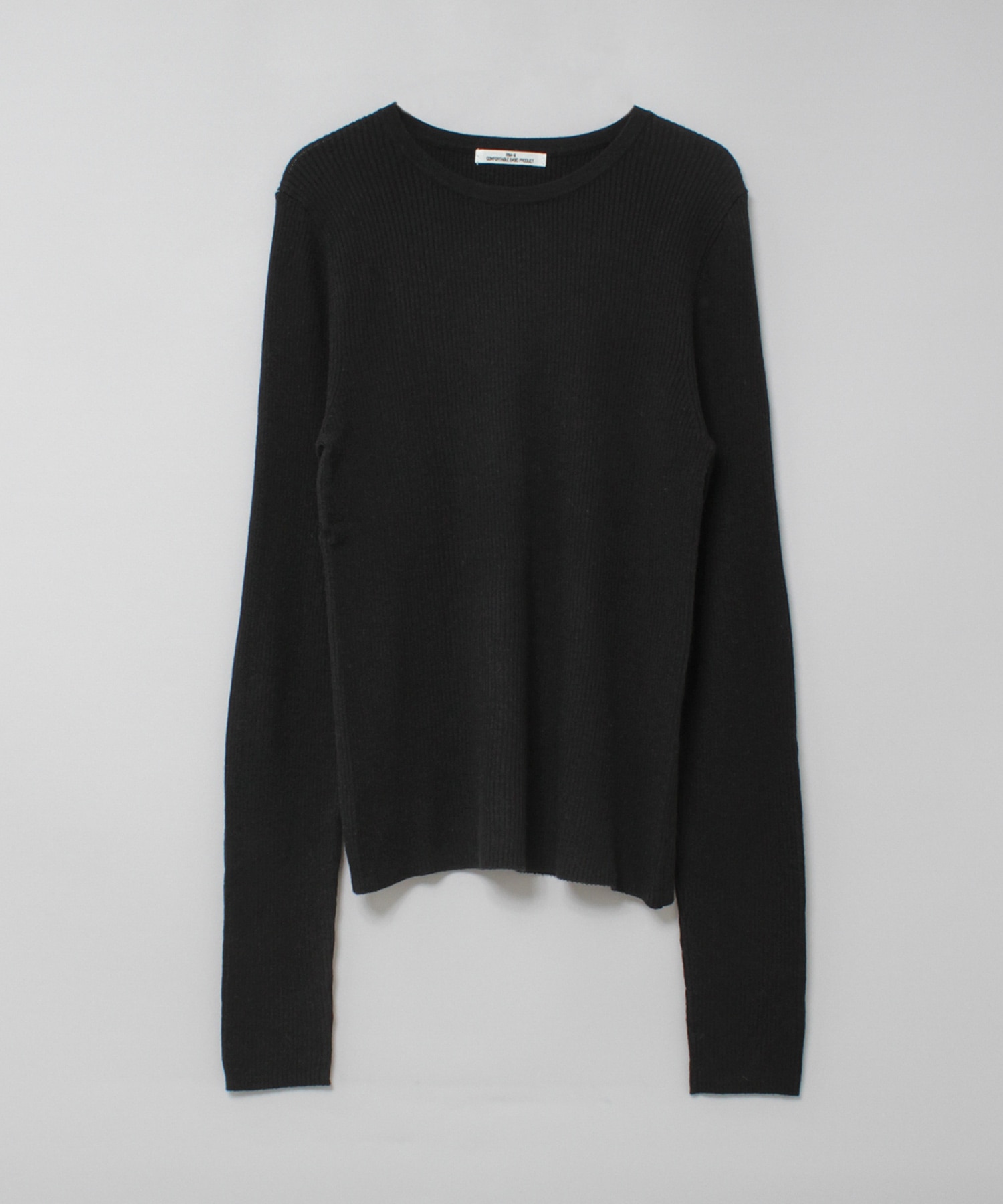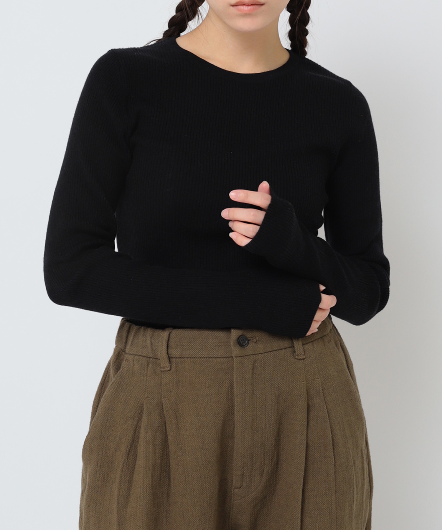 ほどよく伸縮するリブ編みながら、体のラインを拾いすぎないようにバランスよく設計されており、気負わずデイリーに着ていただける一枚に仕上げました。