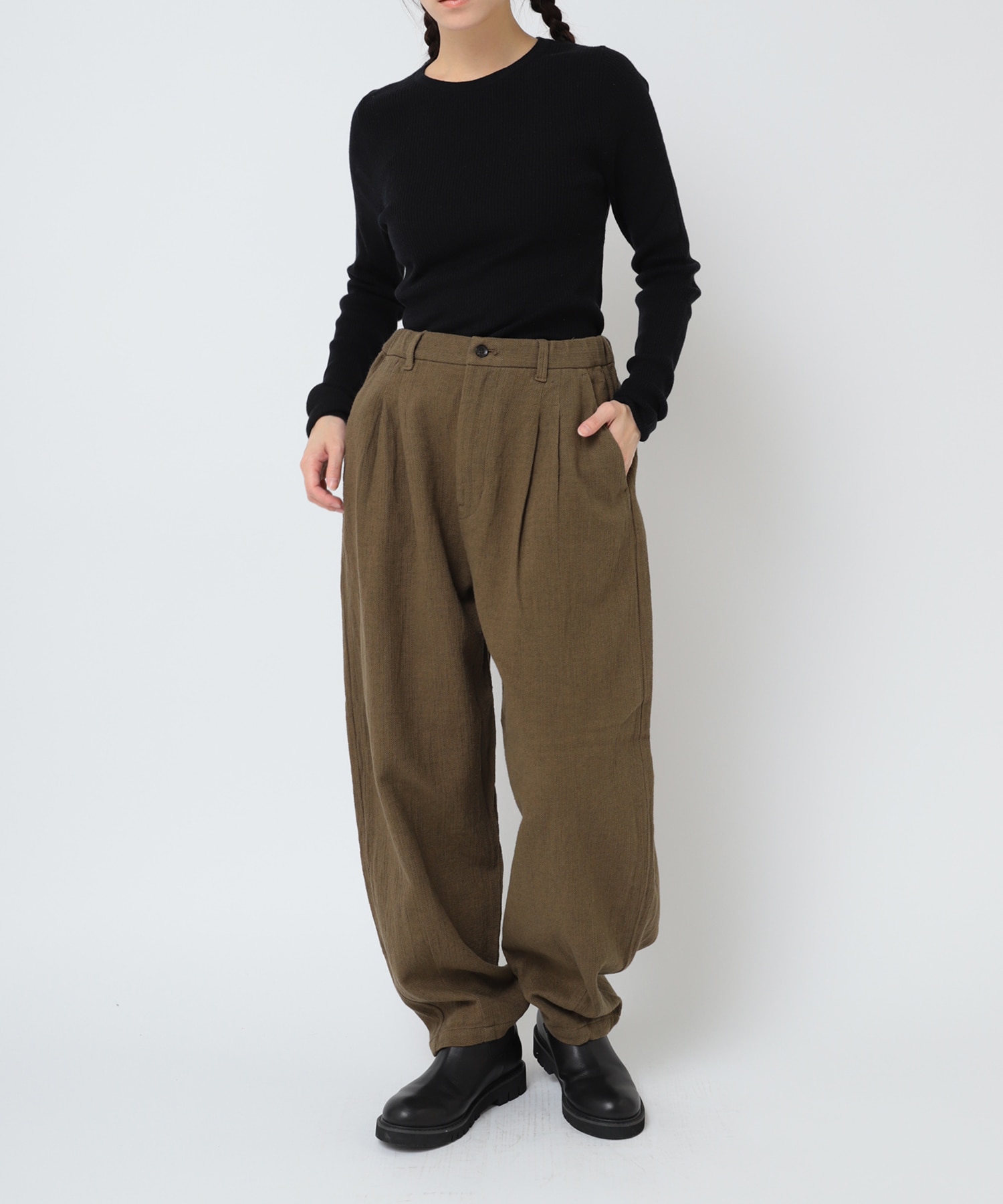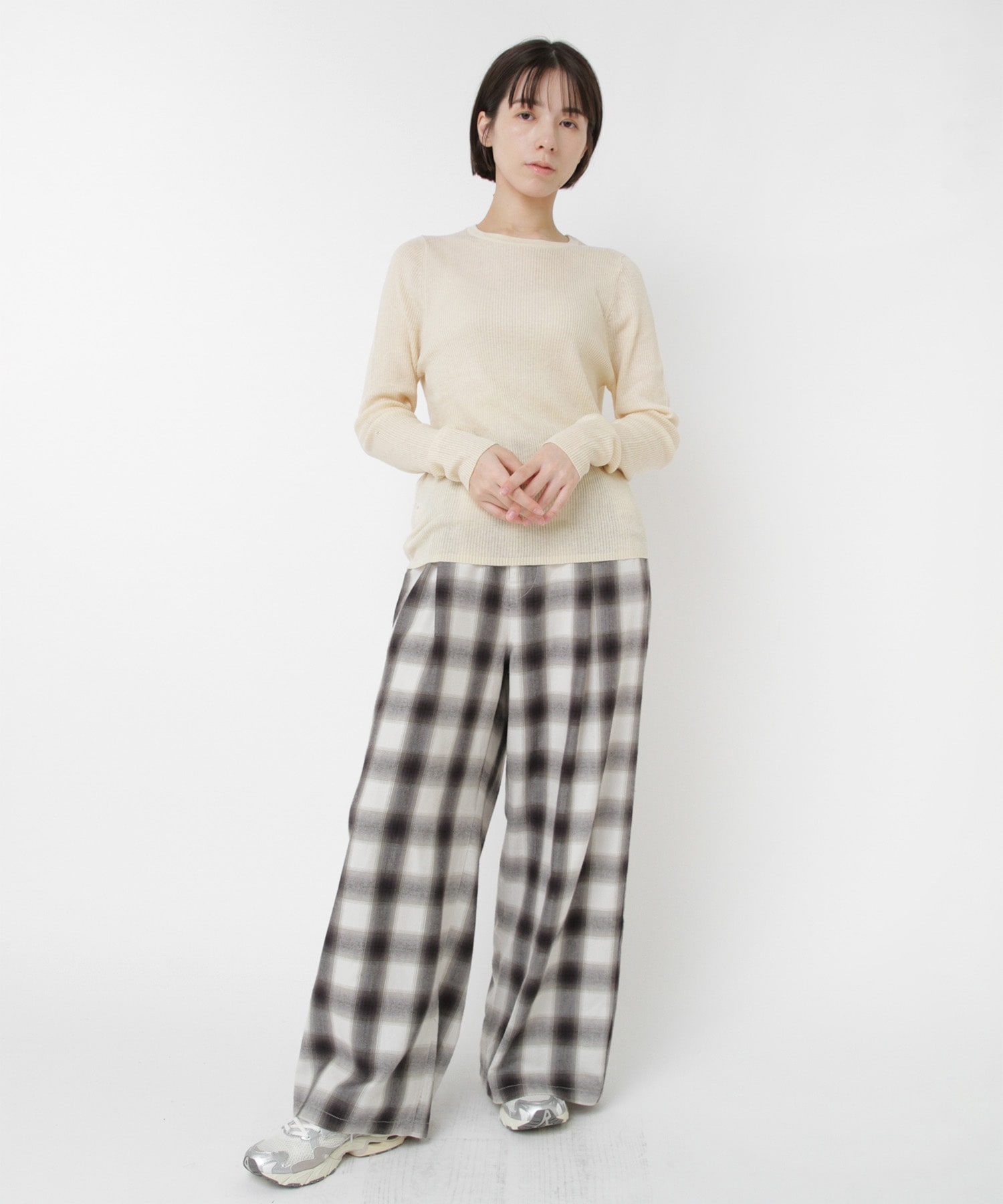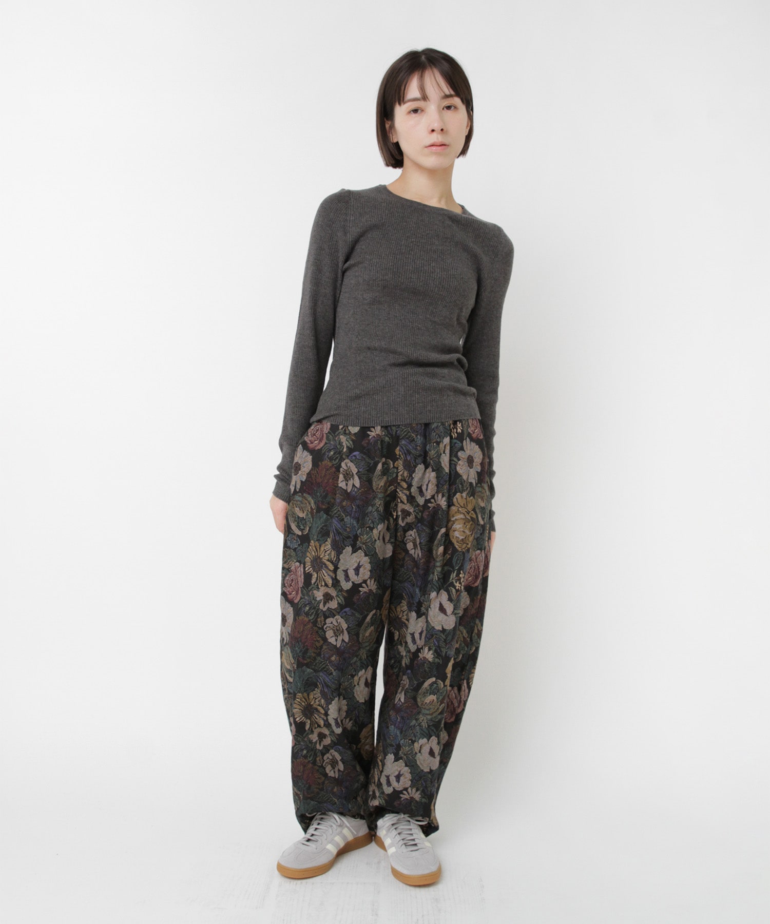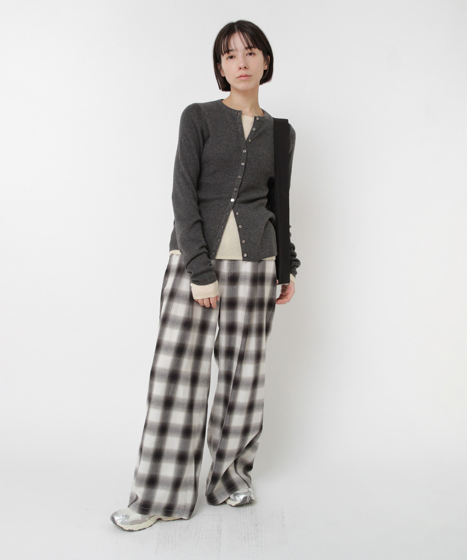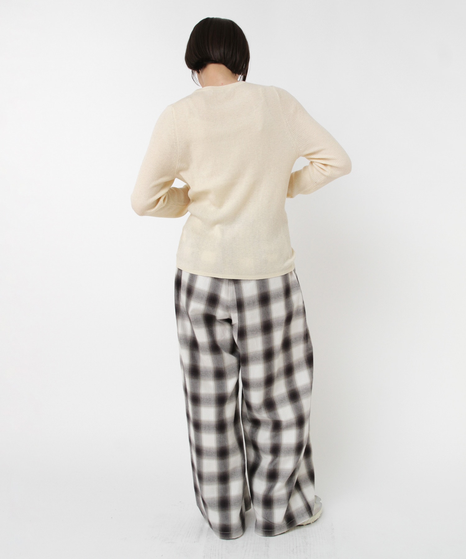 ほどよく伸縮するリブ編みながら、体のラインを拾いすぎないようにバランスよく設計されており、気負わずデイリーに着ていただける一枚に仕上げました。