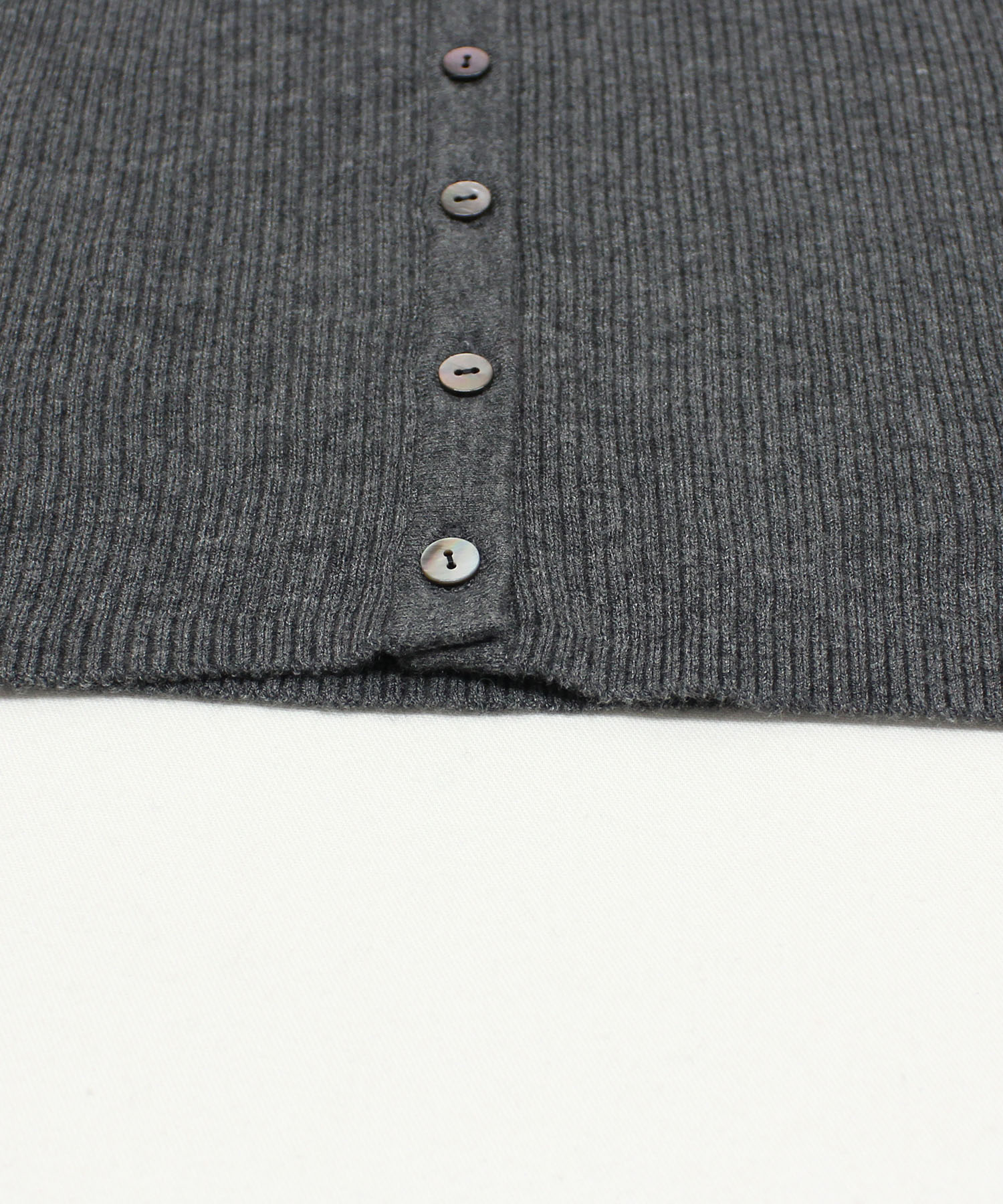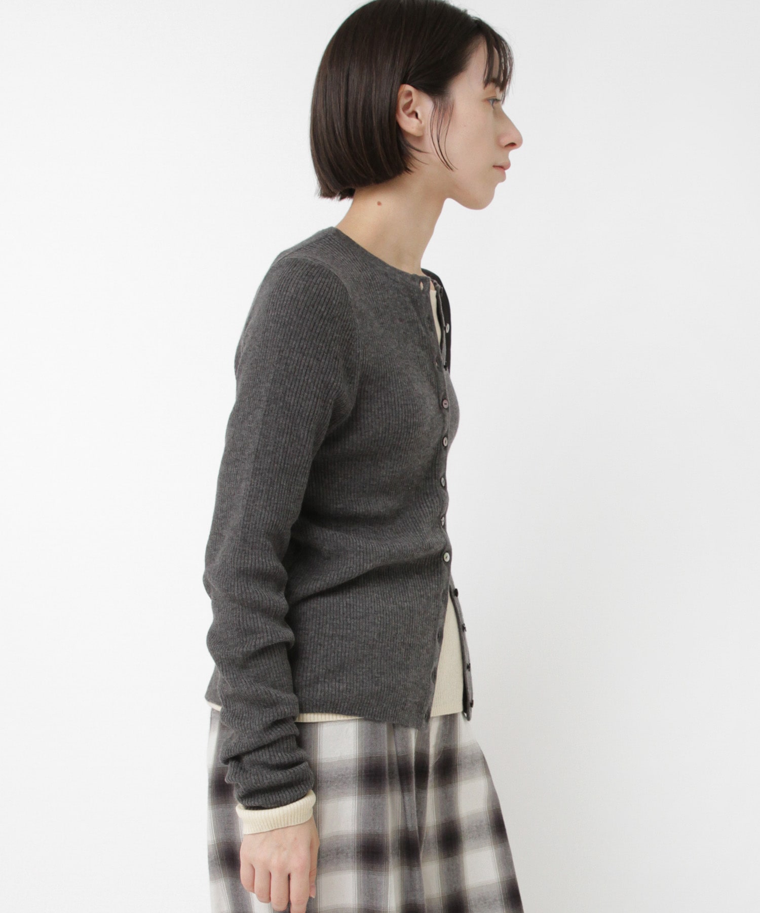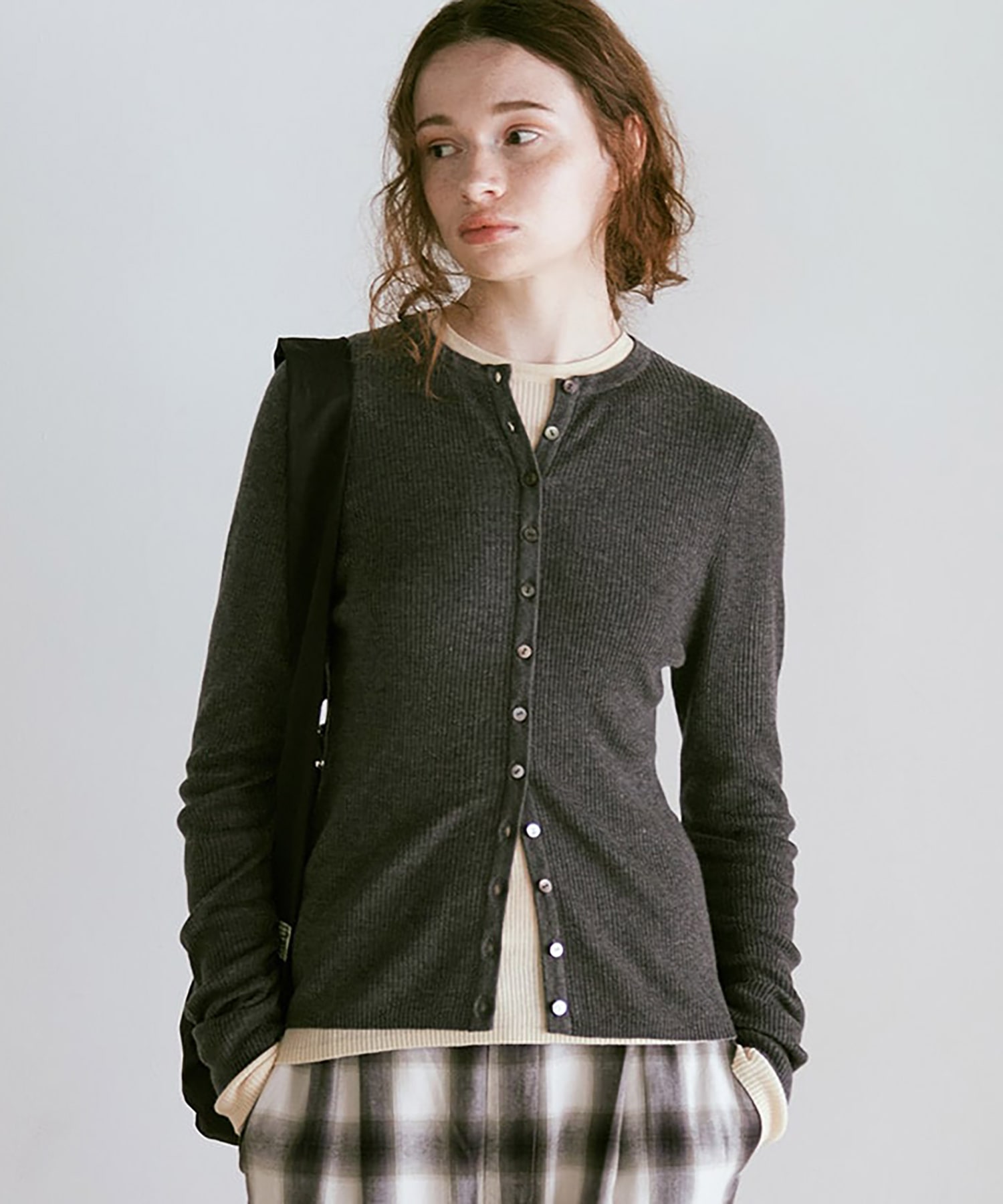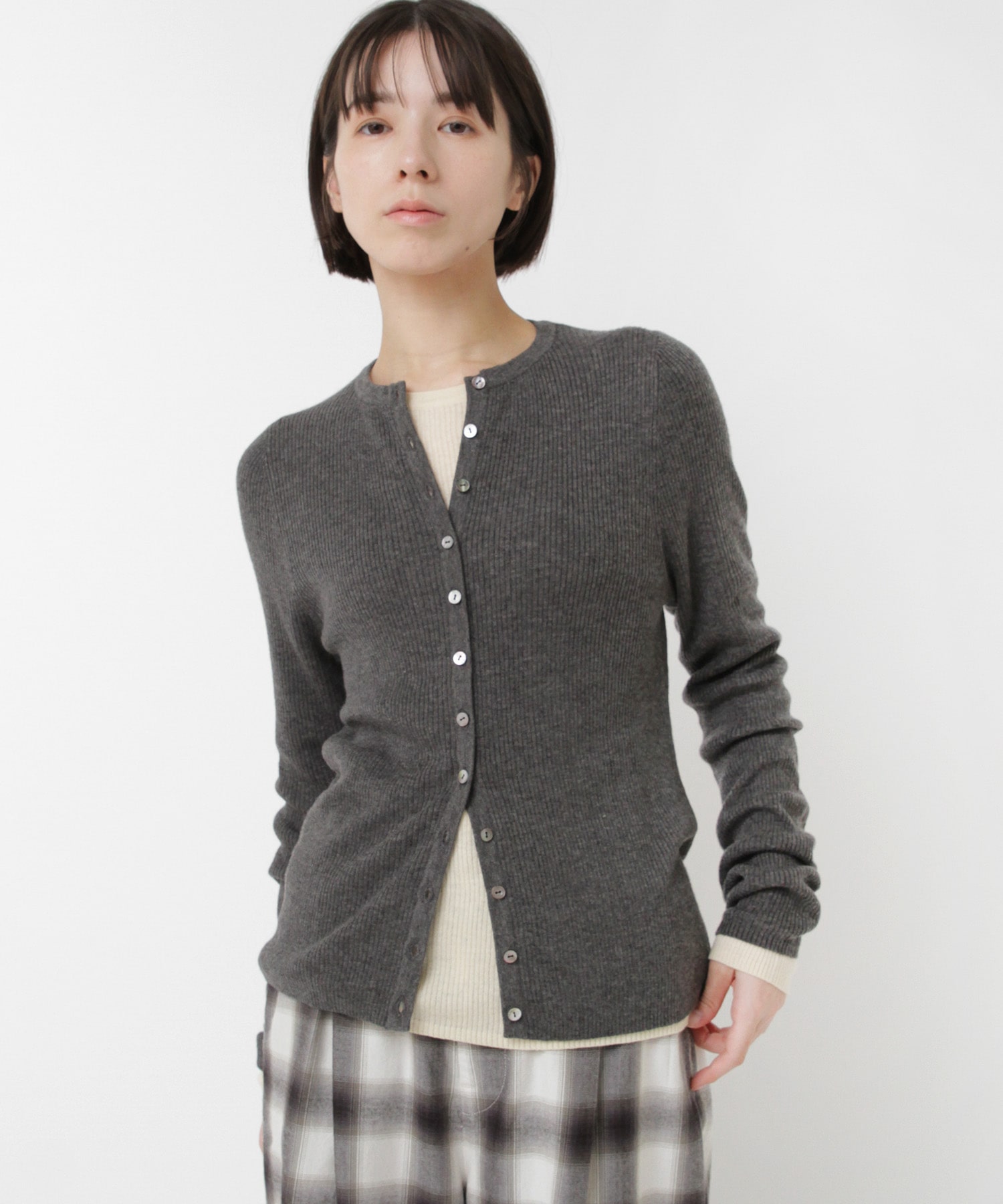 ウールとカシミヤをブレンドした素材を使用したカーディガンは、プルオーバー同様に肌ざわりの良さとリブ編みの伸縮性が魅力。