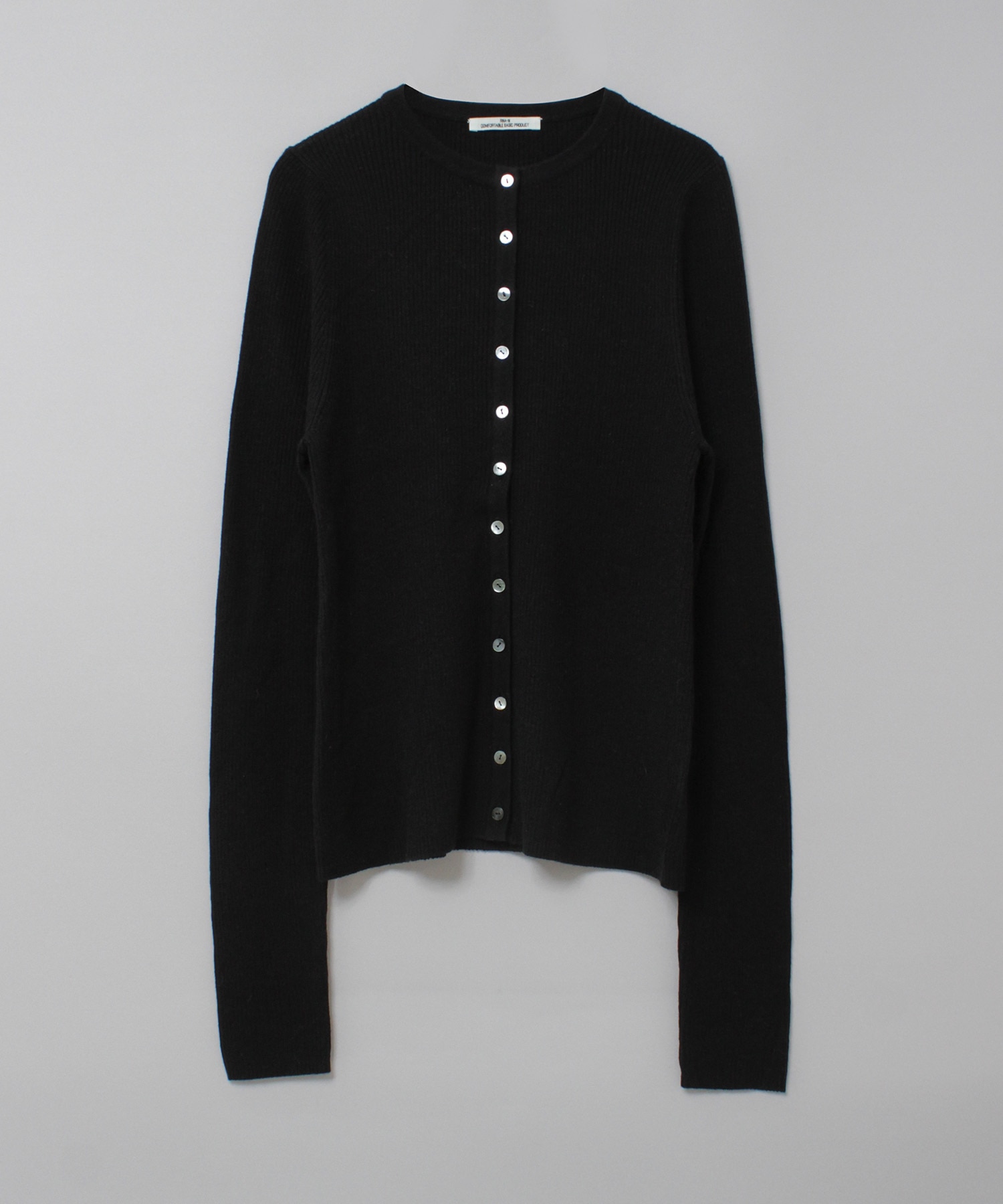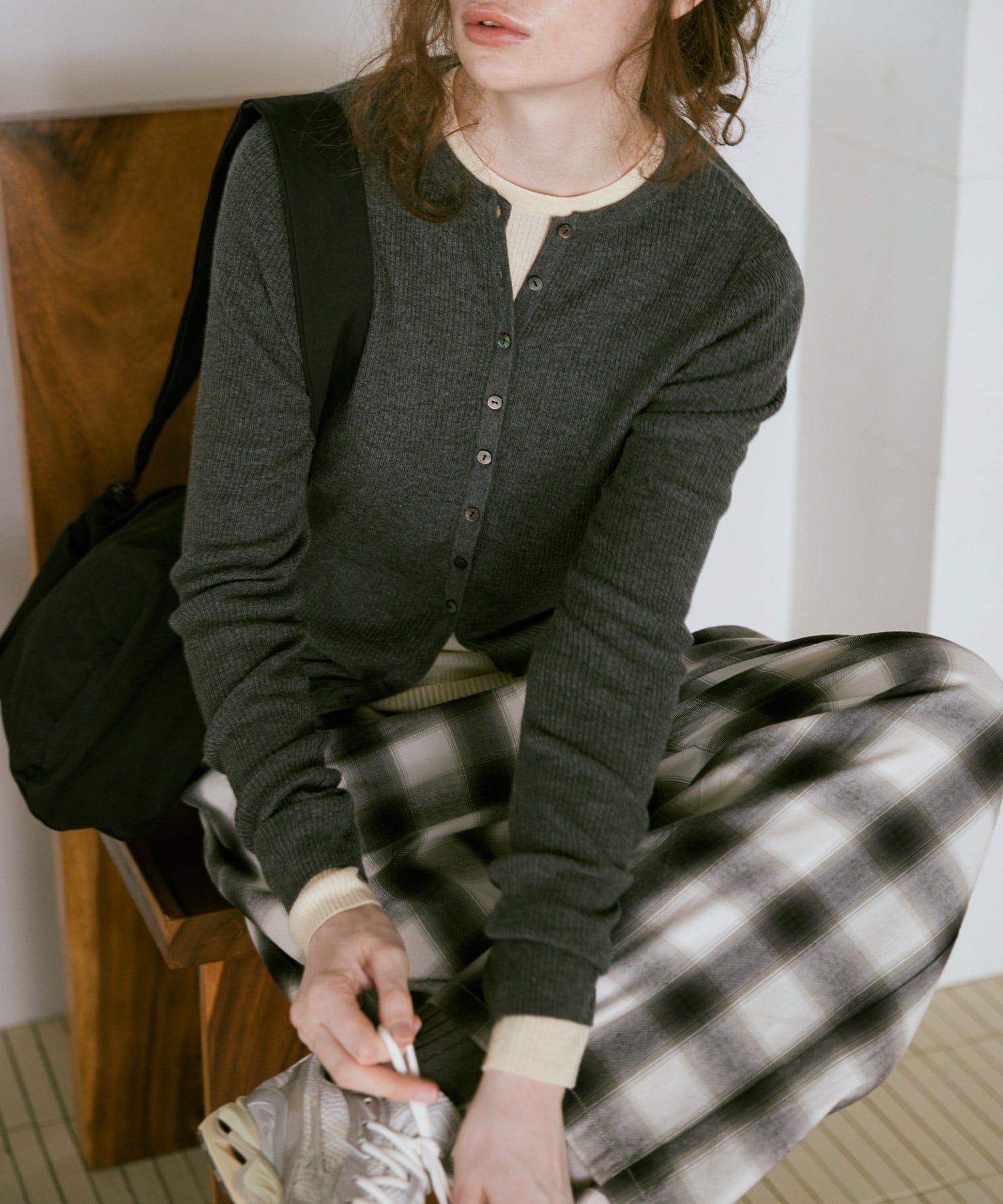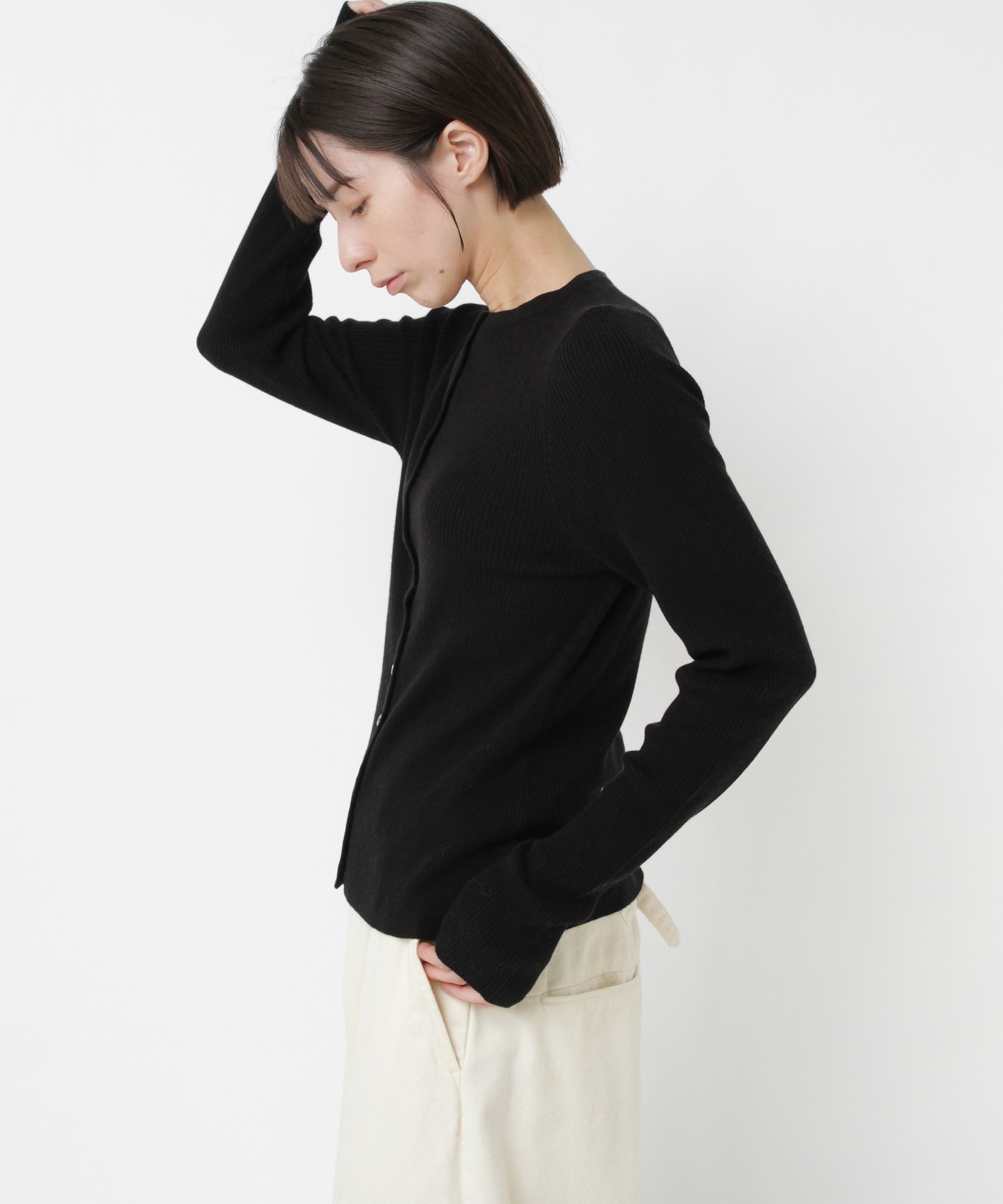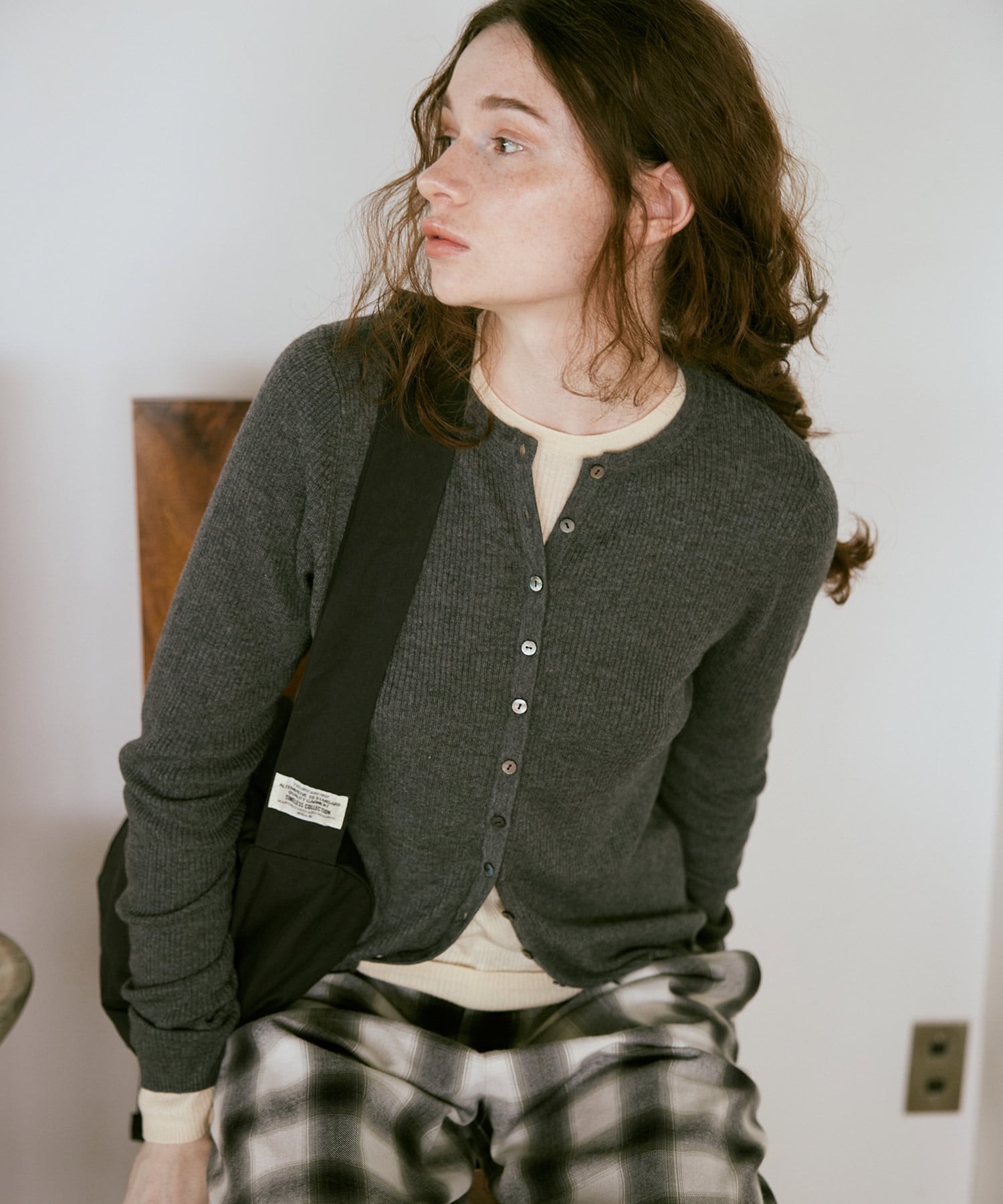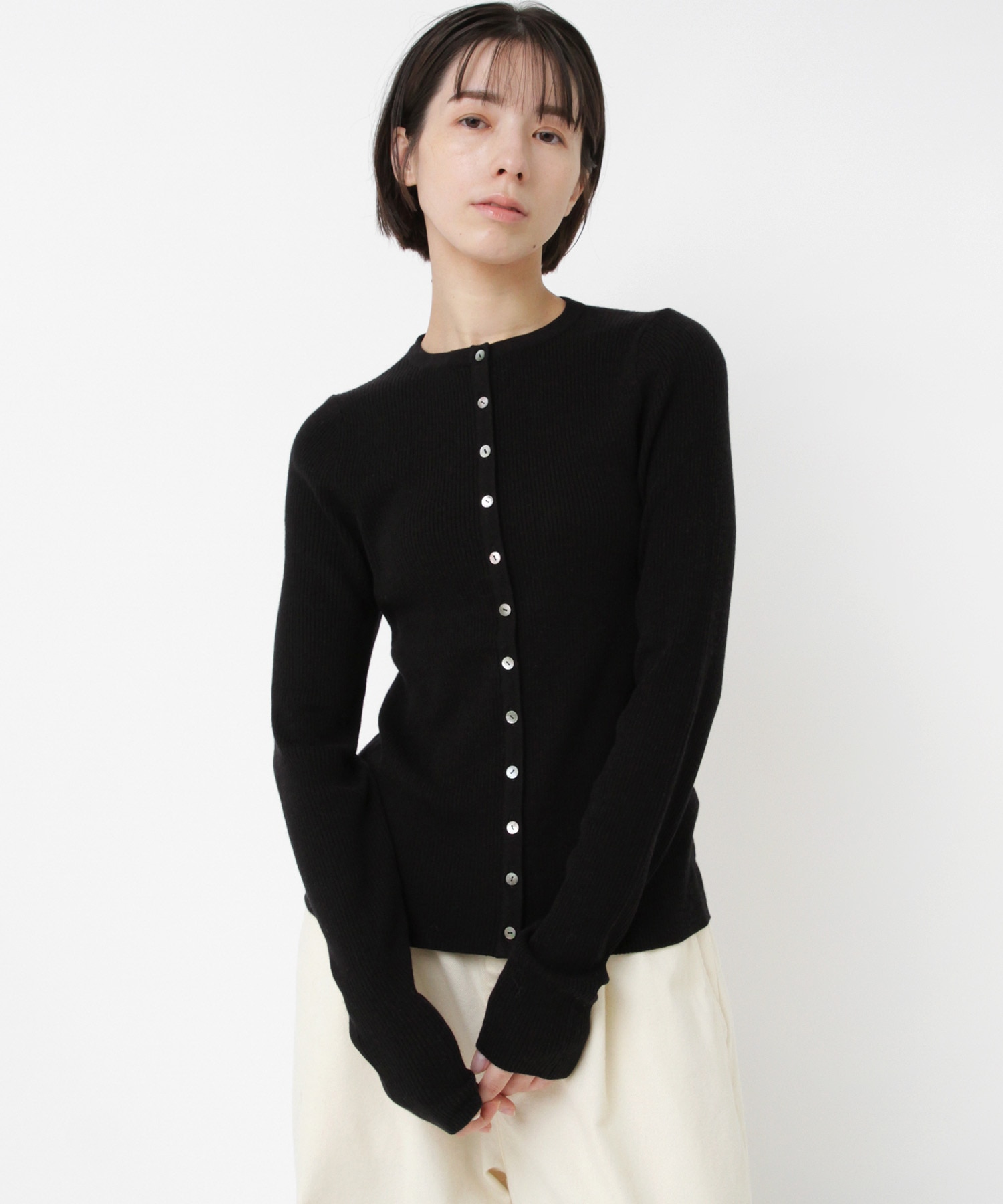 ウールとカシミヤをブレンドした素材を使用したカーディガンは、プルオーバー同様に肌ざわりの良さとリブ編みの伸縮性が魅力。