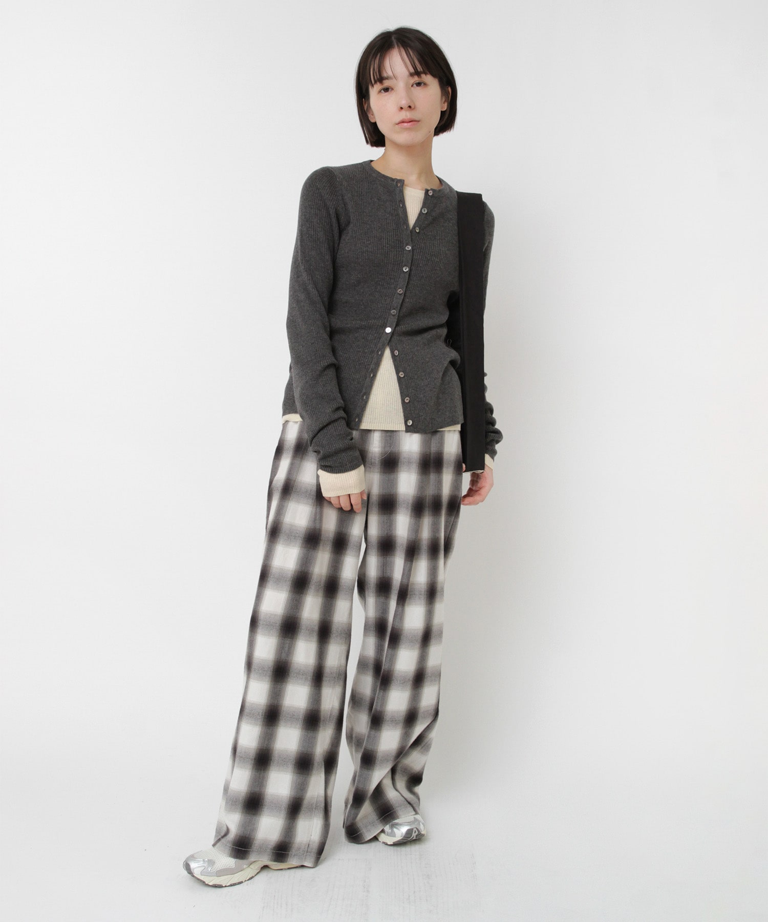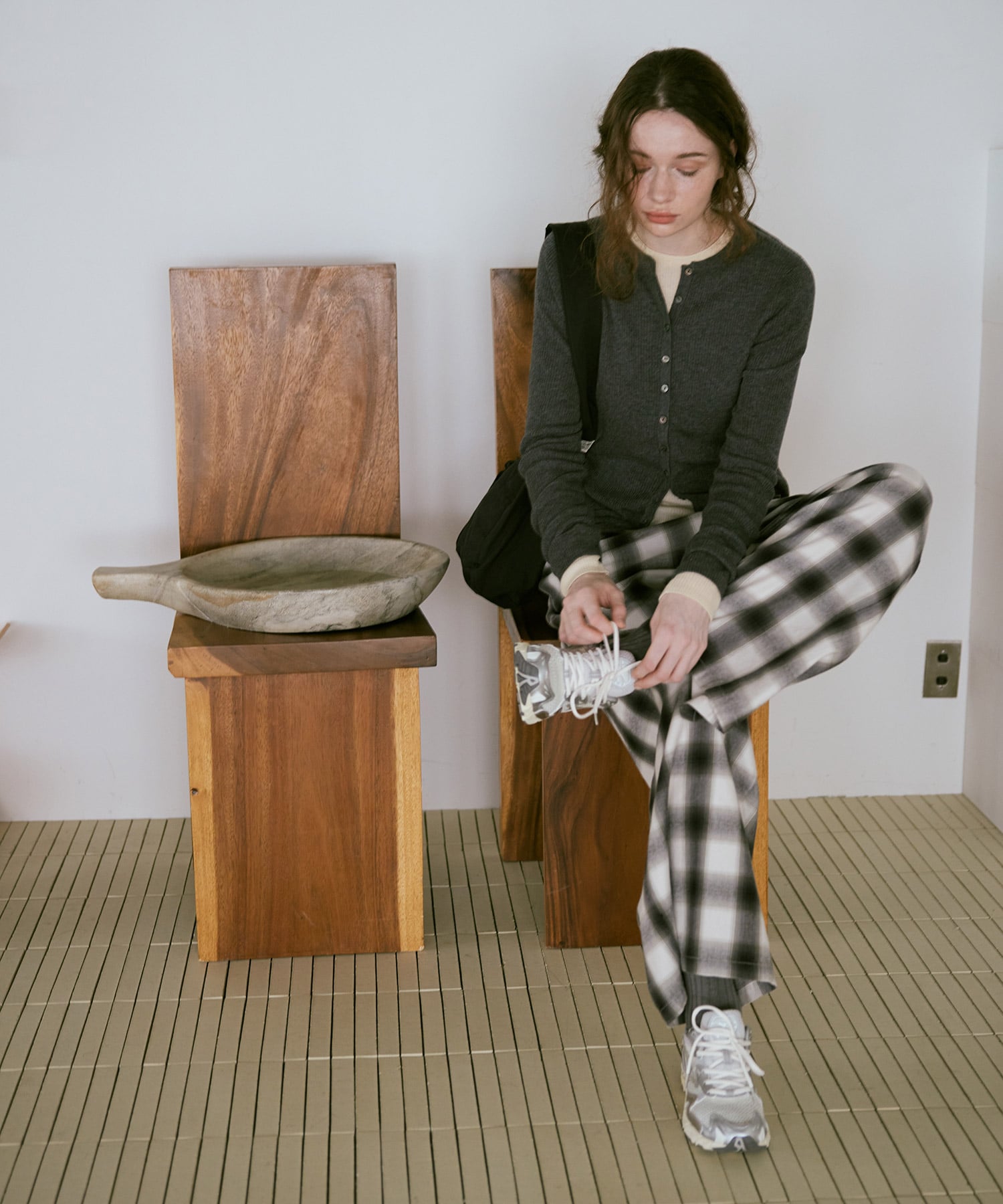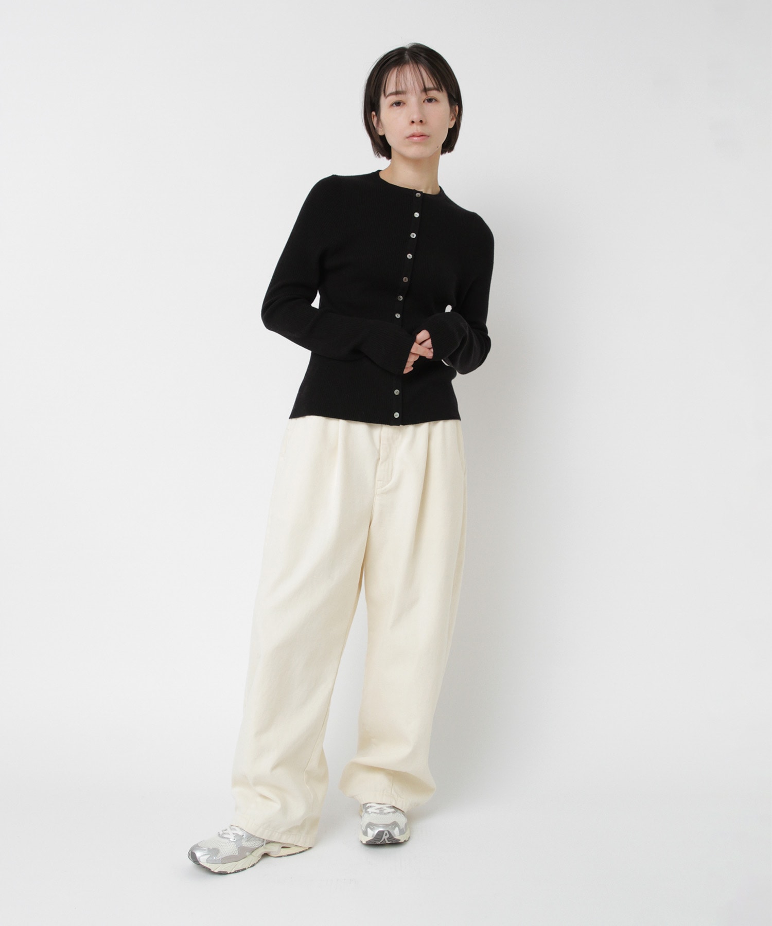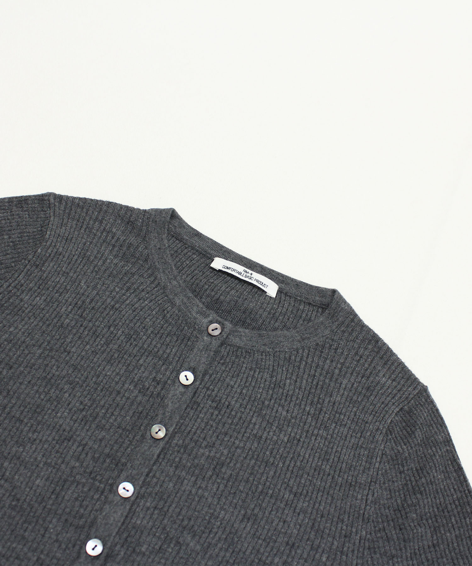 ウールとカシミヤをブレンドした素材を使用したカーディガンは、プルオーバー同様に肌ざわりの良さとリブ編みの伸縮性が魅力。