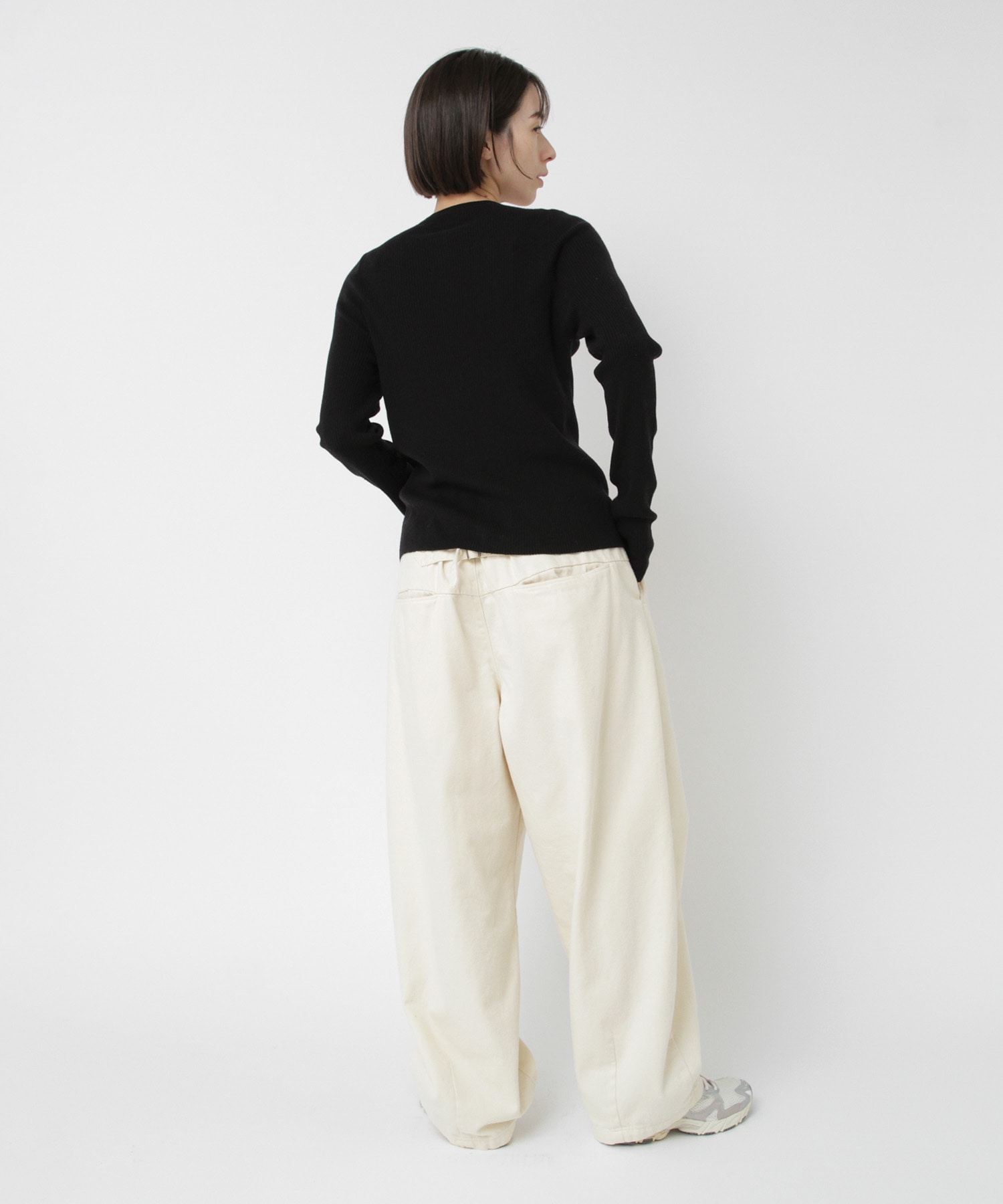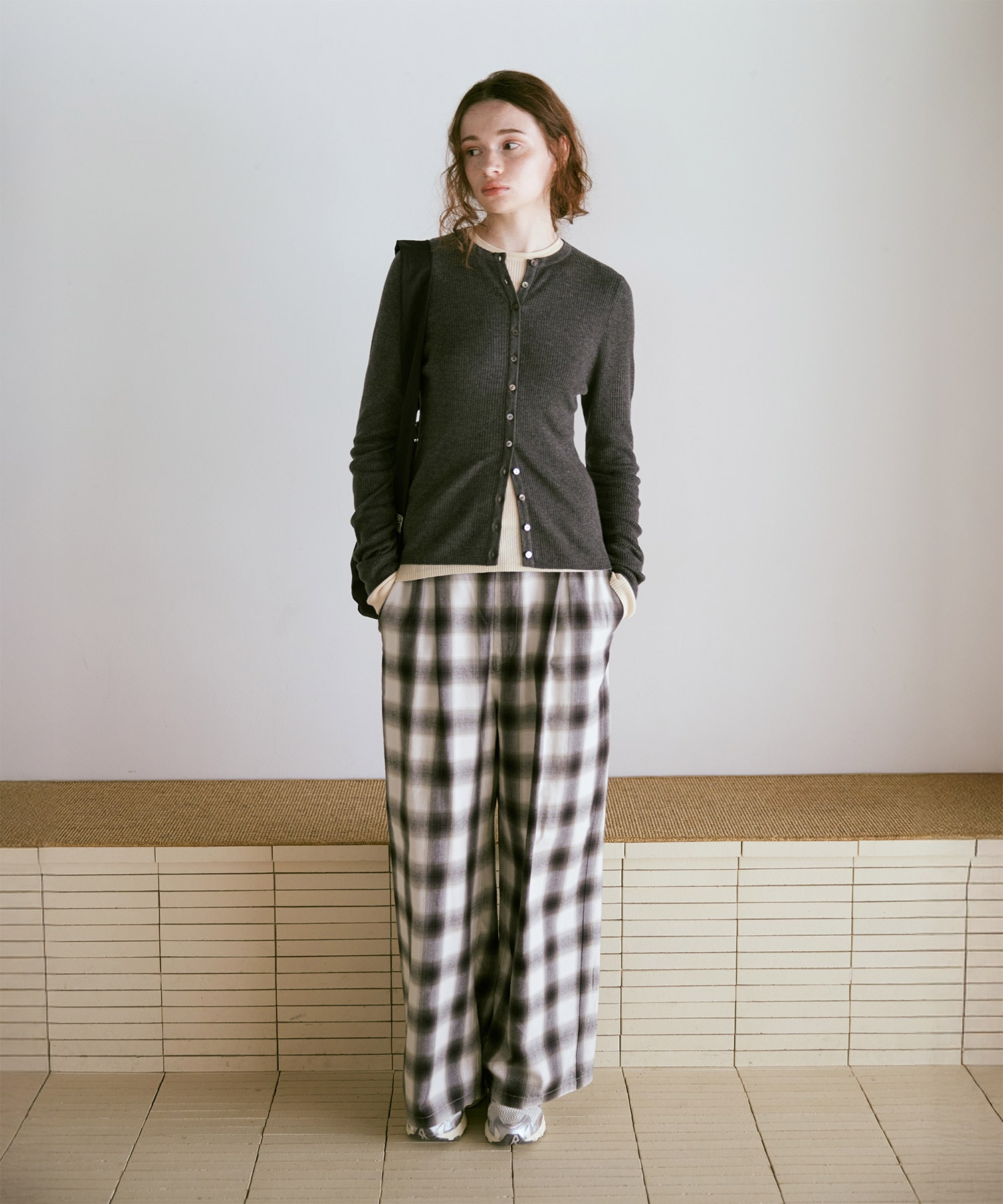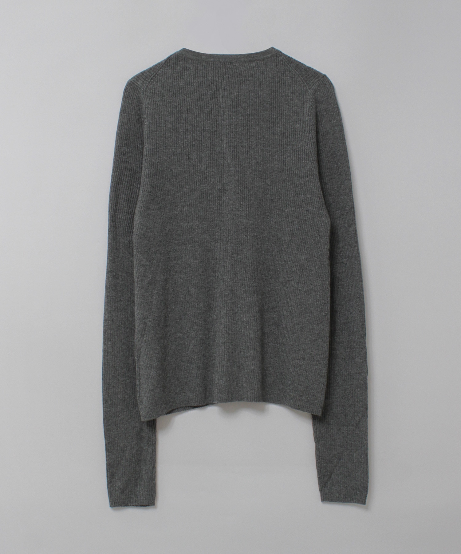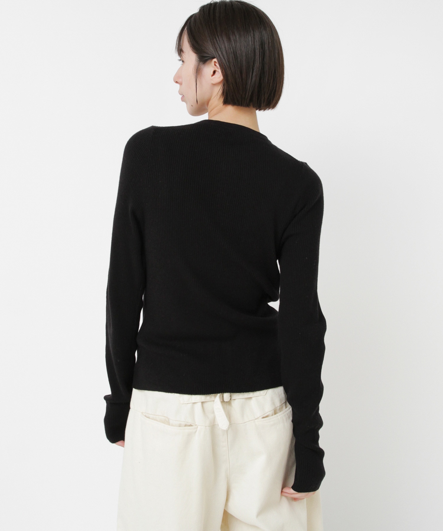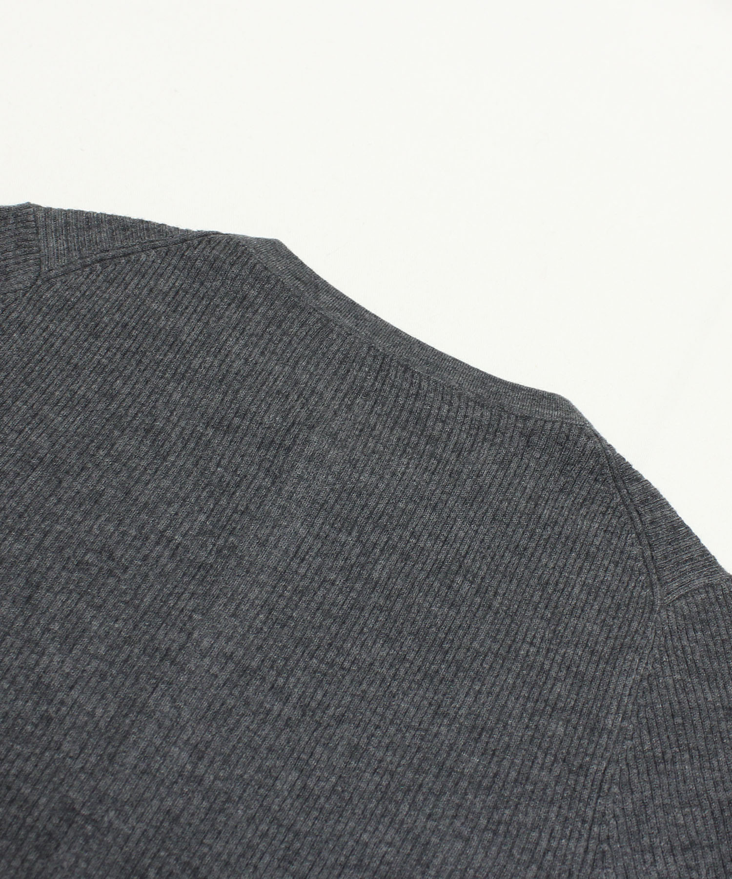 ほどよく伸縮するリブ編みながら、体のラインを拾いすぎないようにバランスよく設計されており、気負わずデイリーに着ていただける一枚に仕上げました。