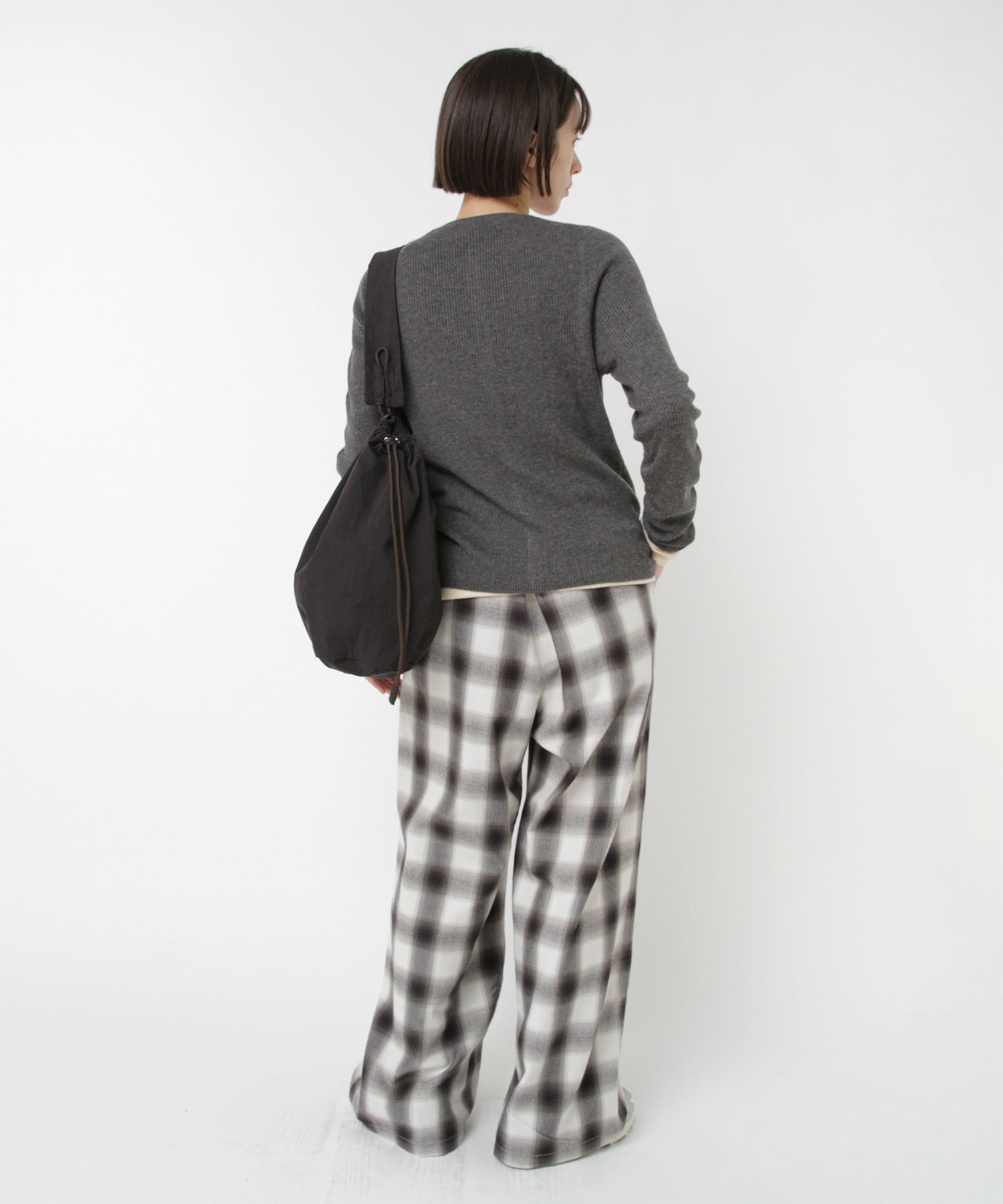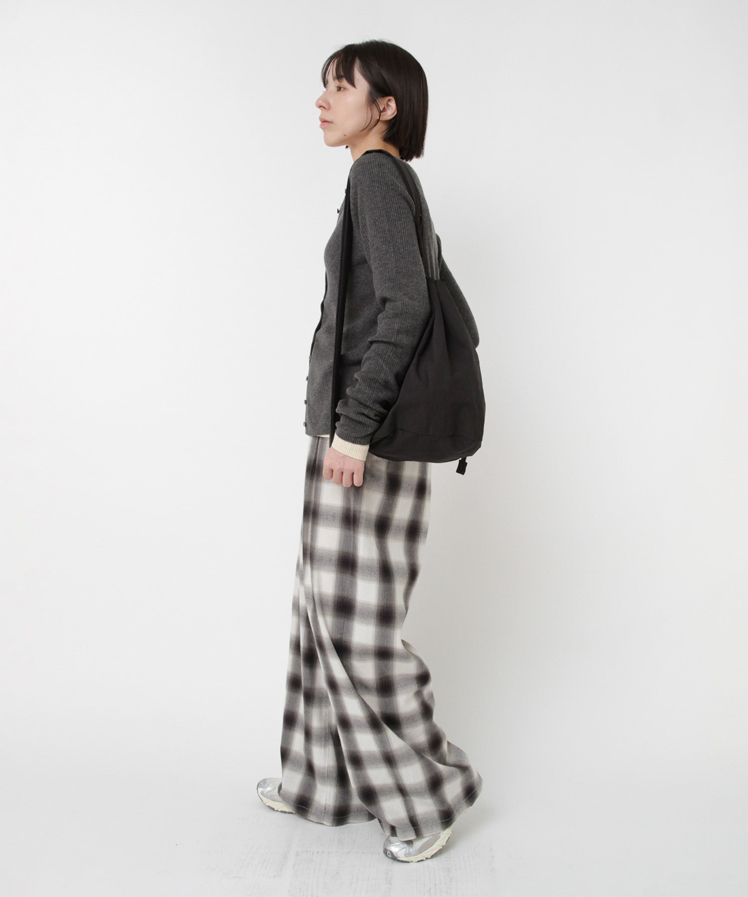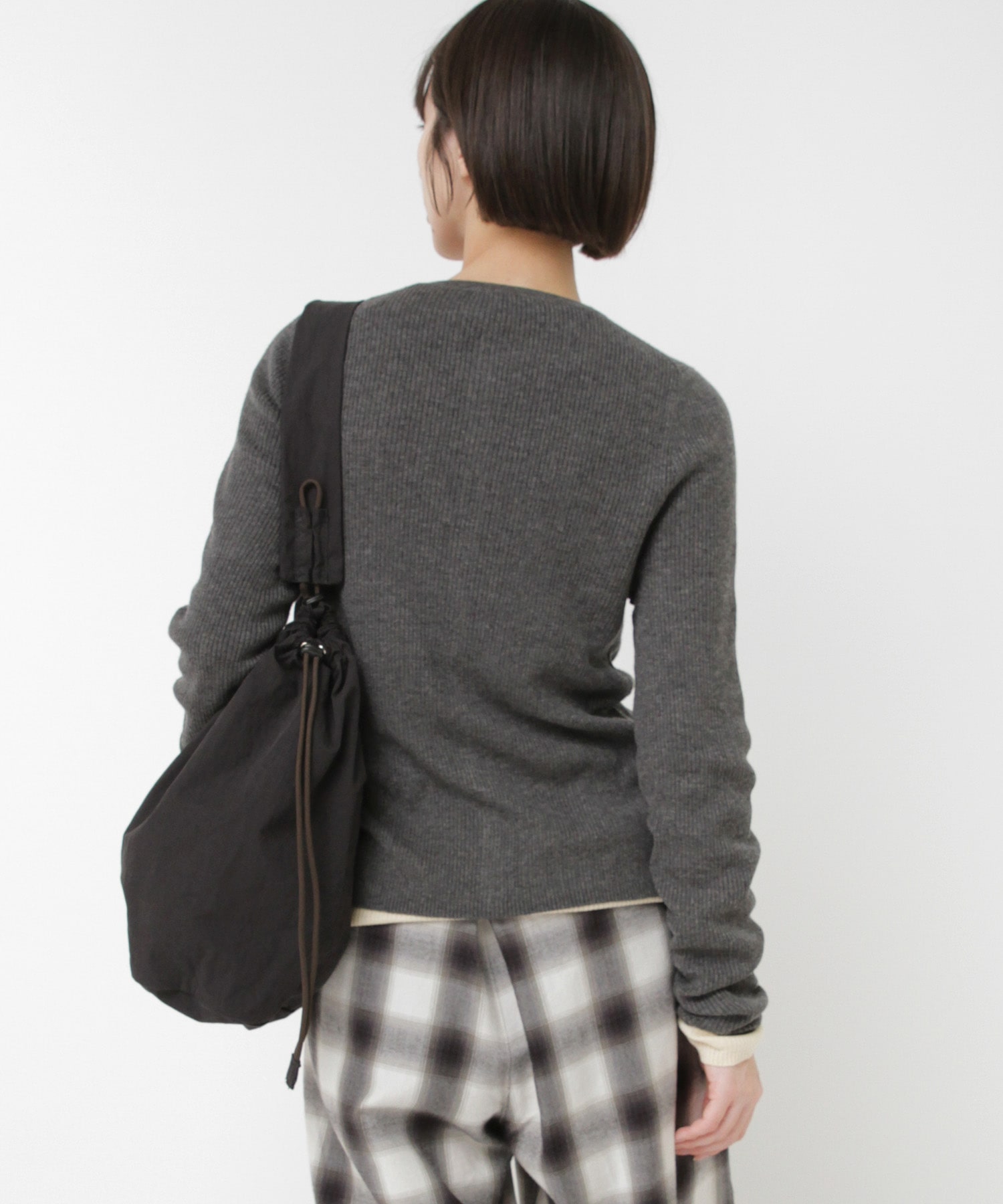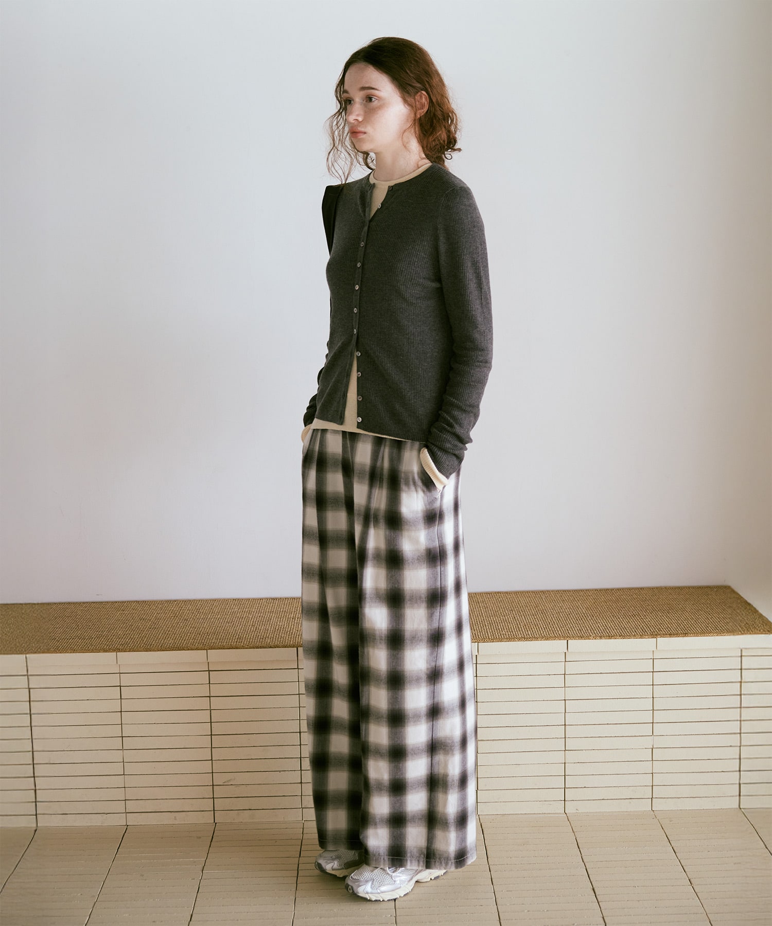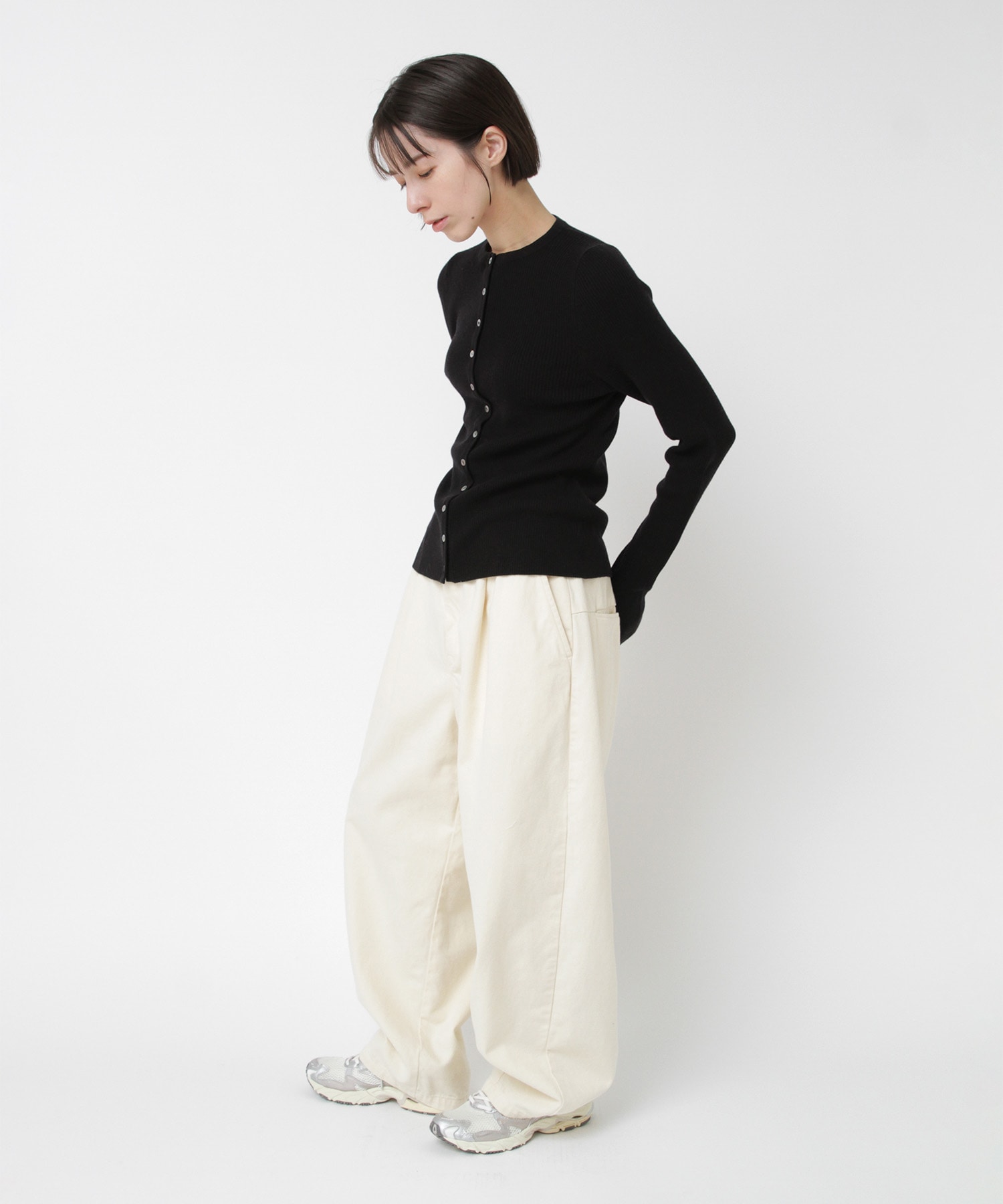 ほどよく伸縮するリブ編みながら、体のラインを拾いすぎないようにバランスよく設計されており、気負わずデイリーに着ていただける一枚に仕上げました。