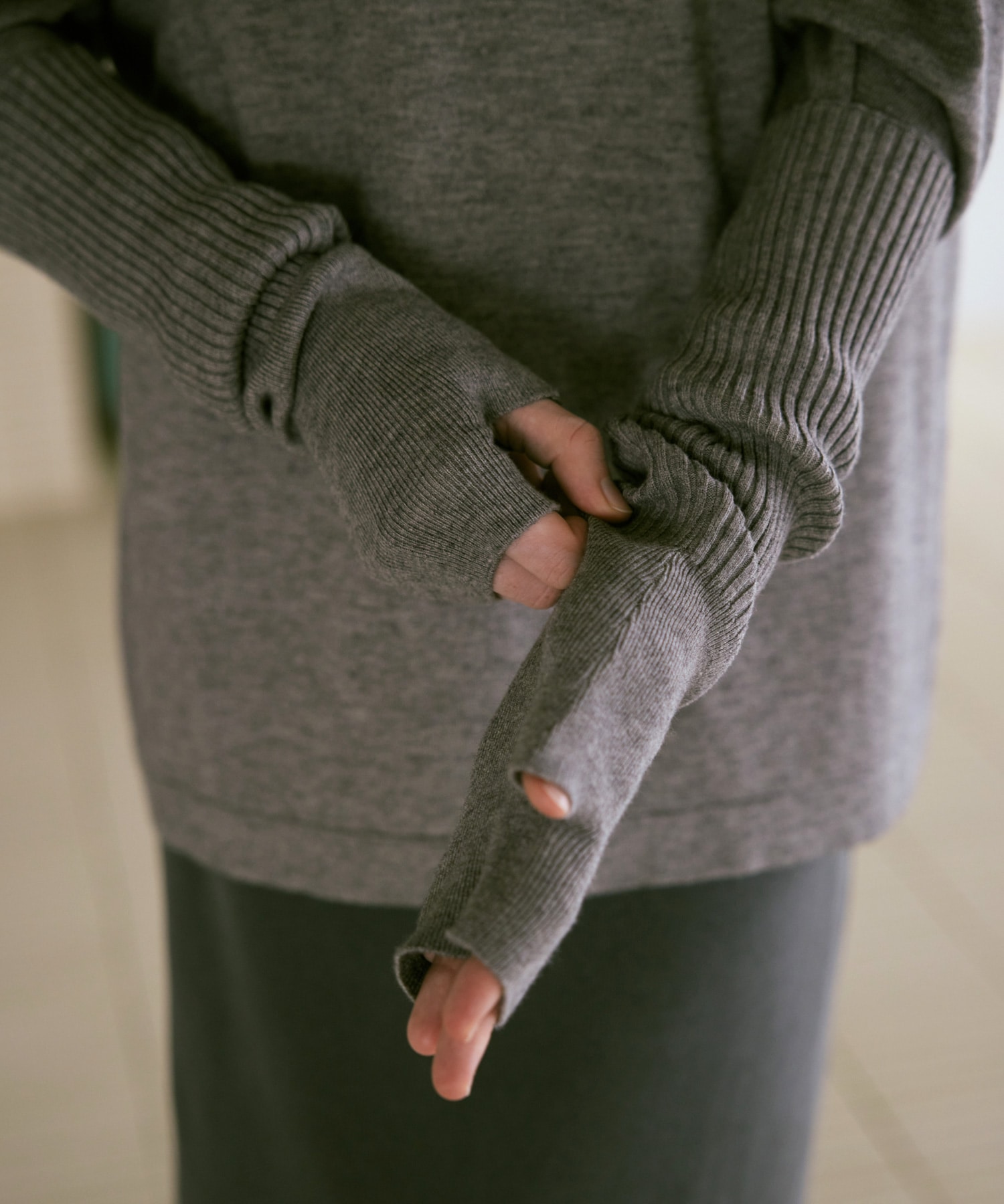 K2732 アームウォーマー付きシルキーニットプルオーバー