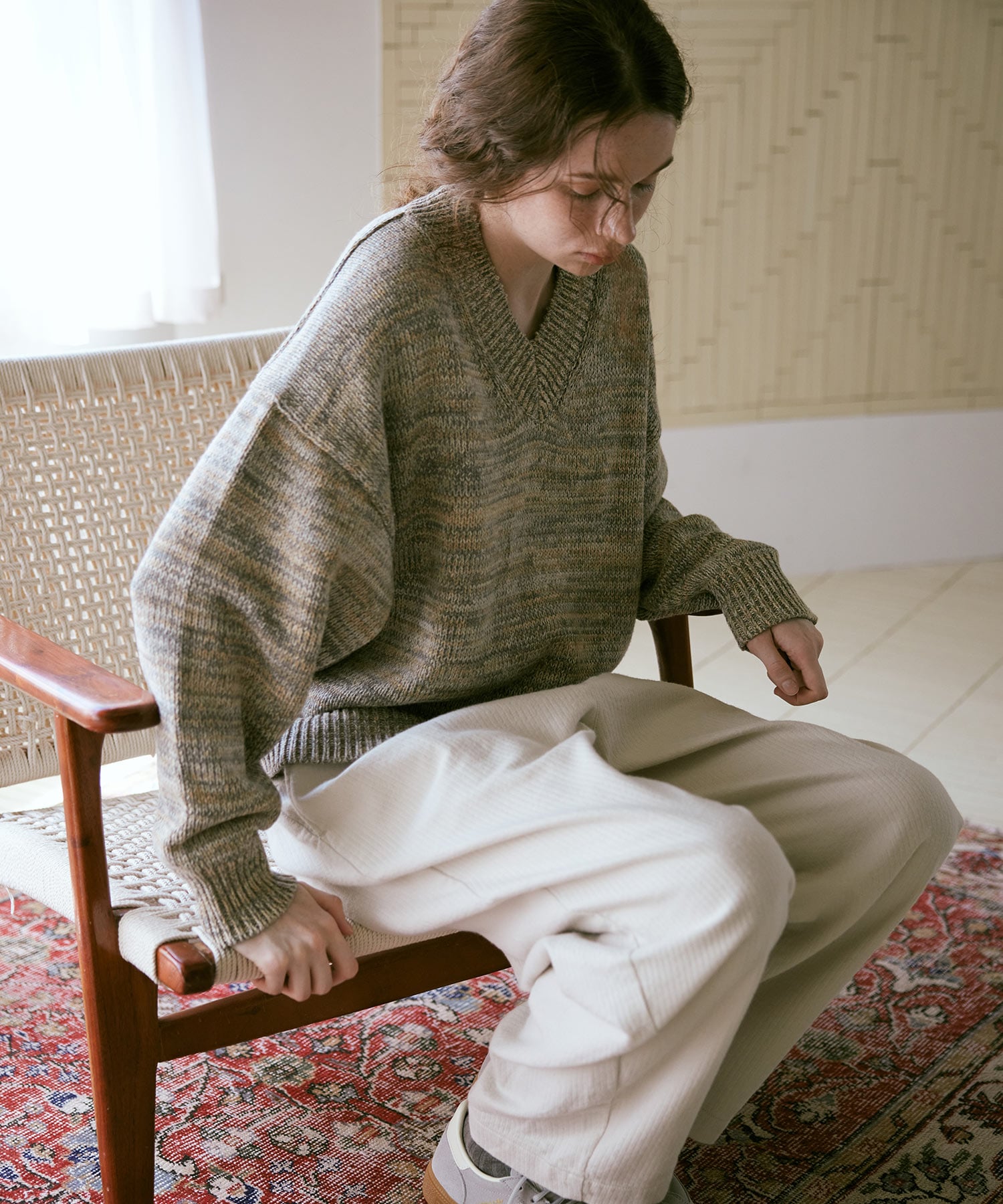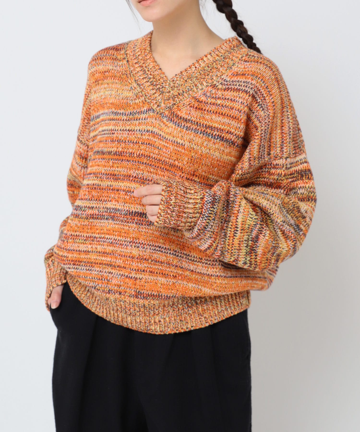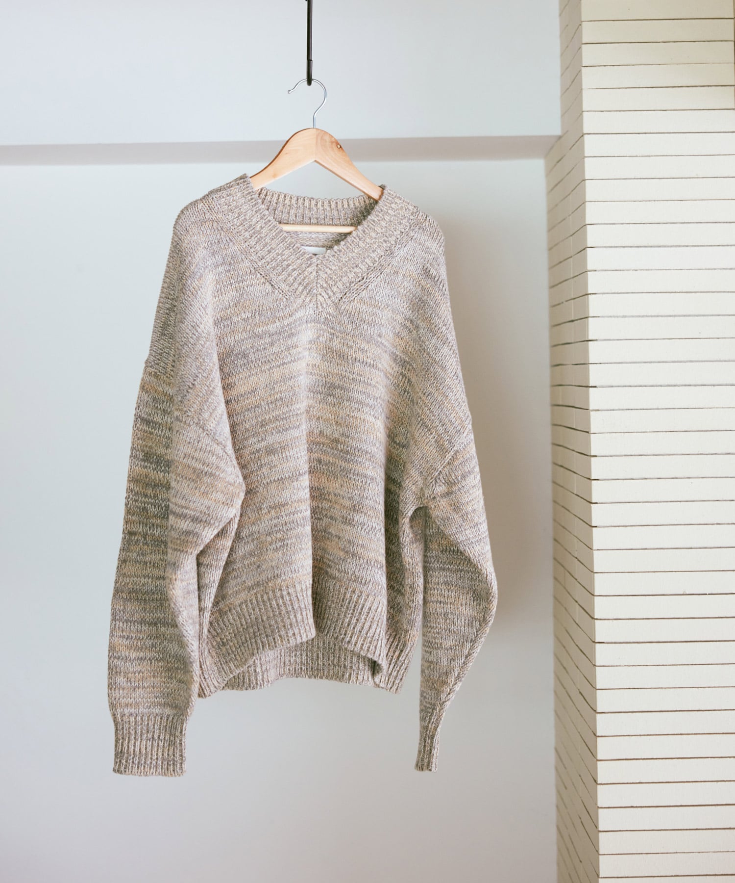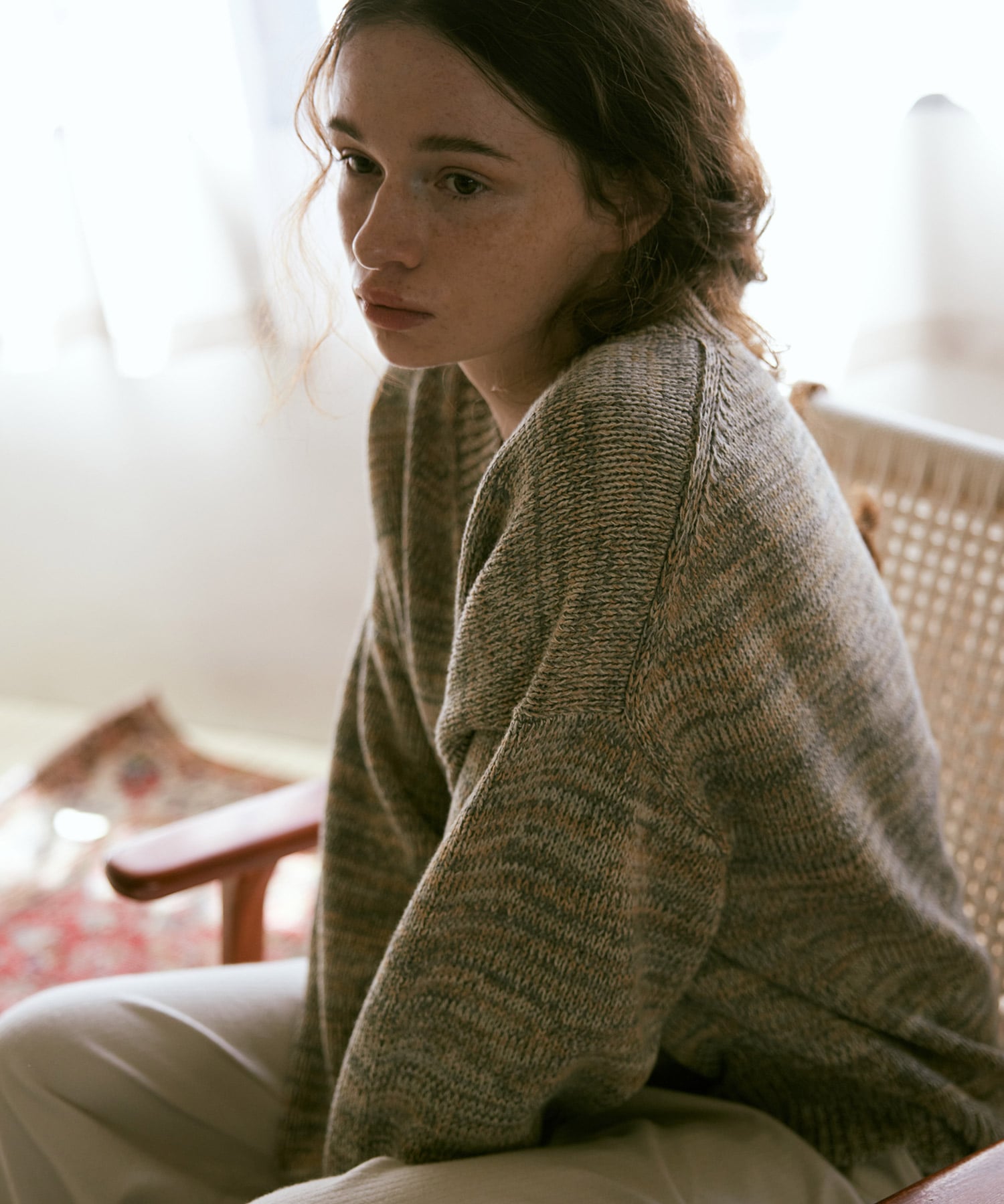 複数の色糸を組み合わせた、奥行きと深みのあるニットトップス。