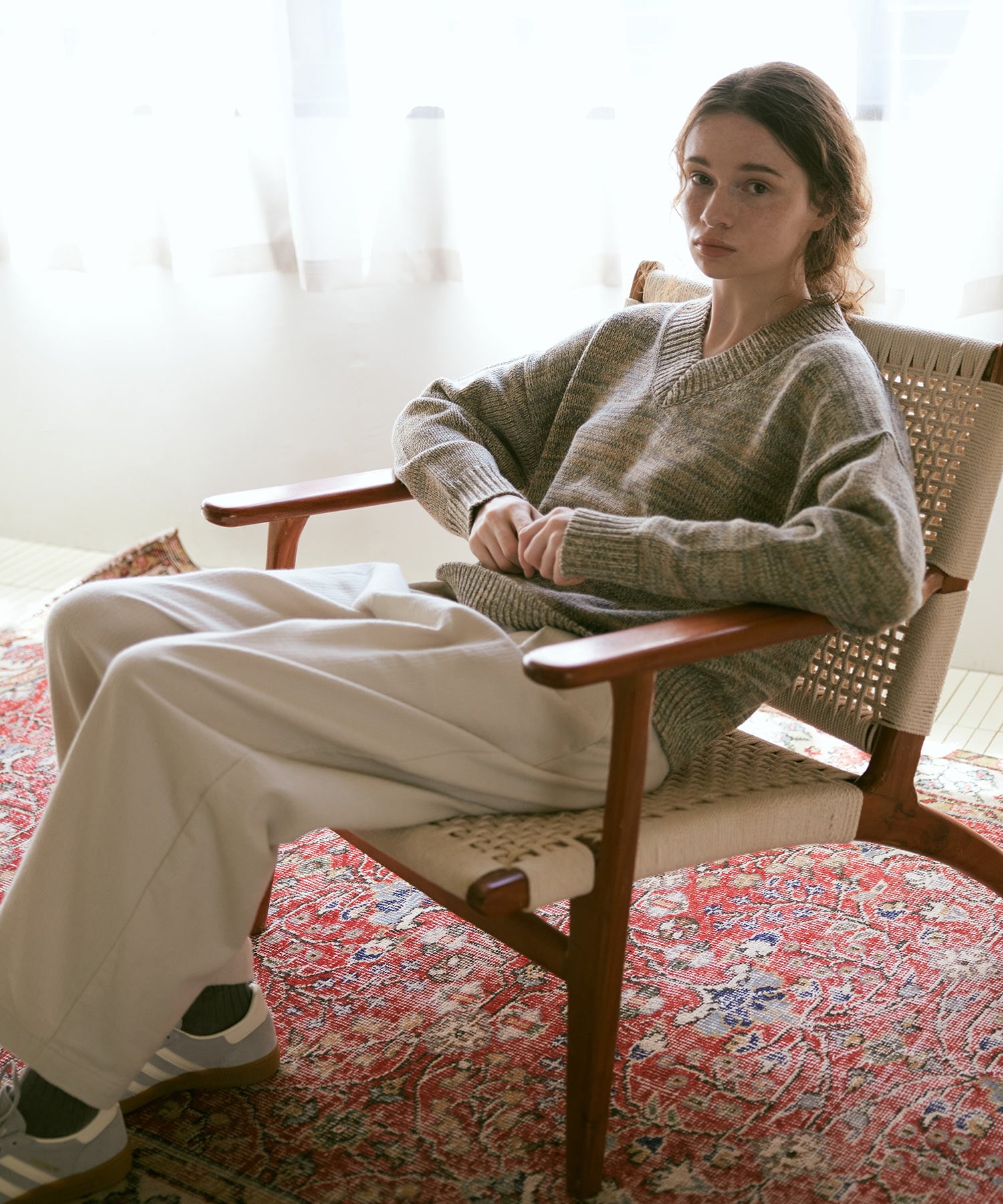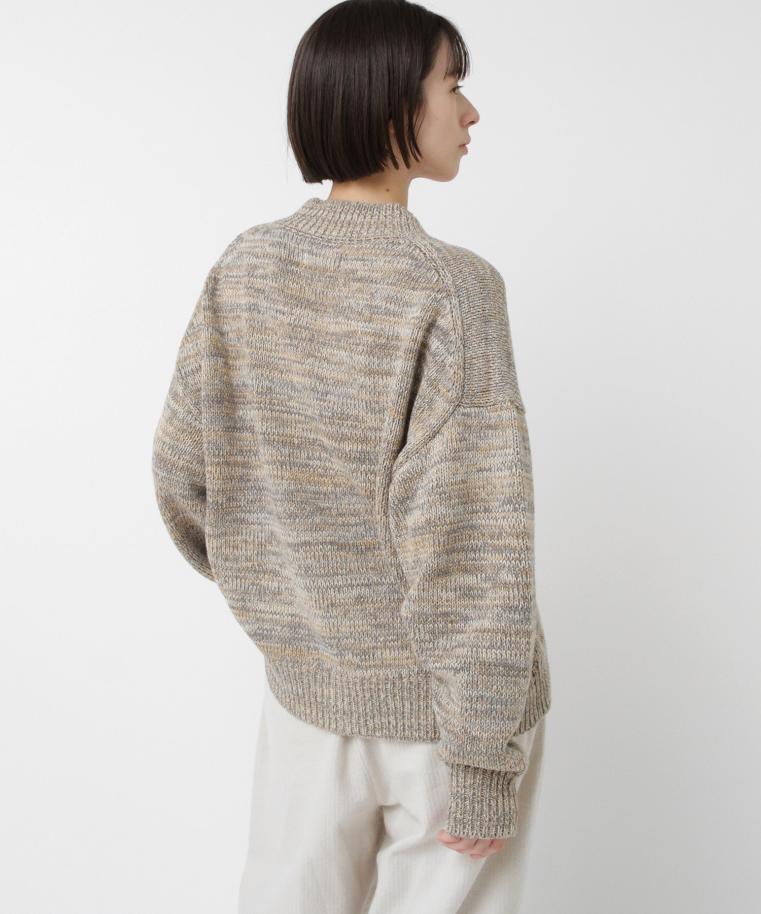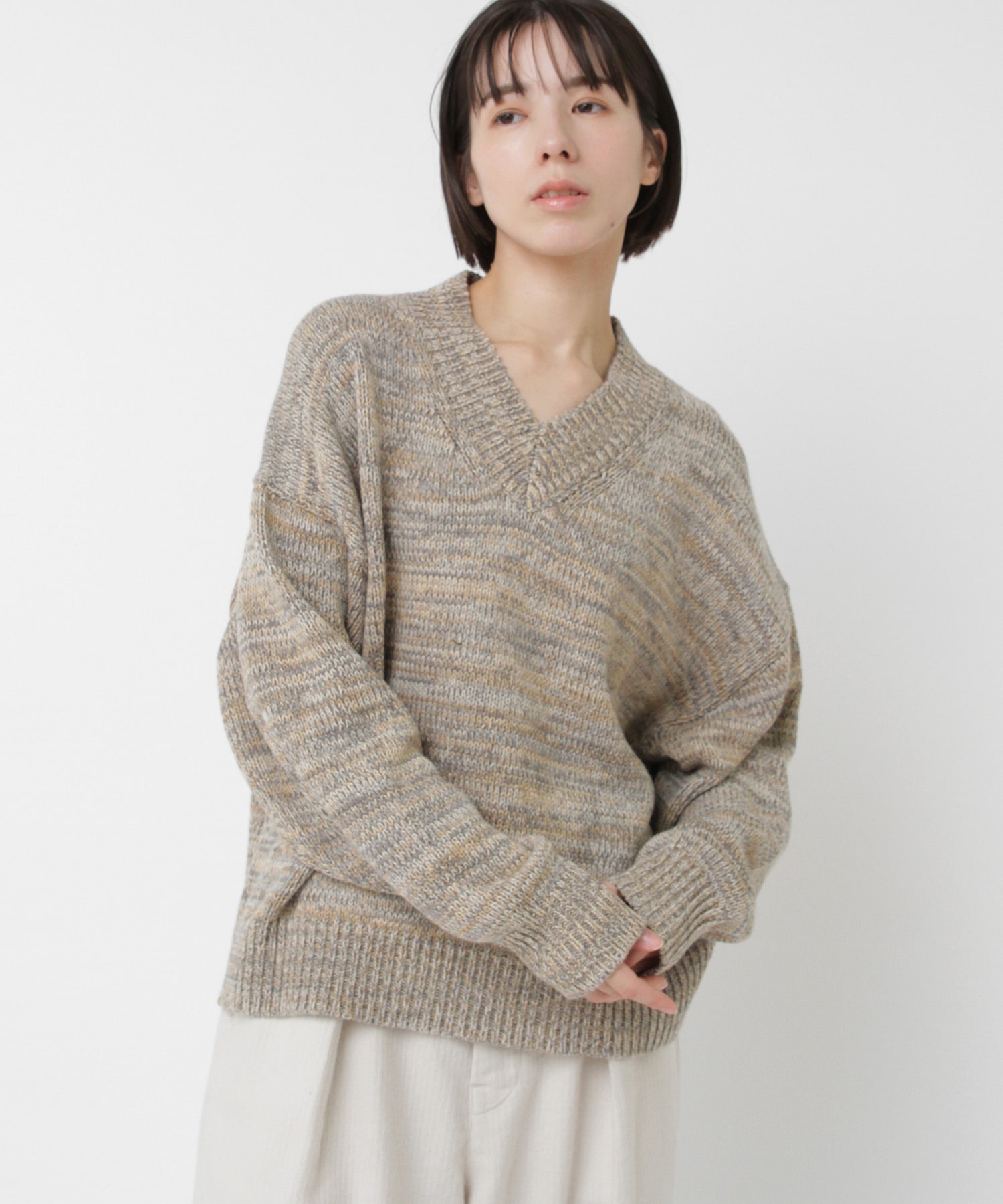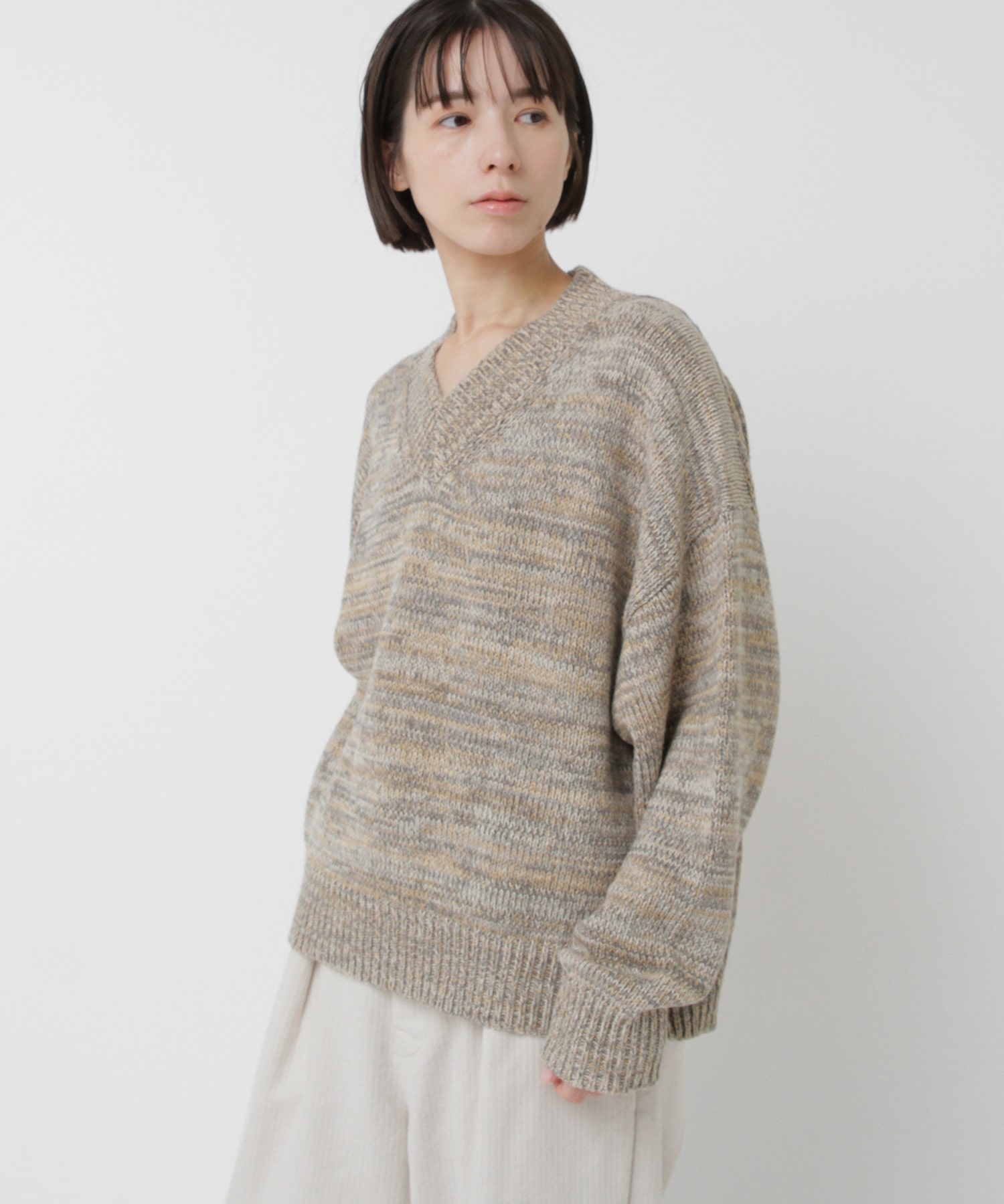複数の色糸を組み合わせた、奥行きと深みのあるニットトップス。