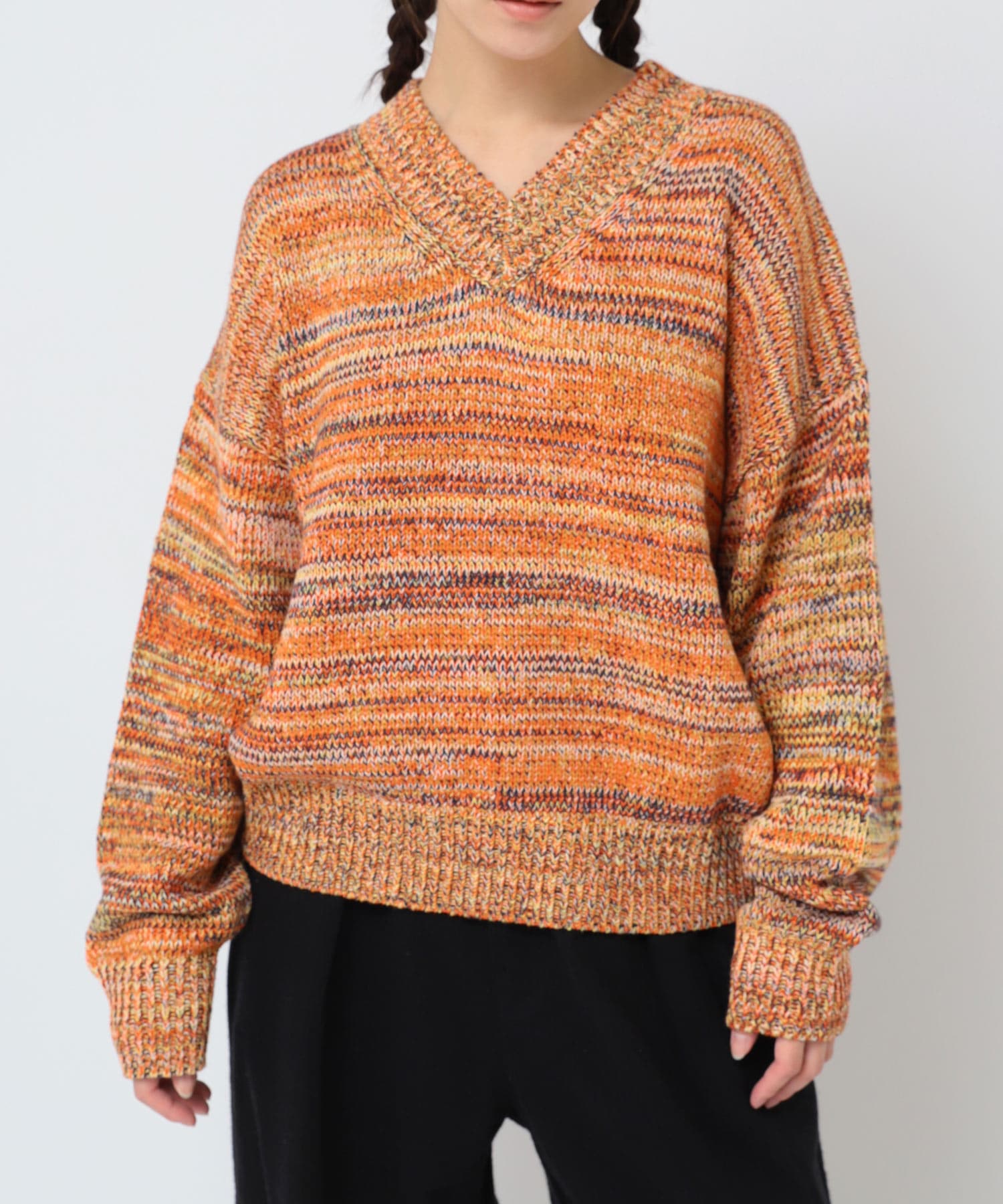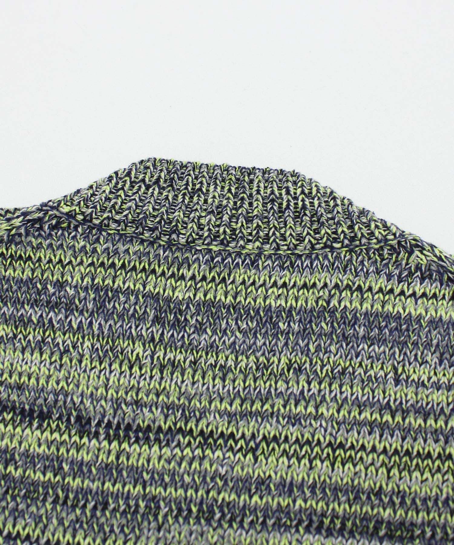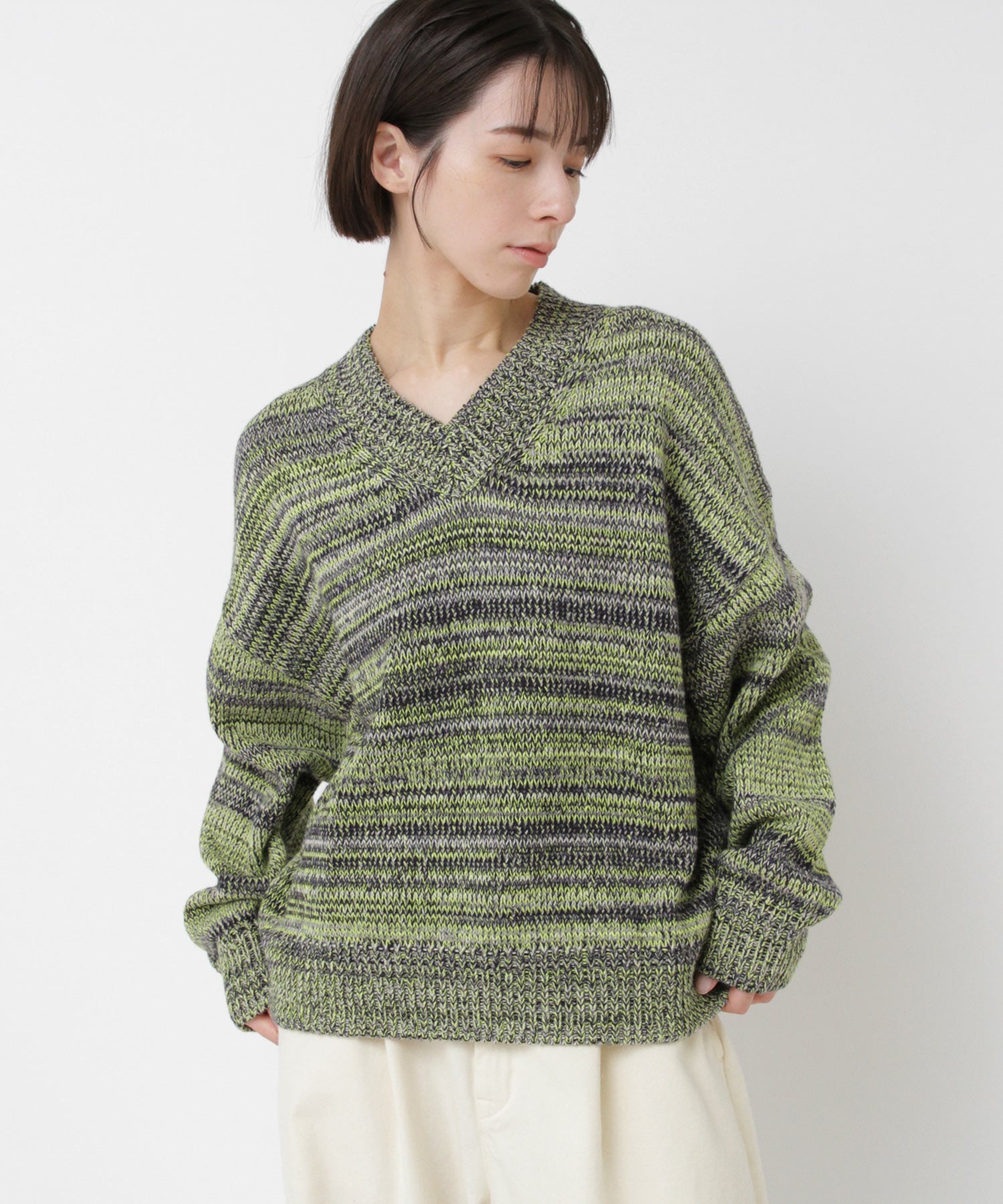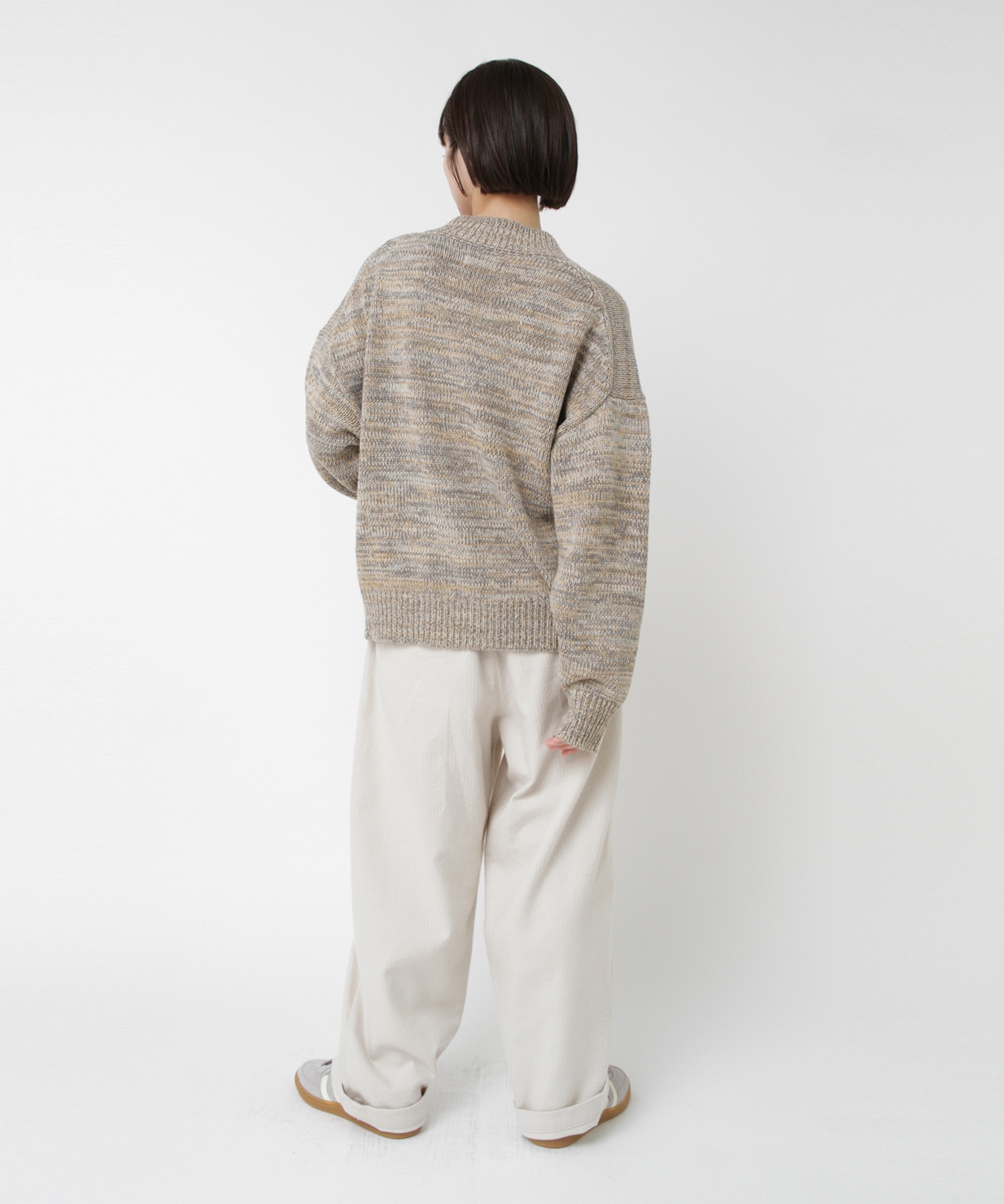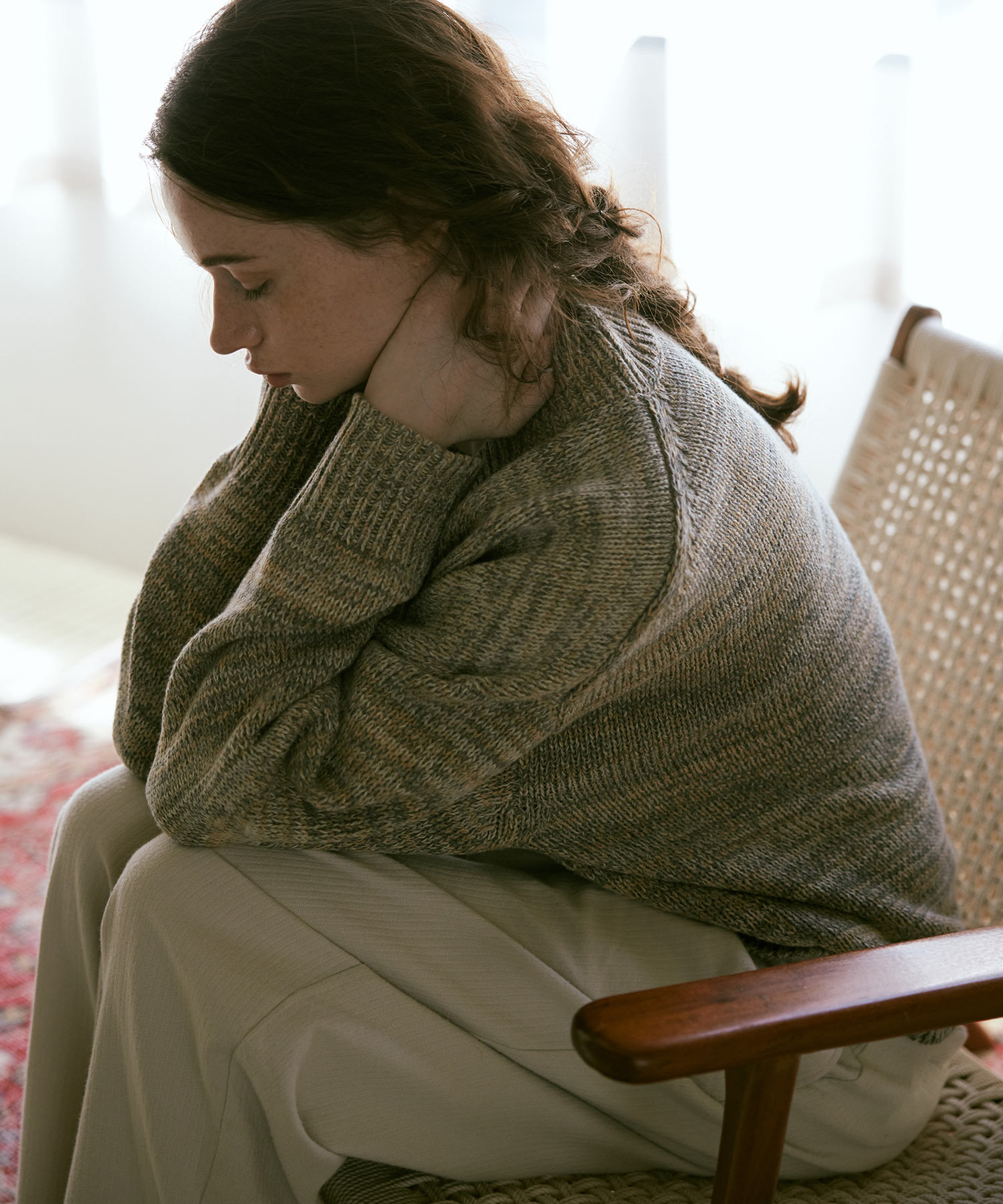 複数の色糸を組み合わせた、奥行きと深みのあるニットトップス。
