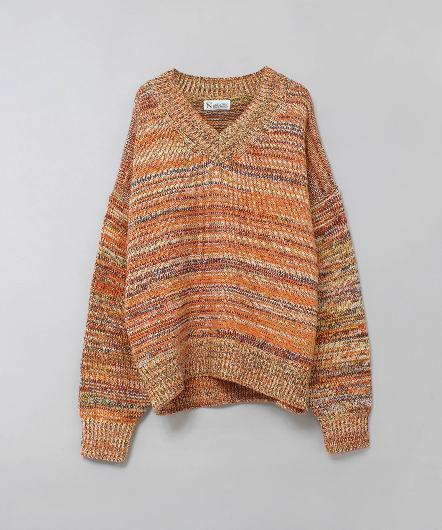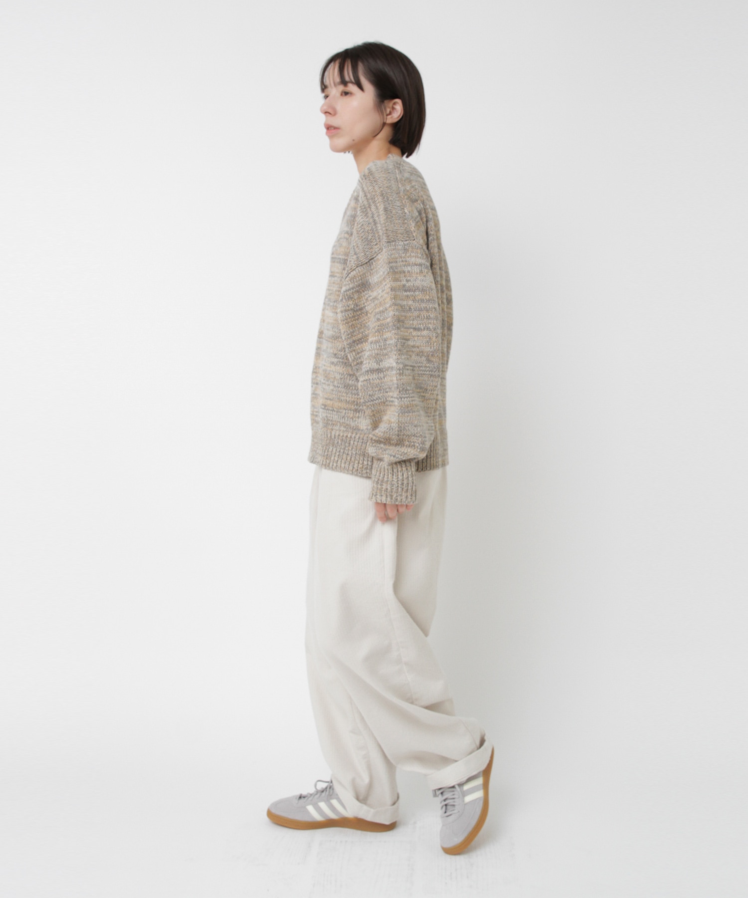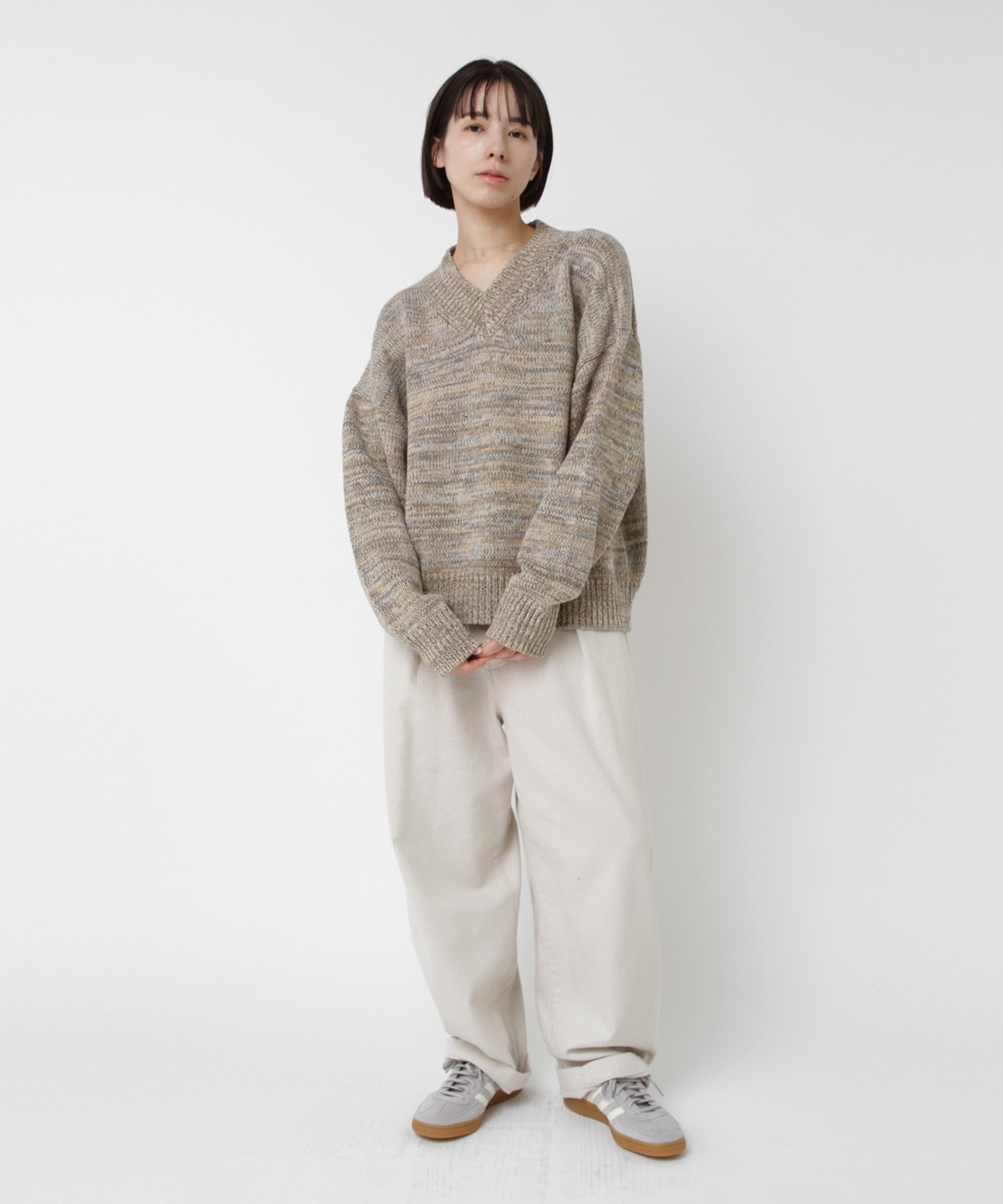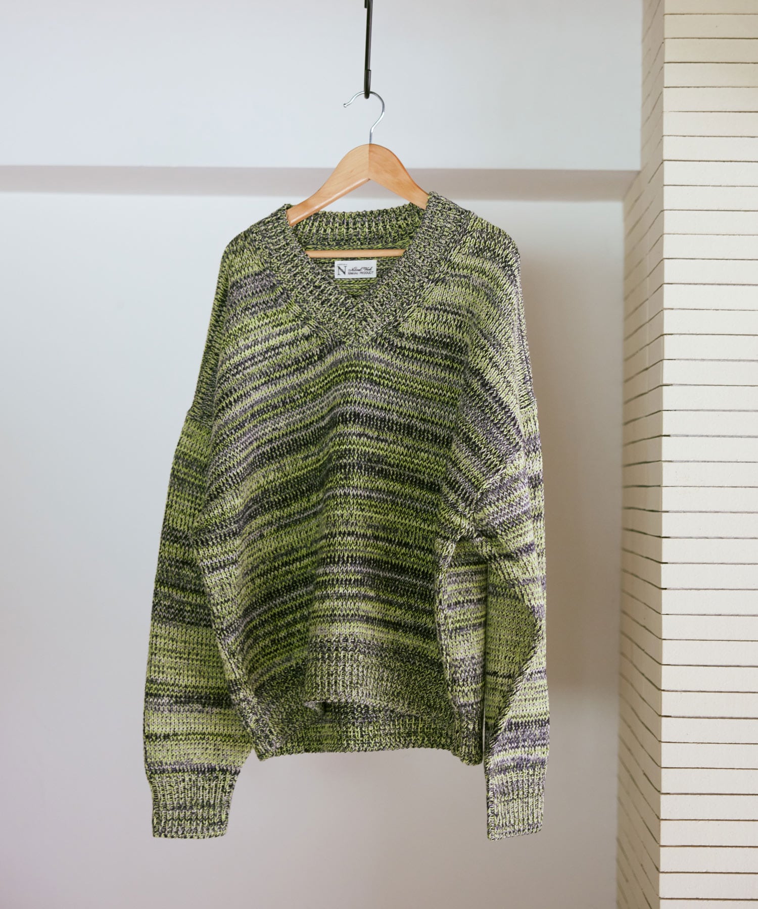 複数の色糸を組み合わせた、奥行きと深みのあるニットトップス。