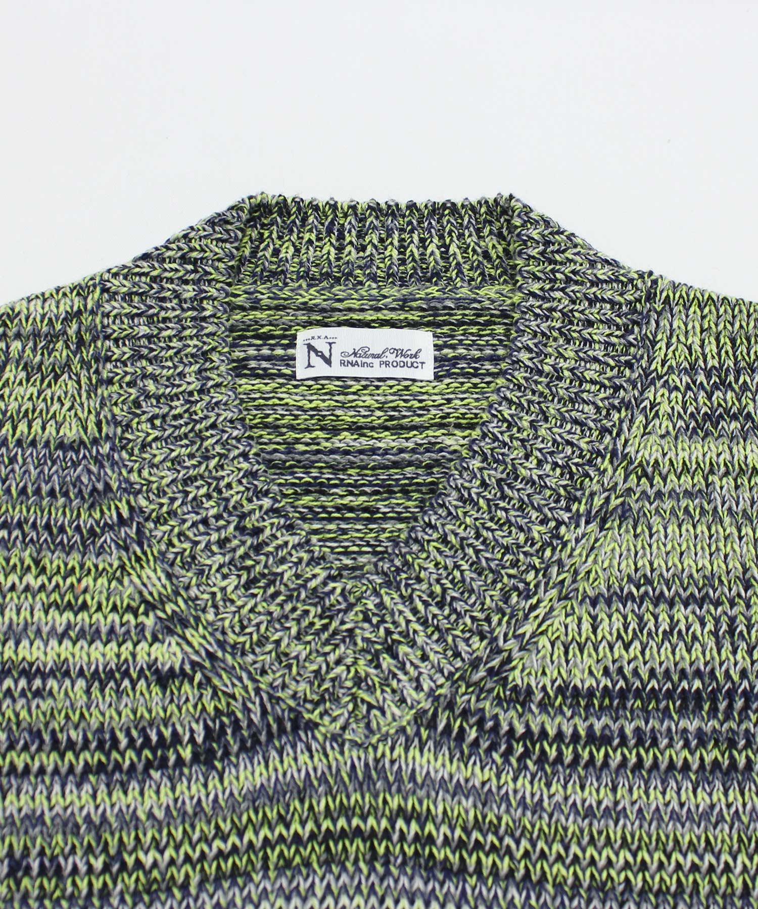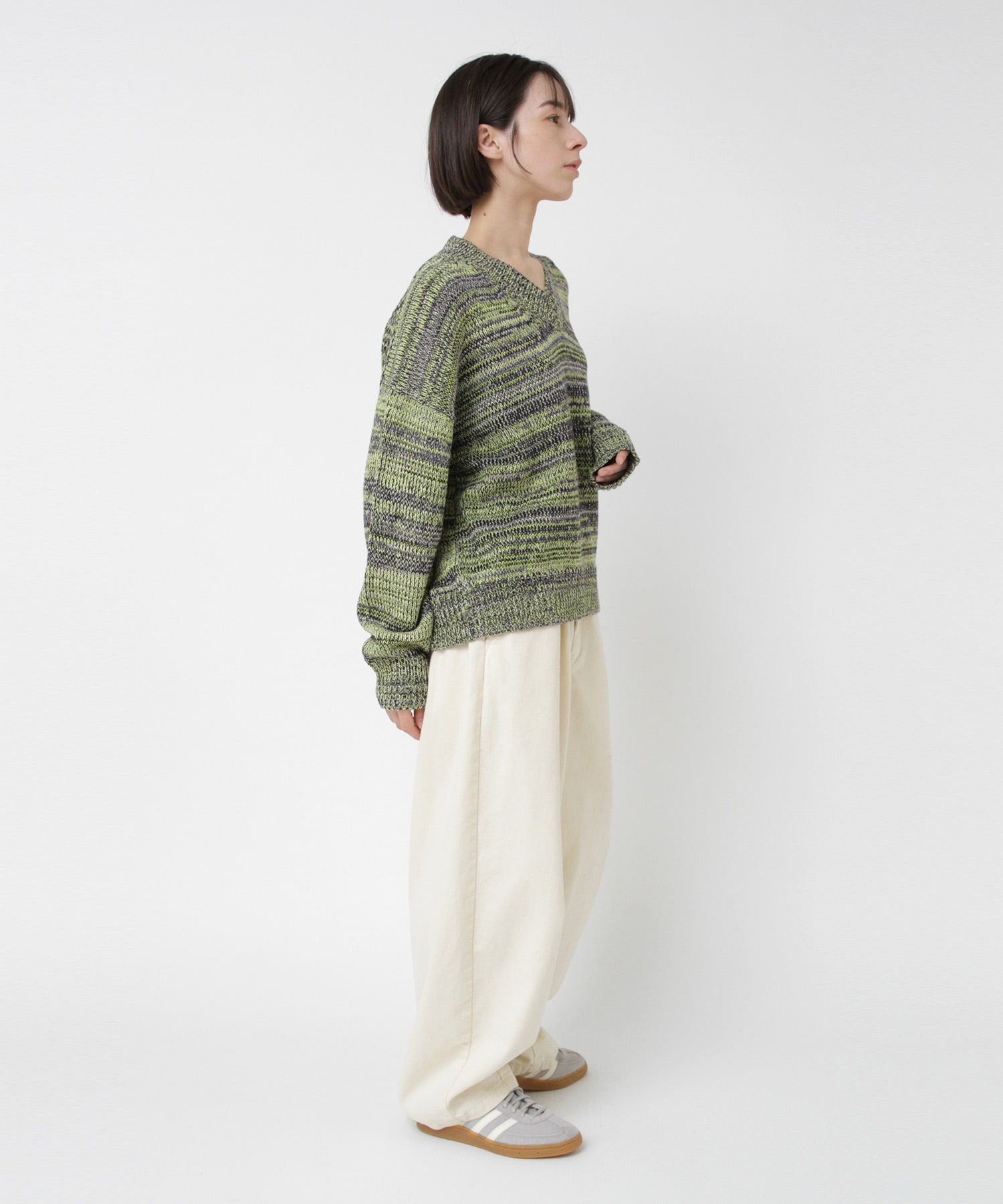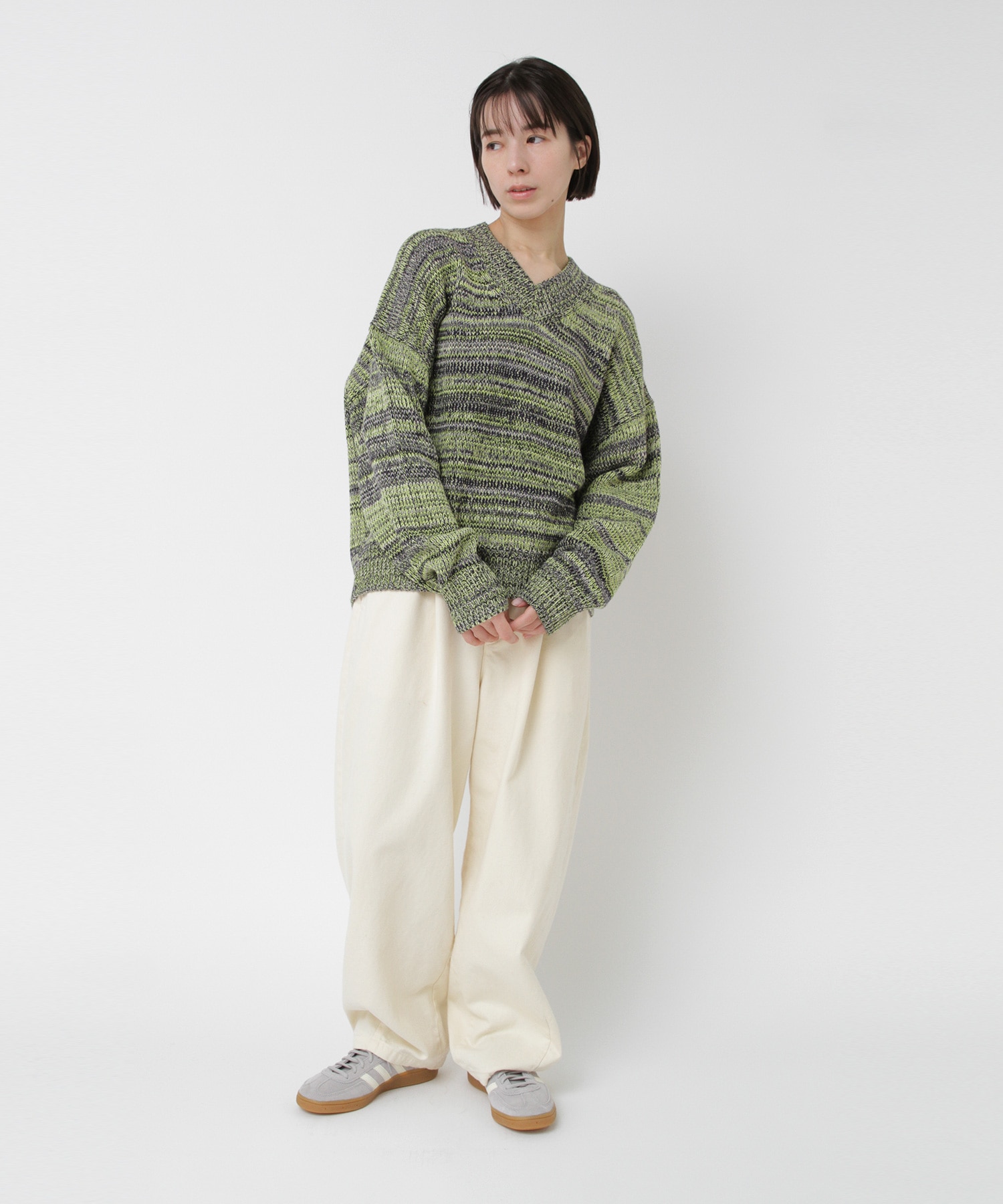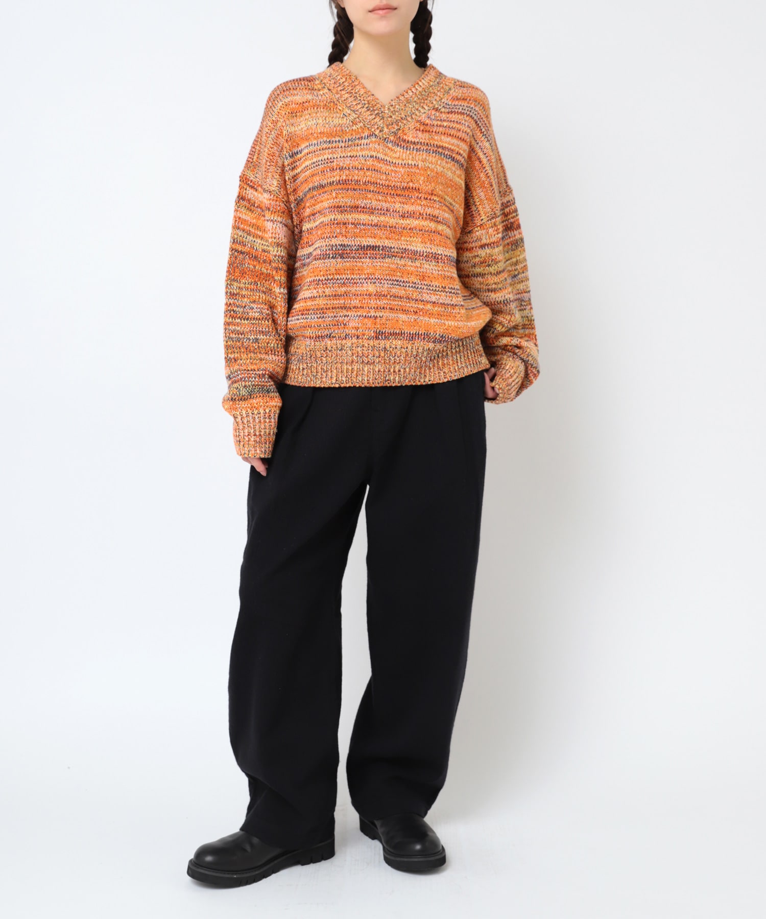 複数の色糸を組み合わせた、奥行きと深みのあるニットトップス。