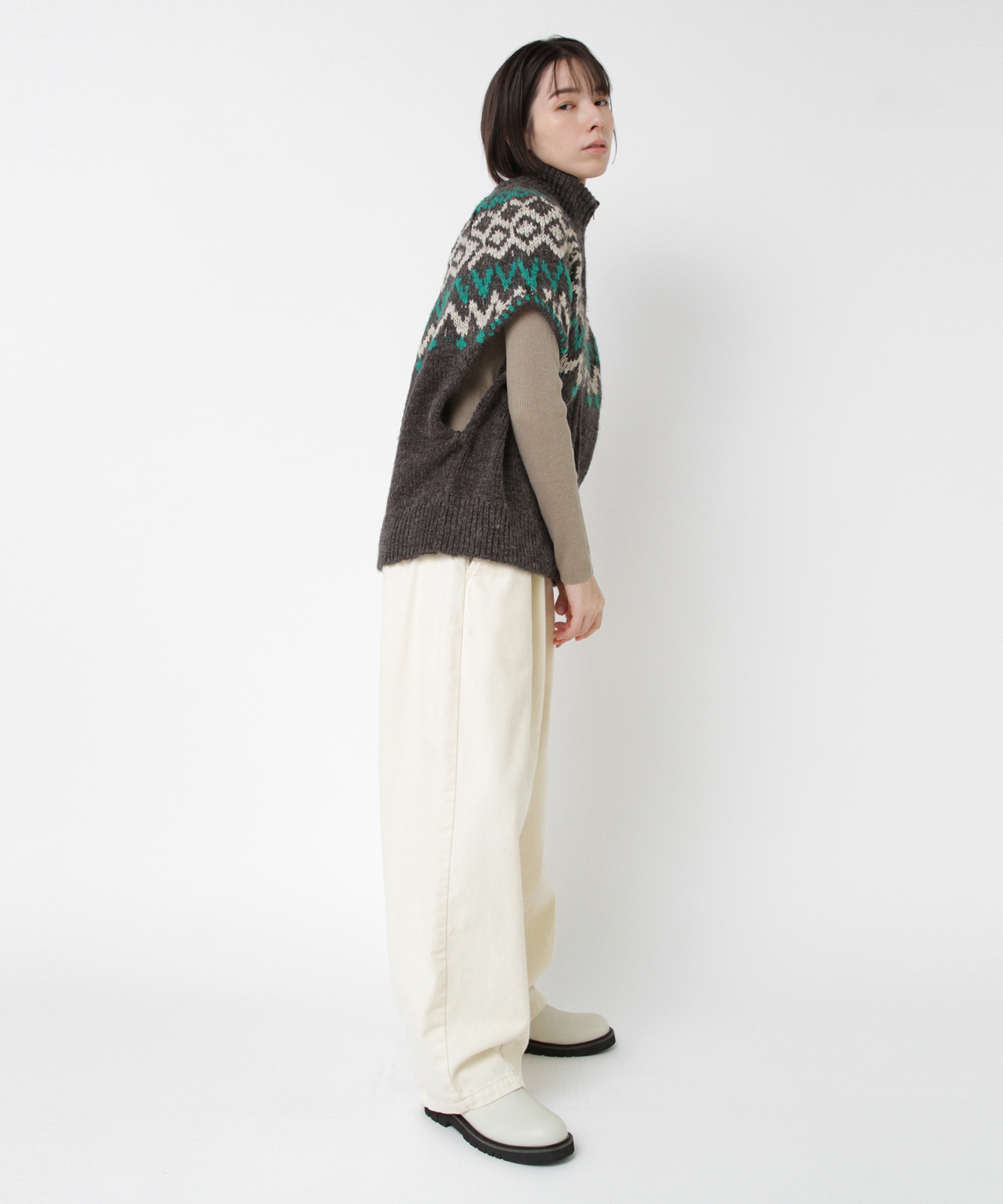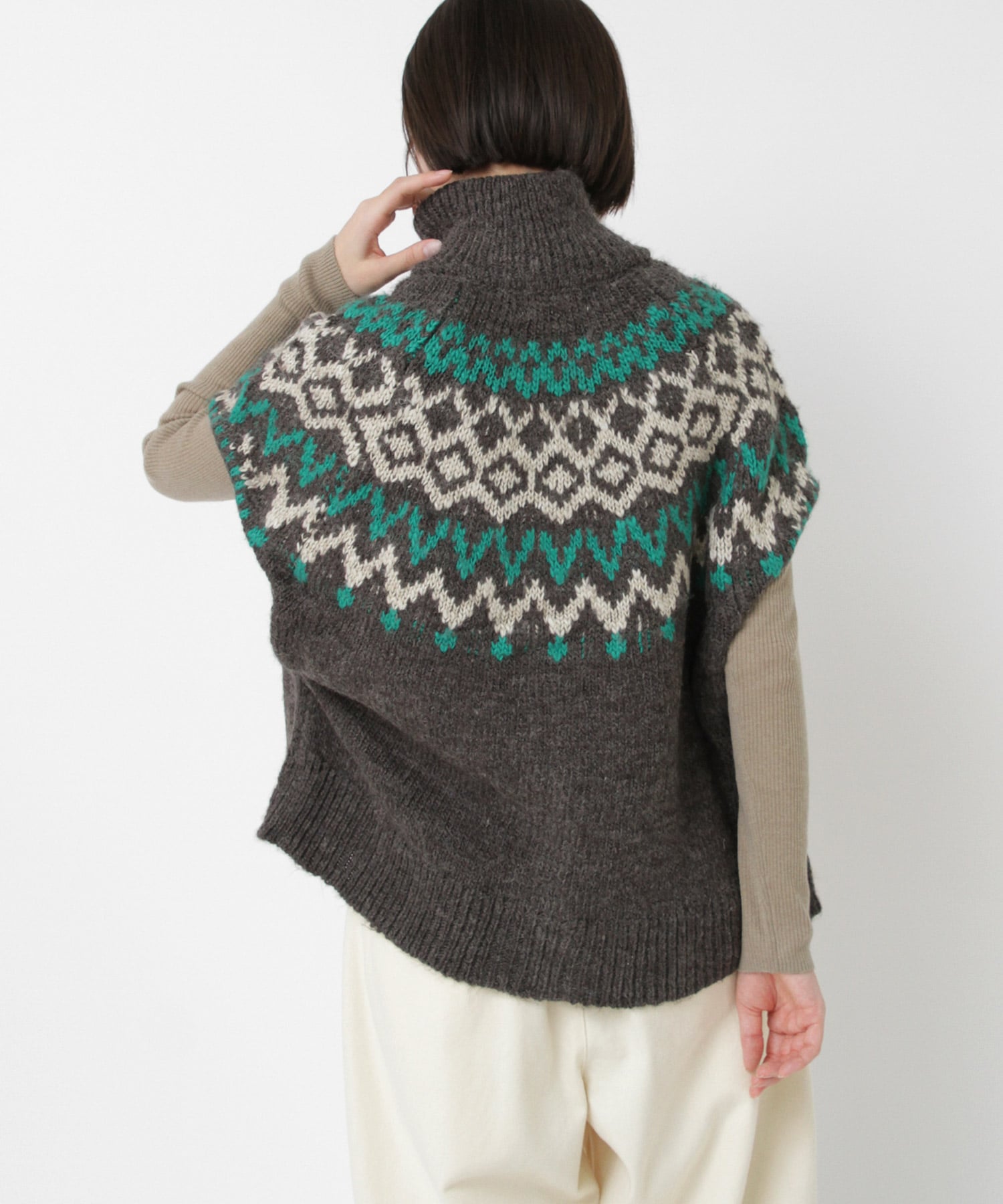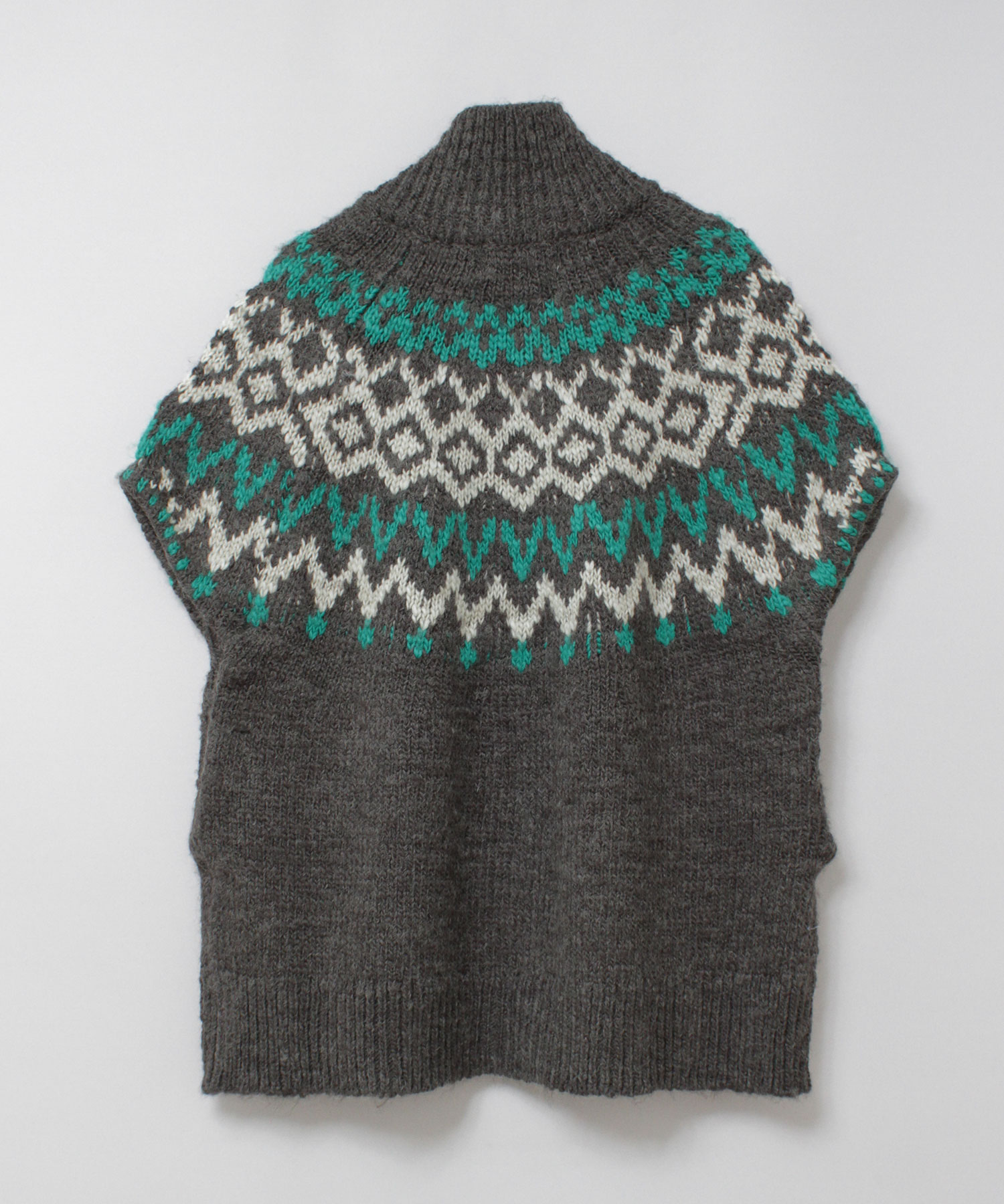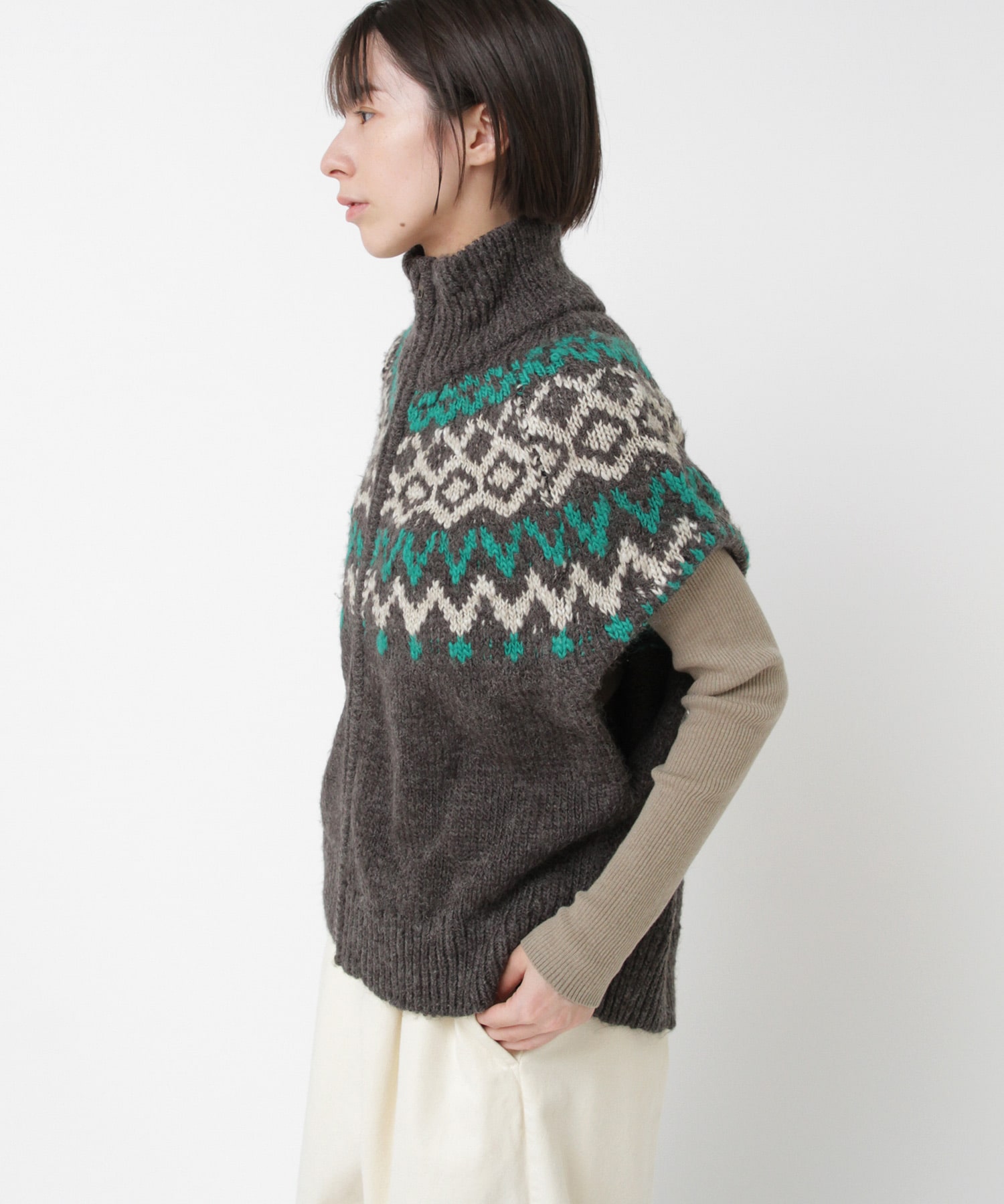 スラブヤーンでノルディック柄を表現したタートルタイプのベスト