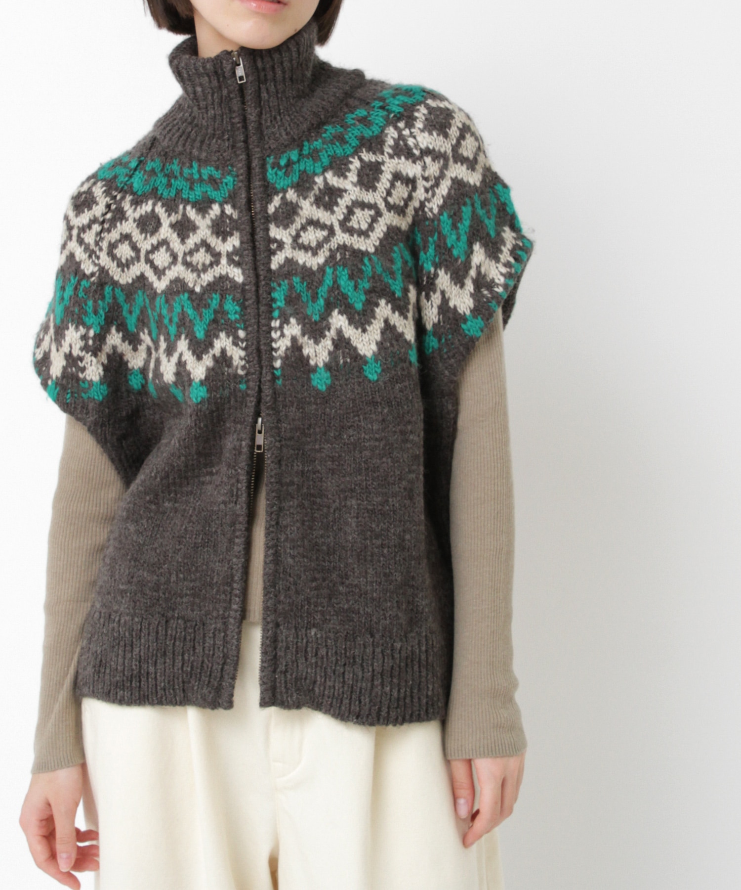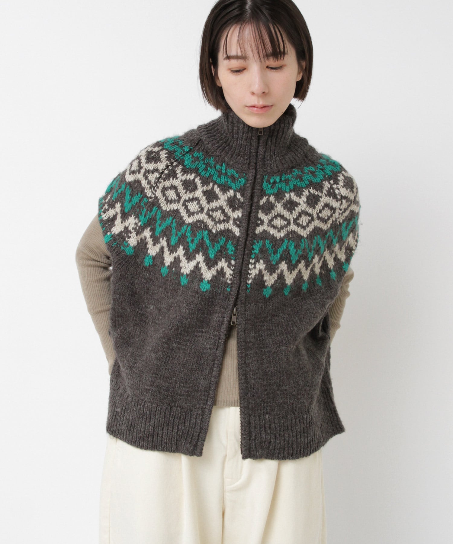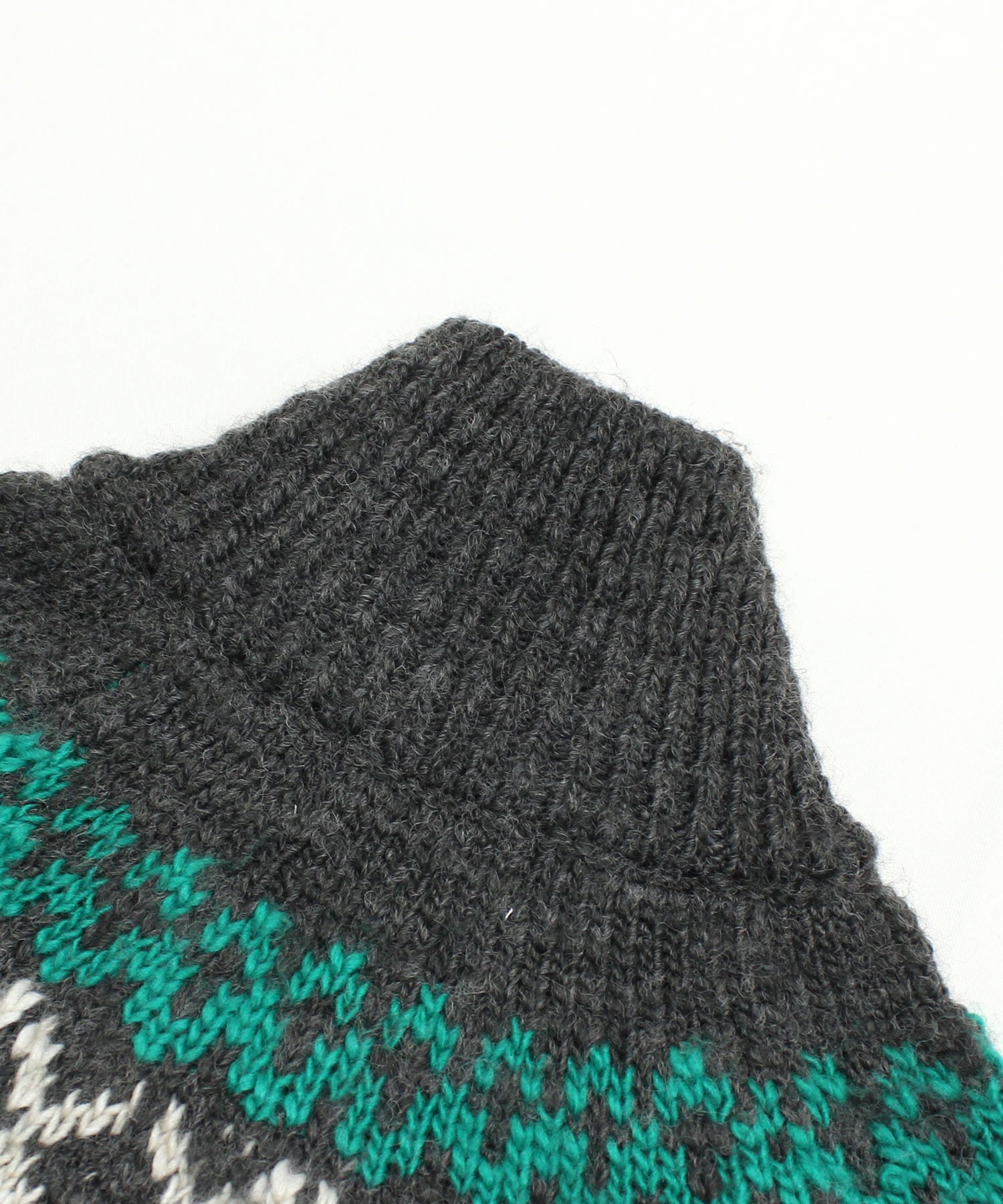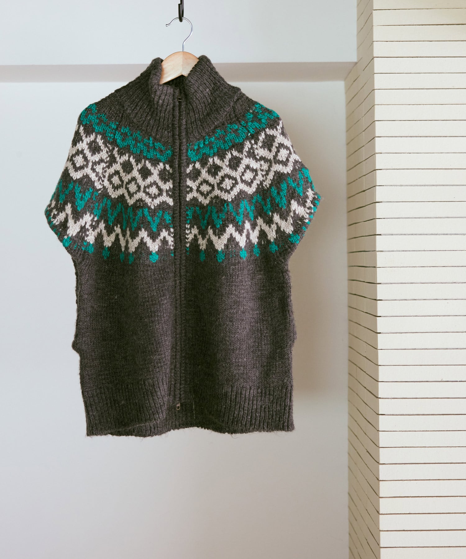 スラブヤーンでノルディック柄を表現したタートルタイプのベスト