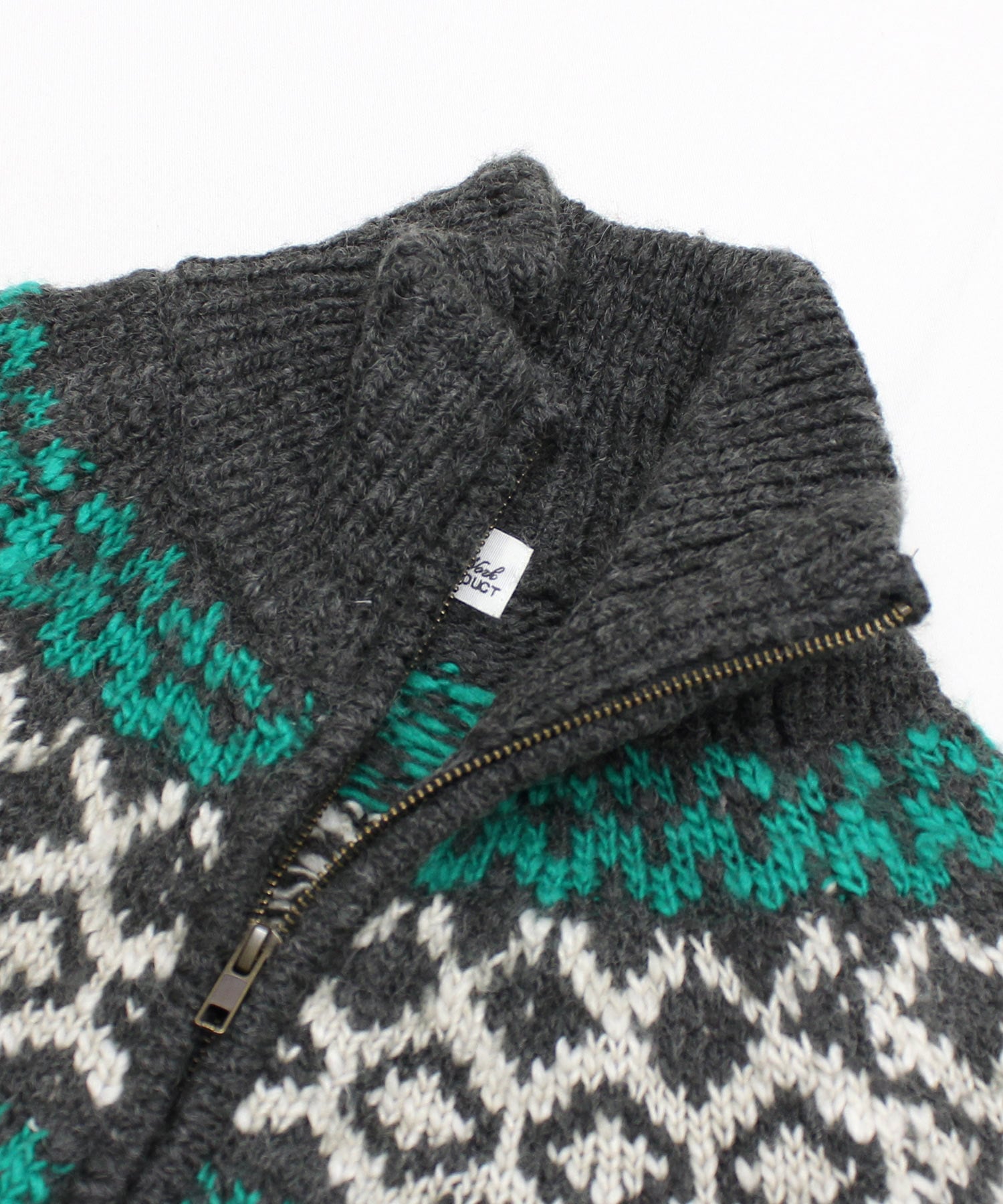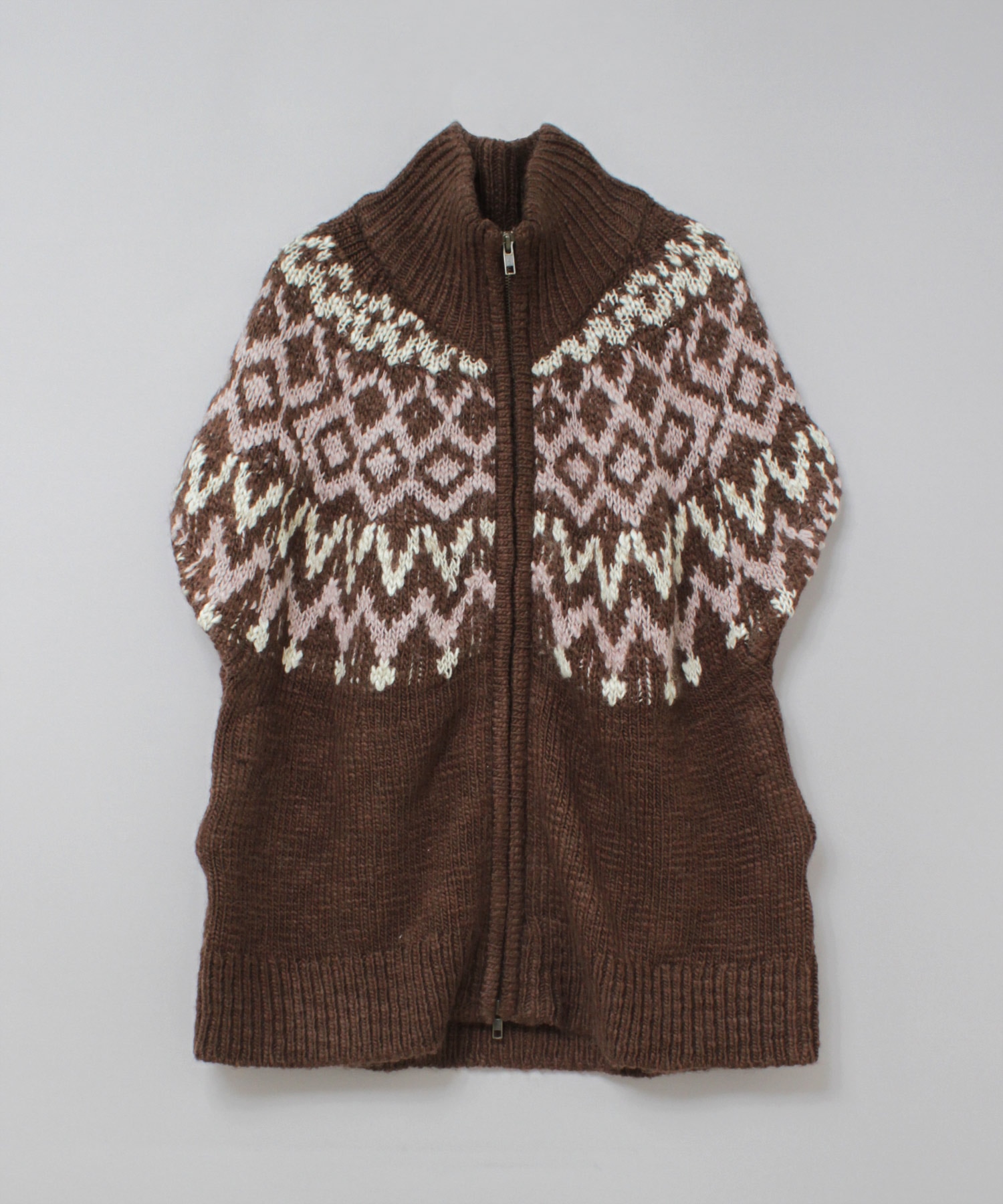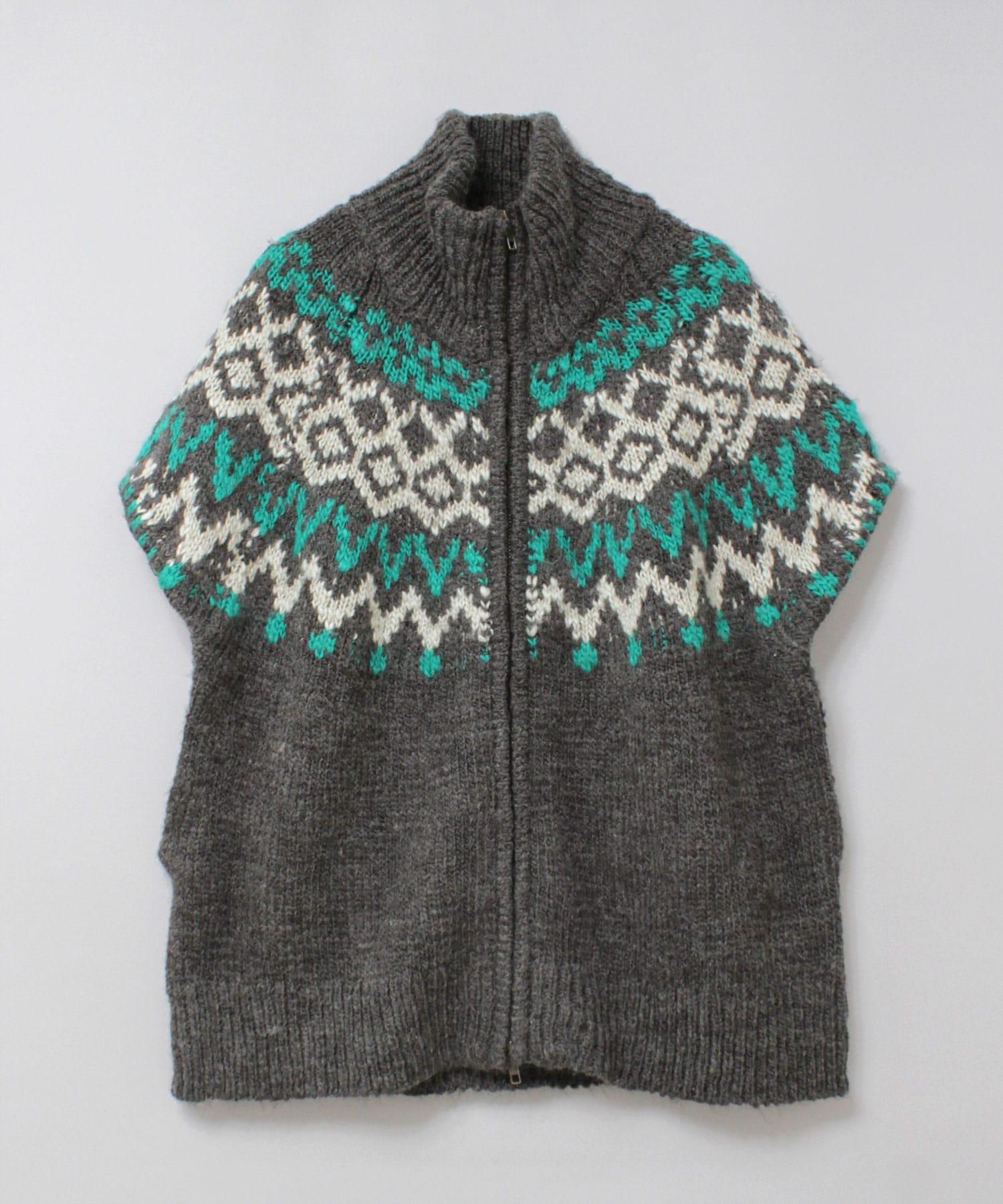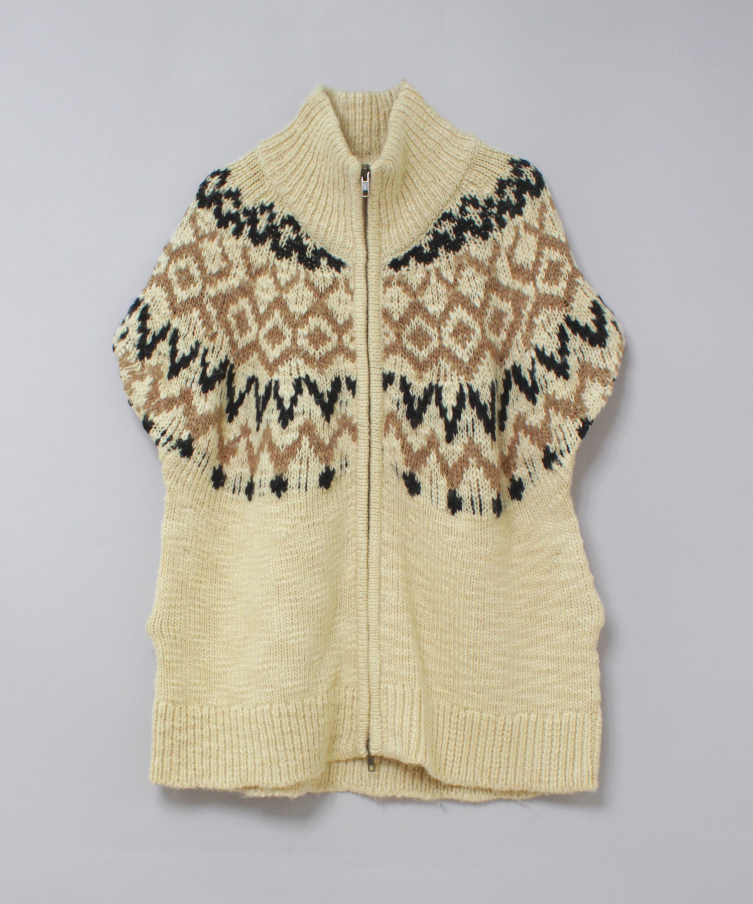 スラブヤーンでノルディック柄を表現したタートルタイプのベスト