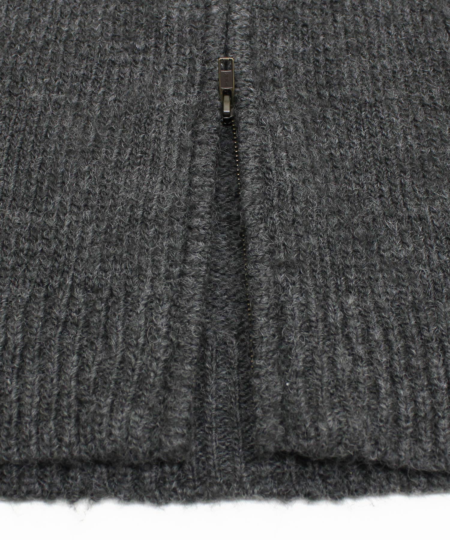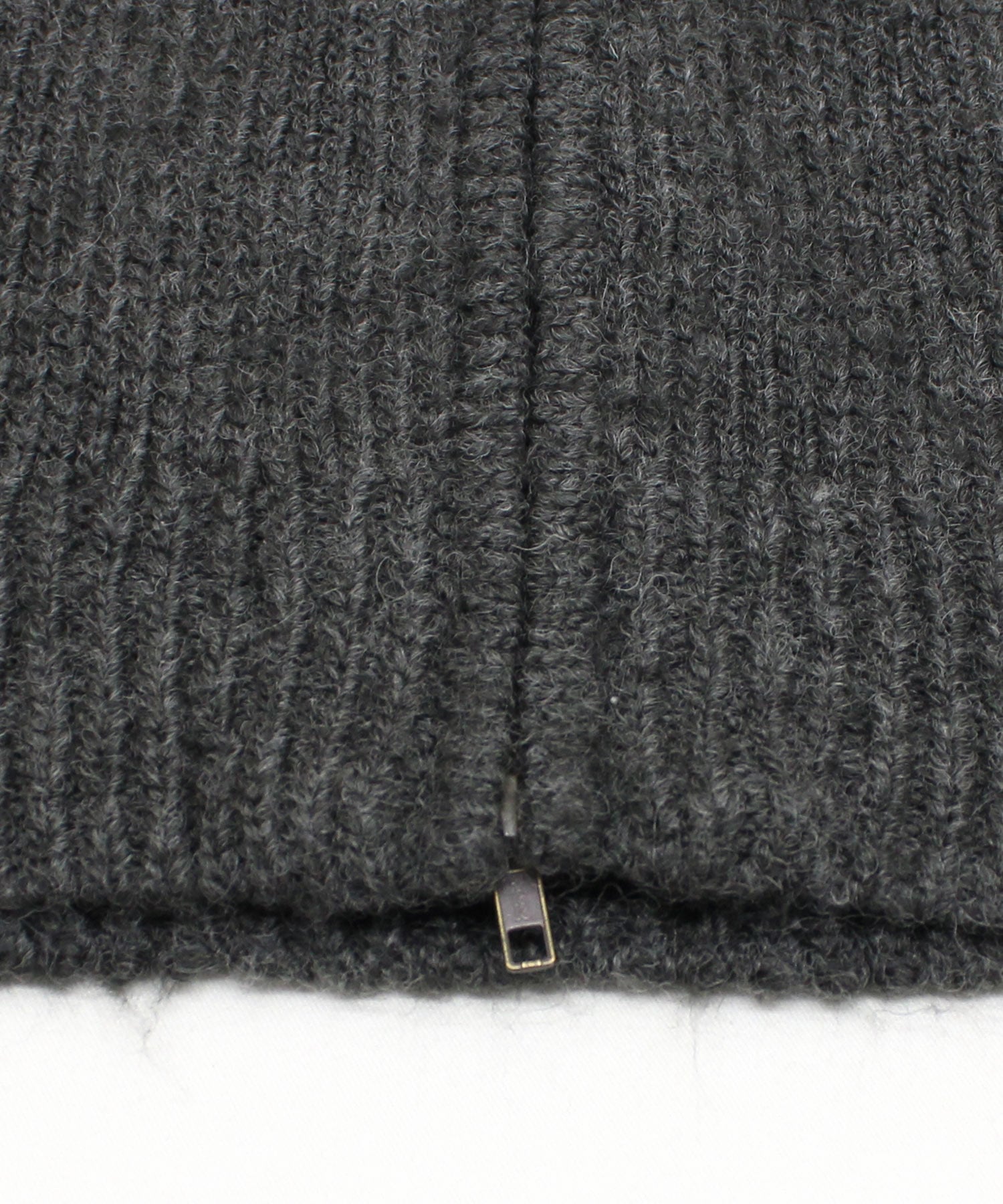 逆開のジップはトレンド感があり、ロンT、ワンピースと何にでもバランスが取りやすく合わせていただけます。また、ドロップショルダーなので肩先まで温かく、アームホールを大きく開けているので、薄手コートの上からも着用していただけます。