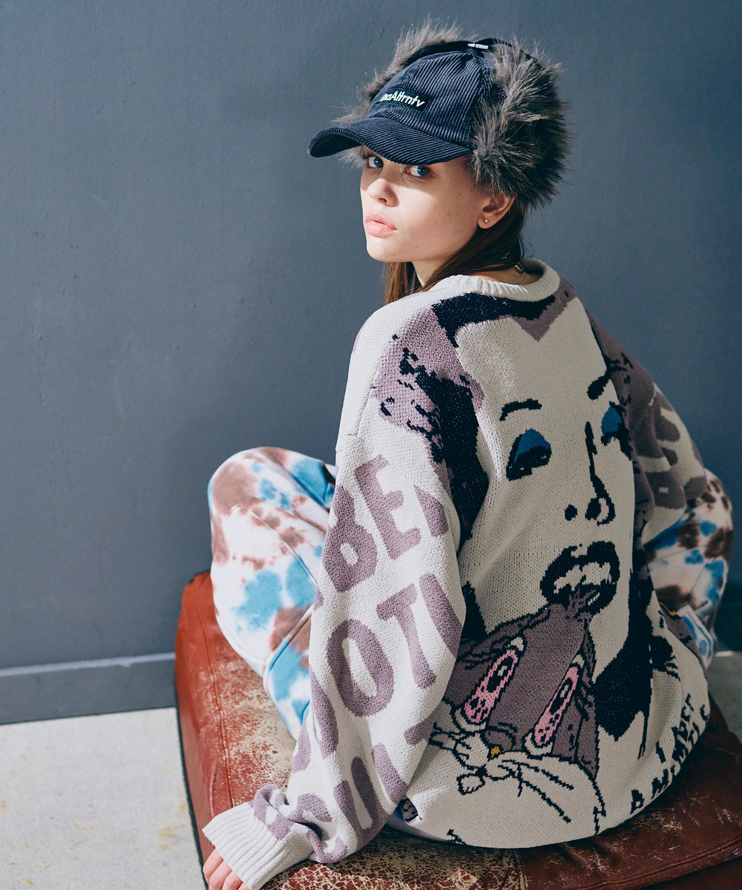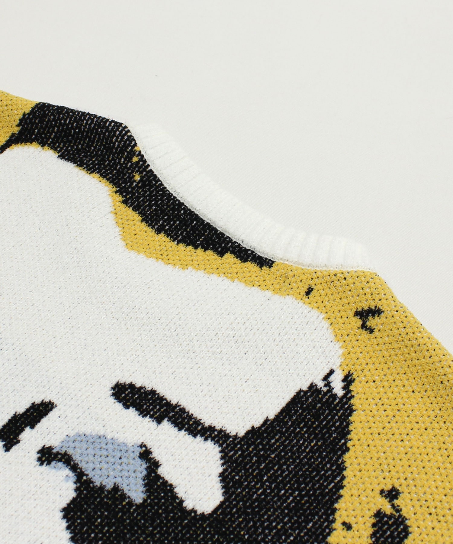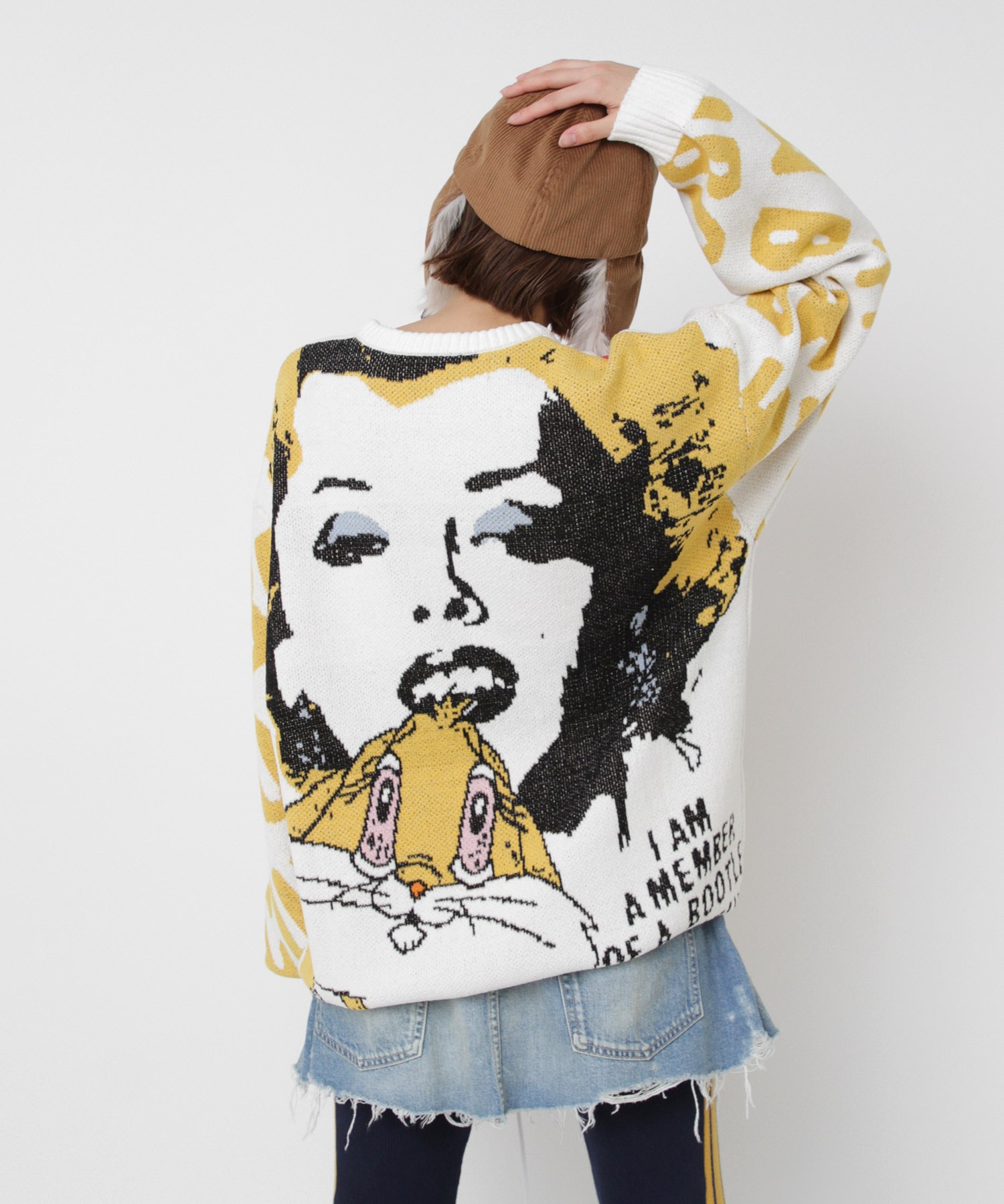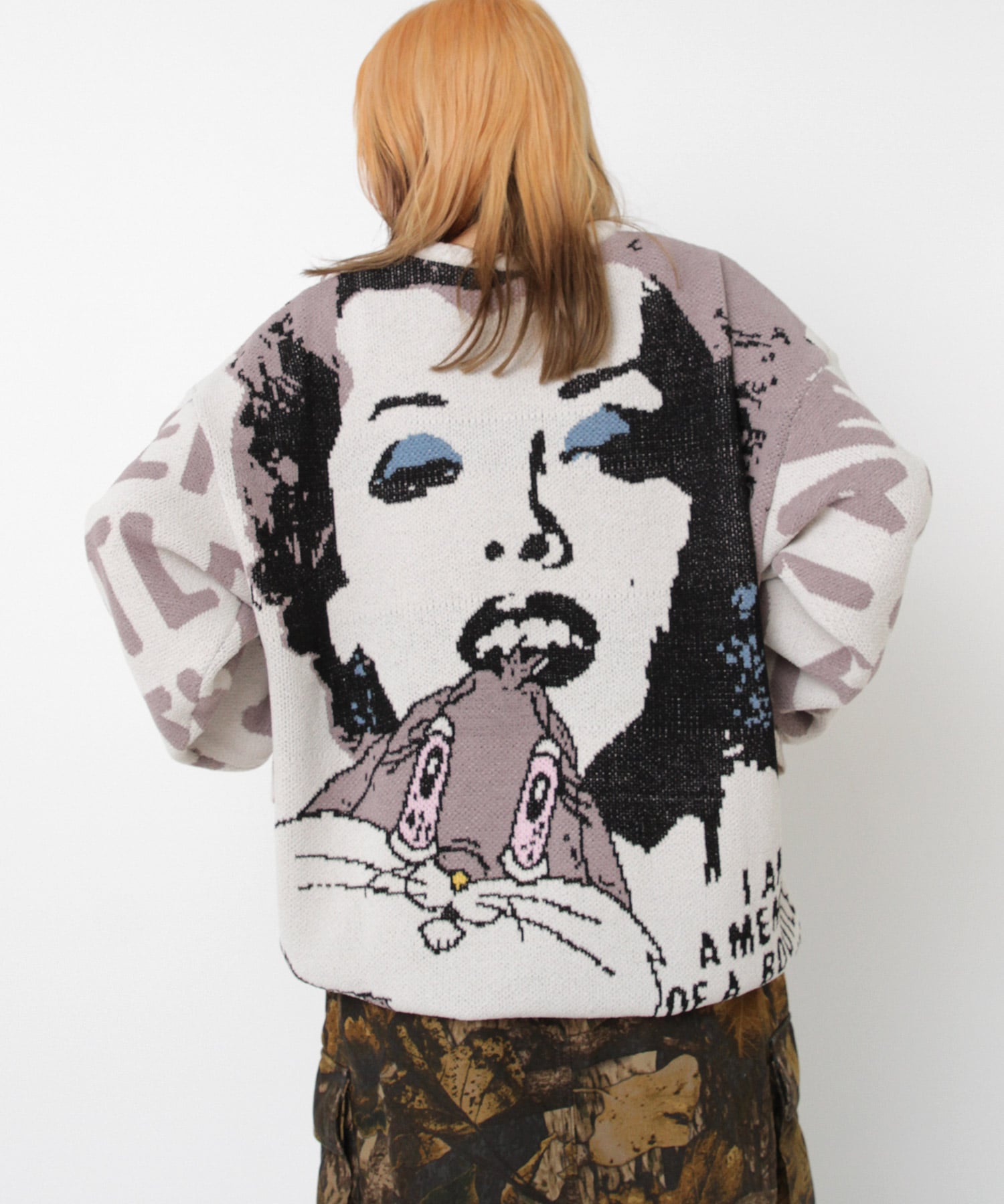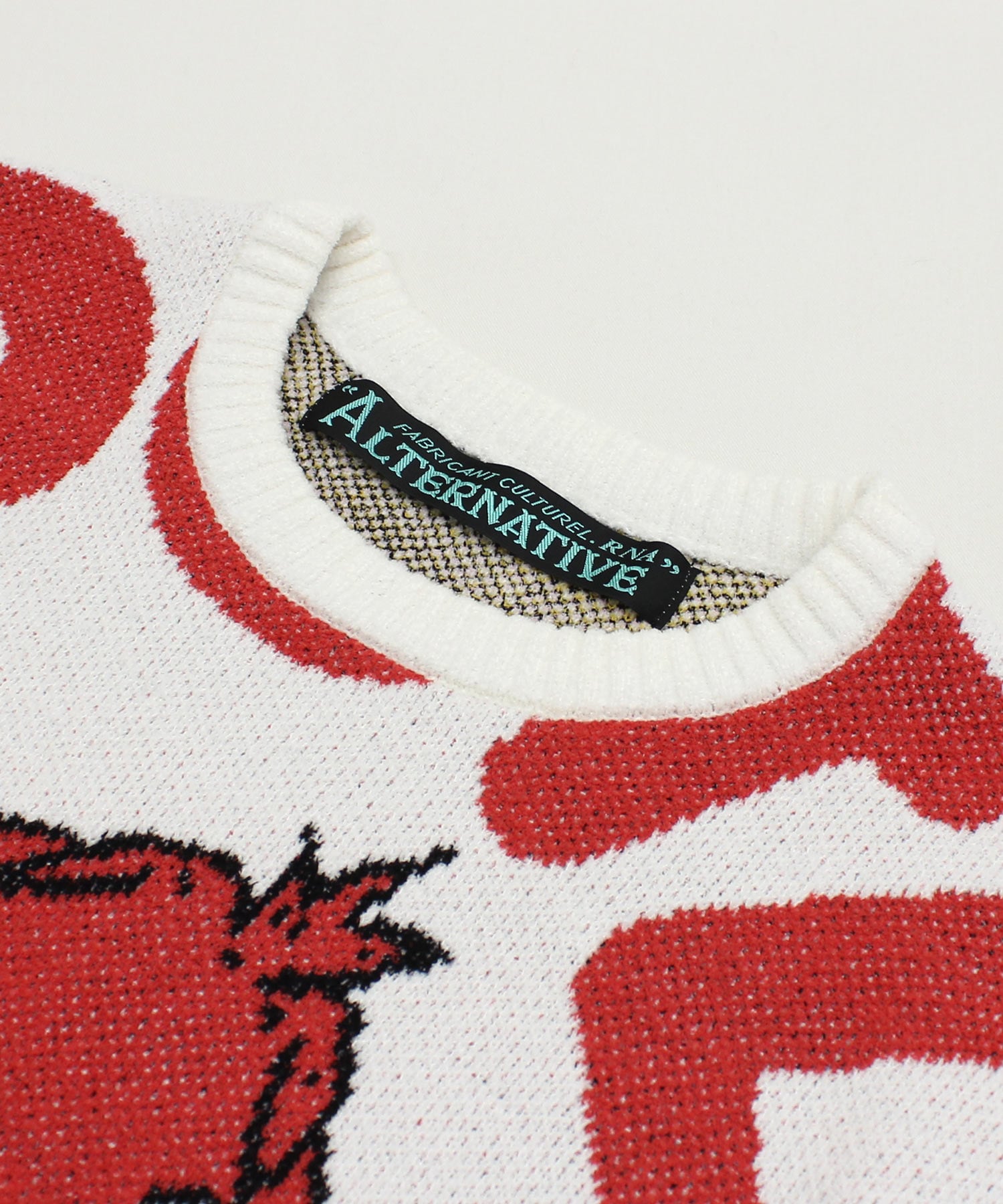 B級でキッチュなキャラを編み込んだインパクトのあるセーター