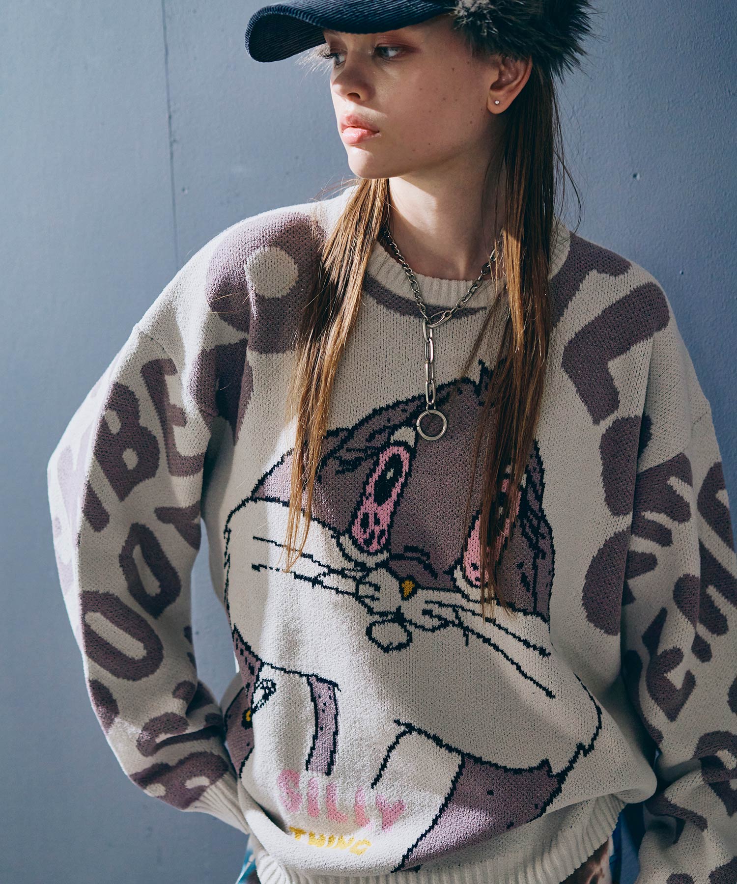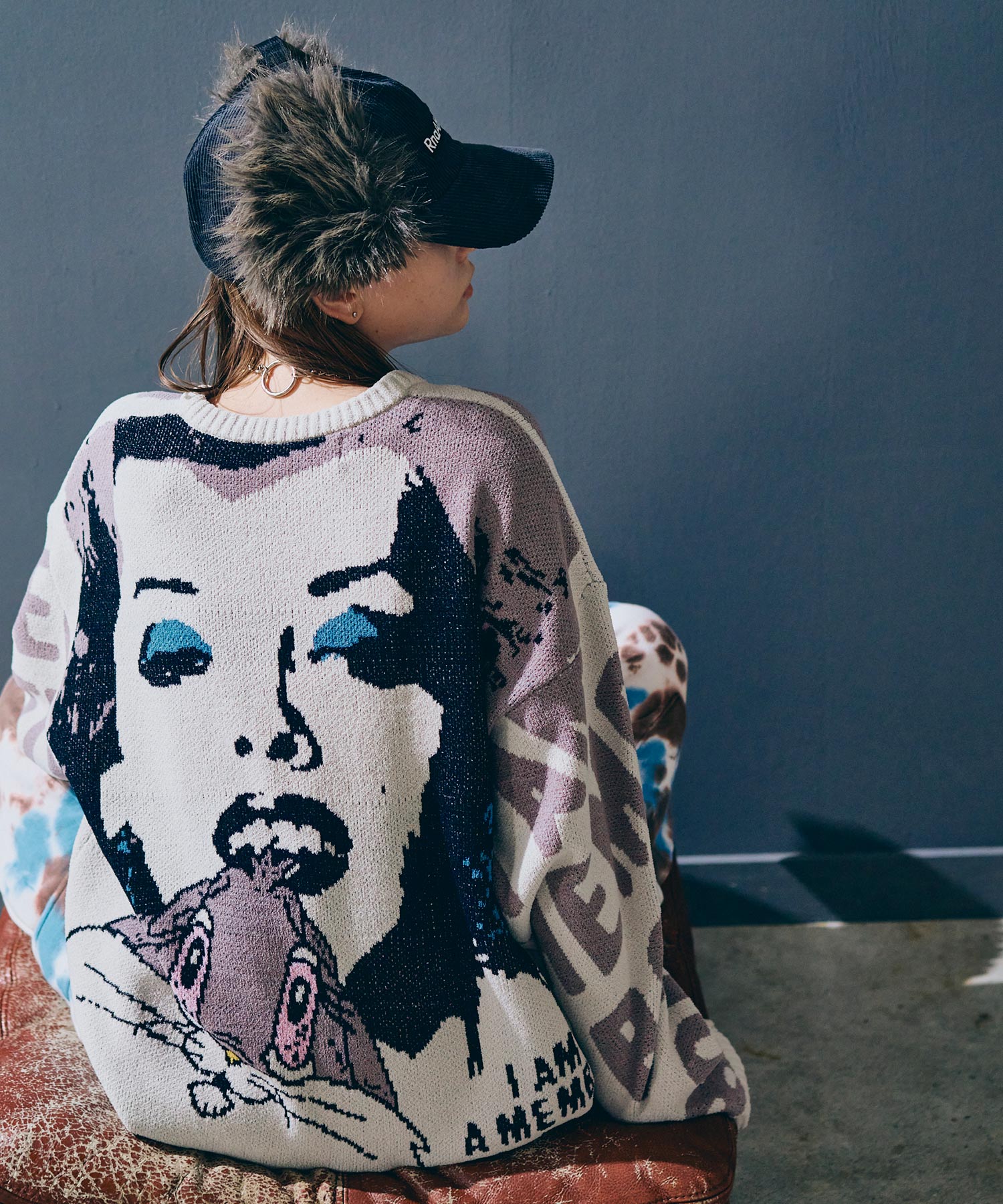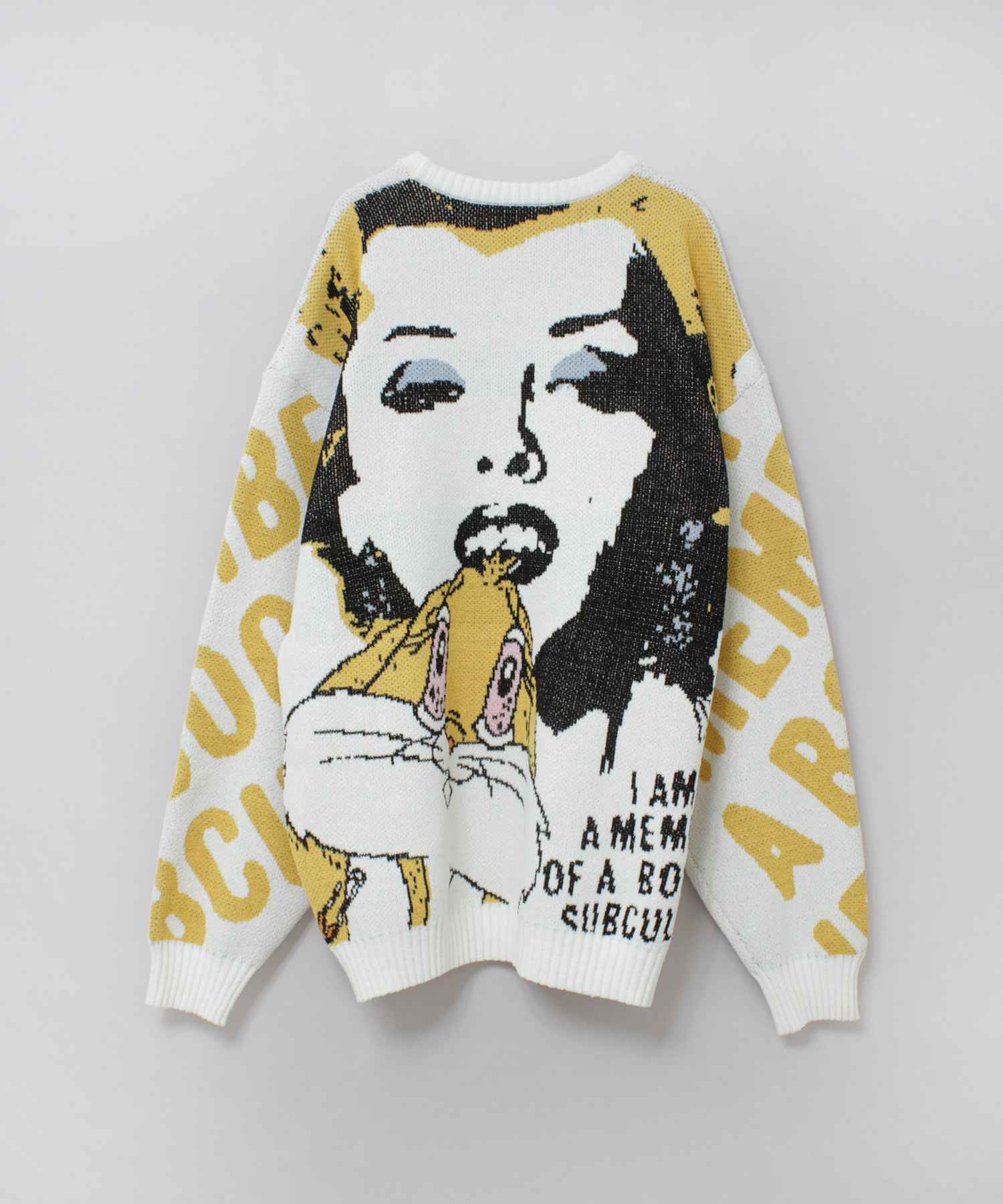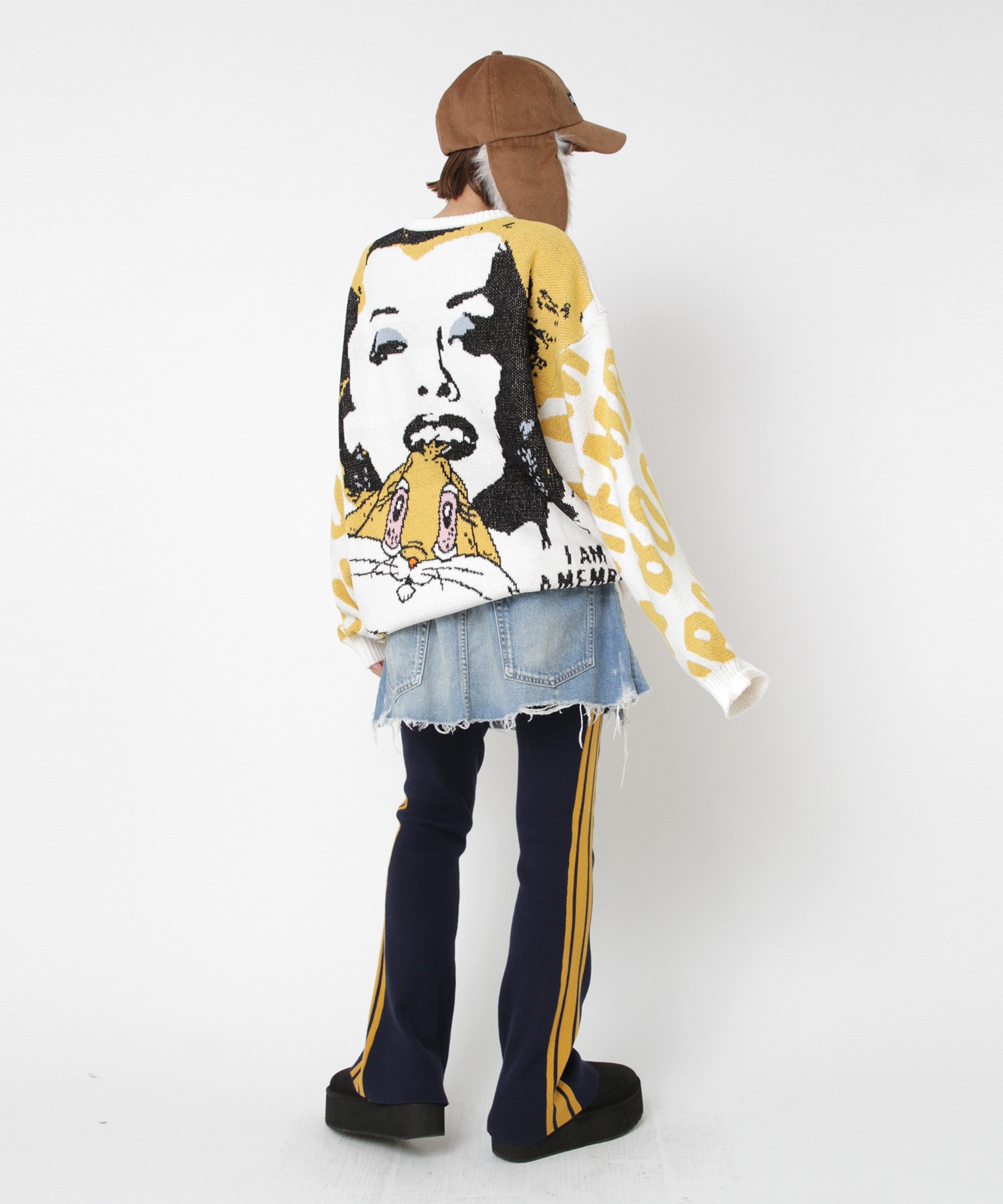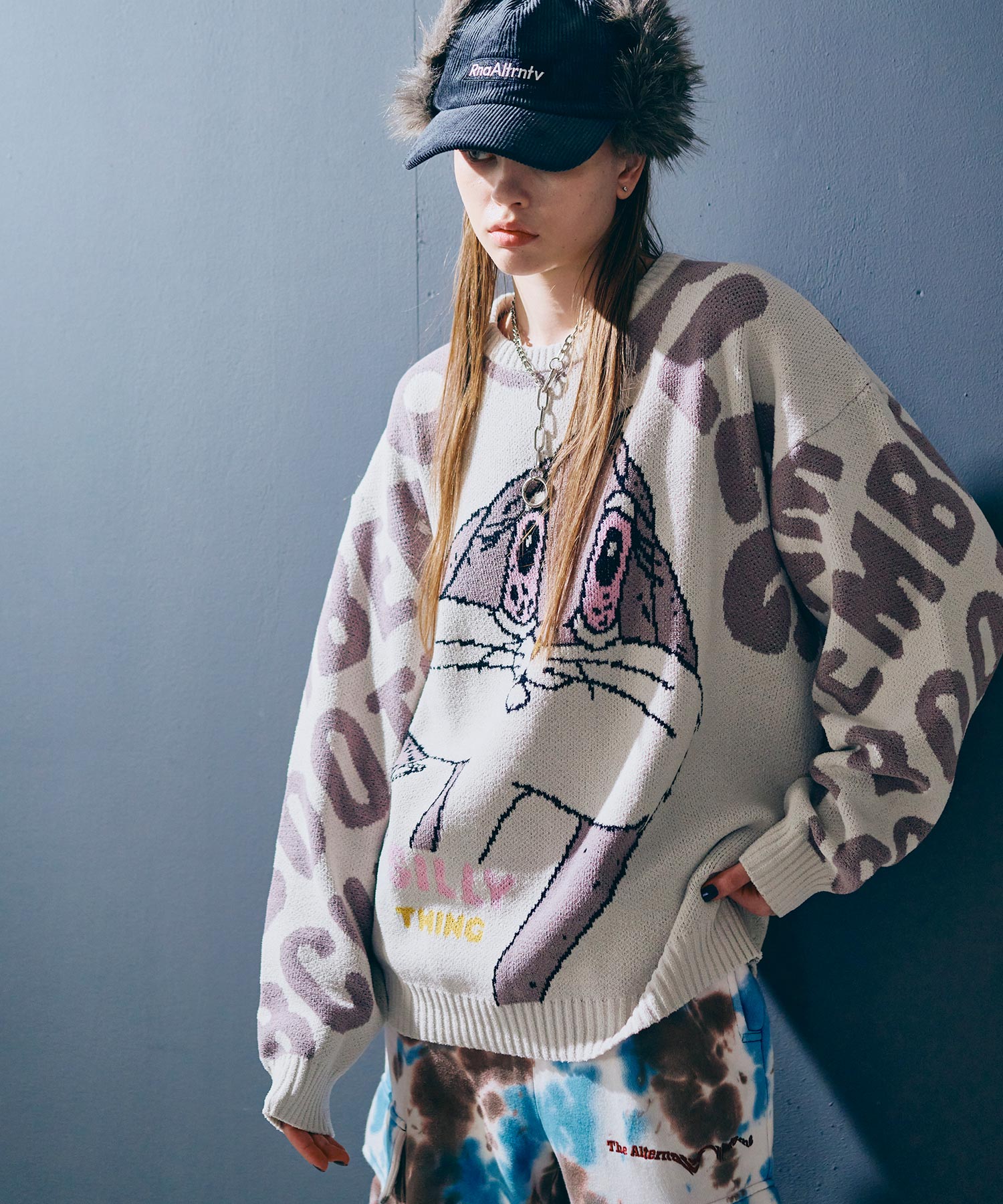B級でキッチュなキャラを編み込んだインパクトのあるセーター