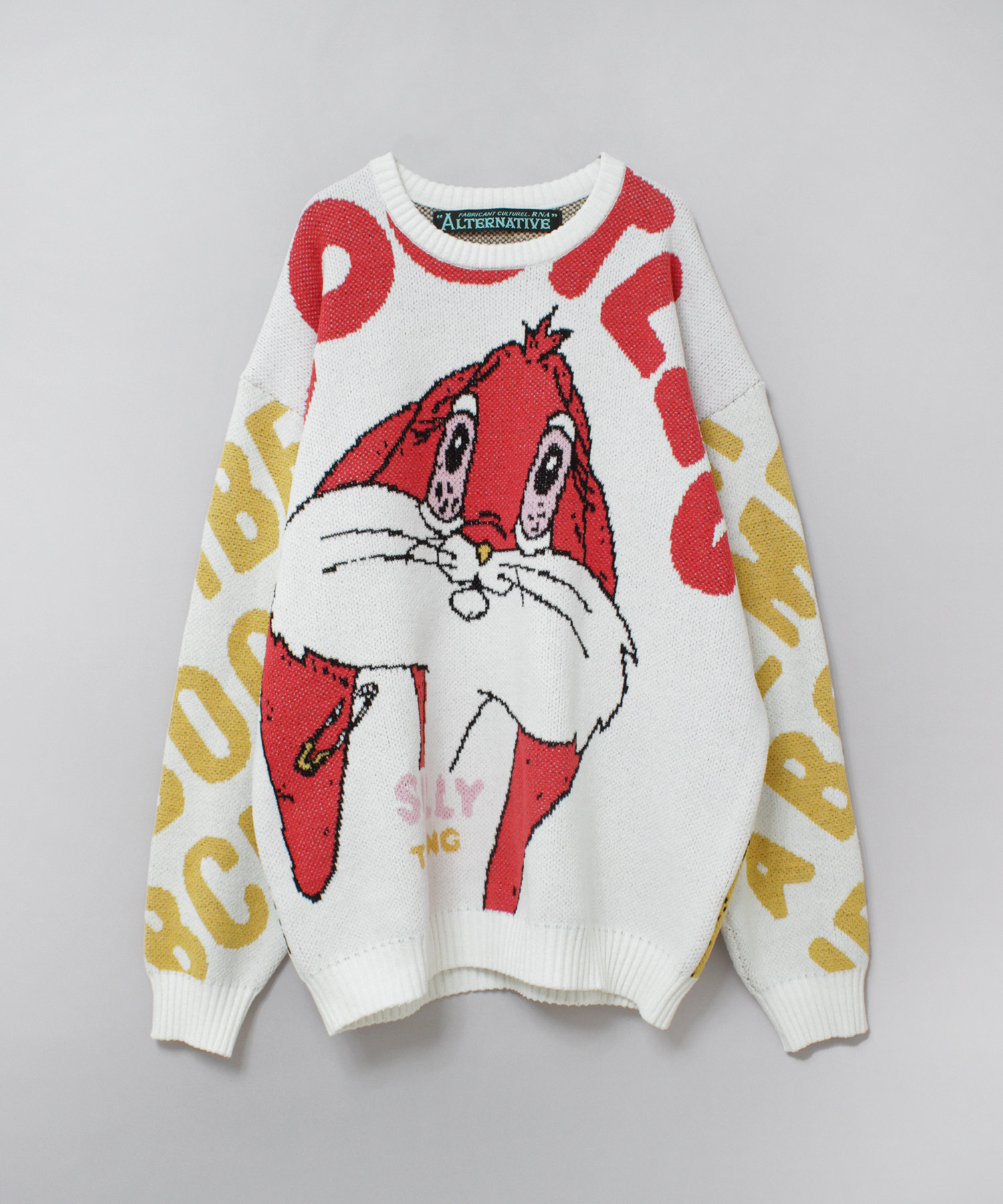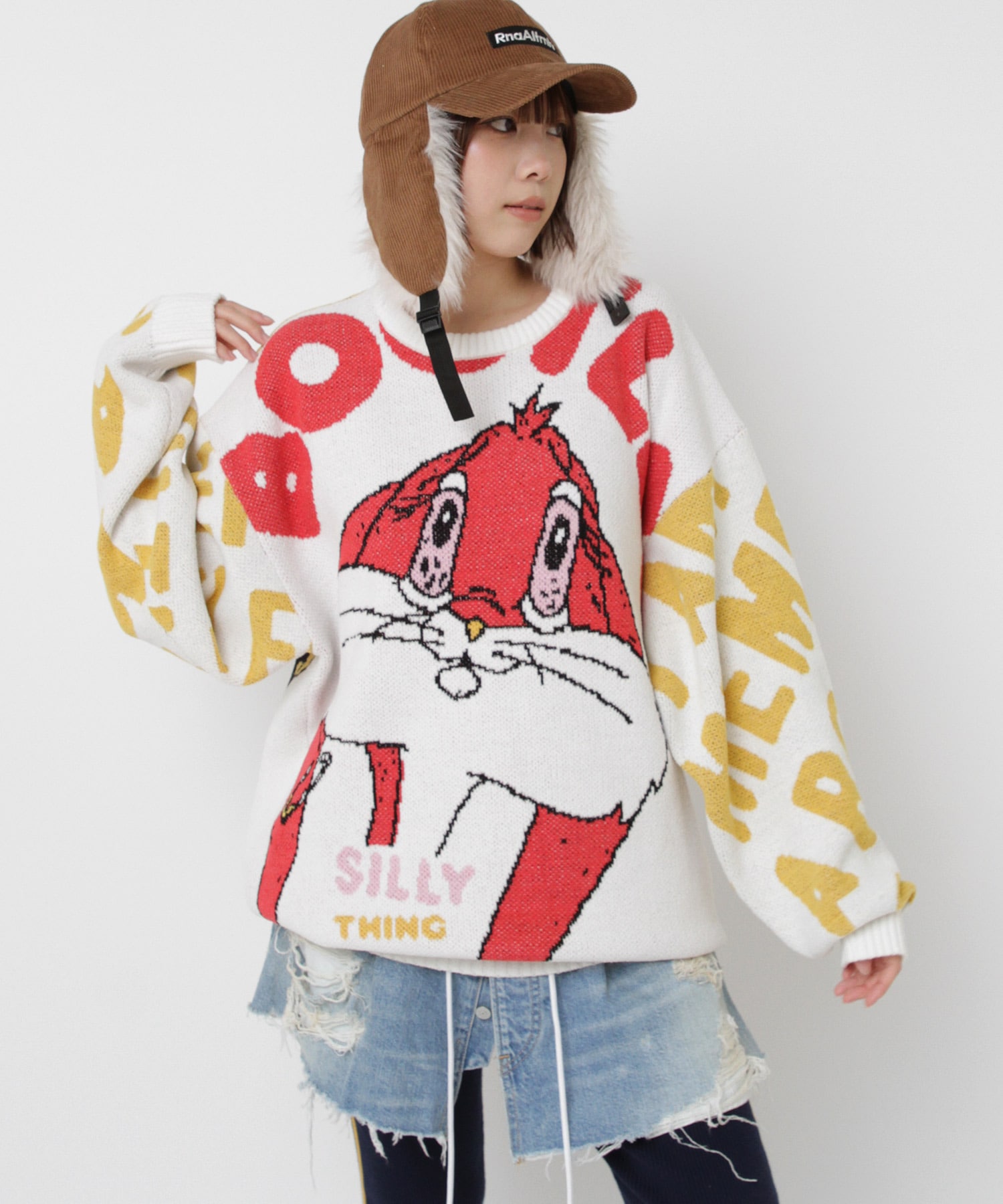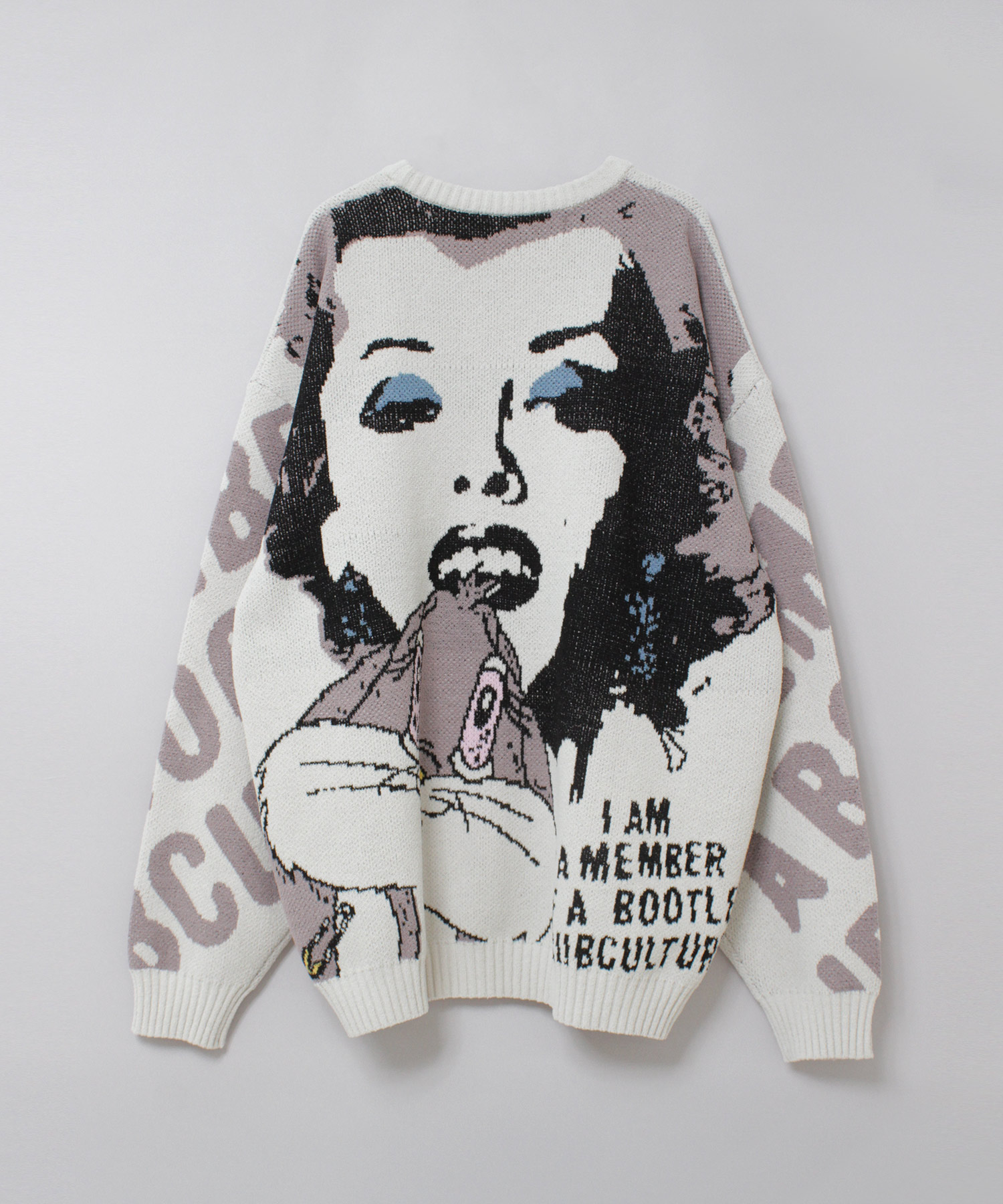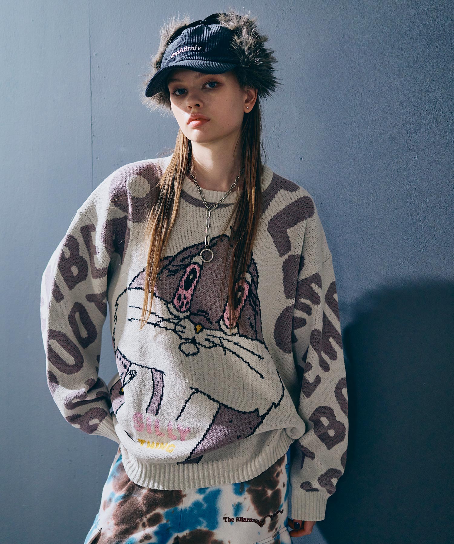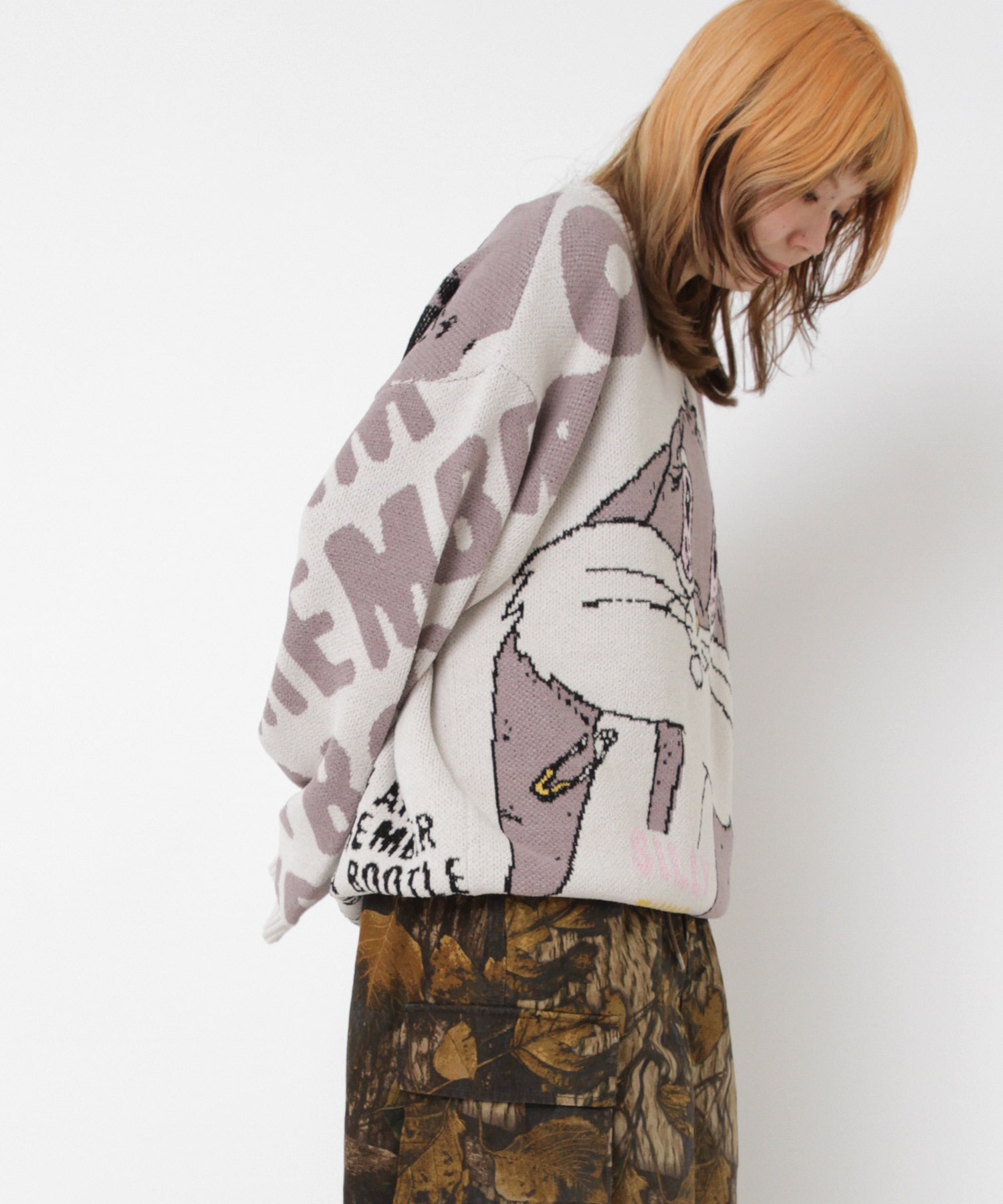 B級でキッチュなキャラを編み込んだインパクトのあるセーター