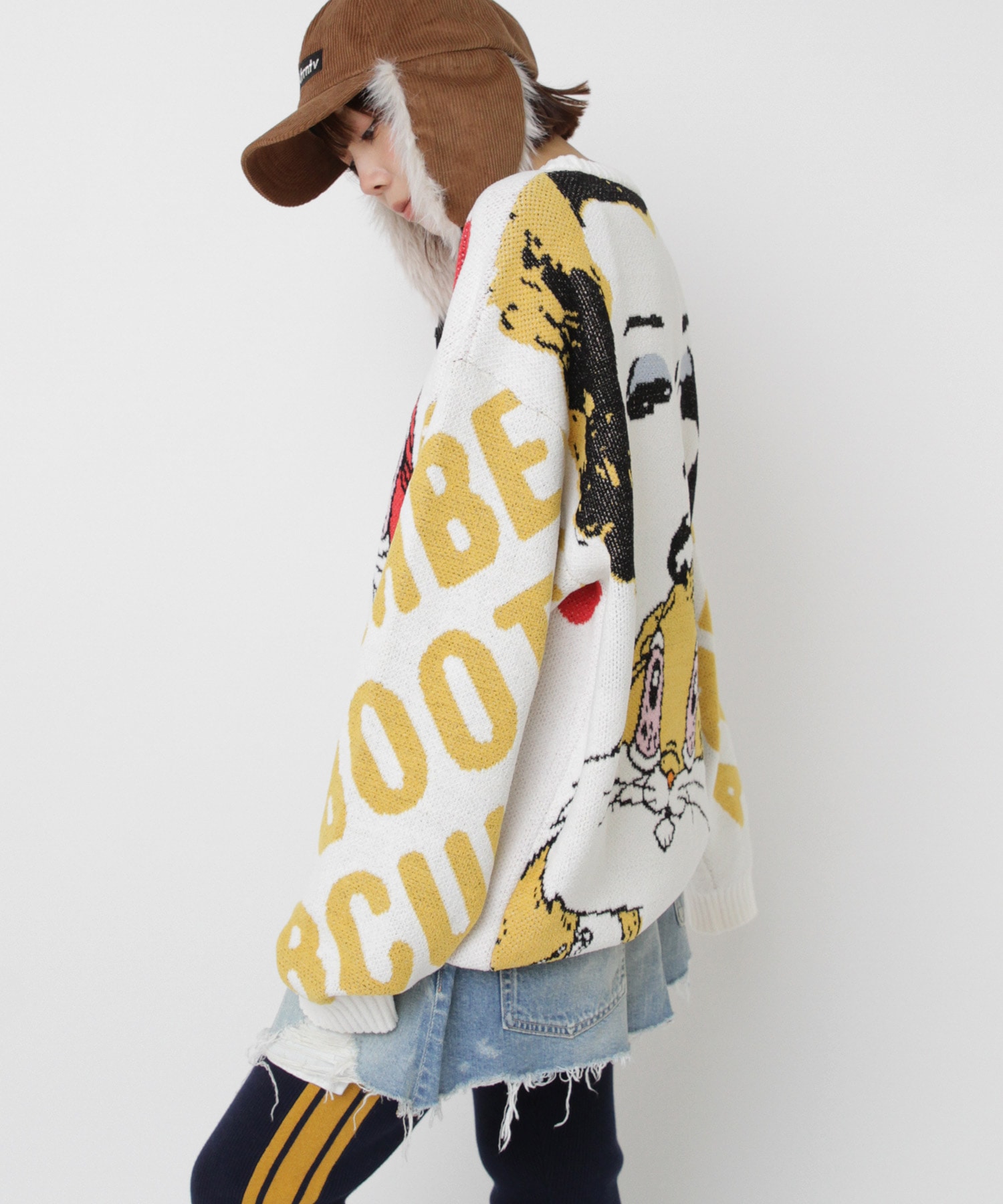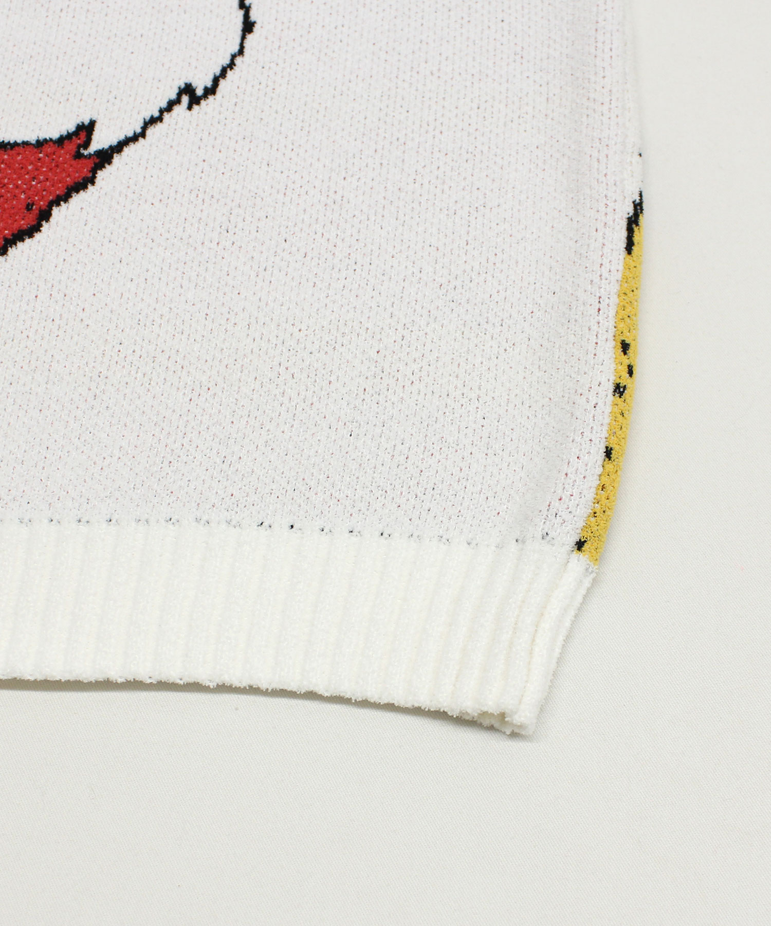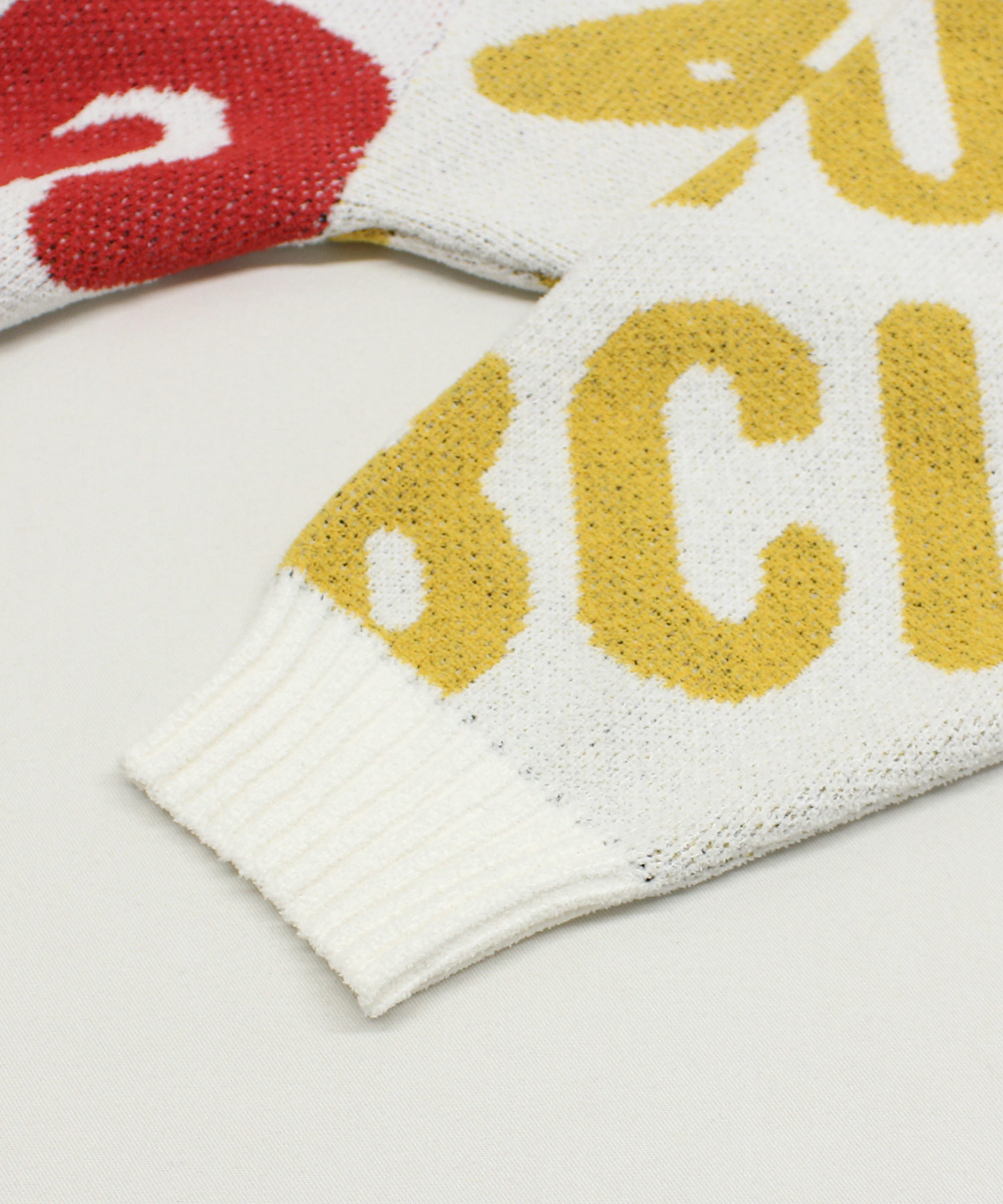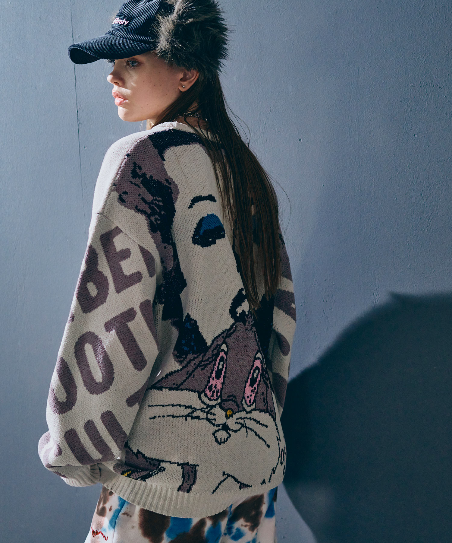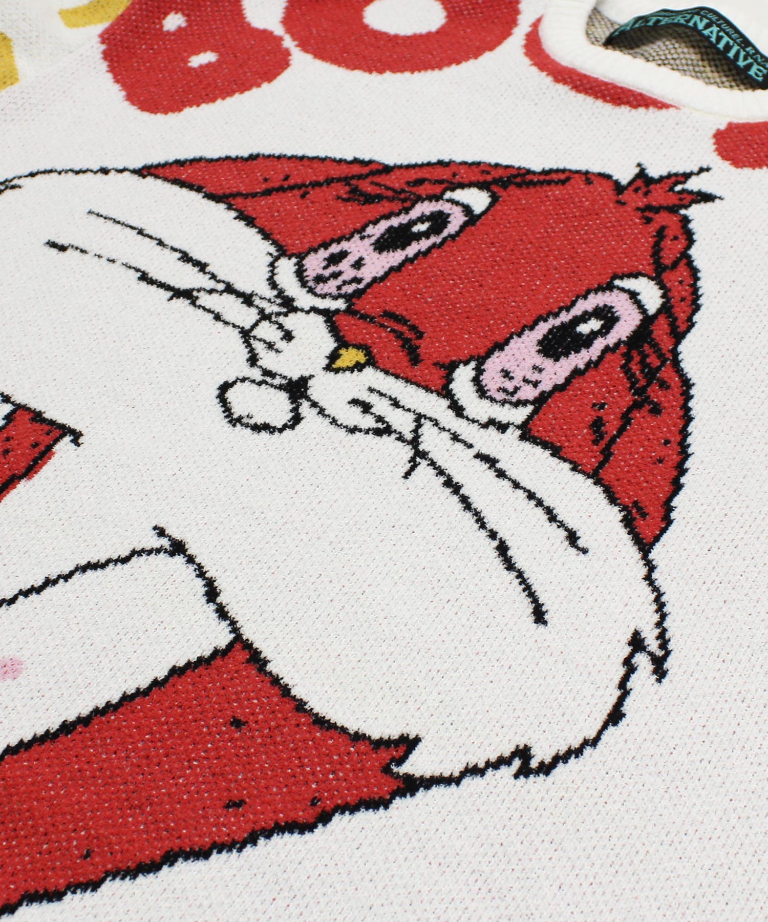 B級でキッチュなキャラを編み込んだインパクトのあるセーター