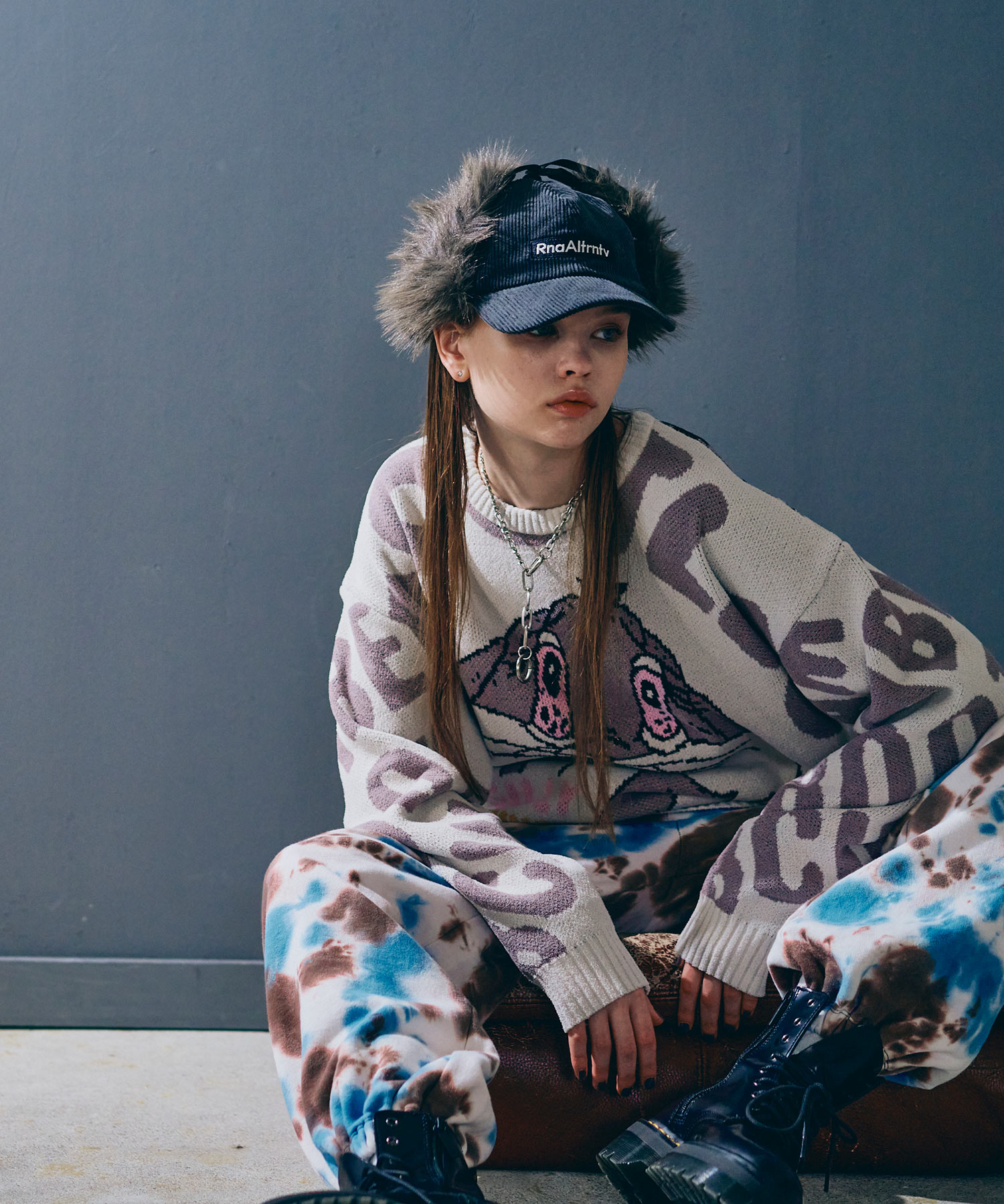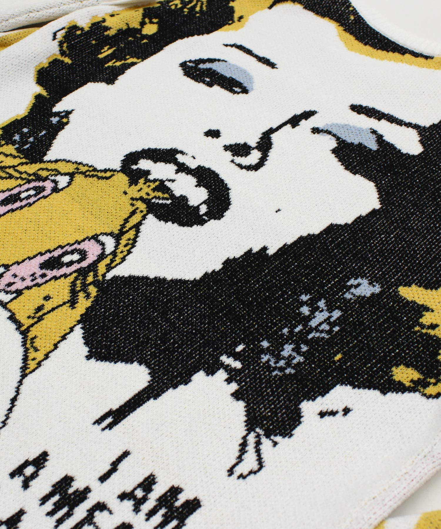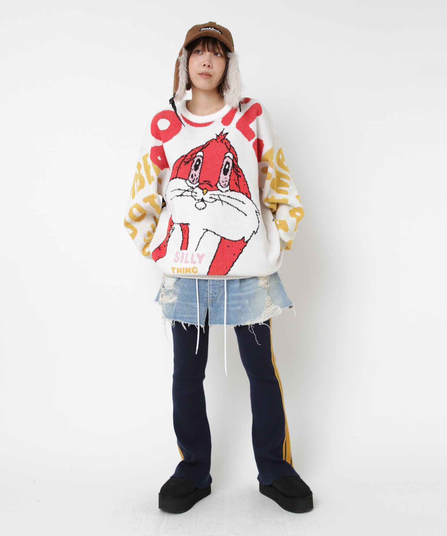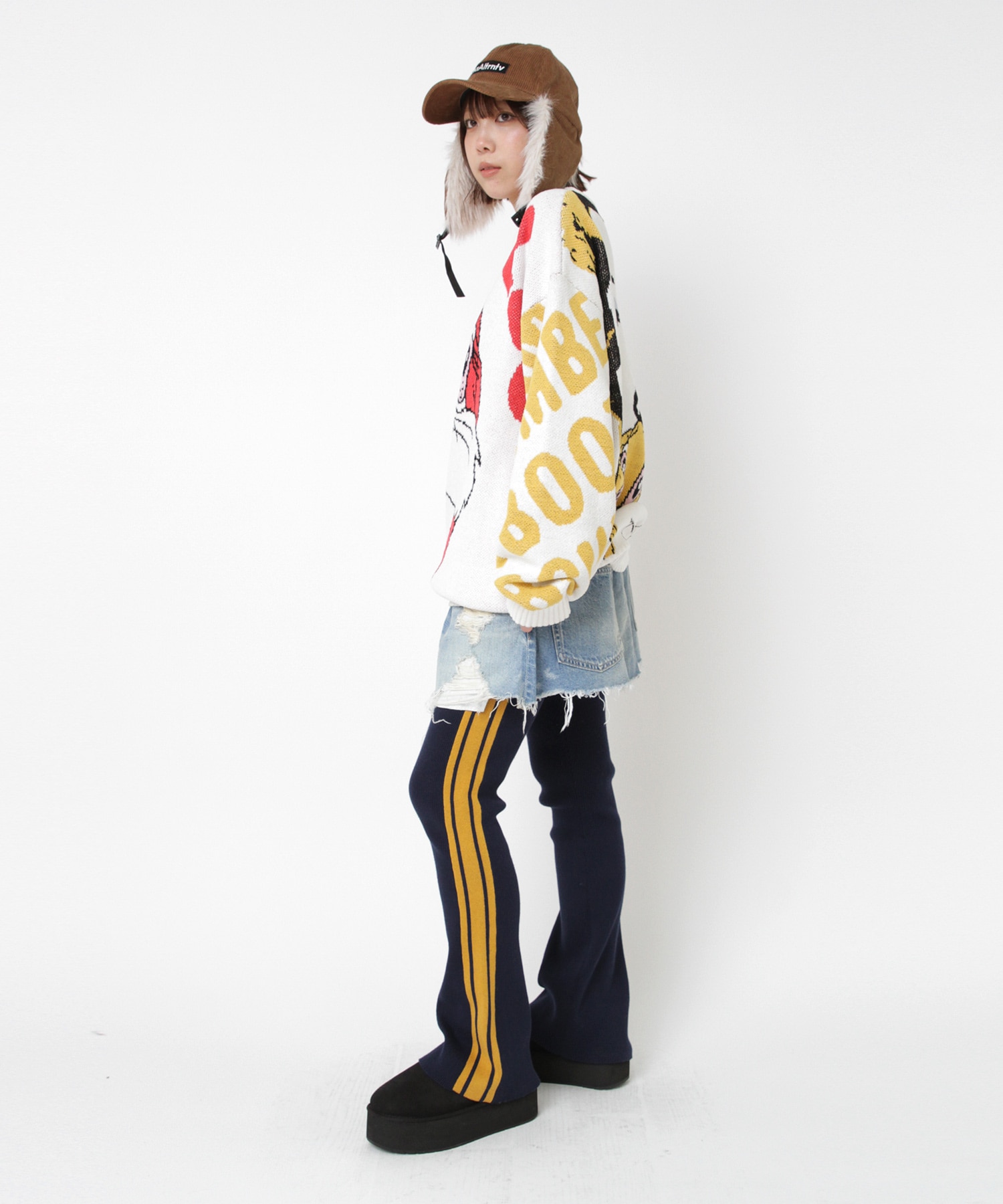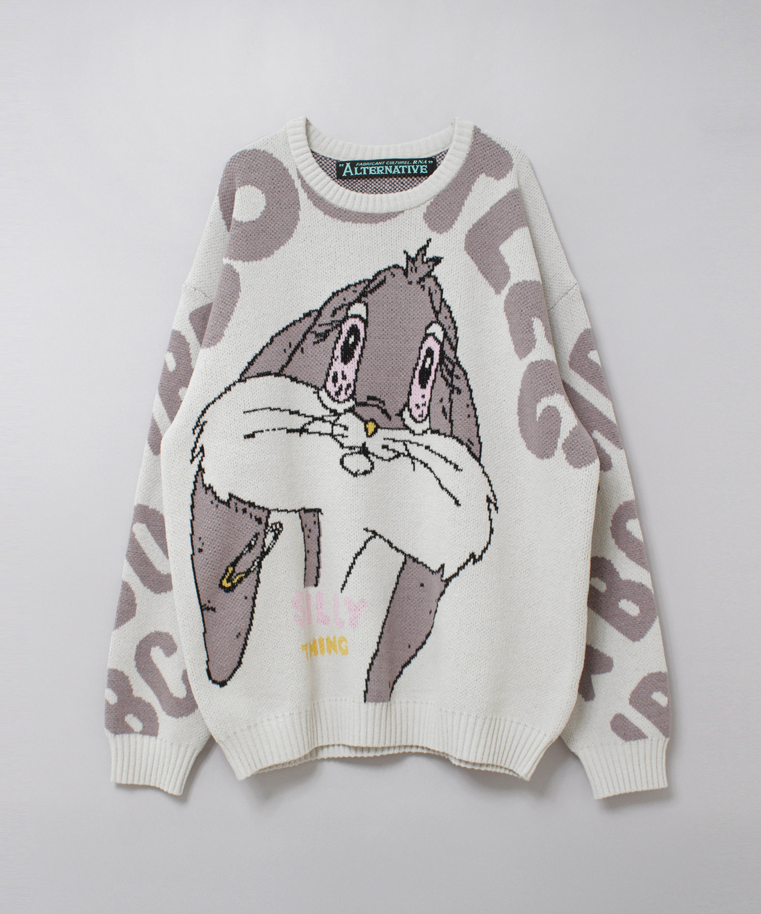 B級でキッチュなキャラを編み込んだインパクトのあるセーター