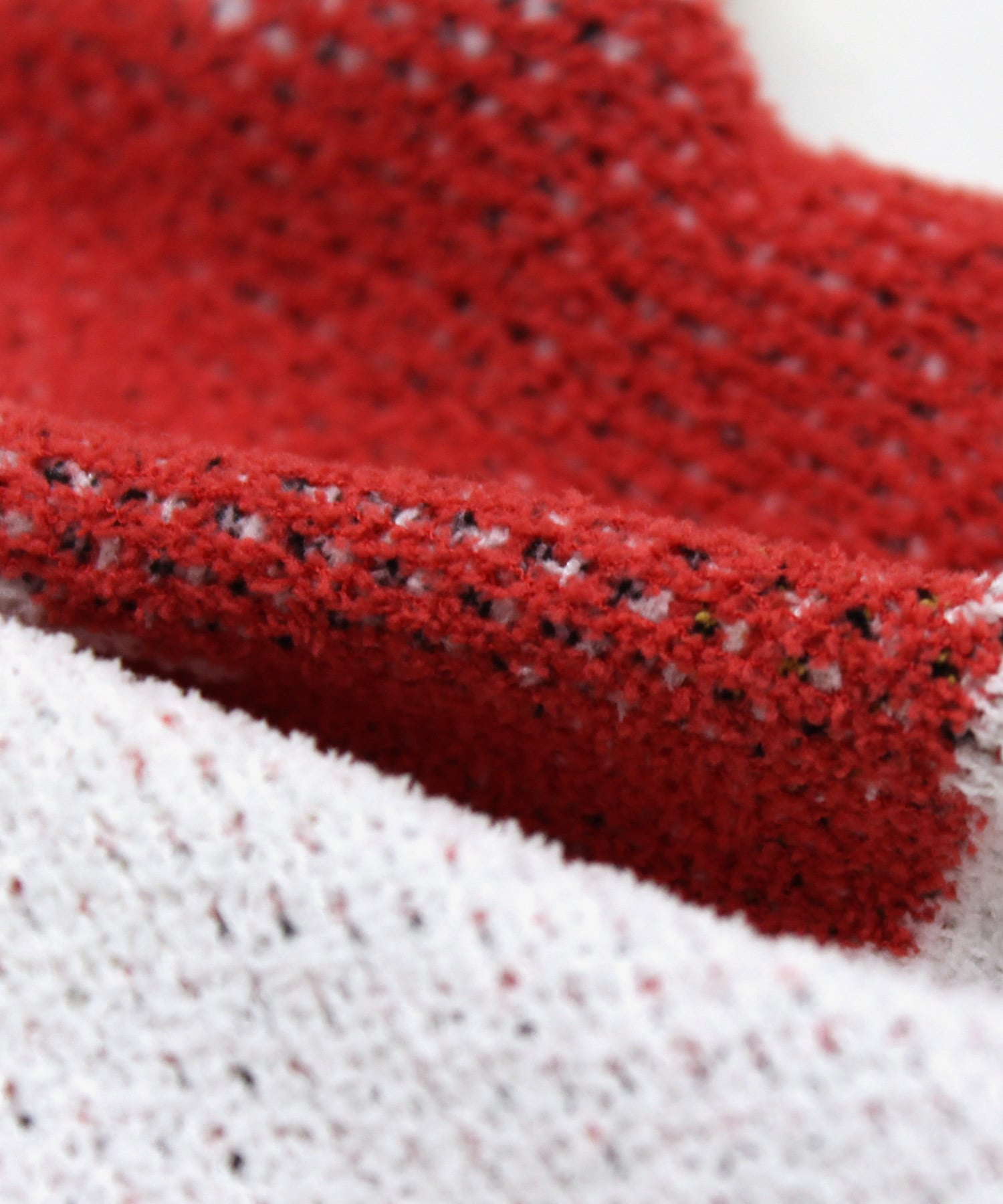 B級でキッチュなキャラをモールヤーン(短い毛足のある糸)で編み柄にしました。